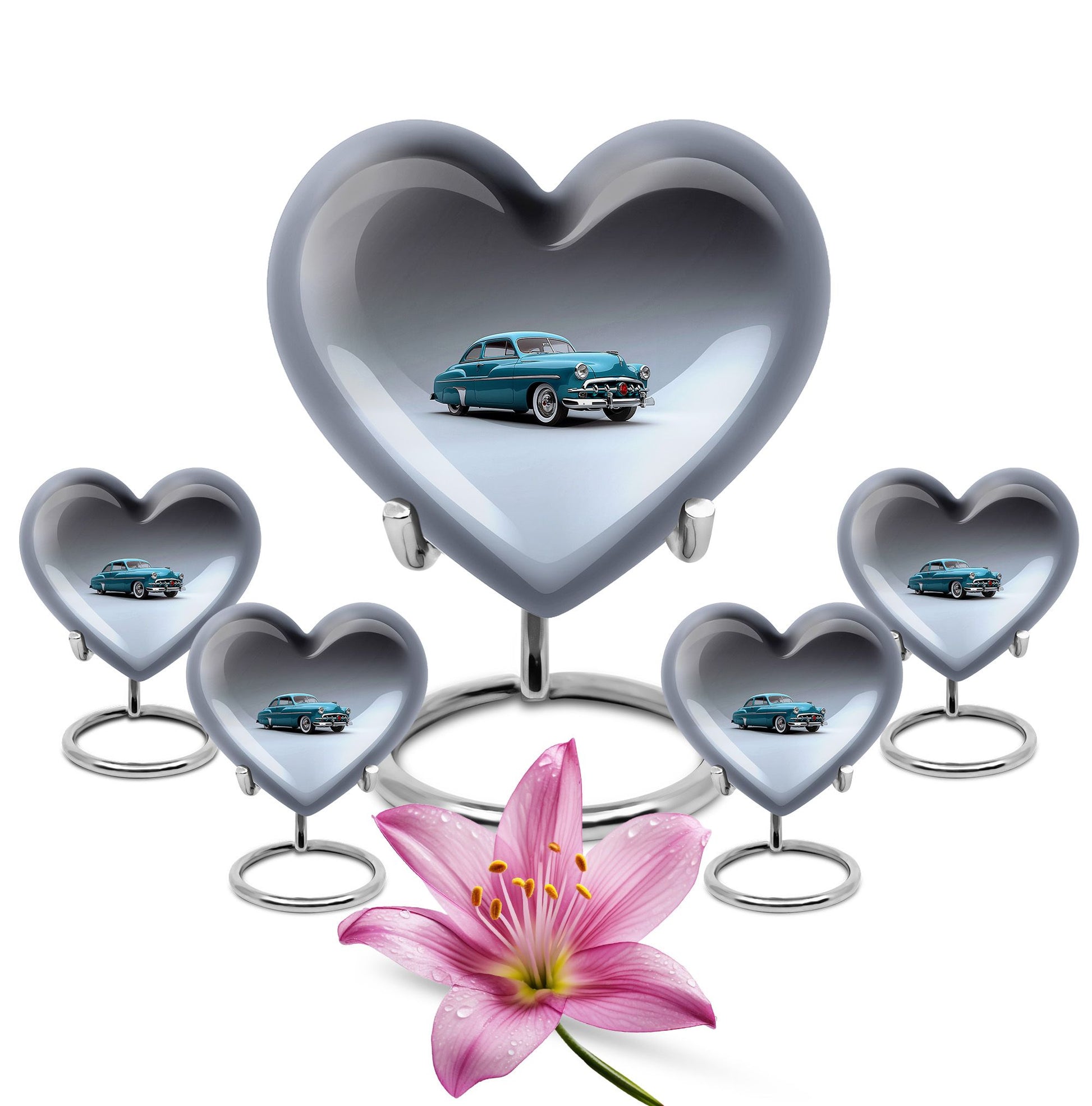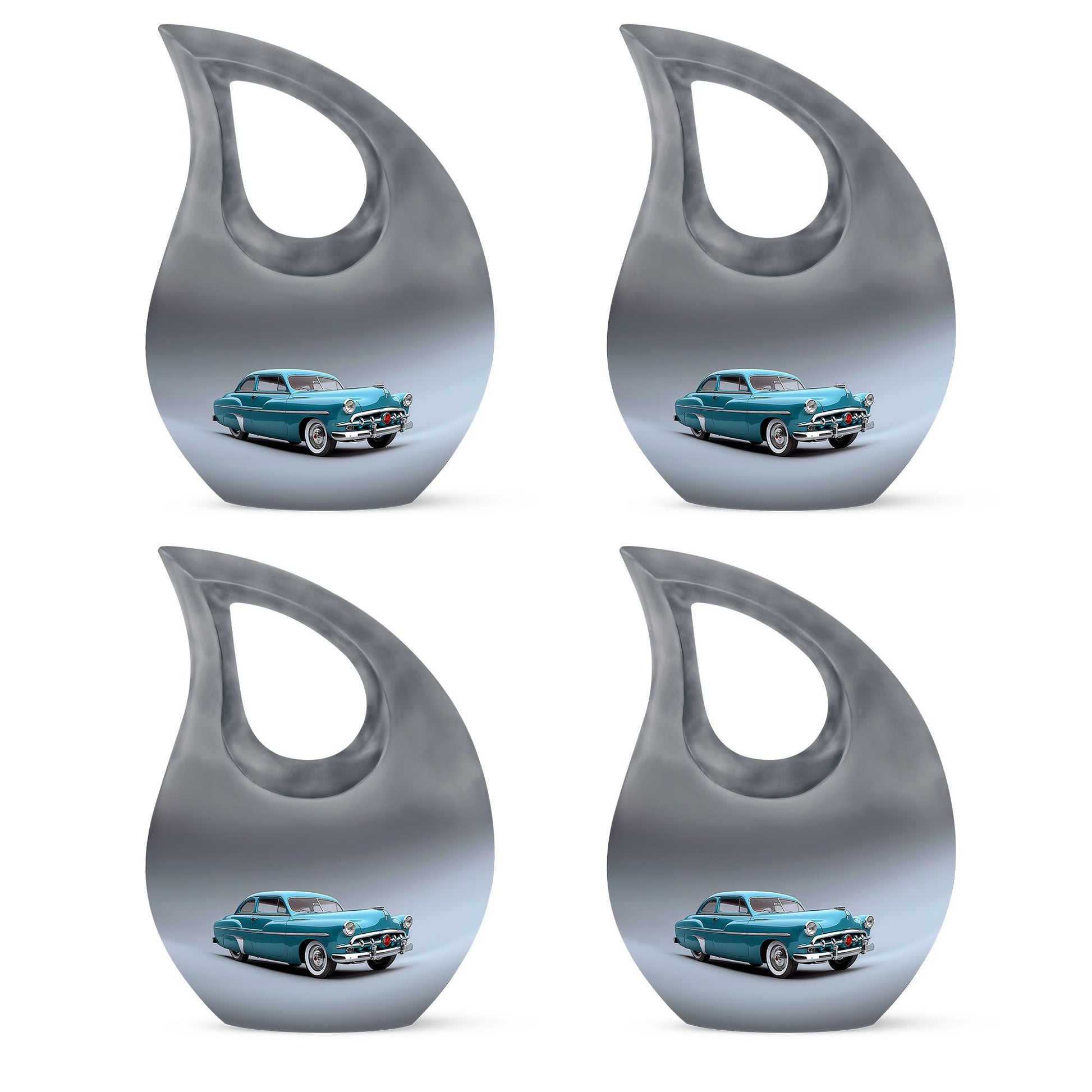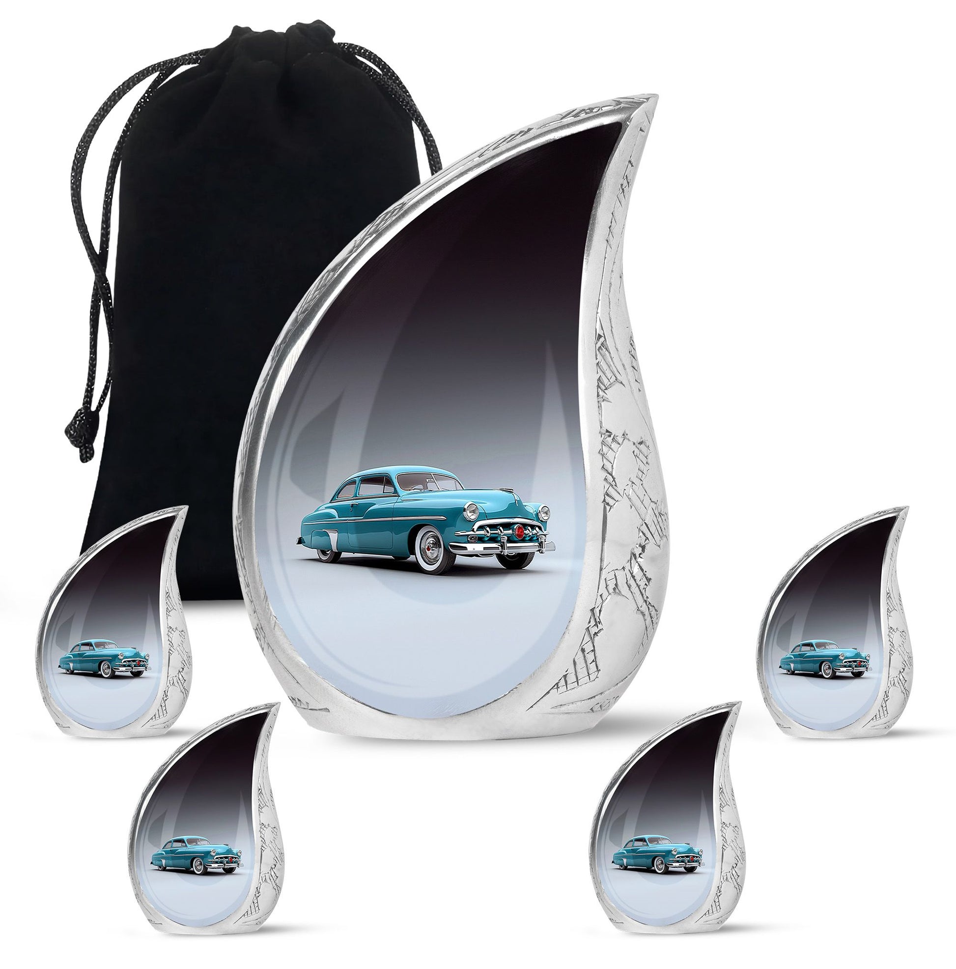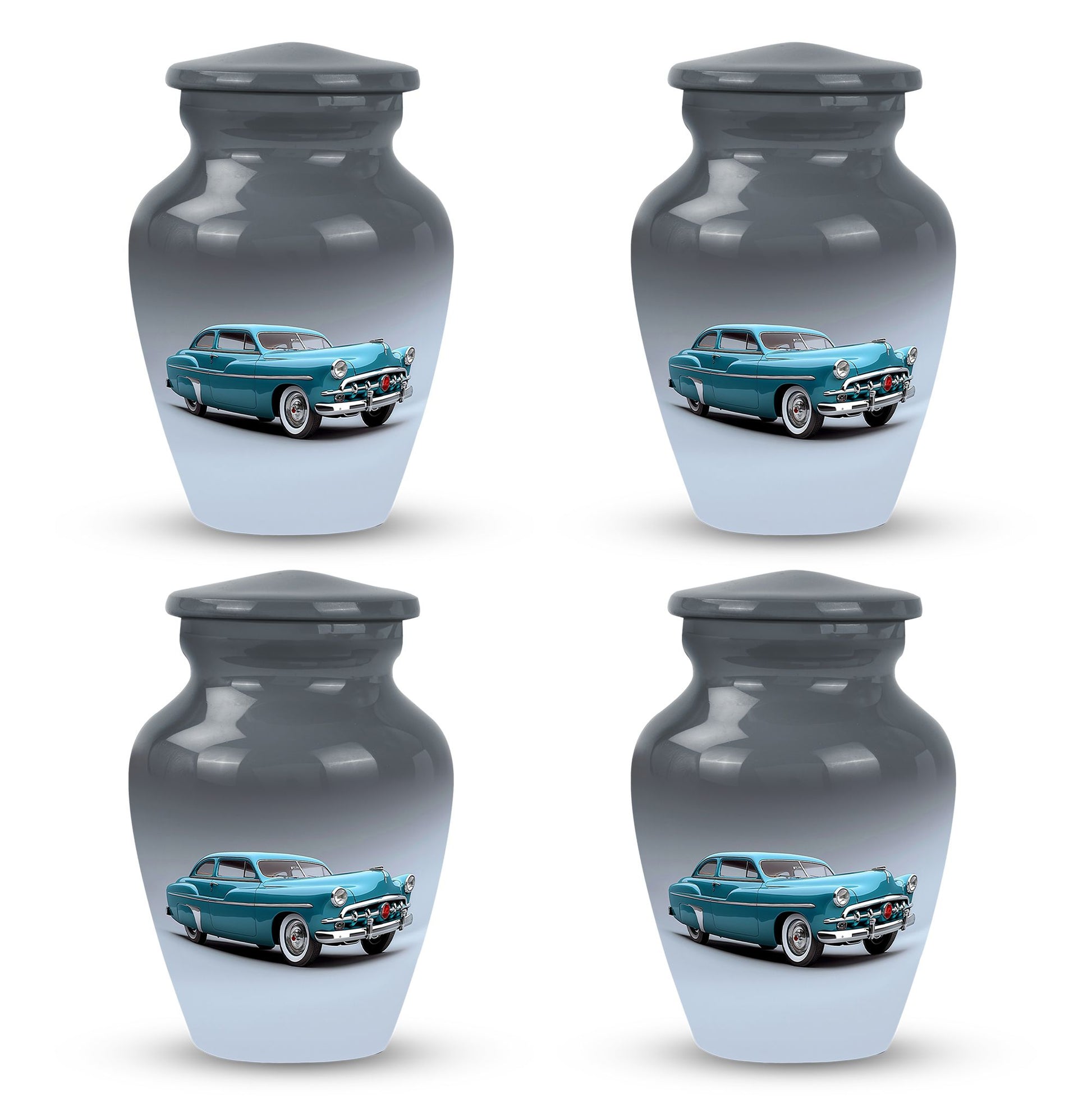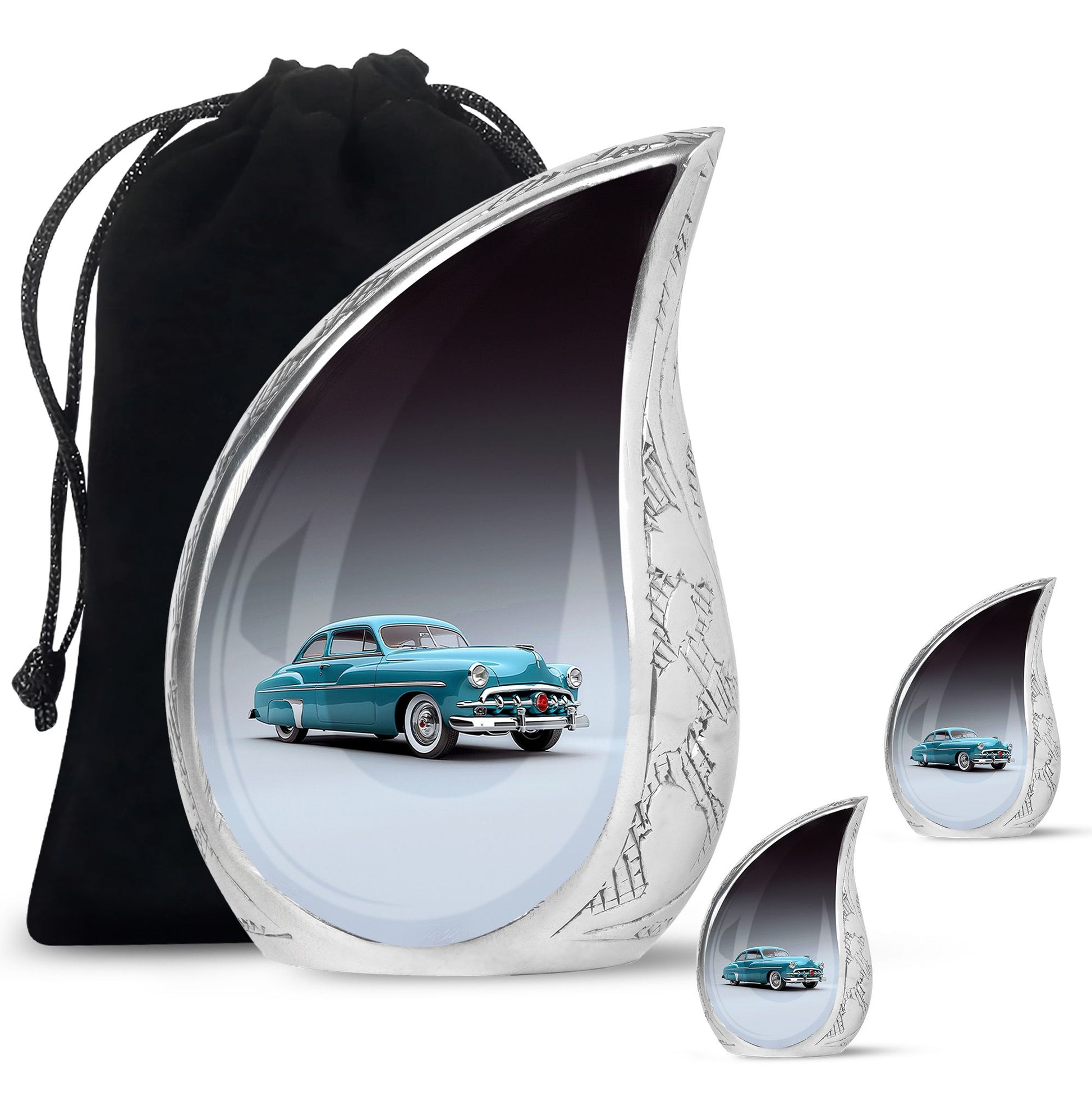 Beautifully handcrafted, this urn for human ashes adult male features a deep vintage red car motif with silver detailing, evoking classic elegance and enduring craftsmanship. Constructed from durable aluminum, it ensures lasting protection and peace of mind. The secure screw-top lid keeps ashes safely enclosed, while its polished surface adds a touch of sophistication — making it a timeless urn for ashes adult male small keepsake or a stunning display piece for memorial settings. Whether chosen as urns for human ashes adult female mom or urns for human ashes adult male dad, each design honors life’s treasured memories.
