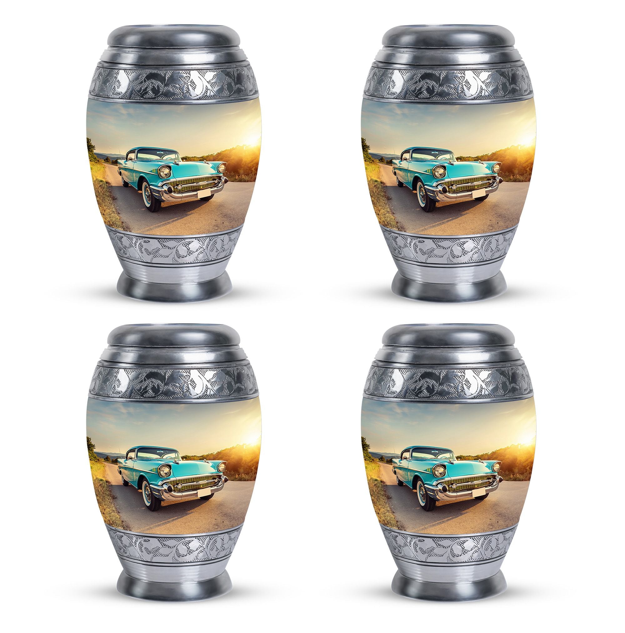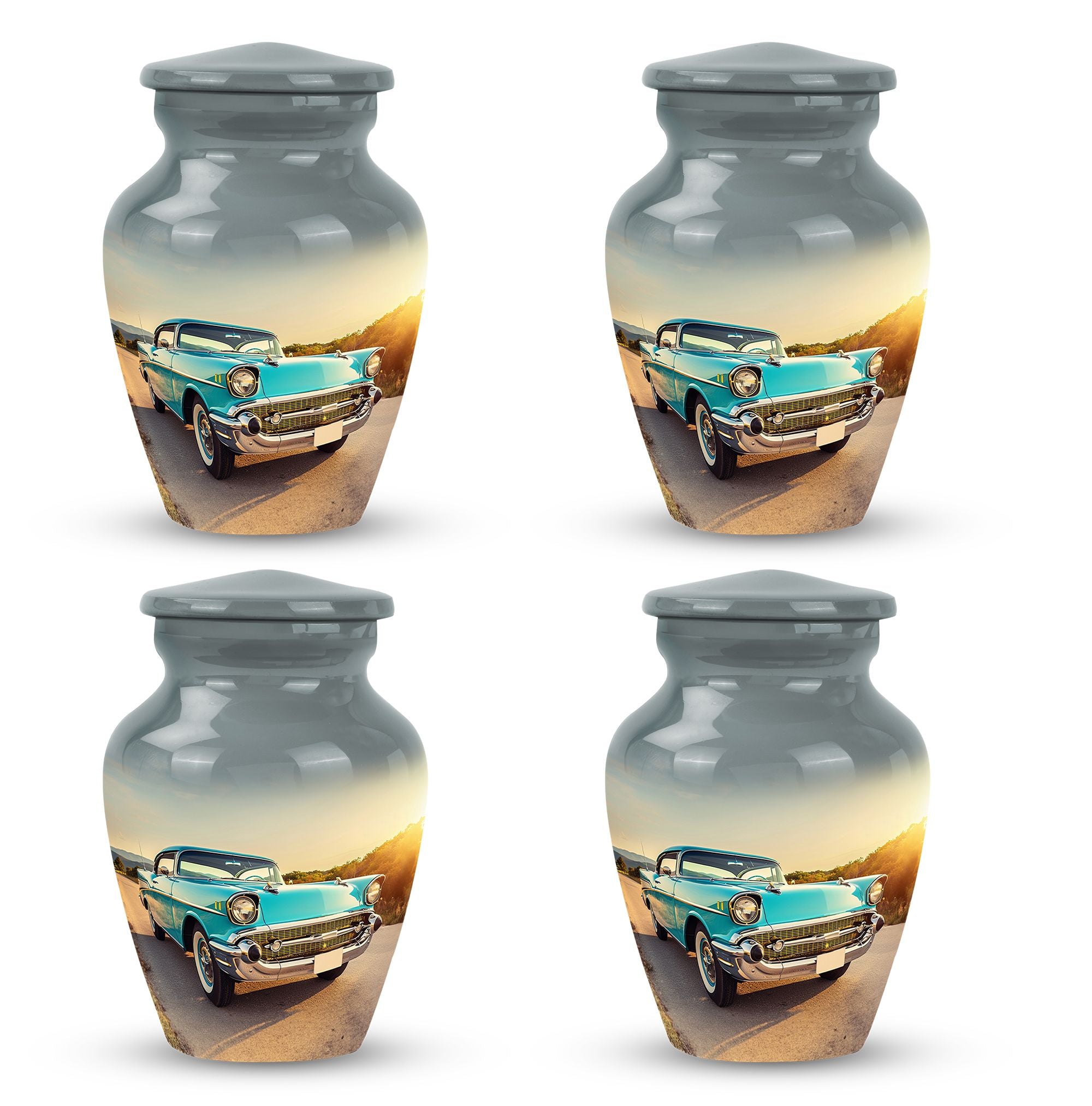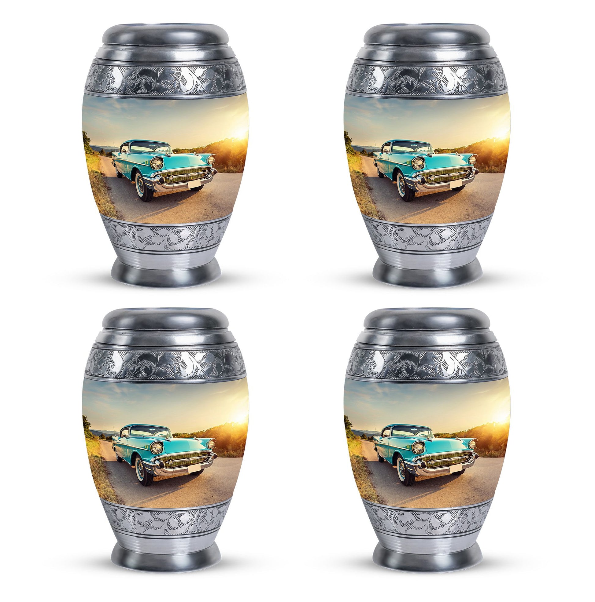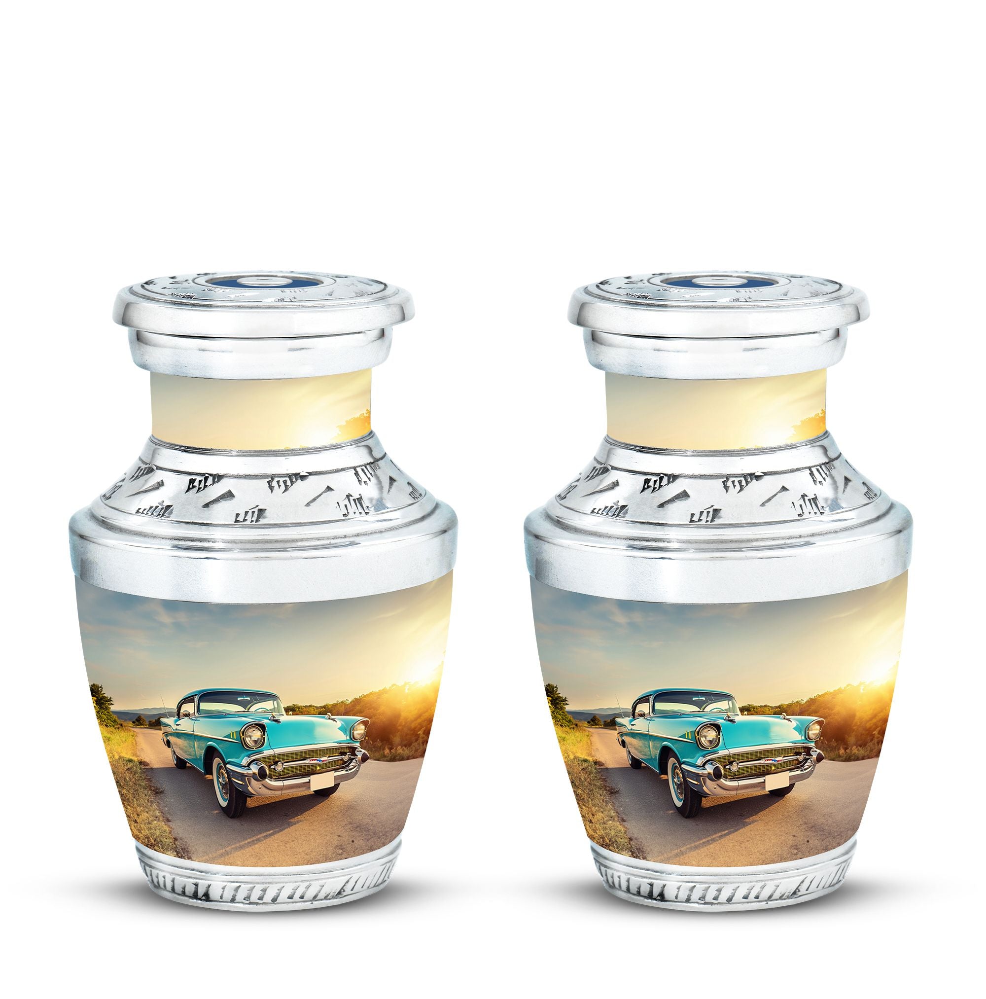 Expertly crafted from high-quality aluminium, this urn for human ashes adult male showcases intricate detailing inspired by the timeless 1957 Chevrolet Bel Air. The design radiates vintage charm, making it an exceptional piece among urns for ashes adult male collections. The smooth finish and durable build ensure long-lasting preservation, while its secure screw-top lid provides peace of mind. Whether displayed at home or chosen for a dignified resting place, this small urn for ashes adult male reflects elegance and strength in every detail.