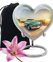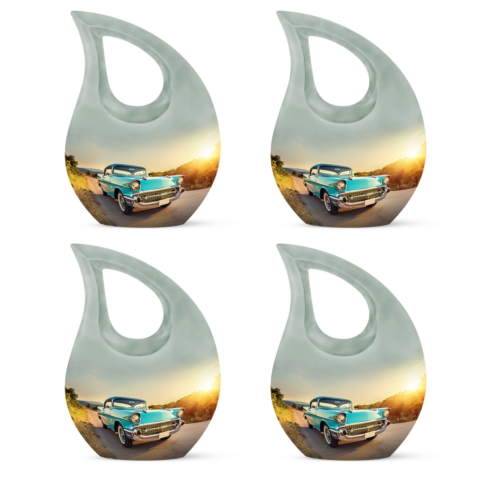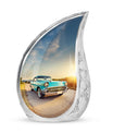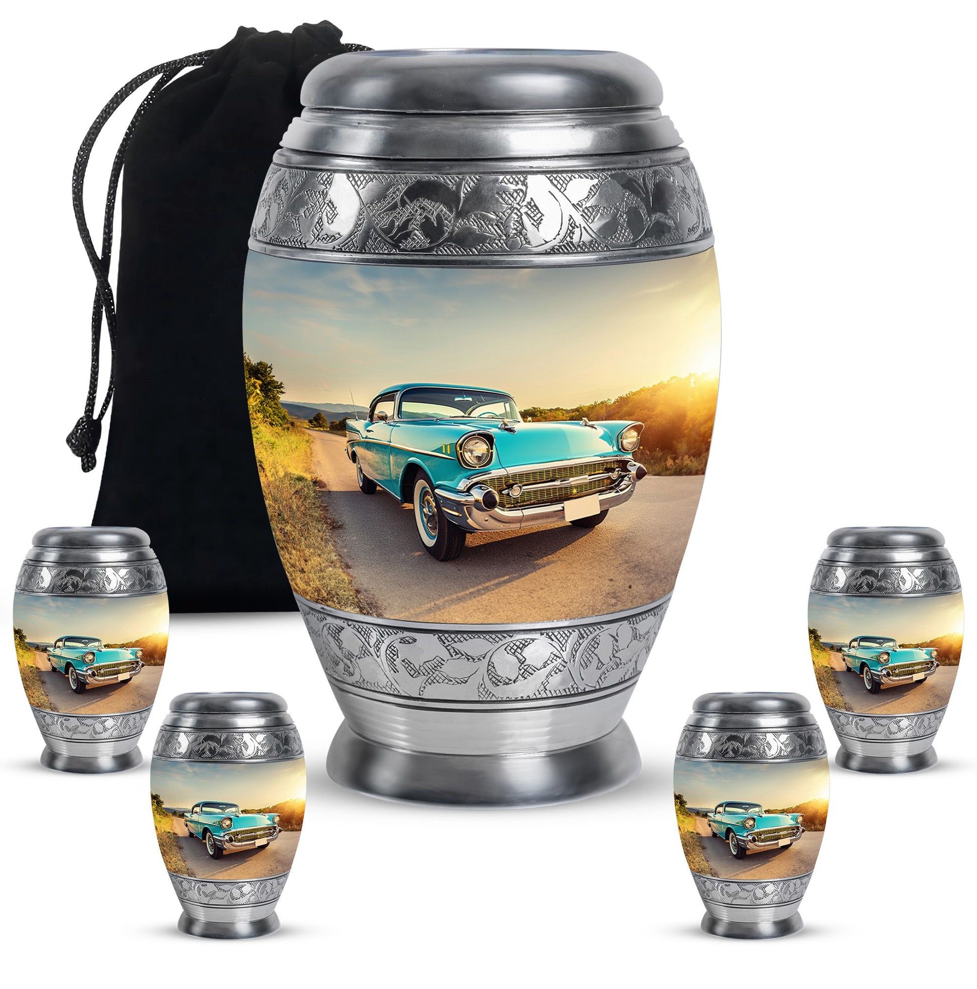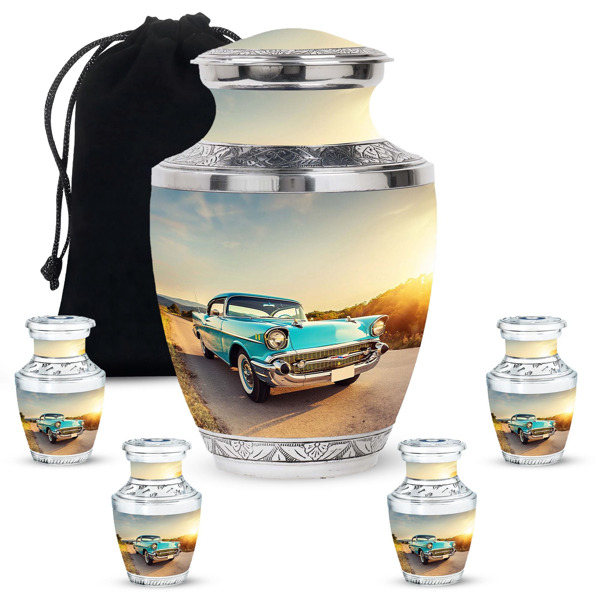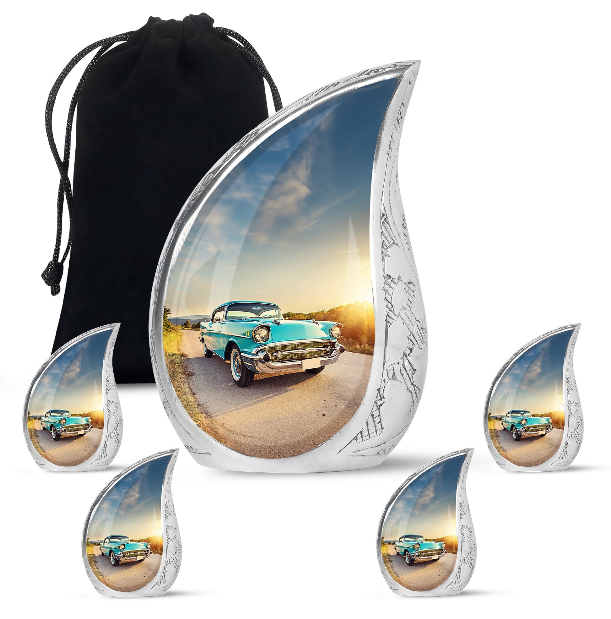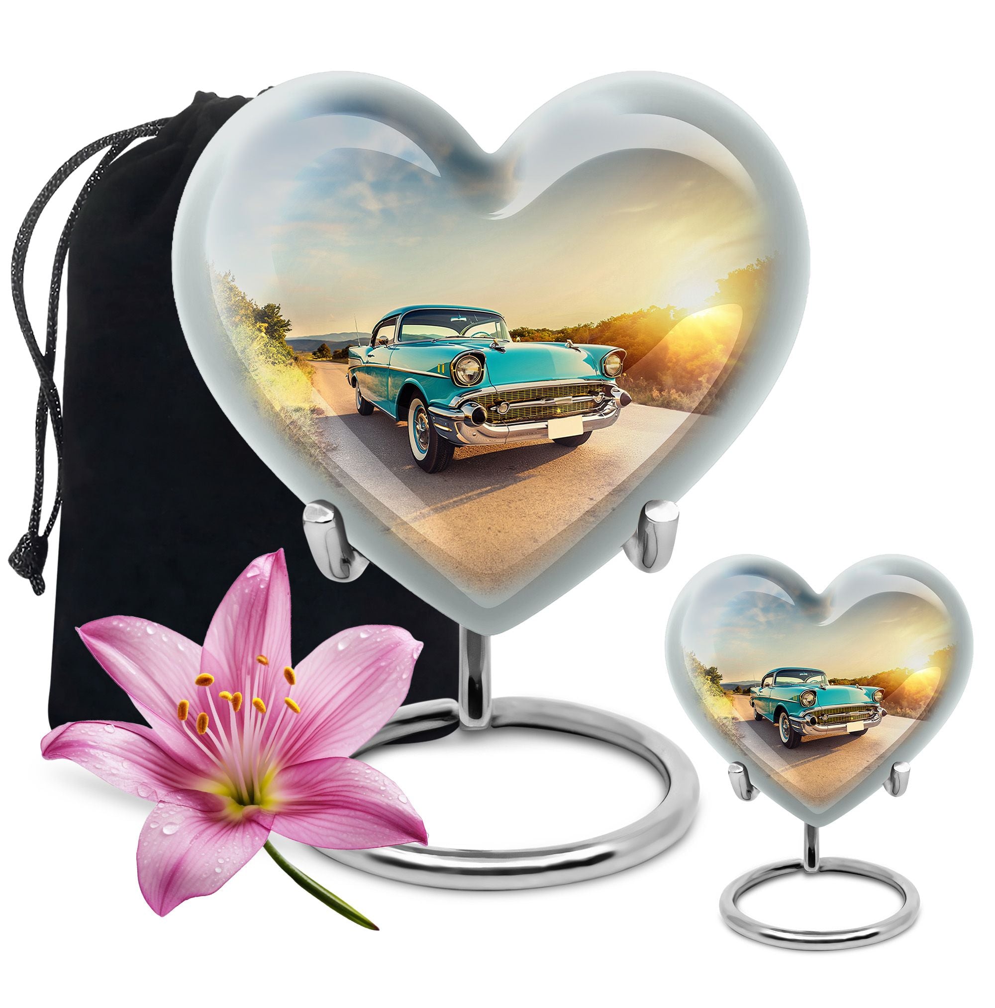 Expertly crafted from high-quality aluminium, this urn for human ashes adult male showcases intricate detailing inspired by the timeless 1957 Chevrolet Bel Air. The design radiates vintage charm, making it an exceptional piece among urns for ashes adult male collections. The smooth finish and durable build ensure long-lasting preservation, while its secure screw-top lid provides peace of mind. Whether displayed at home or chosen for a dignified resting place, this small urn for ashes adult male reflects elegance and strength in every detail.