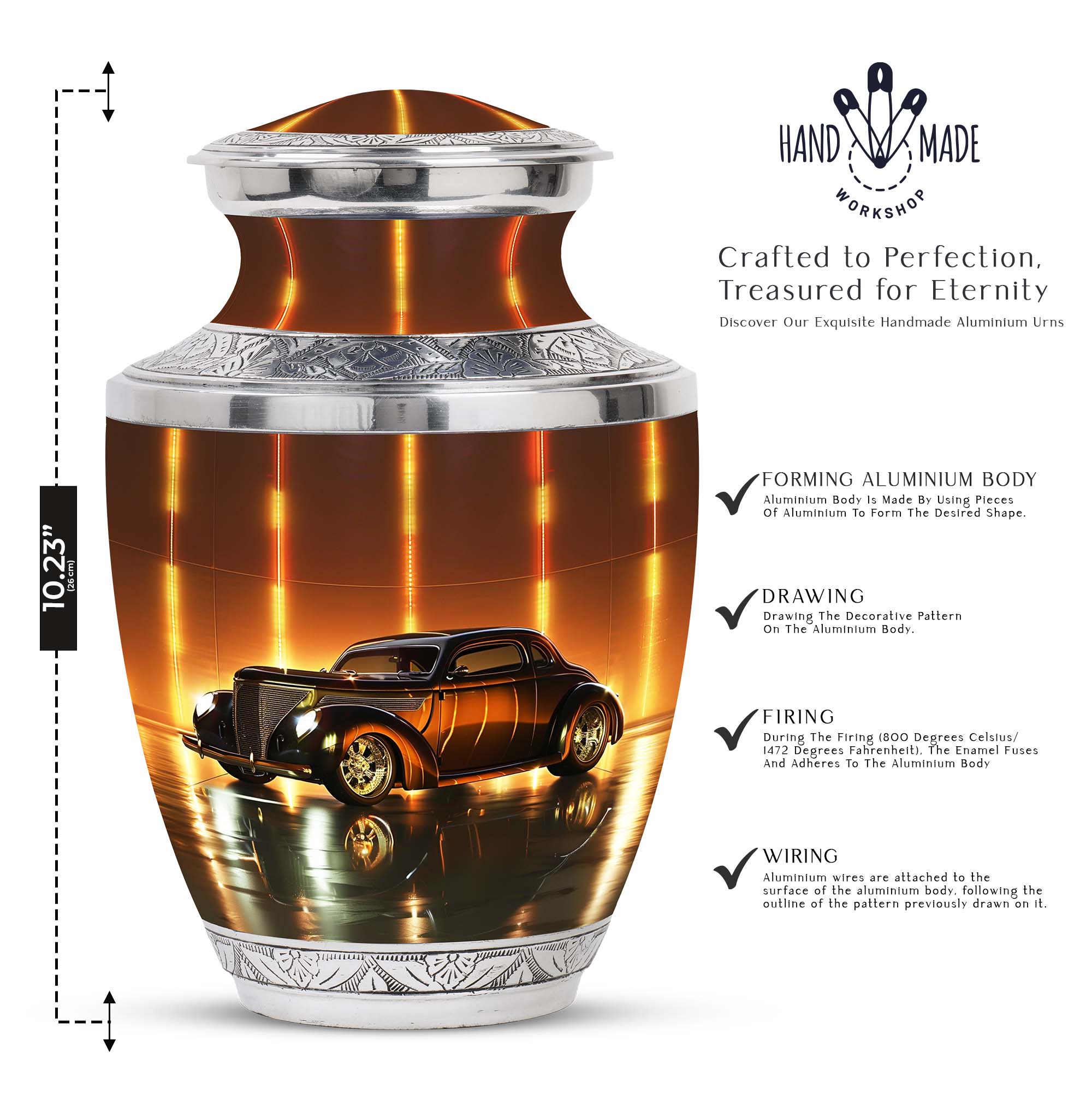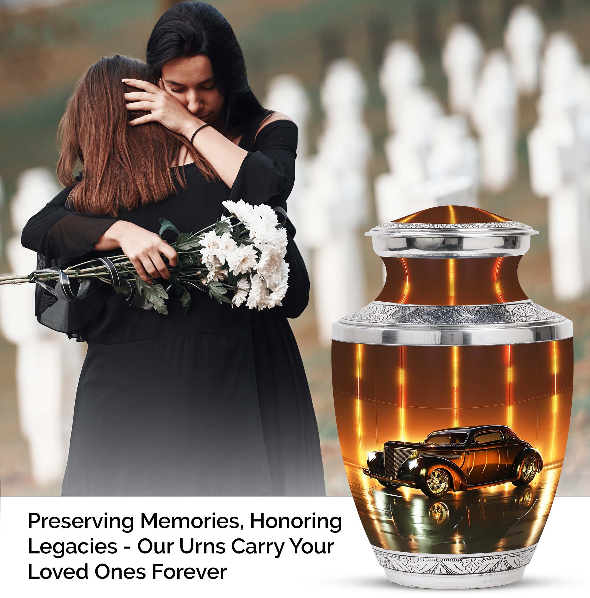Rediscover the soothing solace of honoring loved ones with our distinctive 'Vintage Shine Heritage Car', a burial urn meticulously designed for preserving human ashes. Steeped in tradition, yet accentuated with a modern touch, this unique vessel becomes a cherished memorial to celebrate and remember the life journey of your dearly departed. This cremation urn presents a perfect blend of strength and elegance, ideal for adults and particularly appealing to men. Delicately crafted, it stands as a tangible symbol of enduring sanctity and respect for human remains. Our Vintage Shine Heritage Car is more than an urn for adult human ashes, it is a commemoration of individuality and a testimony to life lived. Step into this extraordinary legacy journey, and let your loved ones remain illuminated in your memories forever. Remember, love is eternal, and so are the memories sealed within our urns.