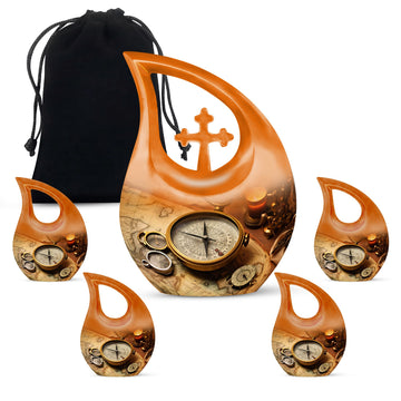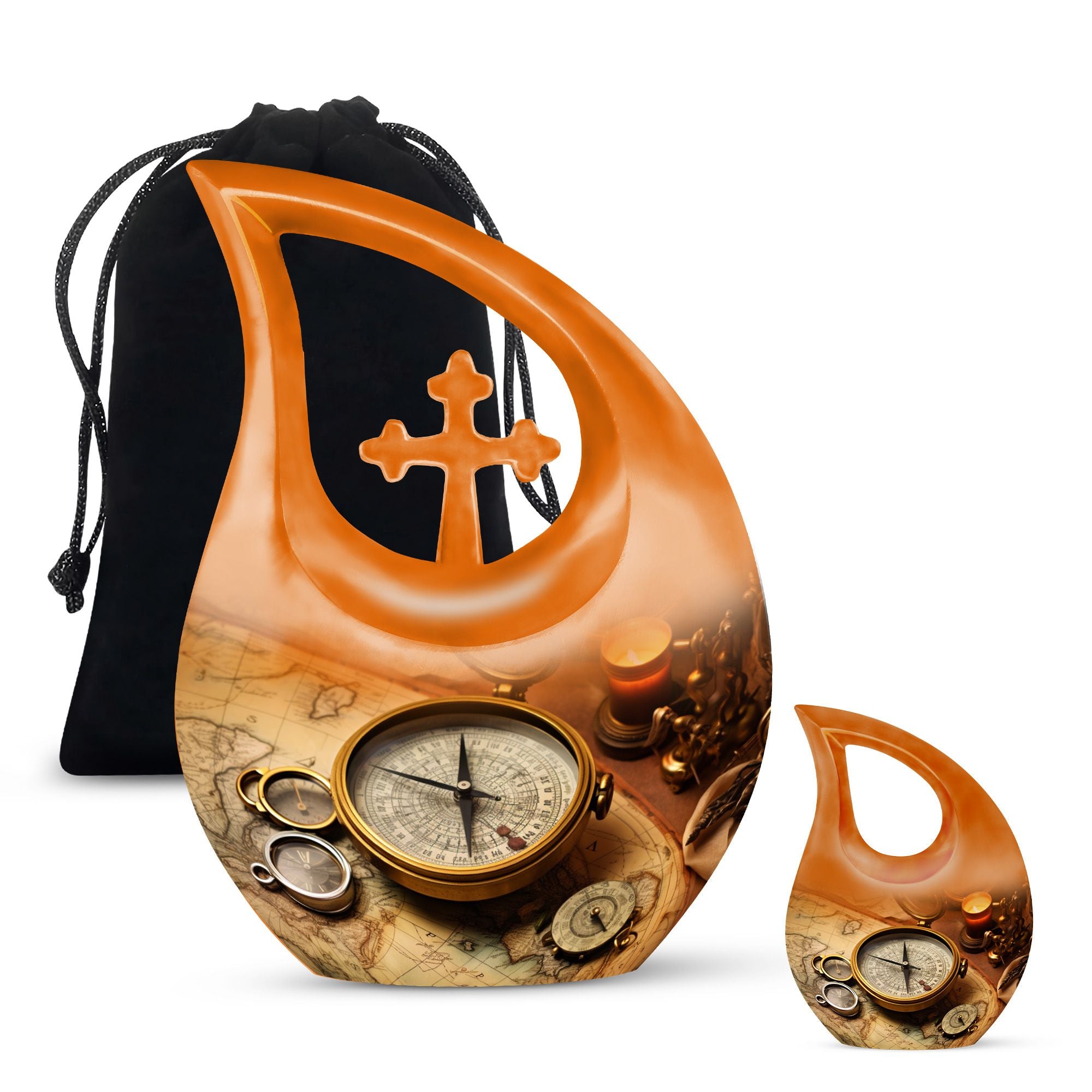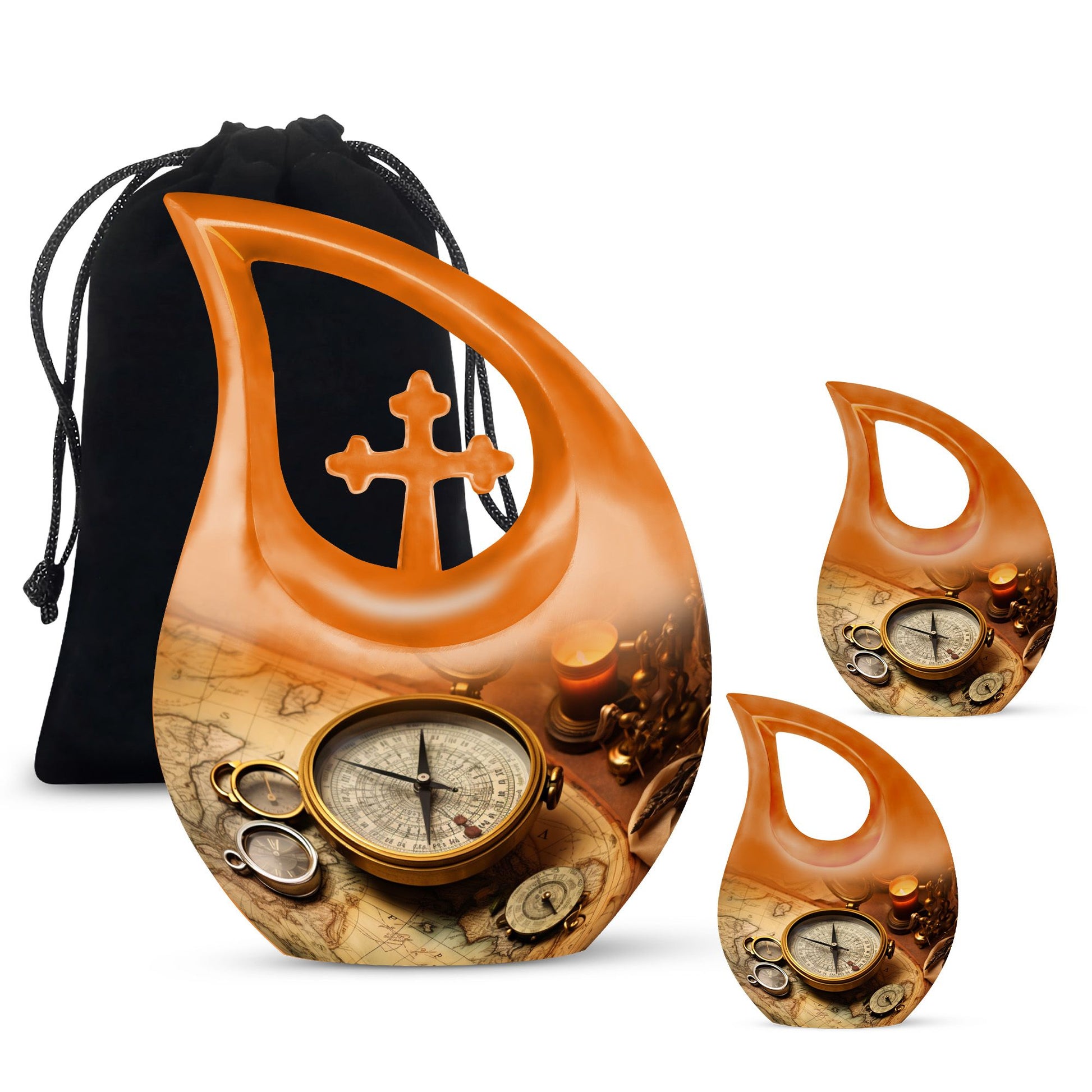 This set beautifully supports families who want both a full-size memorial and keepsake pieces, allowing every loved one to hold a cherished reminder close. Whether used as a funeral cremation piece or displayed as a symbolic tribute, the compass design offers hope, direction, and emotional comfort.