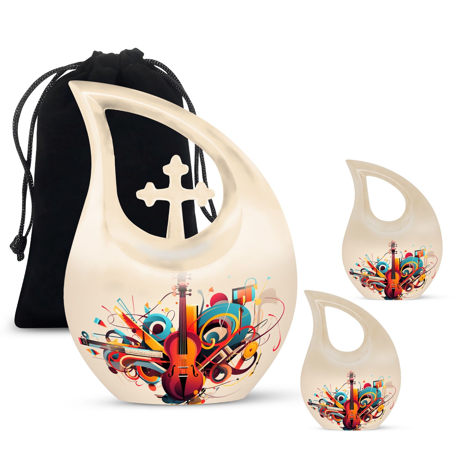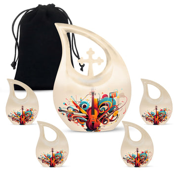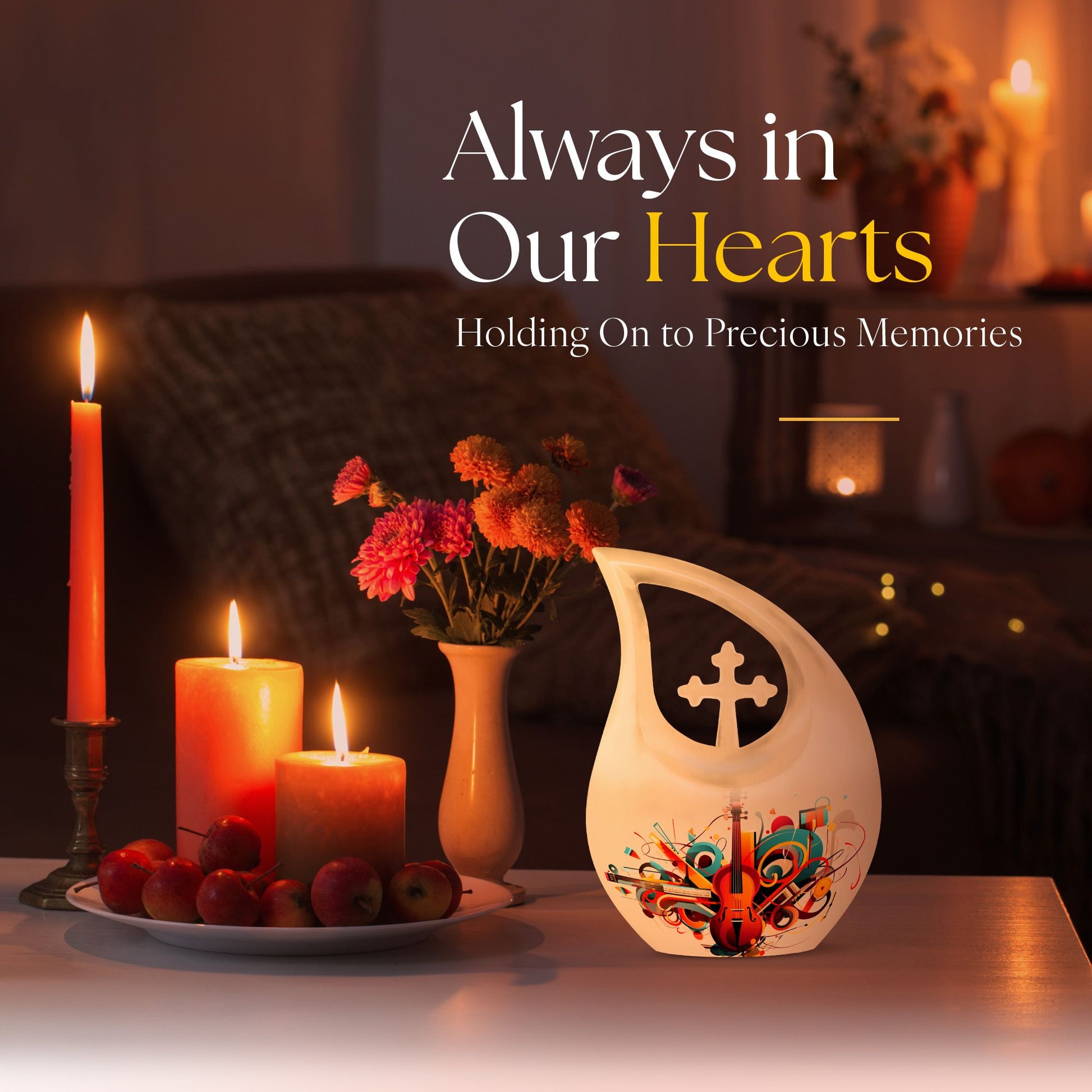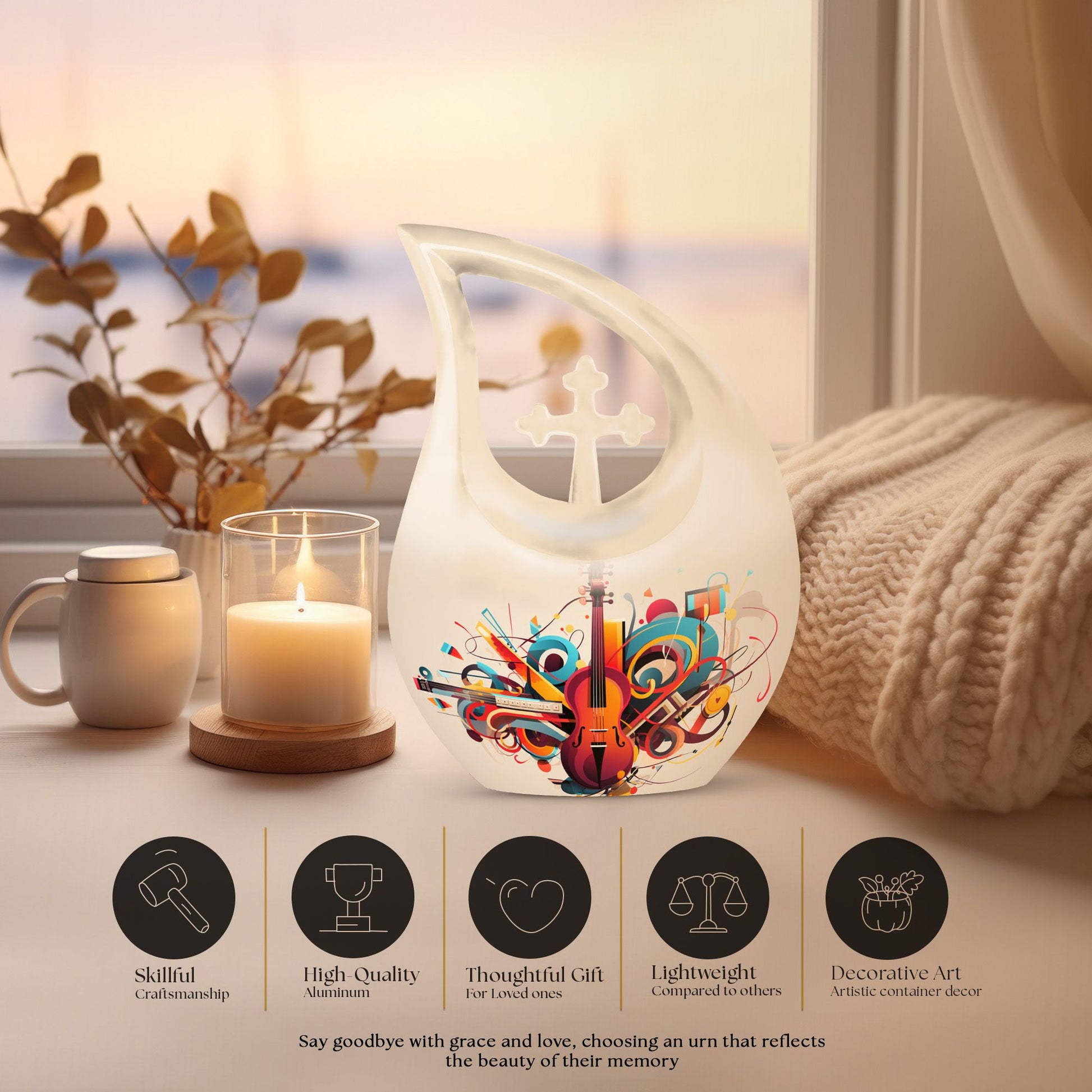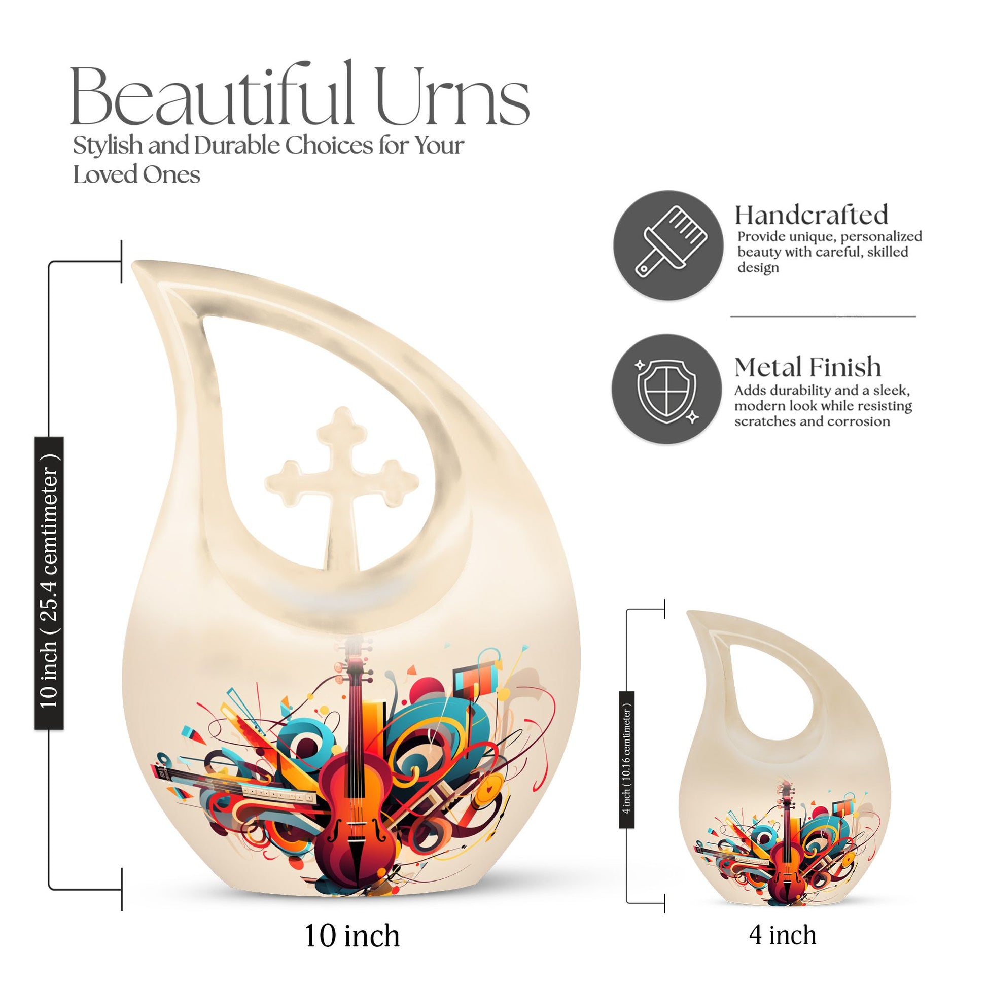Crafted from durable aluminium, this urn features expressive violin-inspired artwork symbolizing harmony, remembrance, and emotional depth. The polished finish and secure screw-top lid ensure long-lasting protection. Its 10-inch size provides ample capacity for those looking for human urns for ashes adult male, human urns for ashes adult female, or refined pieces suited for ash urns for humans male. Families needing small urns for ashes adult male, small urns for human ashes adult male, or urns for human ashes adult female small size will also appreciate this design's availability in coordinating keepsake sizes.