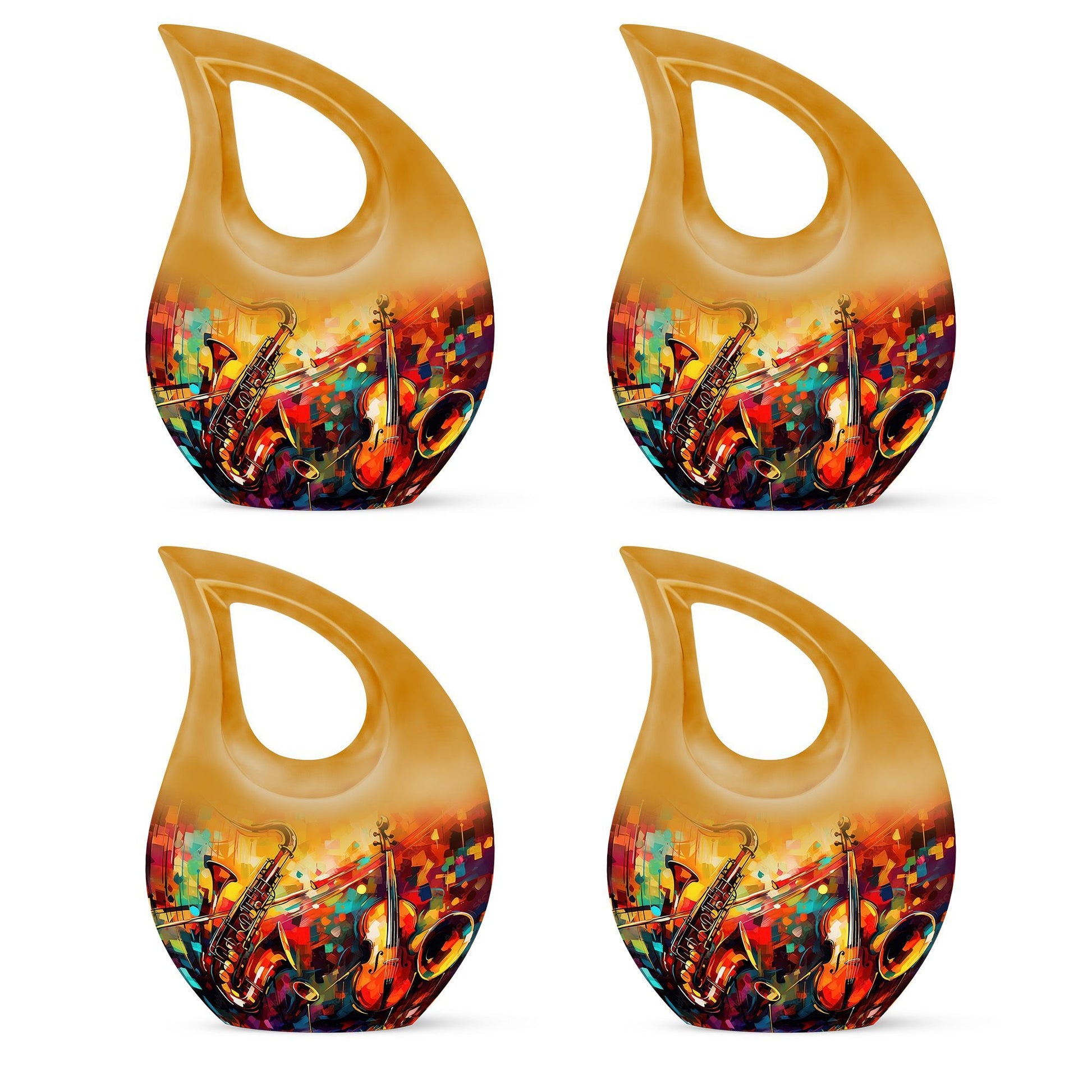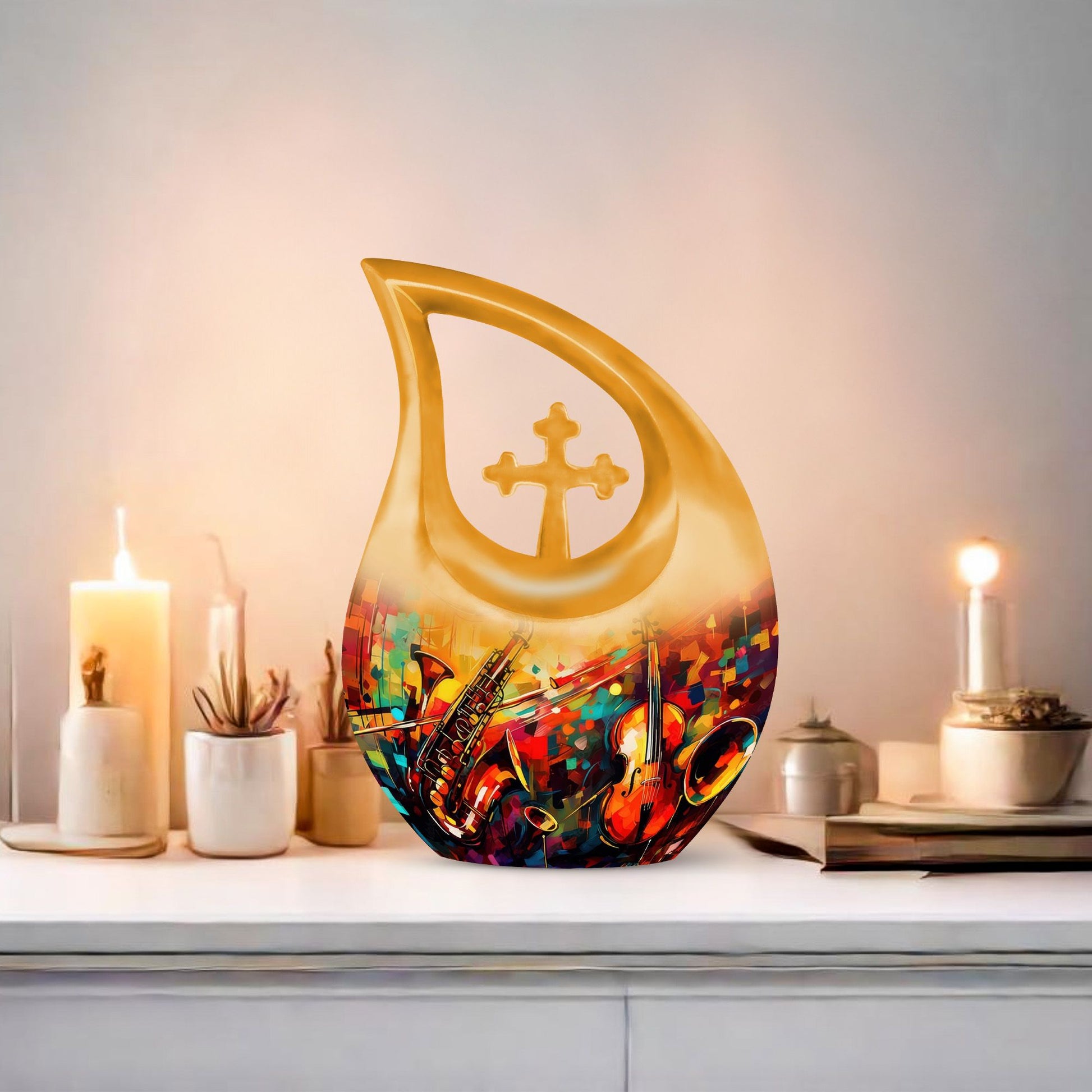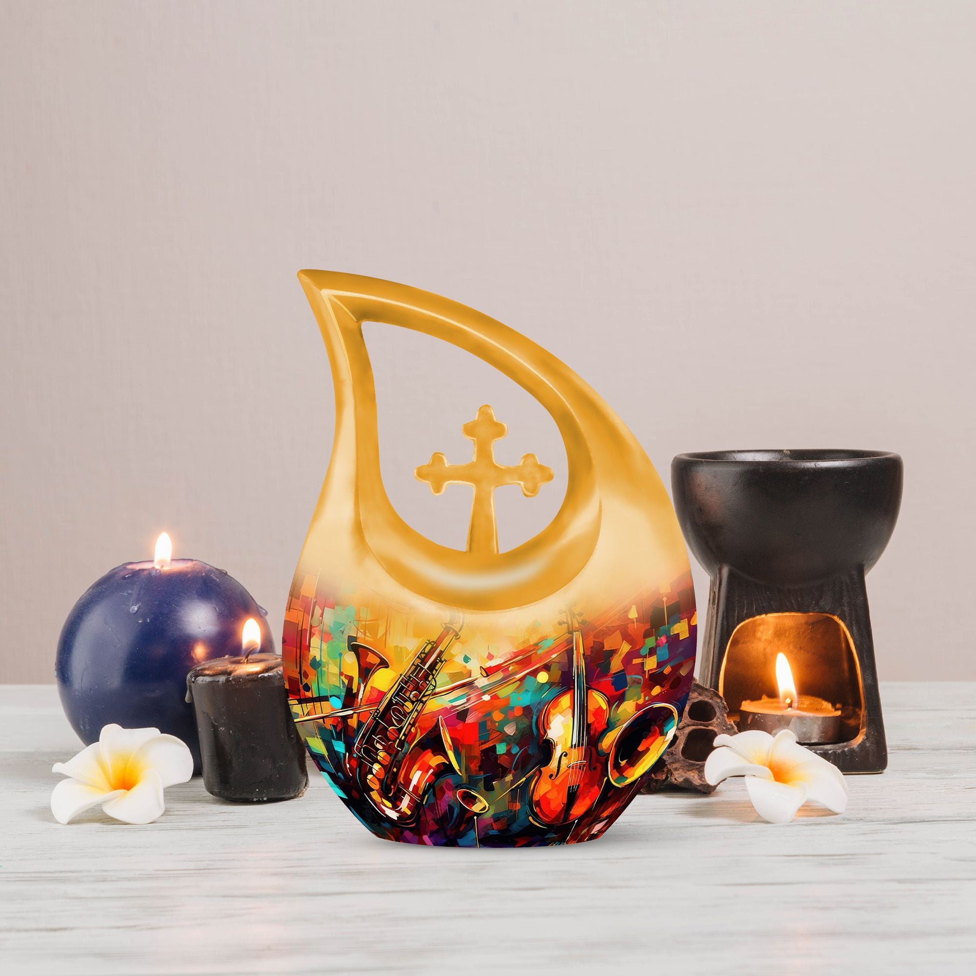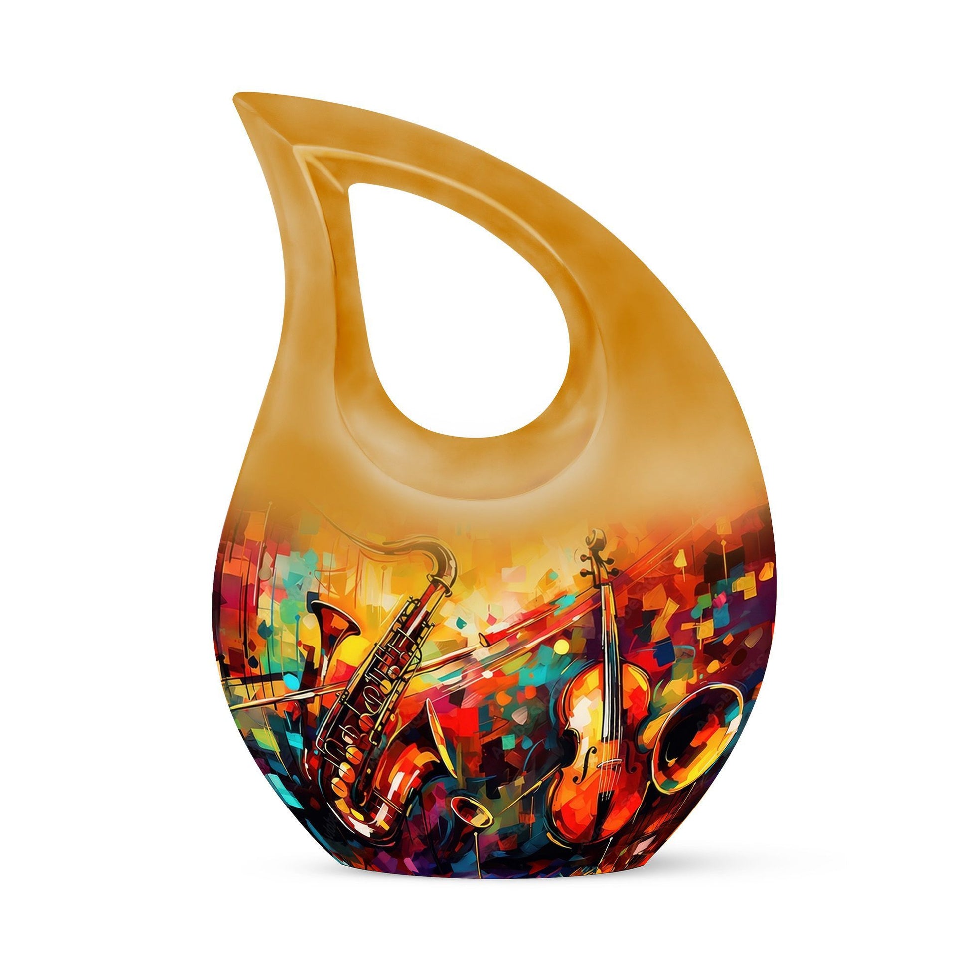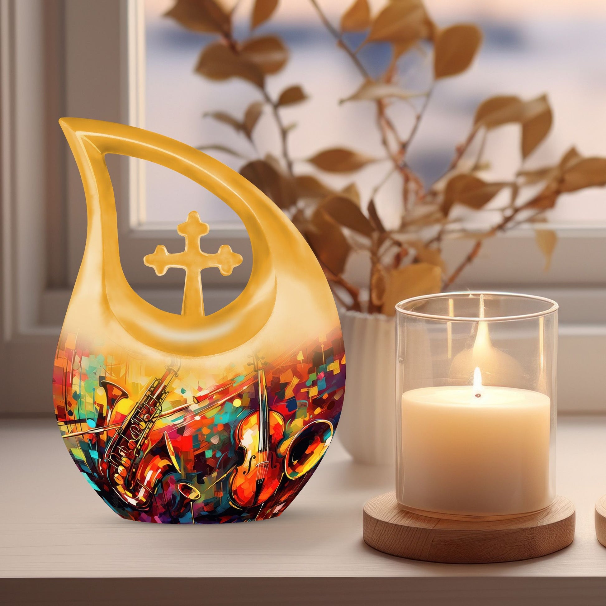 This urn may be complemented with a cremation keepsake or mini urn, allowing additional family members to hold a small portion of ashes in a meaningful, artistic tribute. Its musical design brings comfort, symbolizing harmony, emotion, and a life that continues to inspire.