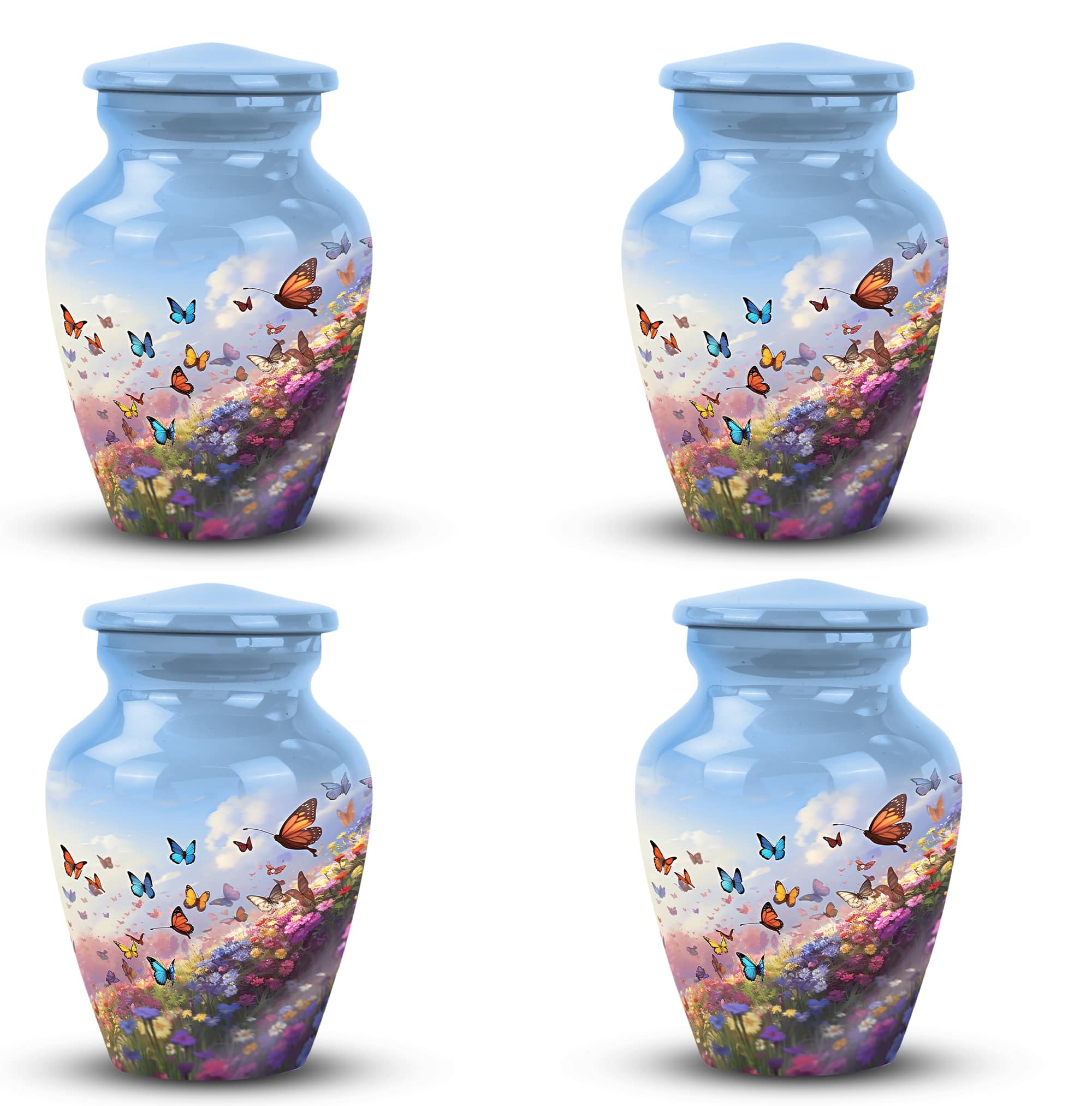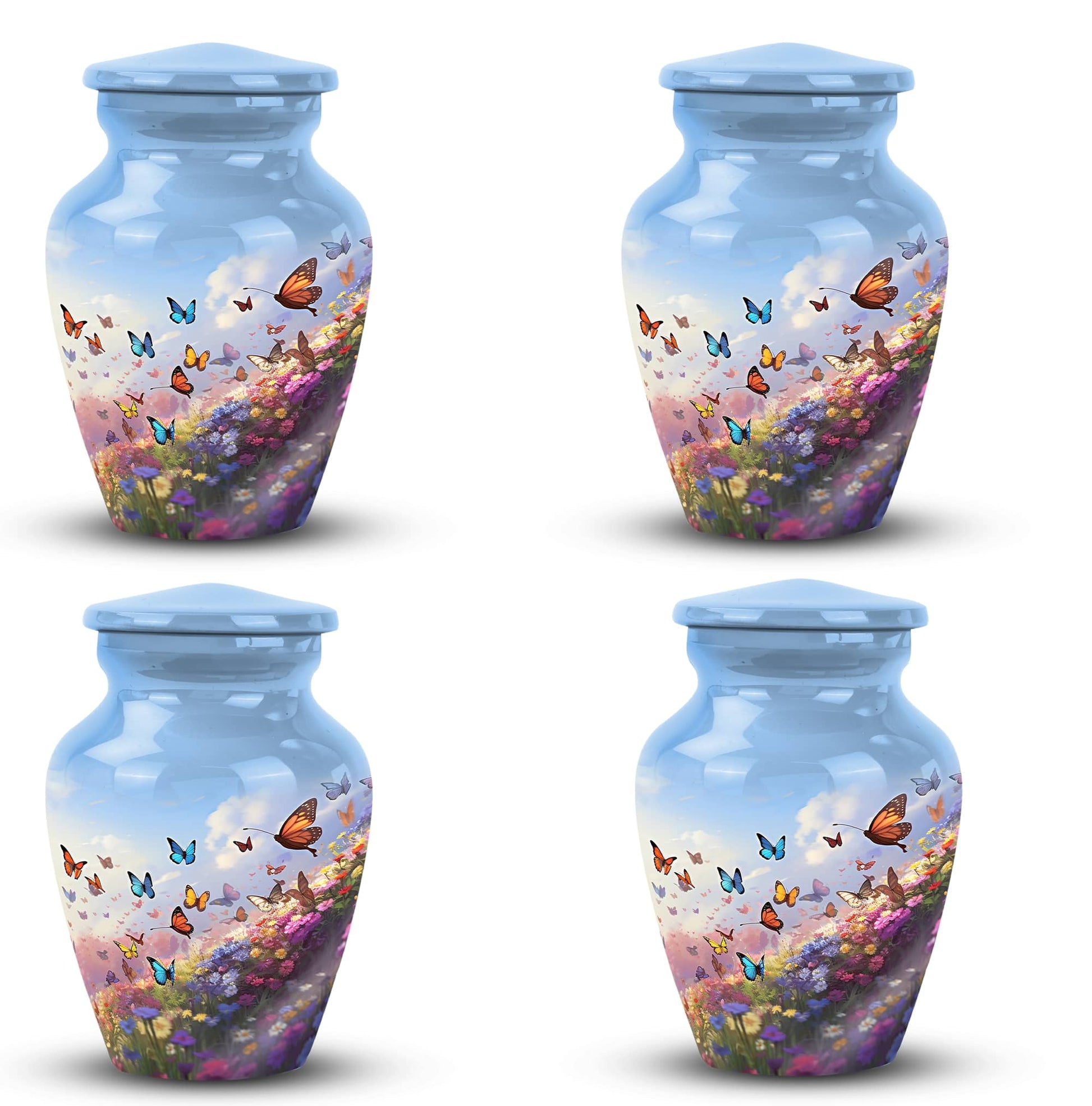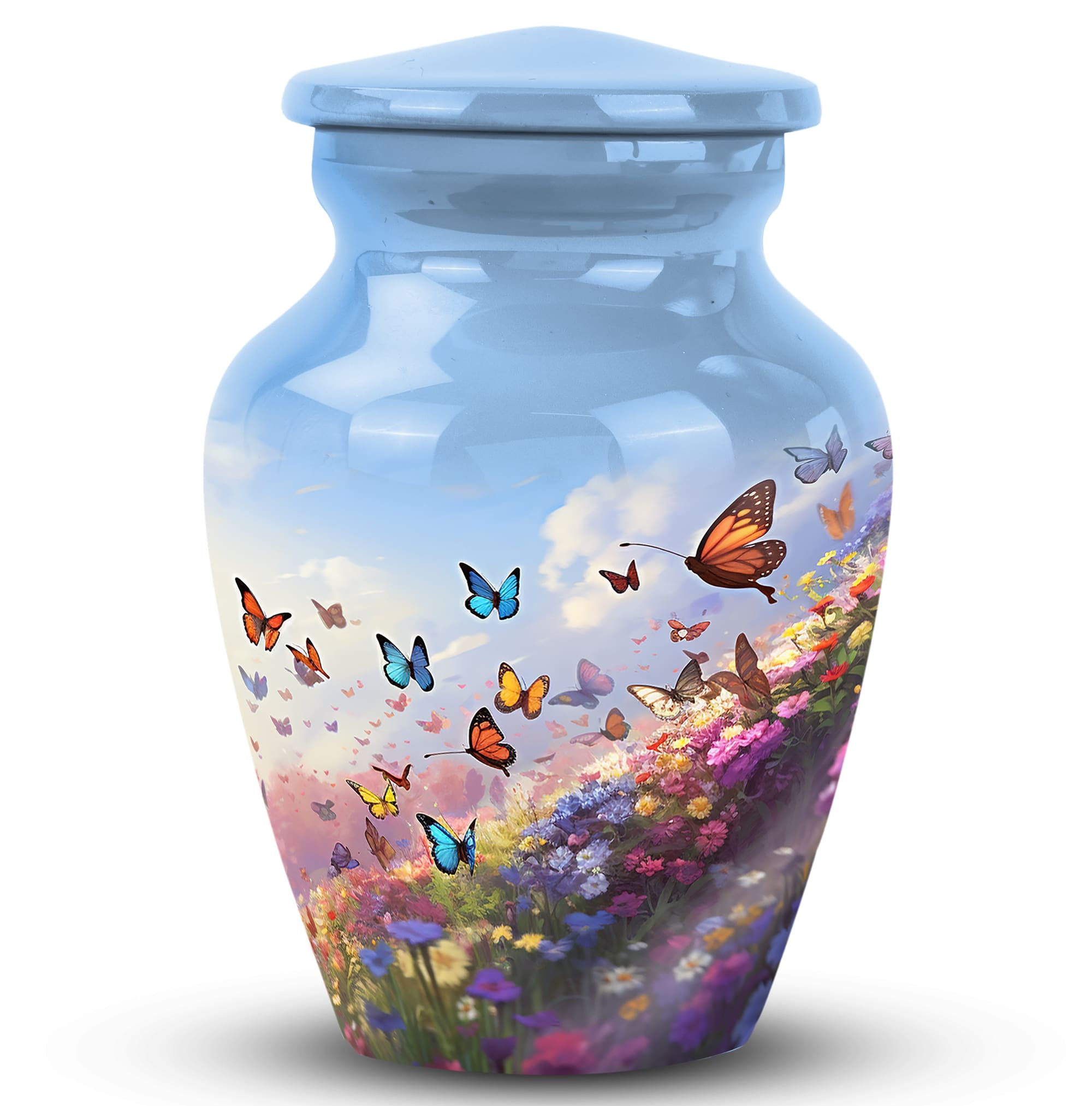 The grandeur of our Classic Urn provides a cherished way to remember your loved ones, with the serenity of our enchanting Colorful Butterflies Urns for Ashes design. Crafted from sturdy aluminum, this large 10-inch cremation urn has a capacity of 200 cubic inches, allowing you to safely hold the remains of your beloved. Weighing a solid 3.3 pounds, further enhances its performance by adding durability and stability. Brought together with its impressive three-inch size, it becomes an authentic monument of honor. This cremation urn boasts a special feature - personalized customization. You can engrave names on it to give it a more intimate touch. The package includes a luxurious velvet pouch to contain the ashes delicately. The harmonious blend of the ingenious craftsmanship and fine material makes our urns for cremation a coveted possession enriching the harmony of Memorial Urns for Ashes, Personalized Urns for Human Ashes, and Urns for Human Remains.