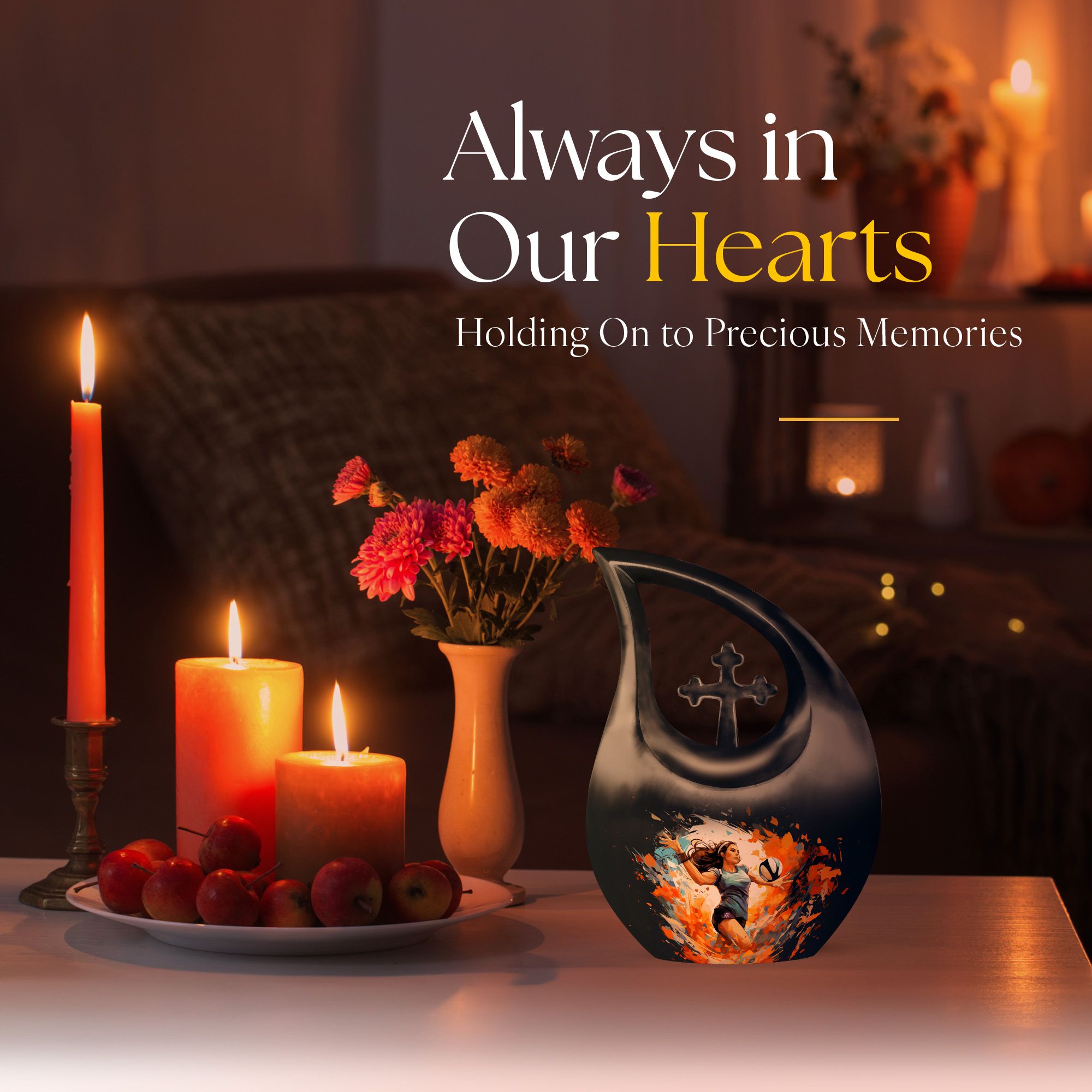 A unique and symbolic tribute, this volleyball urn honors her legacy, love for the game, and the memories that will forever live on.