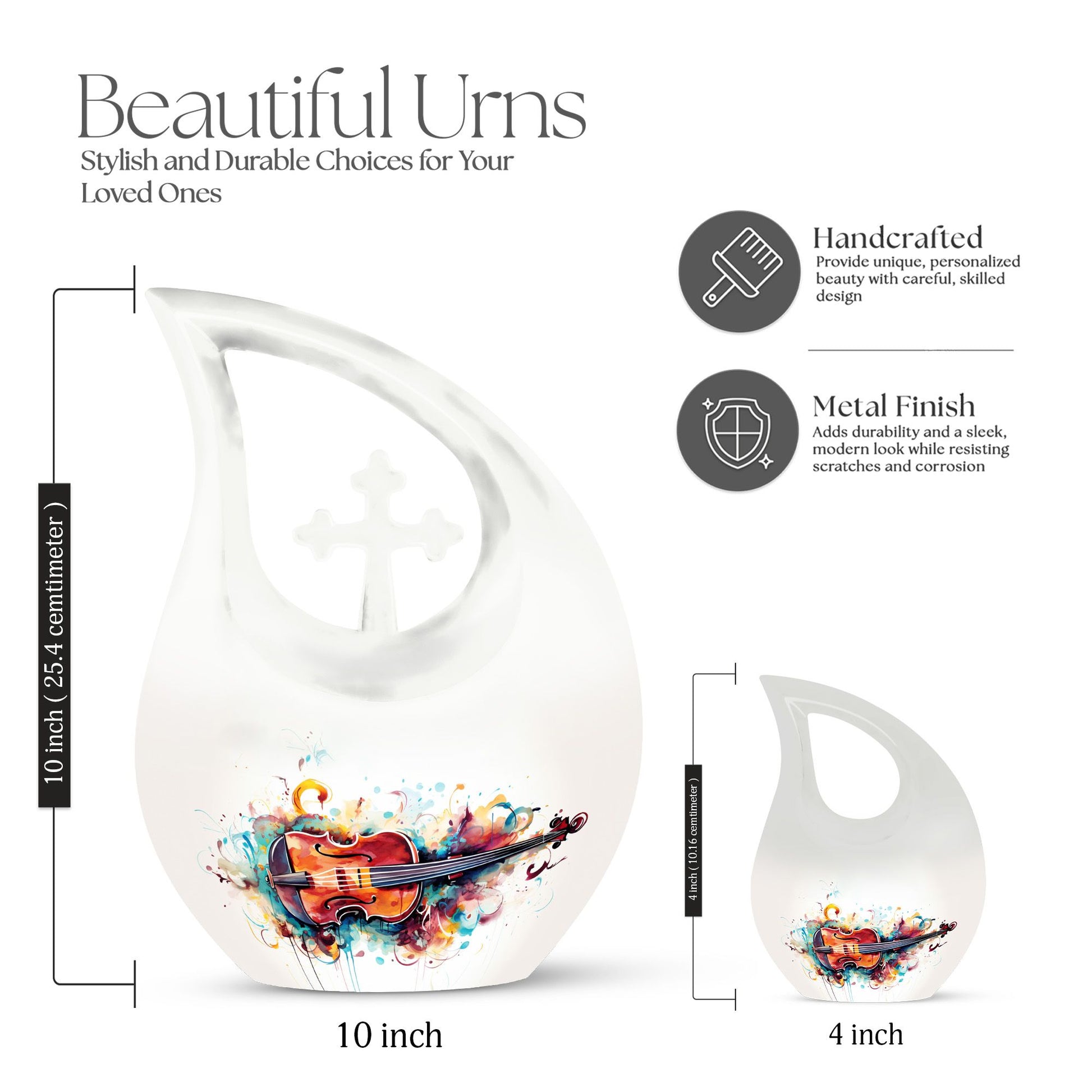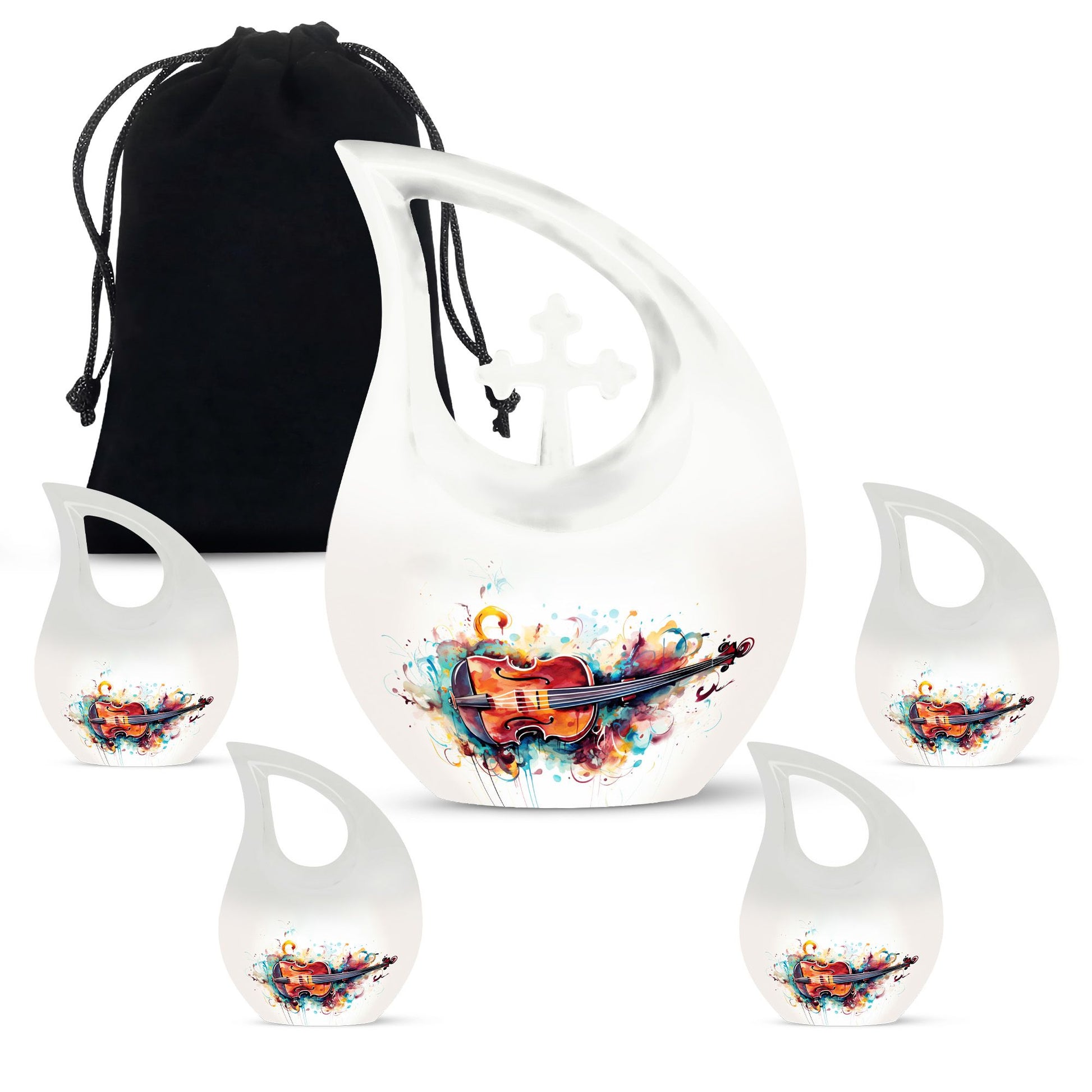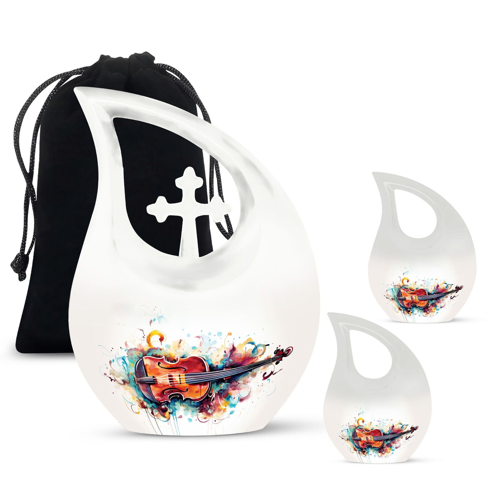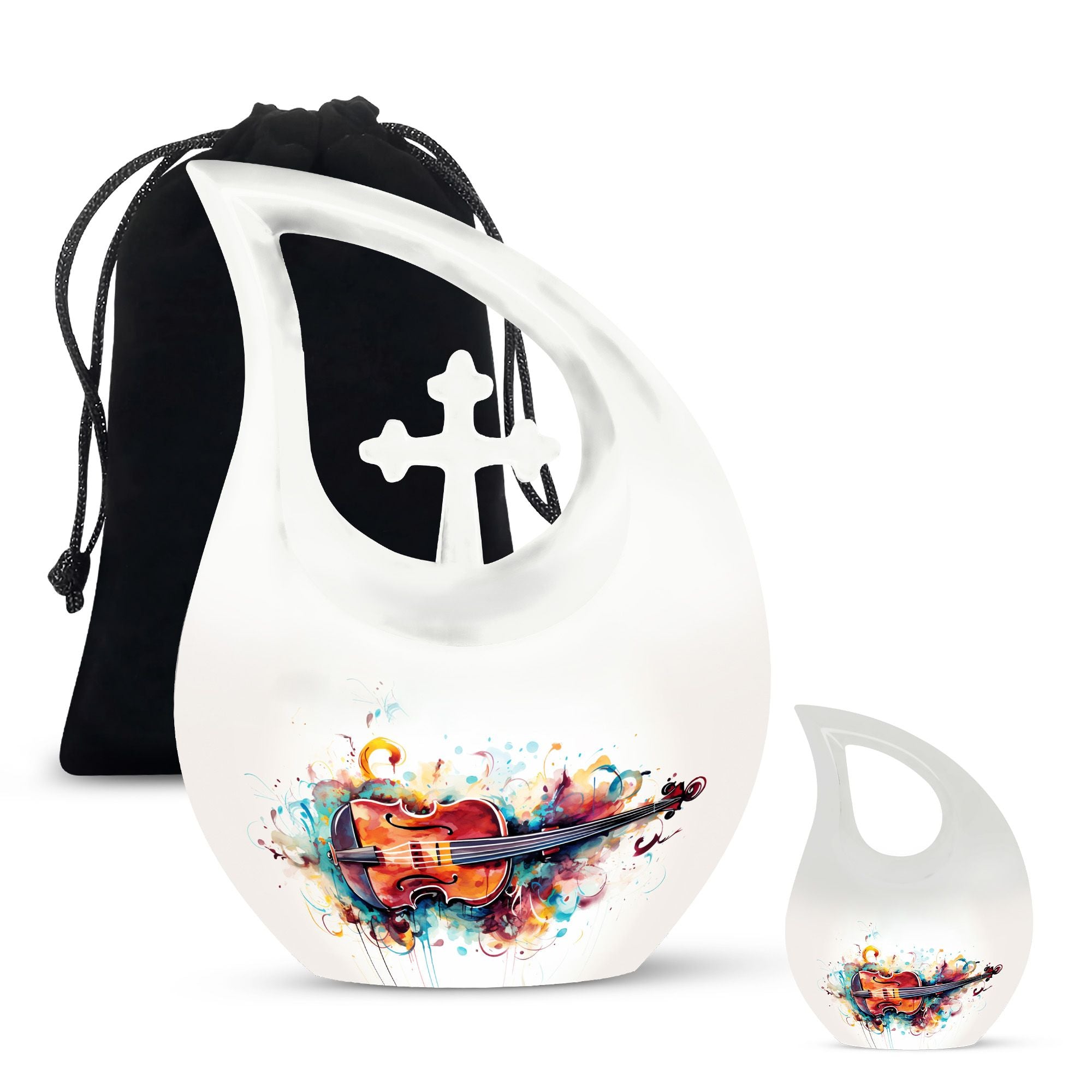 This violin small keepsake and large urn set offers a meaningful and artistic way to honor a cherished life. Designed for both men and women, it brings comfort to families seeking urns for adult female ashes, respectful urns for adult male, or a symbolic memorial for a beloved mother or father. The combination of a full-size urn and matching keepsake provides flexibility for remembrance, sharing, or travel.