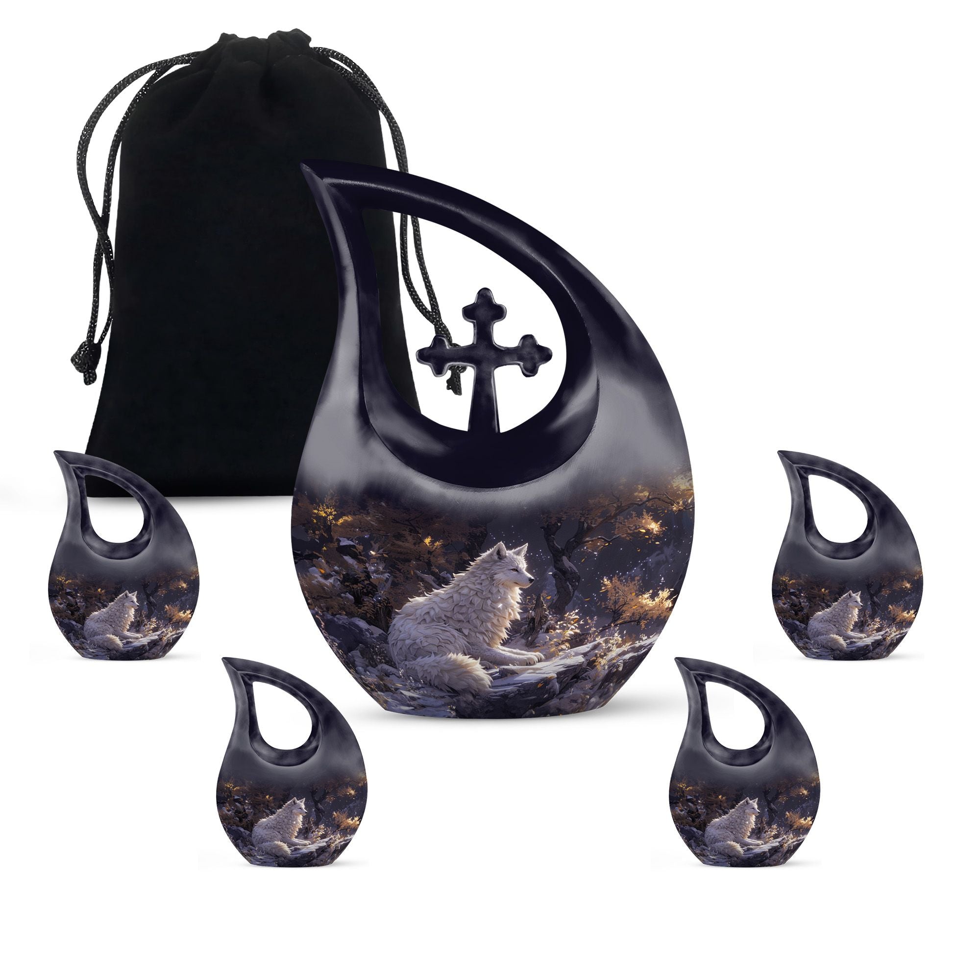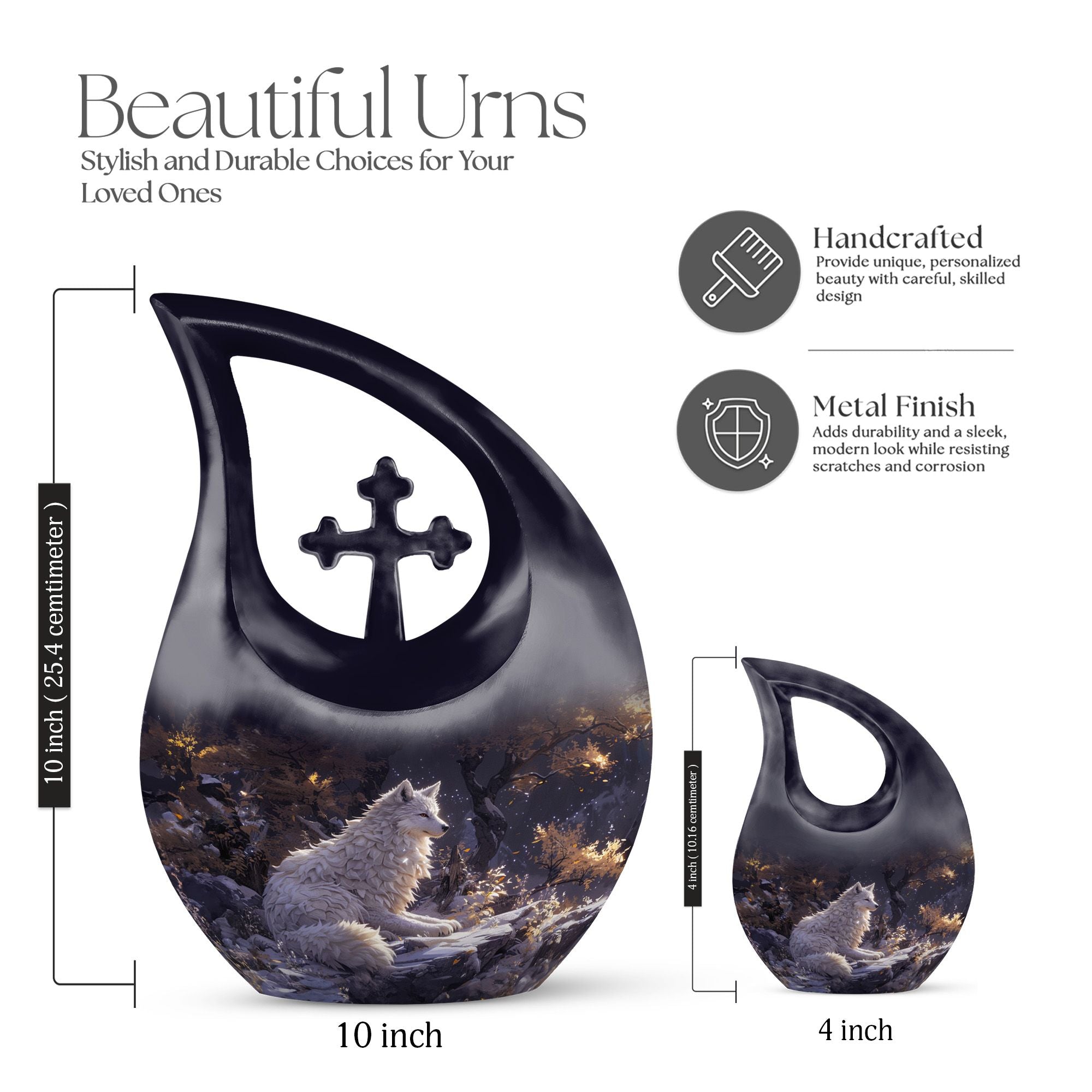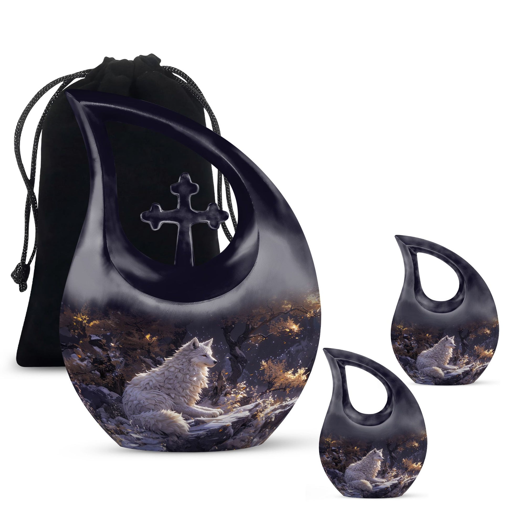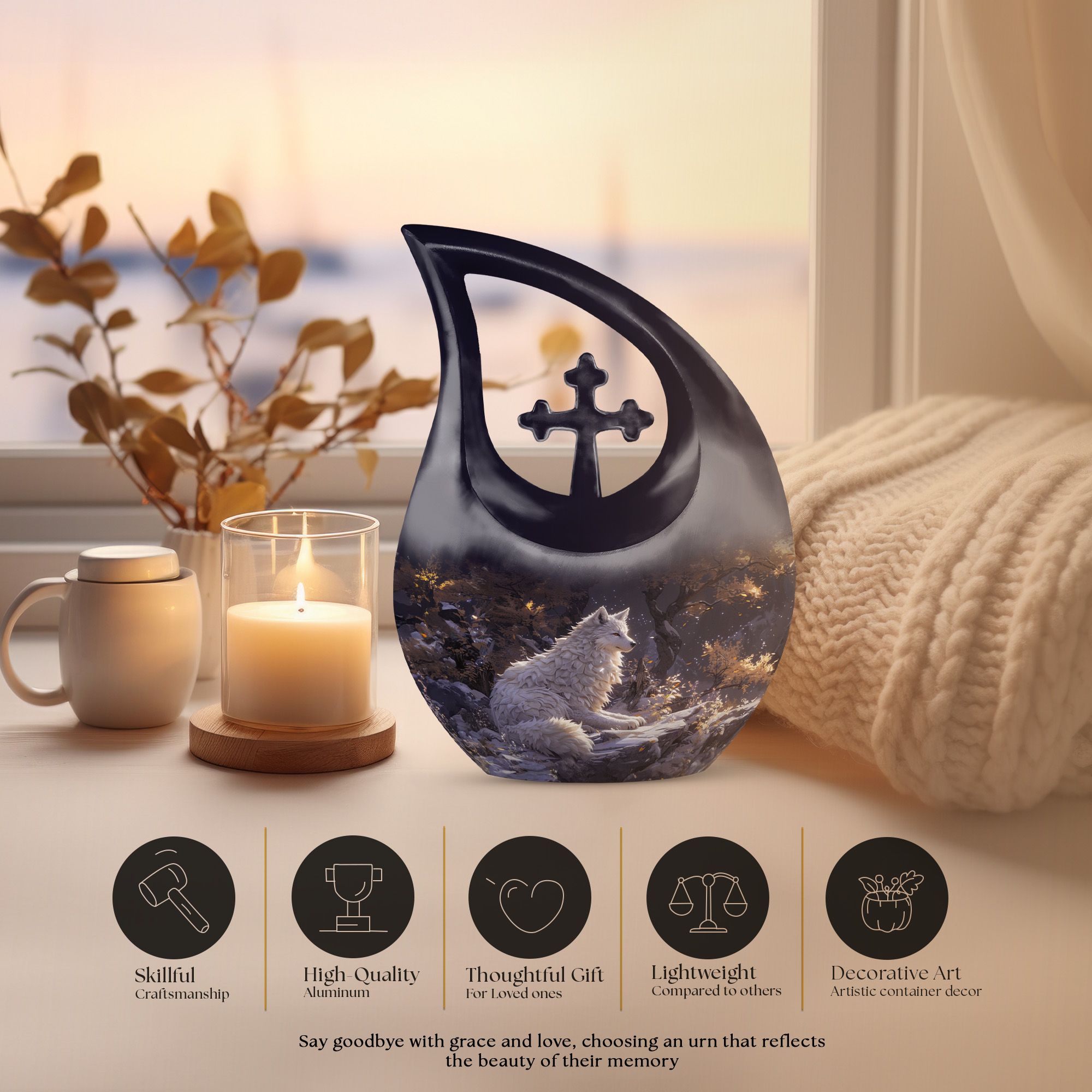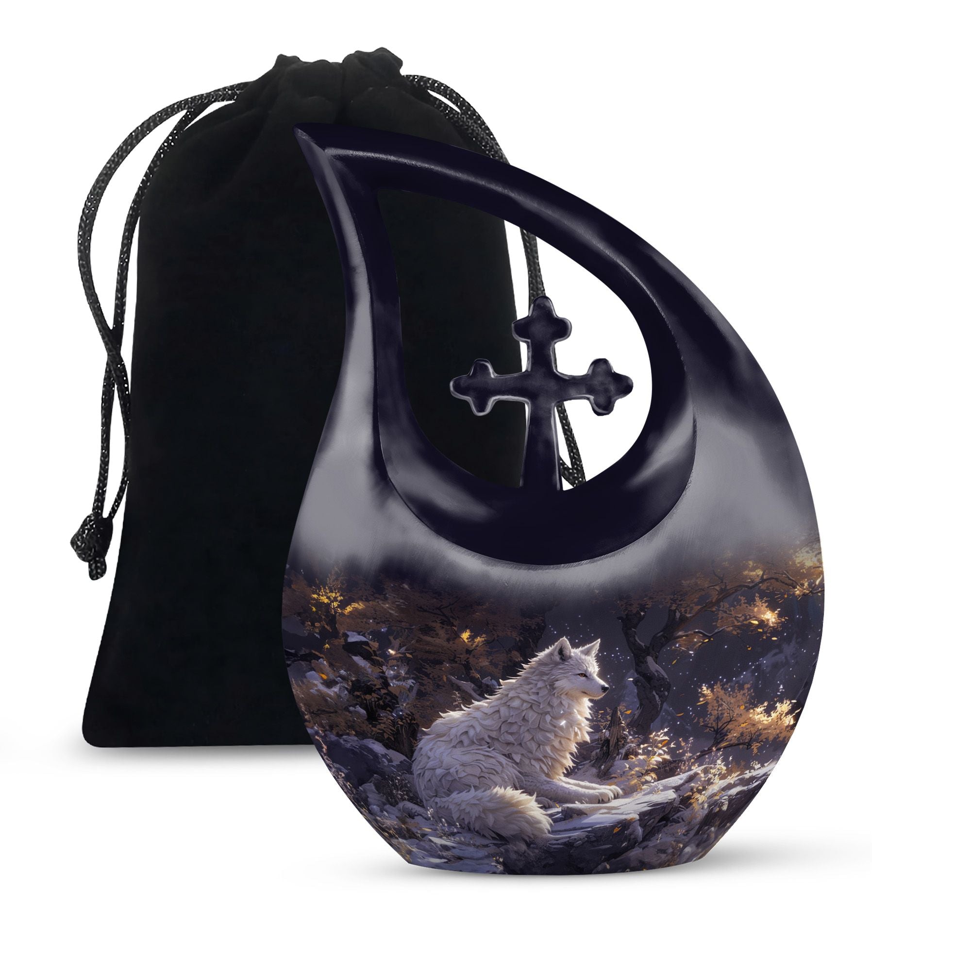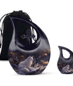The Winter's Whisper Urn is an aesthetically pleasing and meaningful tribute, perfect for adults and seniors seeking memorial ceremony supplies. This large aluminum urn stands 10 inches tall, comfortably preserving up to 200 cubic inches of ash, a fitting size for most adults. Weighing just 3.3 pounds, it possesses an impressive solidity without being overly bulky. Augmenting its abstract beauty is the unique Cross Drop motif, presenting a symbol of faith and spirituality. Personalization is possible, allowing you to inscribe names on it and making it more special and intimate. It comes along with a velvet pouch, providing discretion and subtle elegance in safeguarding cherished memories. This container is not just another one of the ashes urns for sale; it represents remembrance, reverence, and respect. Encapsulate precious memories with the Winter's Whisper Urn, emblematic of a life well-lived and profoundly missed.
