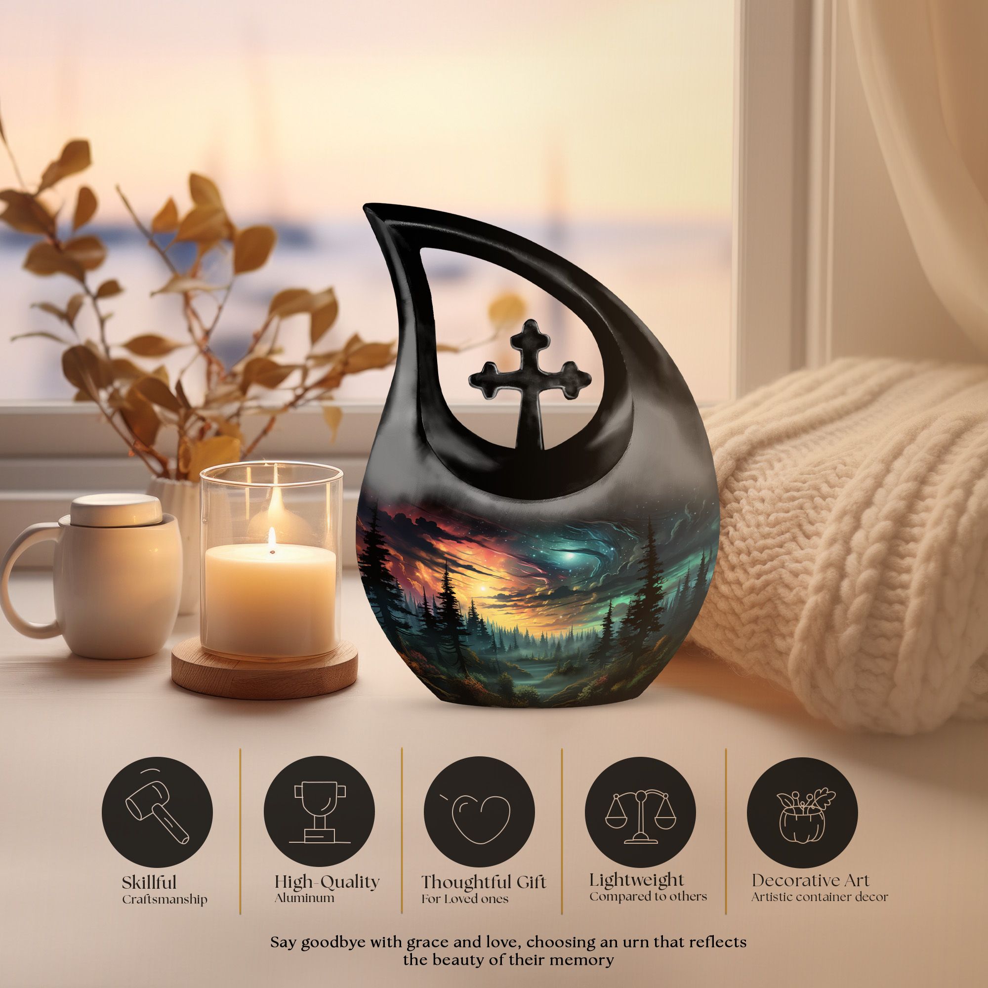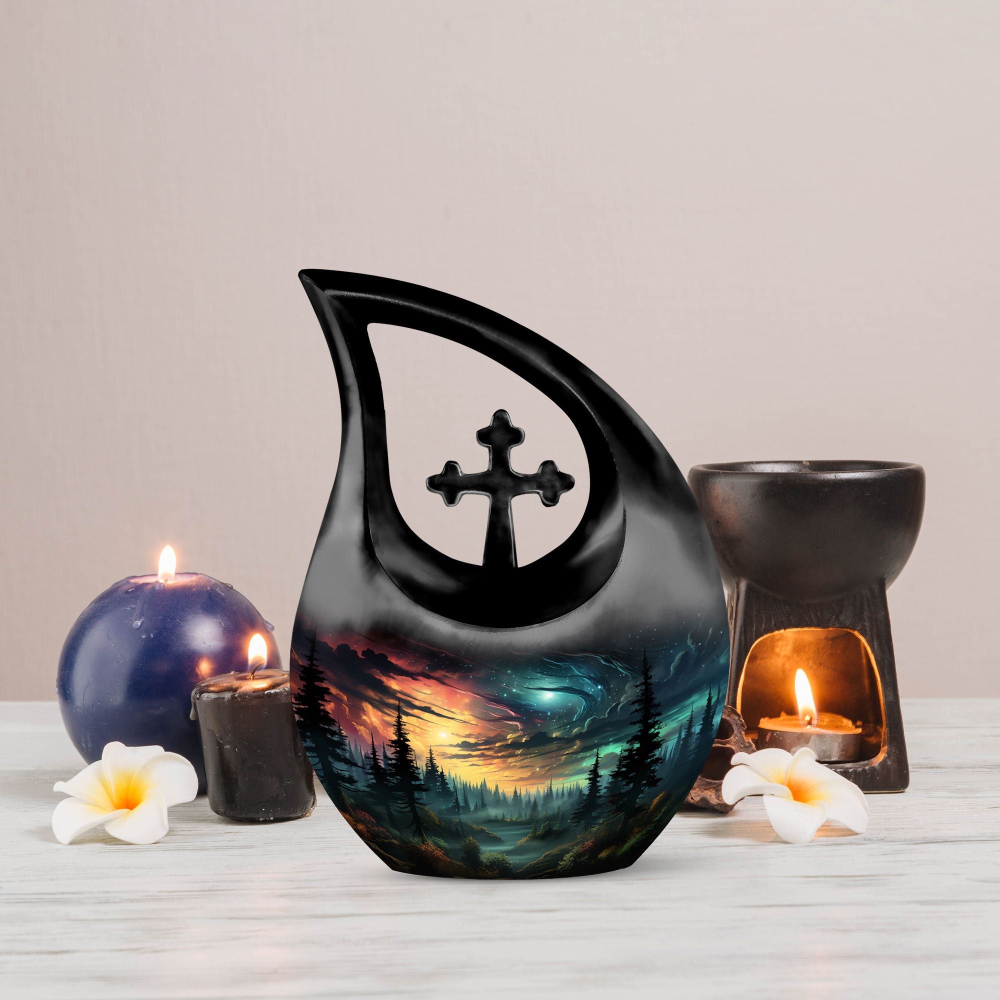 The Artistic Forest Black Urn is a heartfelt tribute designed to honor the beautiful memories of someone dear. This elegant and timeless urn reflects love, serenity, and individuality, offering families a dignified way to preserve ashes. Perfect for those seeking unique urns for ashes or a funeral cremation keepsake, it captures the depth of remembrance in every polished detail.