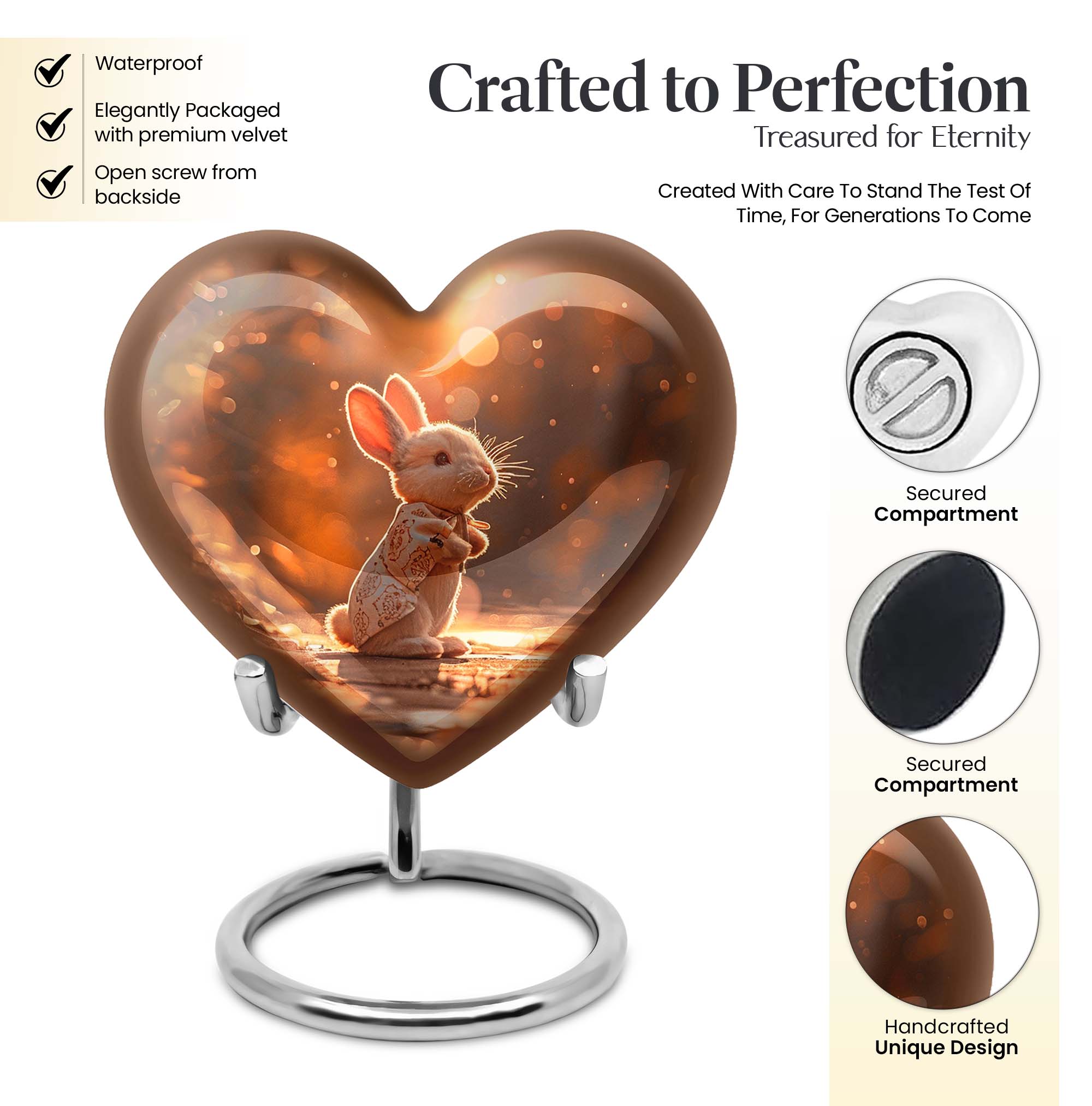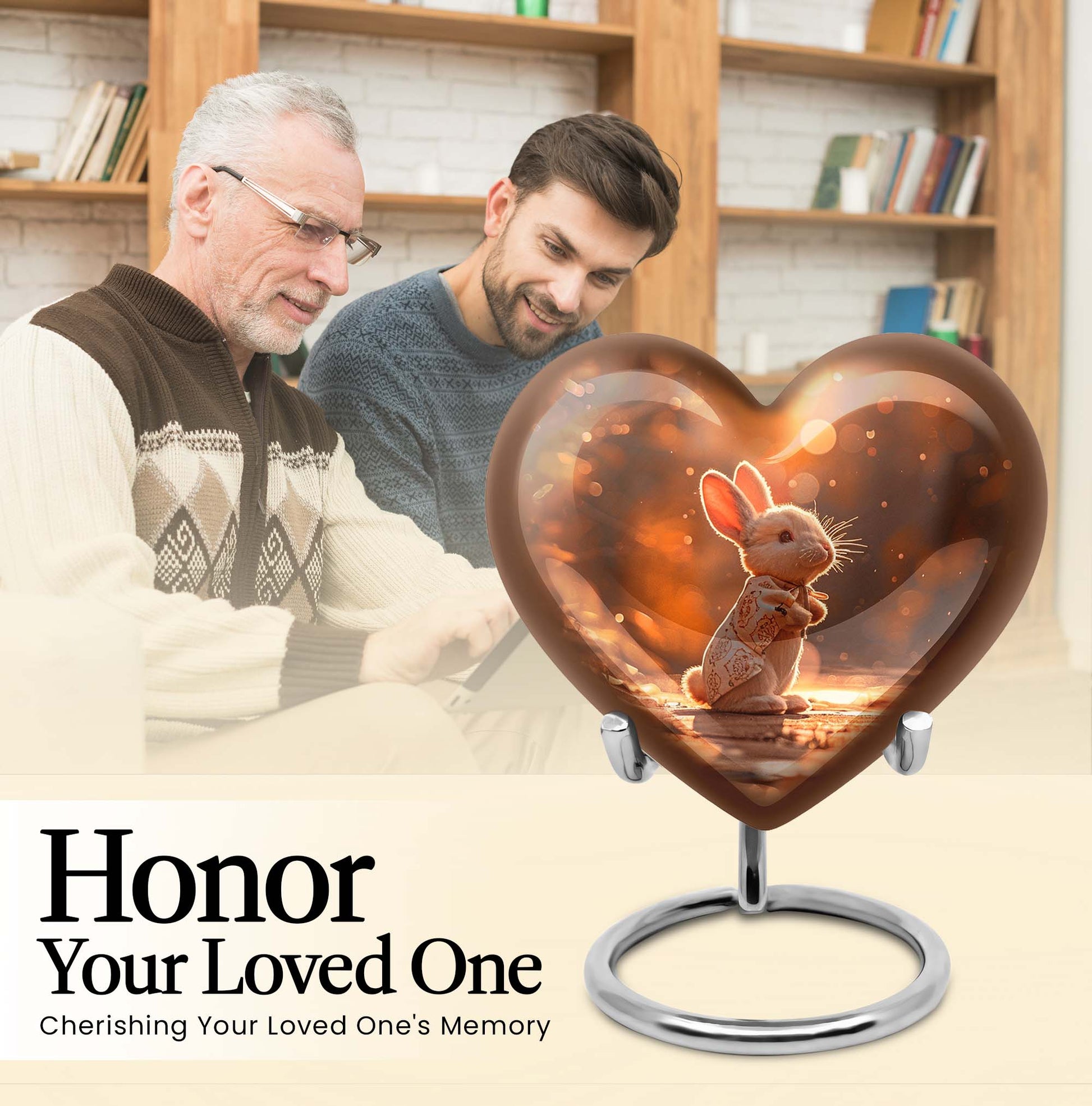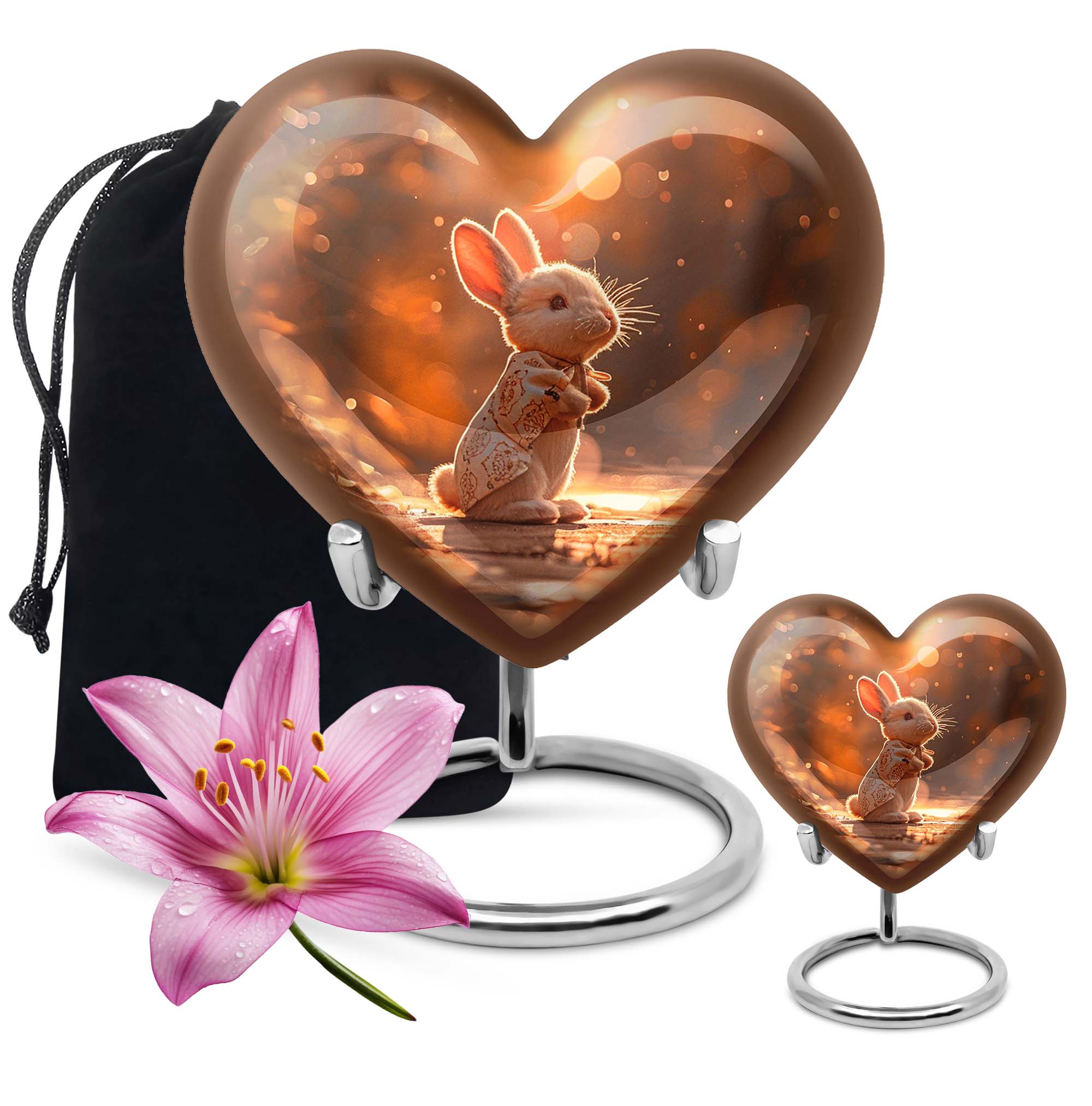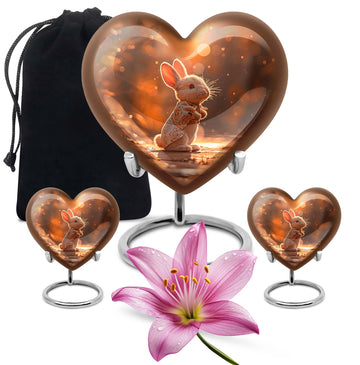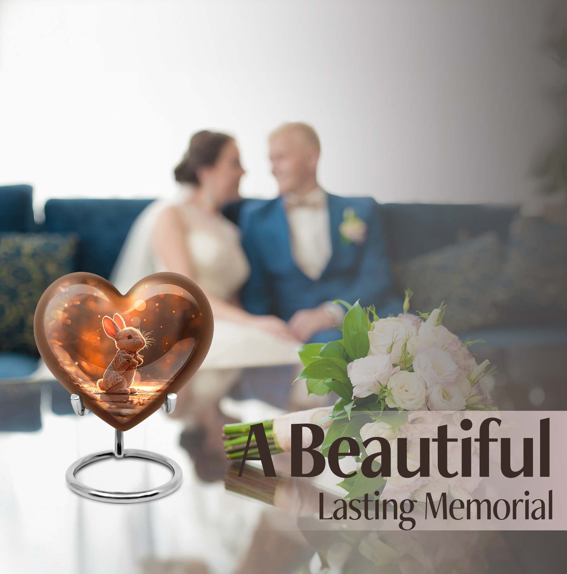 Dignify the memory of a beloved one with our White Bunny Moon Urn. This large urn, a notable addition to our memorial urns collection, holds a capacity of 200 cubic inches. Crafted from durable aluminium, the urn weighs 3.3 pounds and stands proudly at 10 inches in height. Its abstract theme captures the essence of eternal love, presenting a symbolic remembrance of life's fleeting nature. Personalize this urn with engraved names to carry your dear one's memory with you at all times. This cremation dad urn comes with an exquisite velvet pouch for containment of ashes, signifying eternal tranquility. The significant size meets the requirements for burial urns for adult men ashes. It's more than a human urn, embodying the love shared and the memories created. Mingle with the moon's serenity as you cherish memories of your lost loved ones. Affordability meets elegance with this white bunny moon urn, an iridescent memorial that speaks volumes of love and peace. Its timeless appeal and tasteful touch makes it a precious keepsake. An extraordinary alternative to traditional urns, let this be an intimate tribute to your cherished ones.