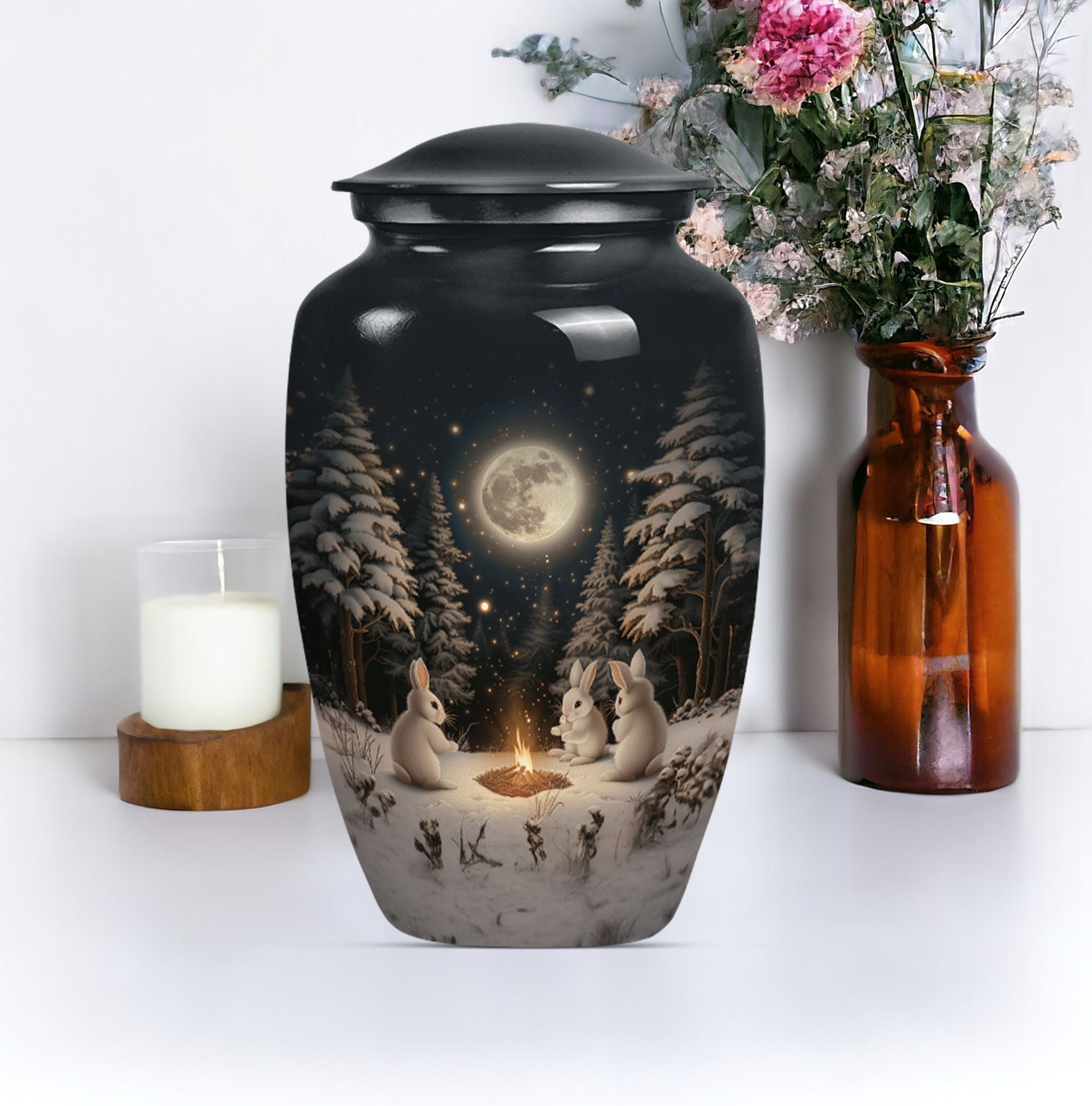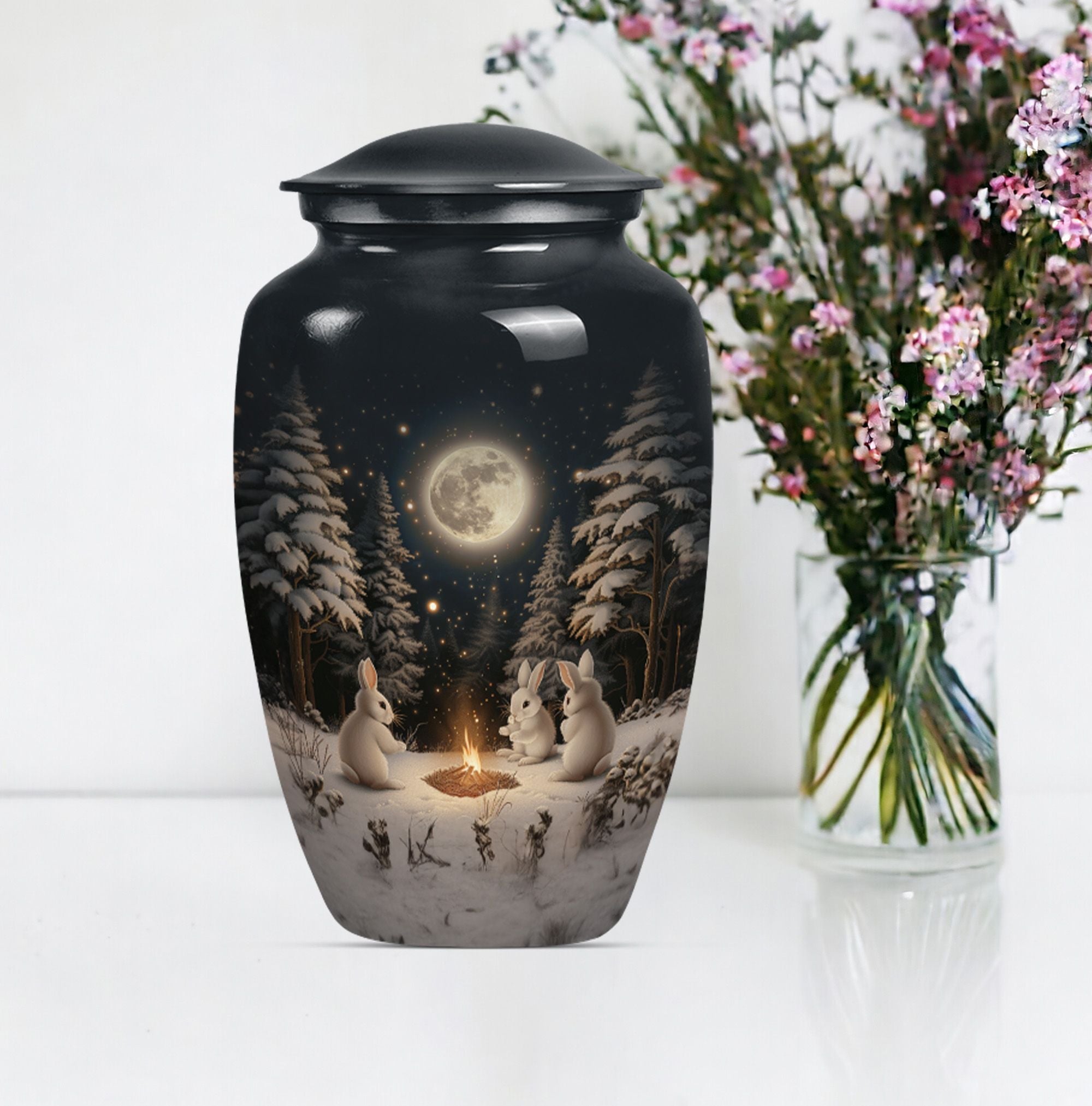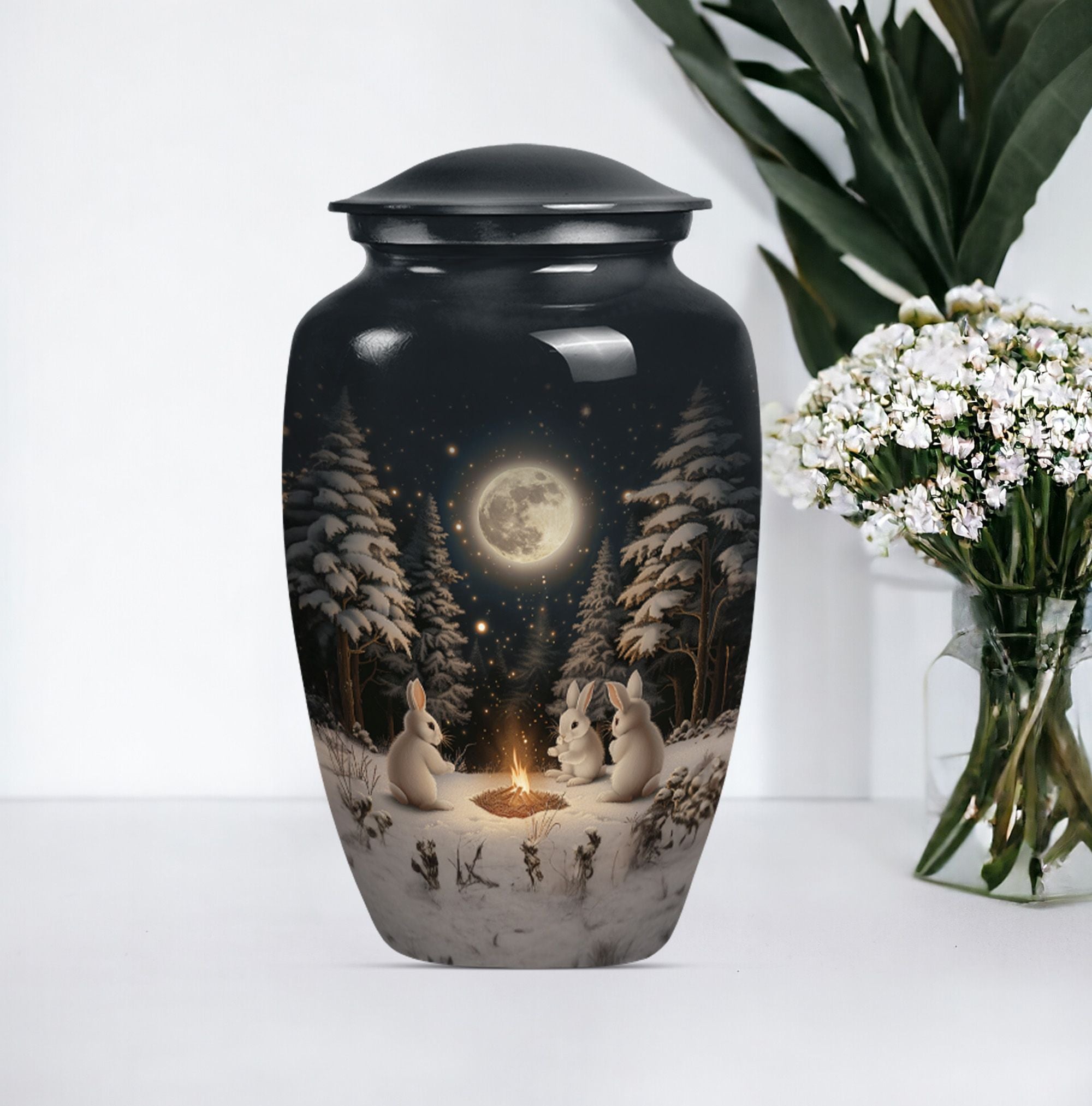 Celebrate the cherished memories of your loved ones with the White Bunny Snow Moon adult urn. Designed to honor both men and women, this exquisite piece provides a dignified and heartfelt way to preserve ashes. Funeral urns for men and cremation urns for women are thoughtfully crafted to offer comfort during remembrance.