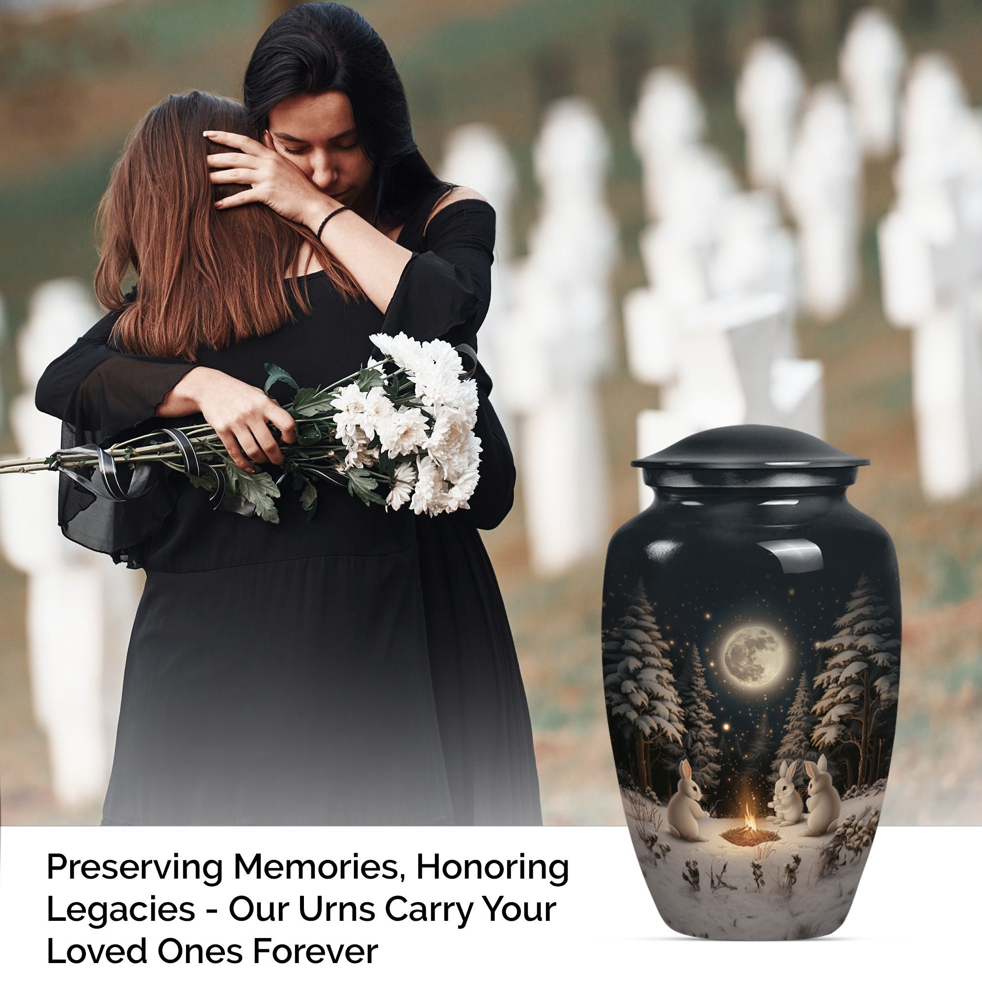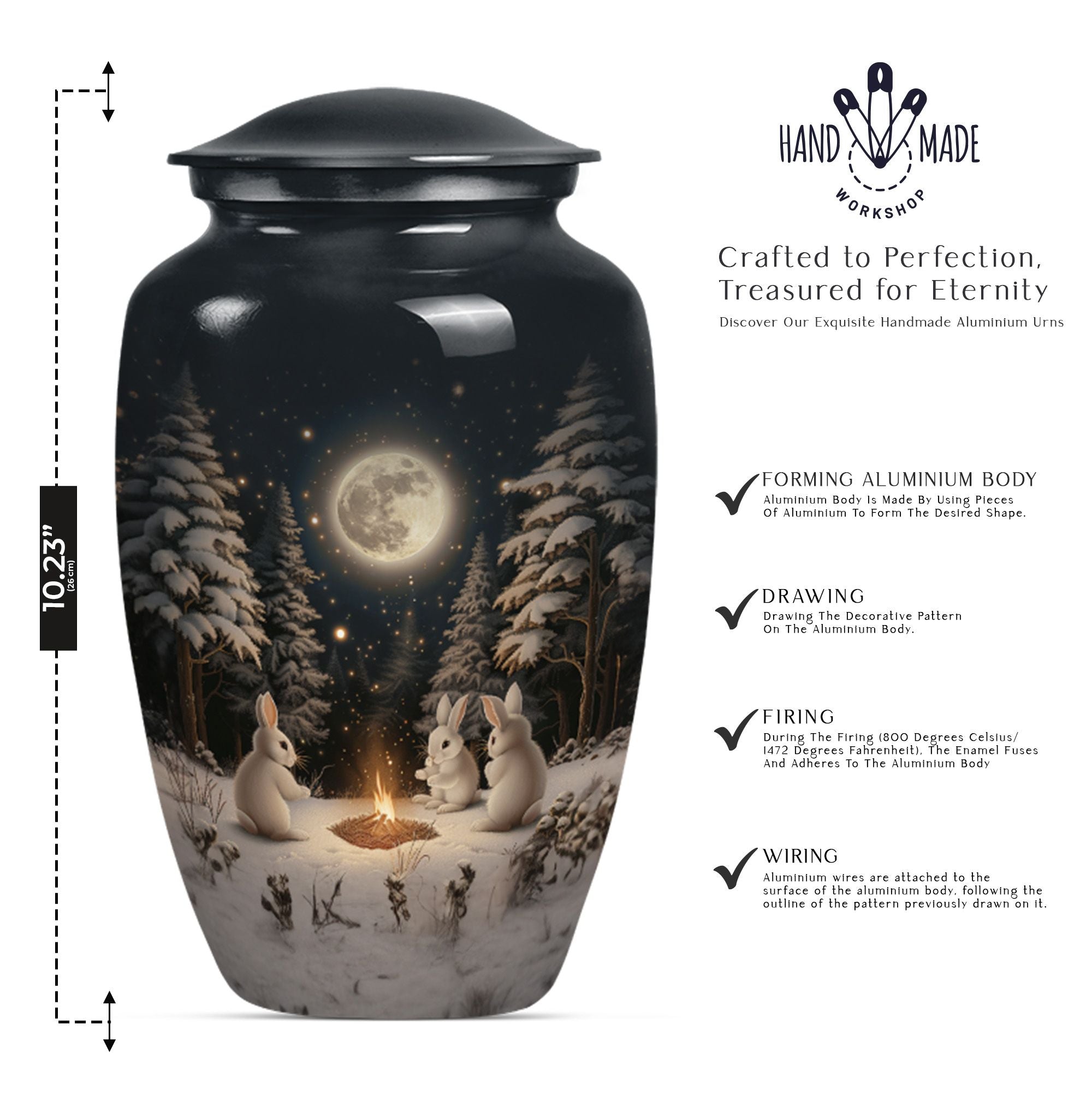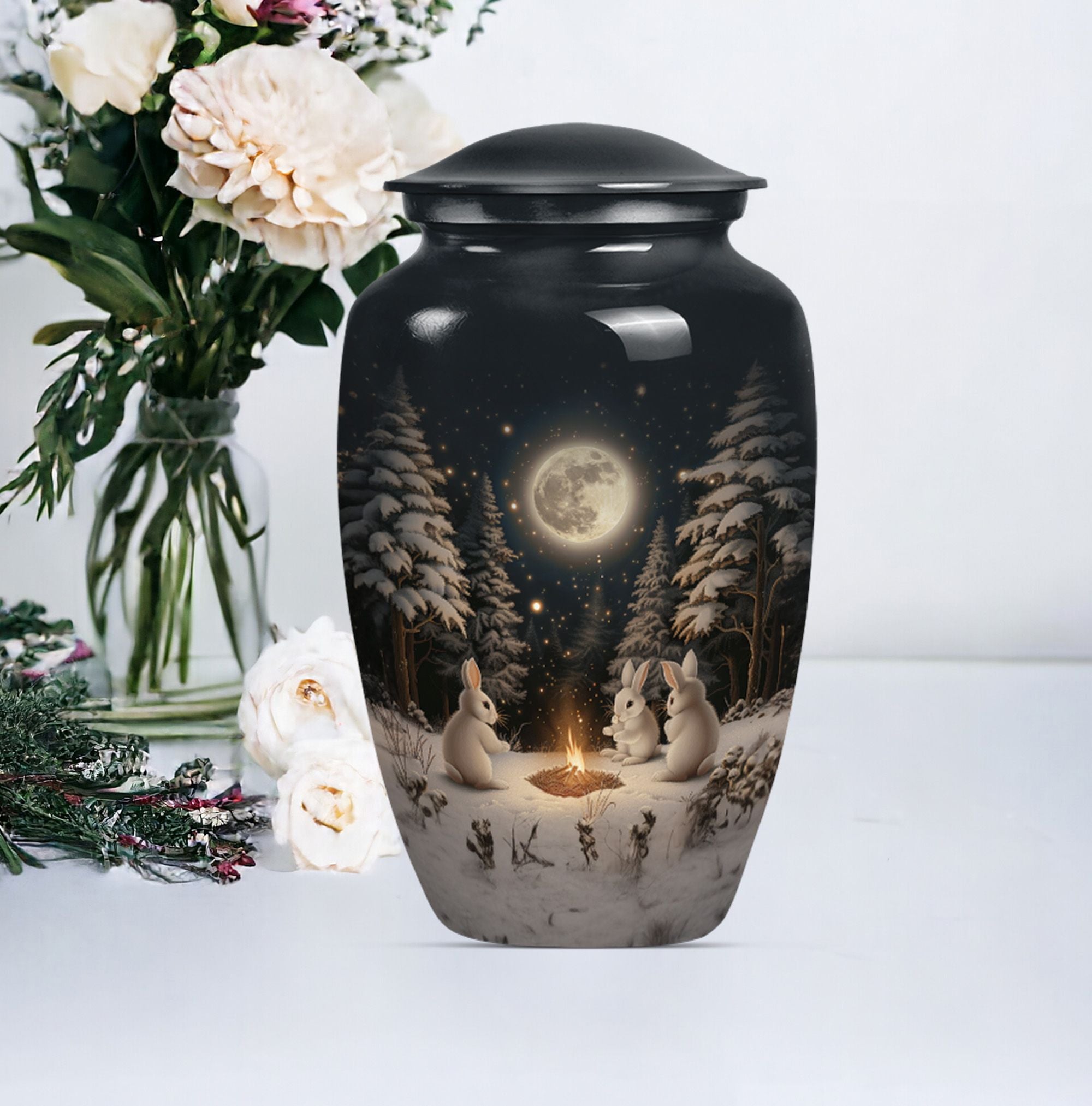 Celebrate the cherished memories of your loved ones with the White Bunny Snow Moon adult urn. Designed to honor both men and women, this exquisite piece provides a dignified and heartfelt way to preserve ashes. Funeral urns for men and cremation urns for women are thoughtfully crafted to offer comfort during remembrance.