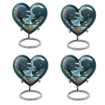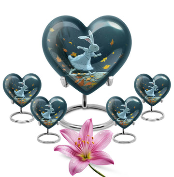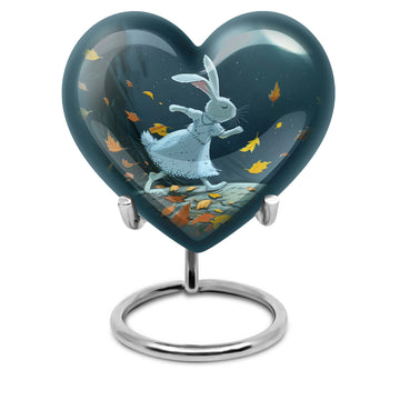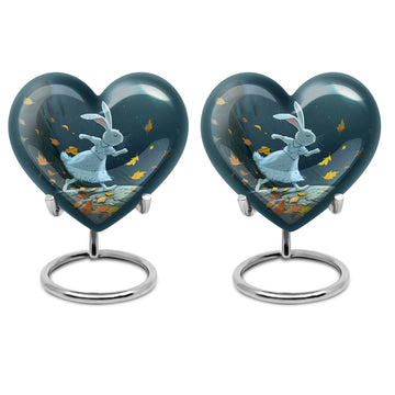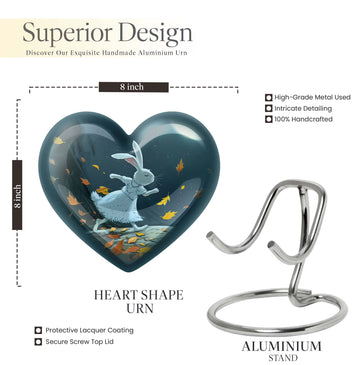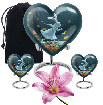 Honor your departed with our captivating 10-inch white bunny moon urn, a profoundly purposeful cremation urn that serves as an elegant final resting place. Crafted from superior aluminium, this large urn boasts an abstract theme that resonates with the serenity of a heavenly journey. It has an accommodation capacity of 200 cubic inches, ideal for preserving adult human ashes. This cremation urn for ashes has a sturdy weight of 3.3 pounds, and with dimensions standing at 10 inches in height, it's an appropriate size for most memorial display spaces. Our package includes a velvet pouch for the containment and protection of ashes, adding another layer of respect and dignity. Add a personal touch by engraving names on this beautiful artifact, making it a touching homage to your loved one's life and times. This product is not merely a burial urn; it's a tactile memory that one can hold, cherishing the imprints that your loved one left behind. Ideal for modern-day memorial ceremonies, discover the tranquility of remembering within this special urn.