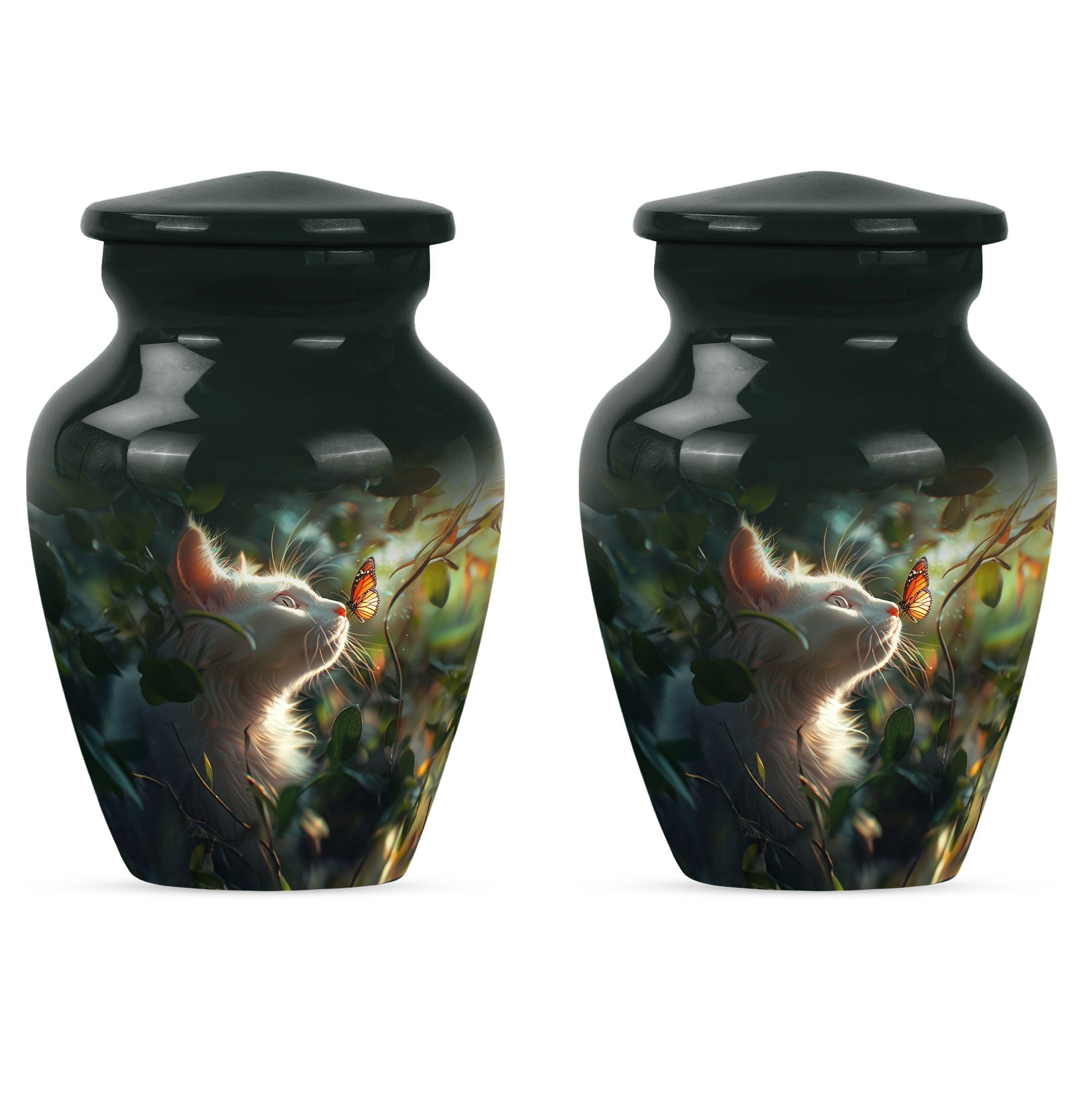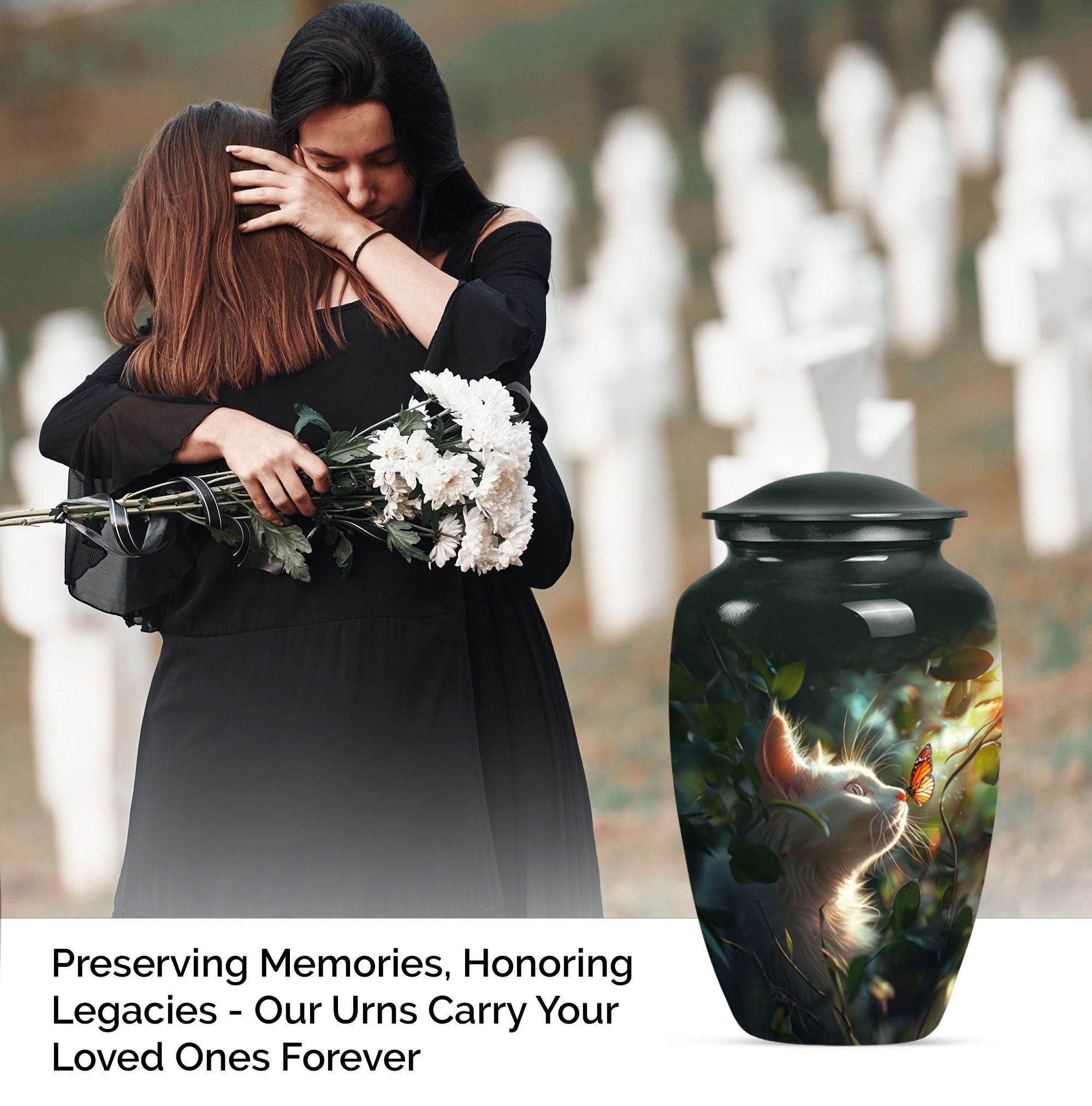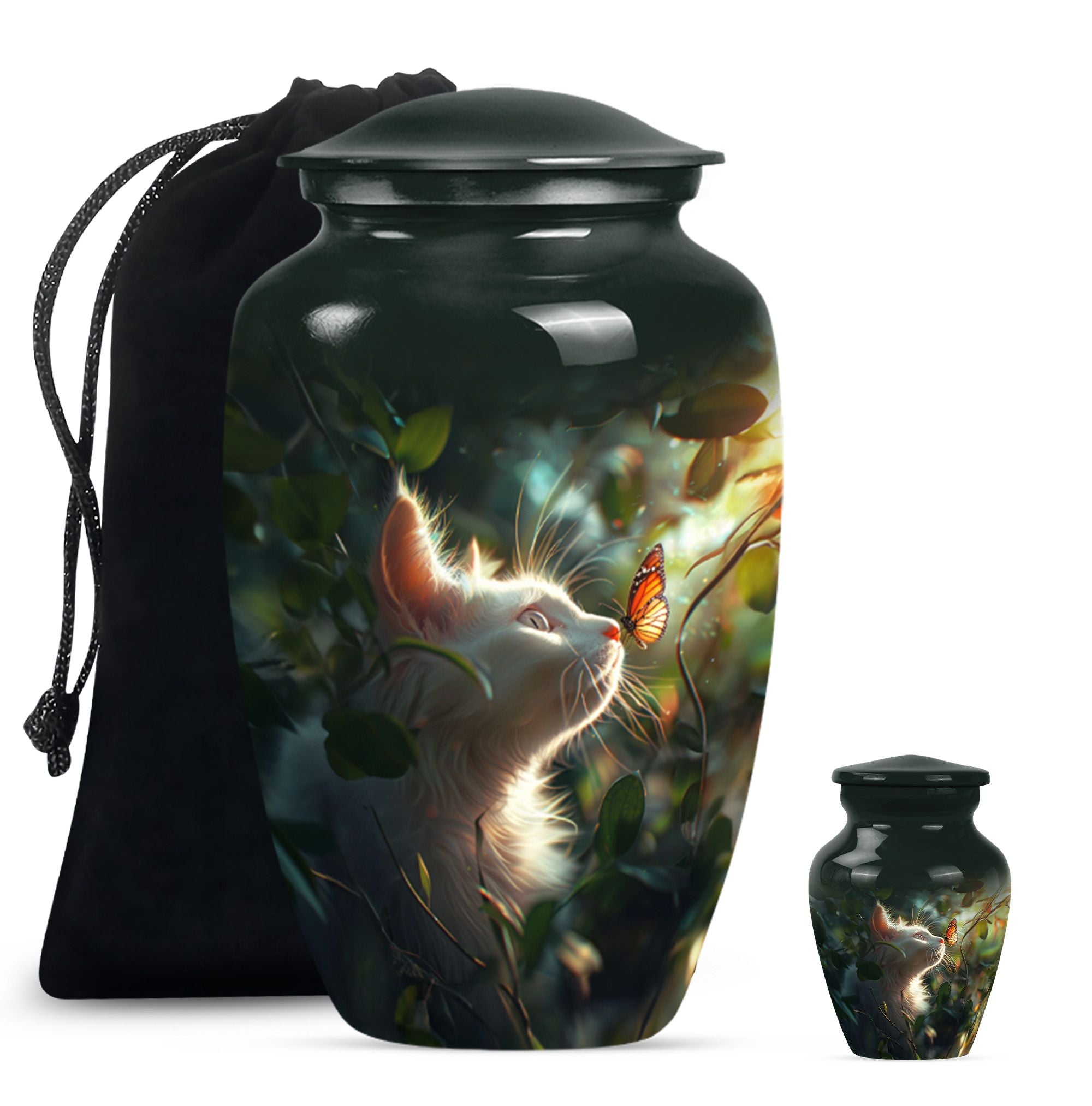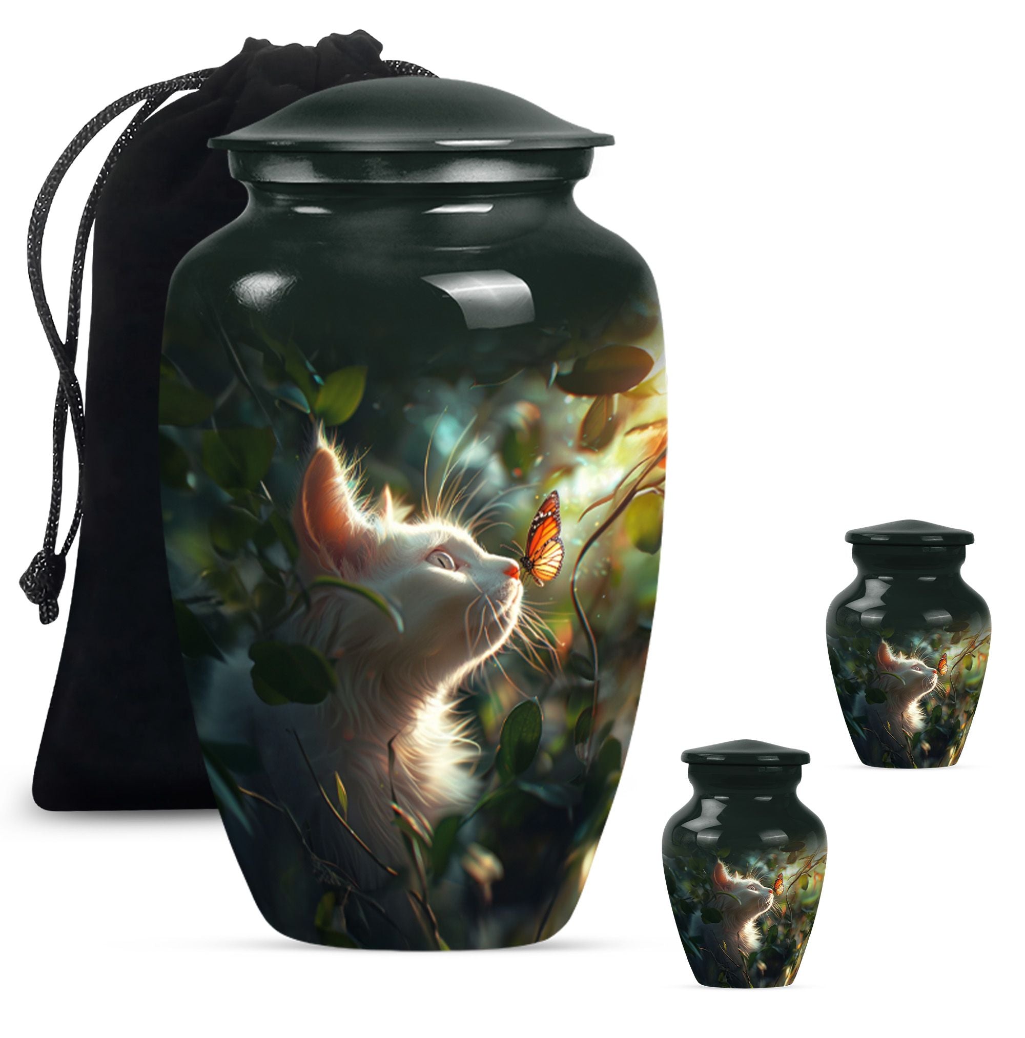Honor your departed loved ones with our exquisite white cat urn, a precious tribute to their timeless memories. Our sizeable 10-inch urn is elegantly crafted from high-quality aluminium, epitomizing the balance between endurance and delicacy. The urn’s abstract theme adds a unique aesthetic appeal to it, considerably enhancing its value as a memorial. Our item offers an impressive 200 cubic inches capacity, ensuring sufficient space for adult human ashes. Each package includes a plush velvet pouch, adding an extra layer of protection and reverence for the precious contents. Ease your worries about any potential mishandling as the urn weighs only 3.3 pounds. Add a heartwarming touch to the memorial with our personalization option that allows you to engrave names onto the urn. Whether it’s for a funeral or burial, our cremation urn serves as an ideal medium urn for human ashes. Cherish your loved ones’ memory with the rich aesthetics and durability of our aluminium urn while ensuring a comprehensive memorial experience.