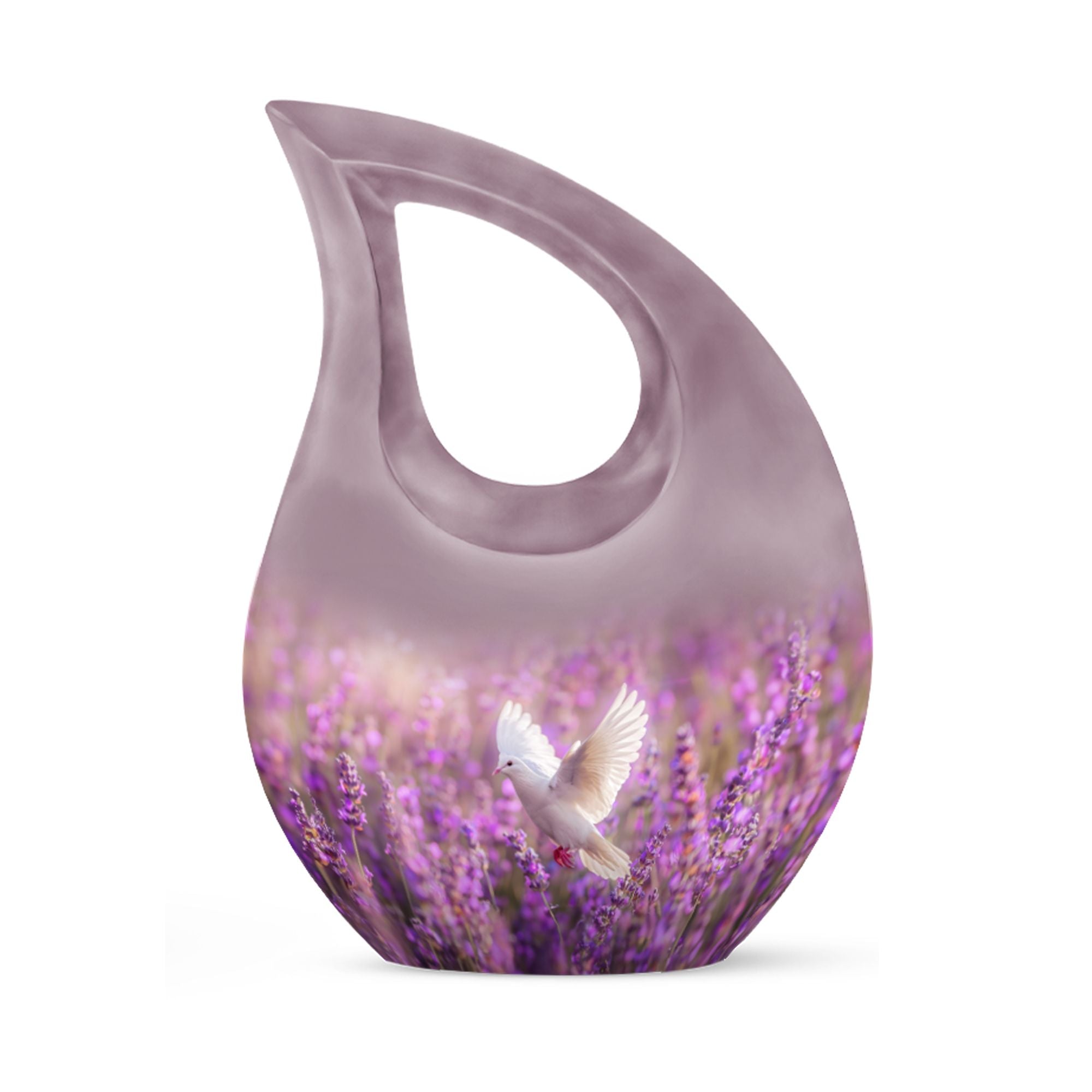 White Dove on Purple Modern Ashes Urn: A Divine Home