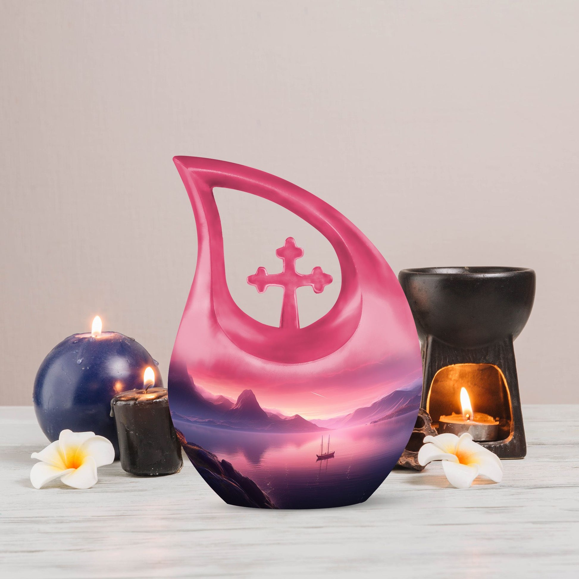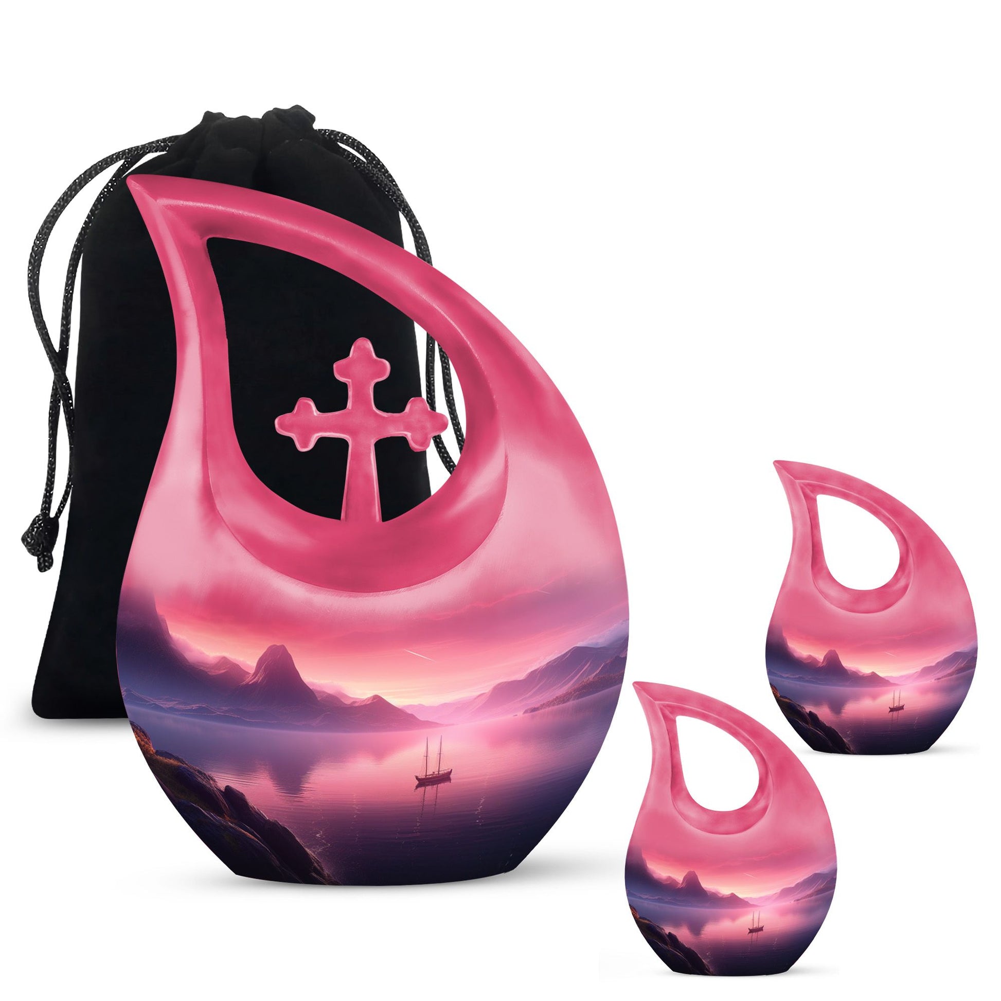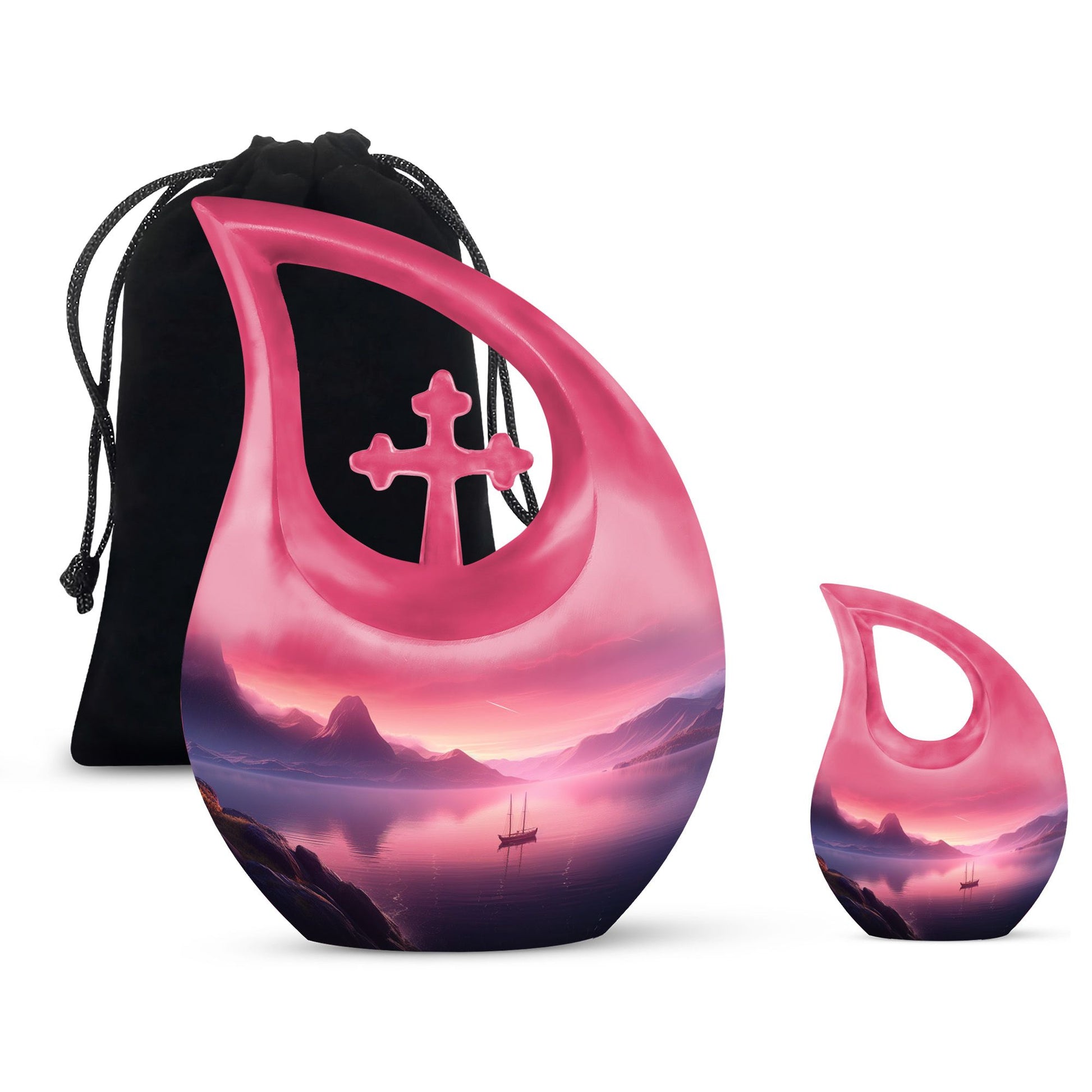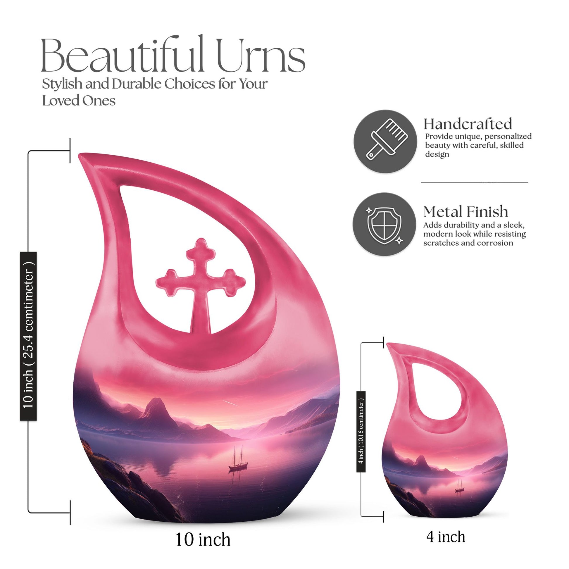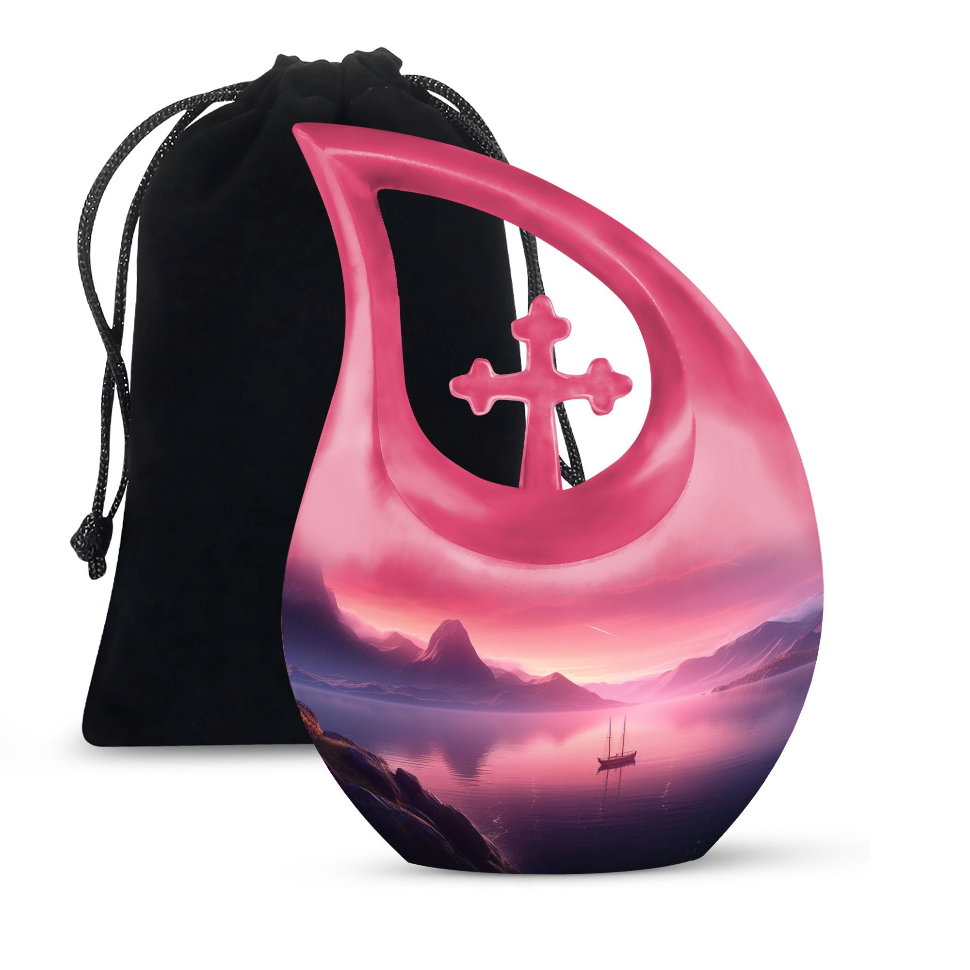Experience a serene and dignified homage to your lost ones with our exquisite Wilderness Urn, a top choice in the realm of memorial urns. This Small Keepsake Urn stands ten inches tall, carefully crafted from sturdy Aluminium, it weighs a notable 3.3 pounds. It showcases a unique Cross Drop design instilled within its make, representing a strong connection to spirituality. The Wilderness Urn dominates in its size category of large urns, holding an impressive capacity of up to 200 cubic inches. Through an intimate personalization option, you can engrave the names of your loved ones onto the urn, thereby immortalizing their memory in the most beautiful way possible. Each purchase comes inclusive of a velvet pouch for the respectful containment of ashes. This elegant Wilderness Urn is ideal for those seeking cremation caskets, burial urns for sale, or simply a large urn to honor their loved ones. Keep the spirit of your mother nearby with our Wilderness Urns for mother's ashes. Experience the tranquility that honors a well-lived life, encapsulated within our urns.