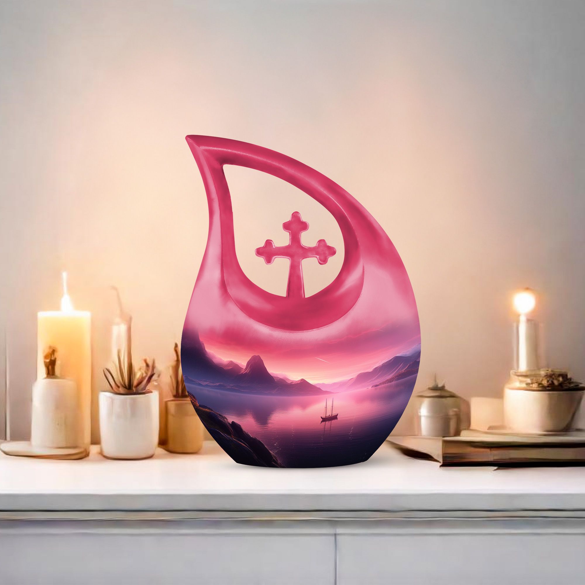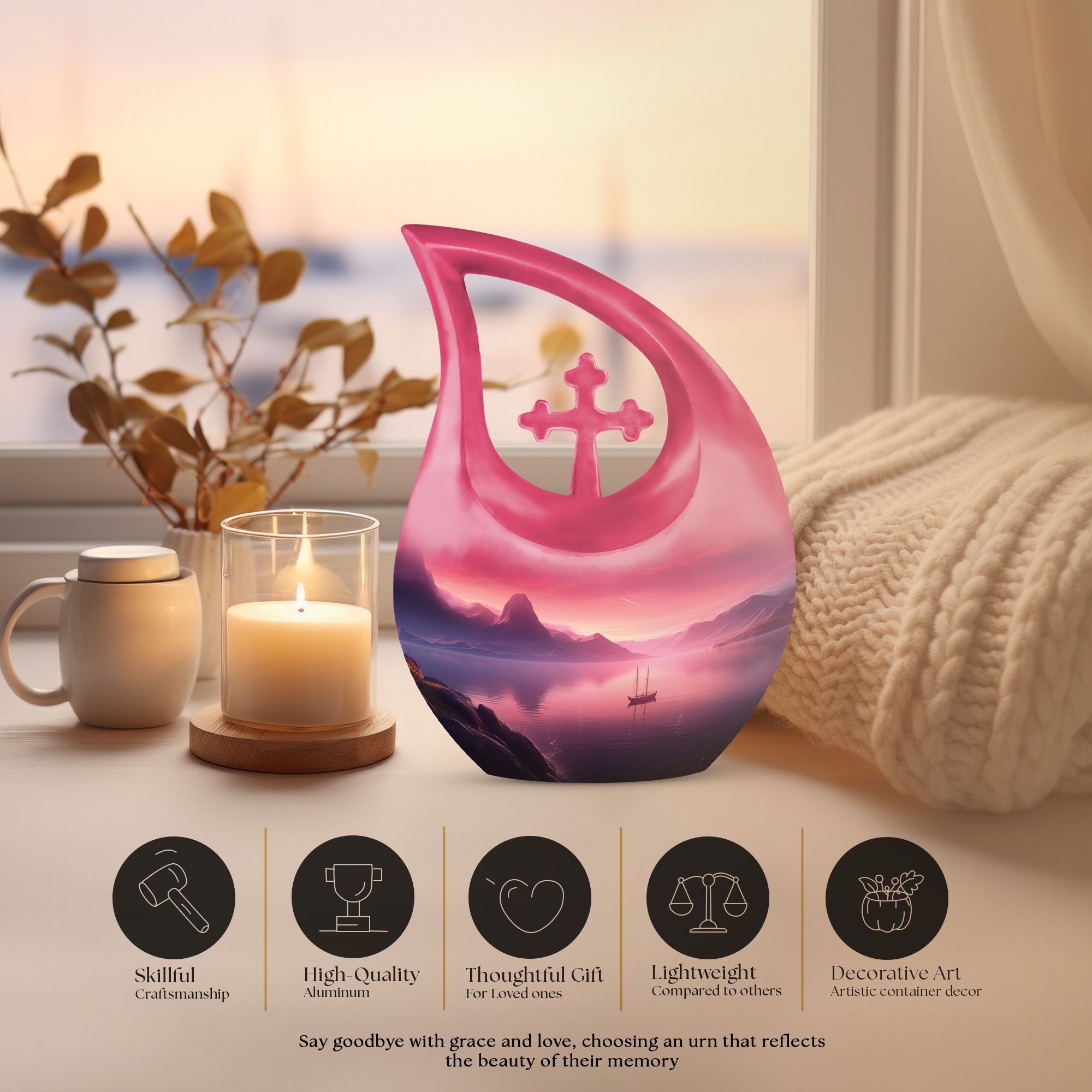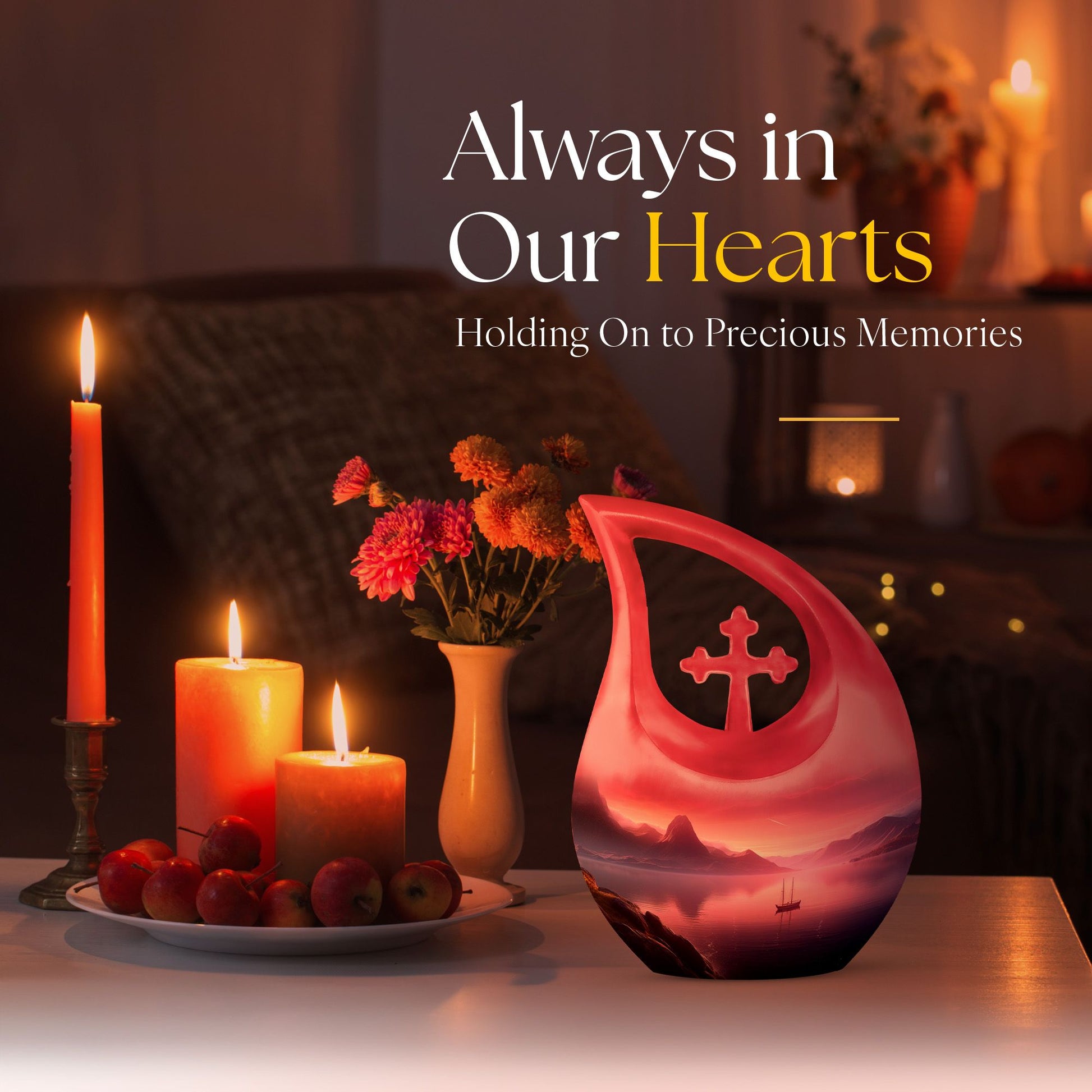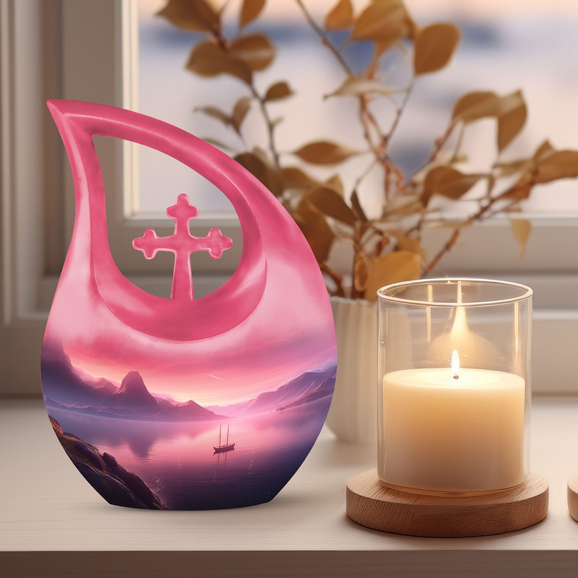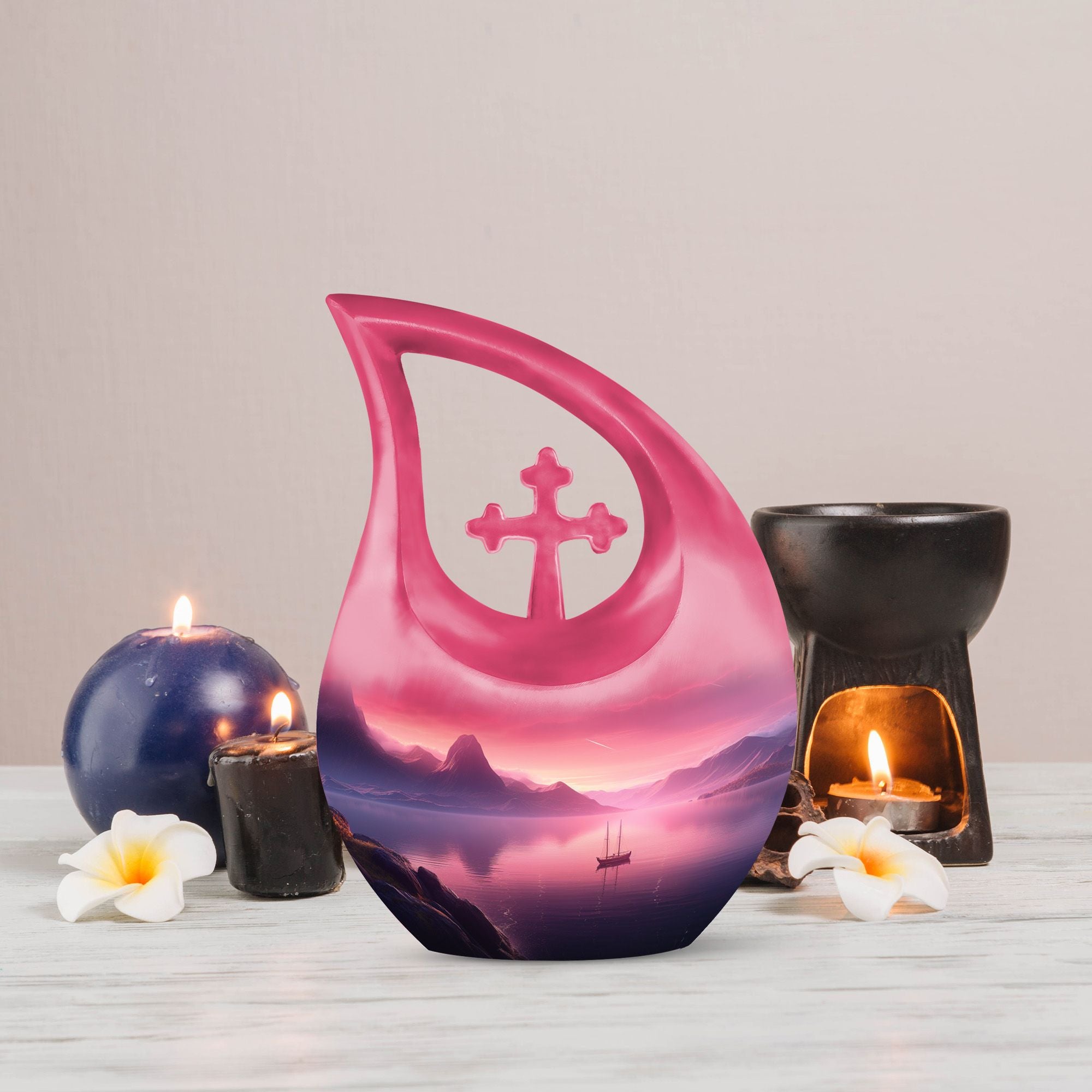 Experience a serene and dignified homage to your lost ones with our exquisite Wilderness Urn, a top choice in the realm of memorial urns. This Small Keepsake Urn stands ten inches tall, carefully crafted from sturdy Aluminium, it weighs a notable 3.3 pounds. It showcases a unique Cross Drop design instilled within its make, representing a strong connection to spirituality. The Wilderness Urn dominates in its size category of large urns, holding an impressive capacity of up to 200 cubic inches. Through an intimate personalization option, you can engrave the names of your loved ones onto the urn, thereby immortalizing their memory in the most beautiful way possible. Each purchase comes inclusive of a velvet pouch for the respectful containment of ashes. This elegant Wilderness Urn is ideal for those seeking cremation caskets, burial urns for sale, or simply a large urn to honor their loved ones. Keep the spirit of your mother nearby with our Wilderness Urns for mother's ashes. Experience the tranquility that honors a well-lived life, encapsulated within our urns.