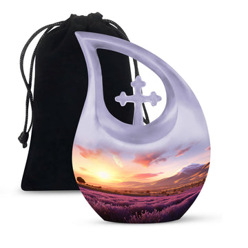 A peaceful and heartfelt tribute, this Purple Farm Cremation Urn captures the gentle beauty of a countryside sunset—symbolizing comfort, warmth, and eternal love. Designed with soft purples and sunset tones, it offers a meaningful memorial for families seeking a sunset ashes burial urn for women or a comforting selection among funeral urns women.