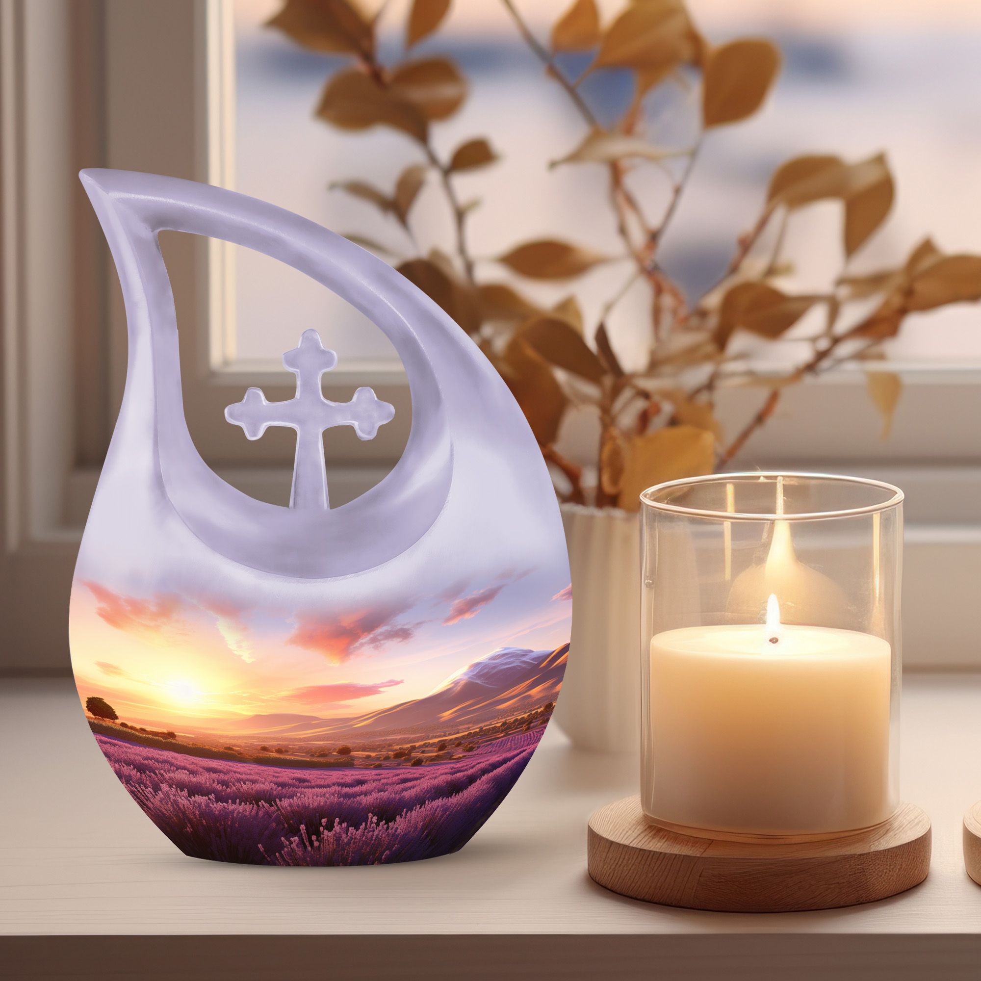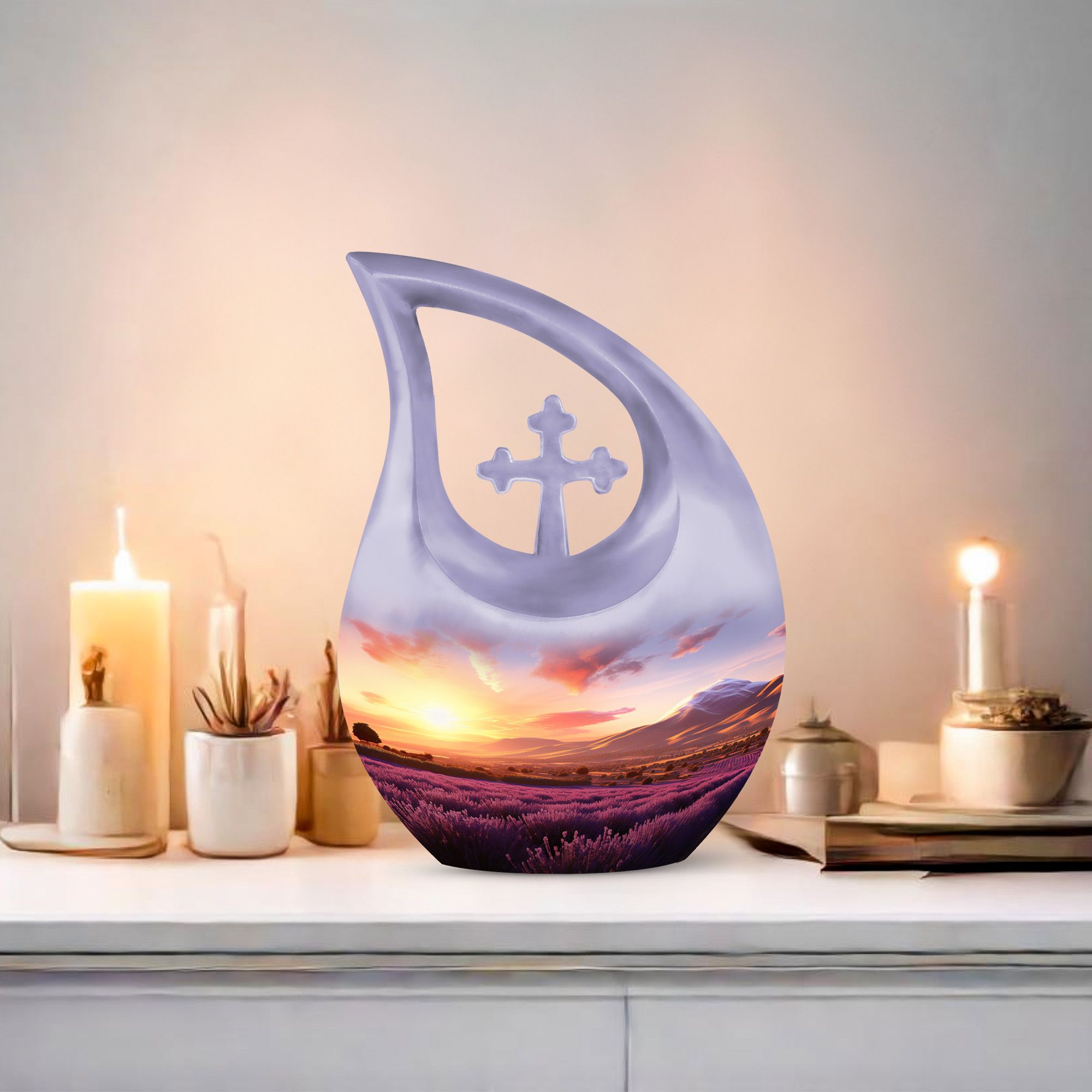 Suitable for both cremation urn men and cremation urns women, this memorial piece also complements selections for families needing a burial urn men option. Its calming sunset tones create a sense of peace, making it a comforting tribute for any loved one.