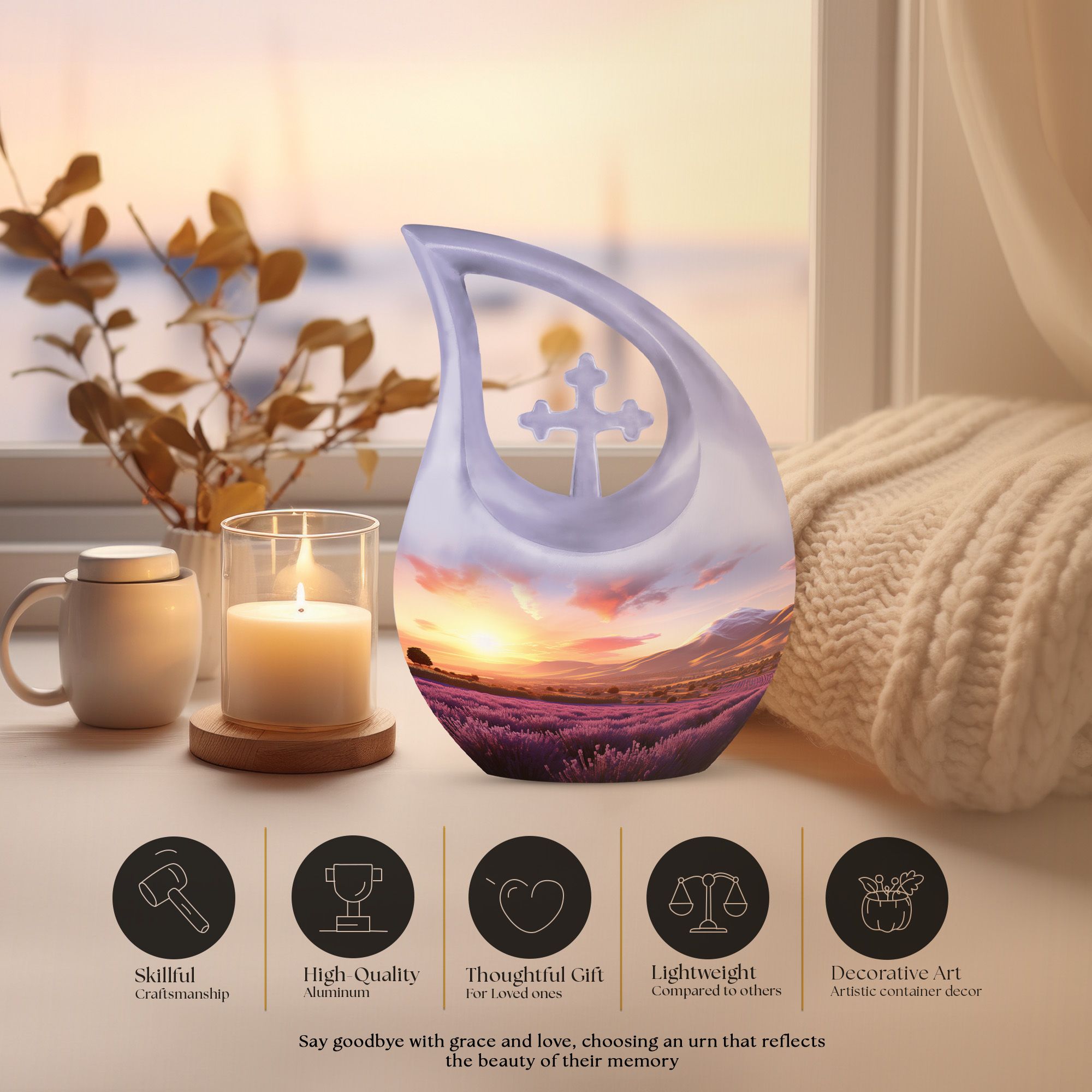 A serene symbol of everlasting remembrance, this urn honors life, love, and the beauty of every sunset shared.