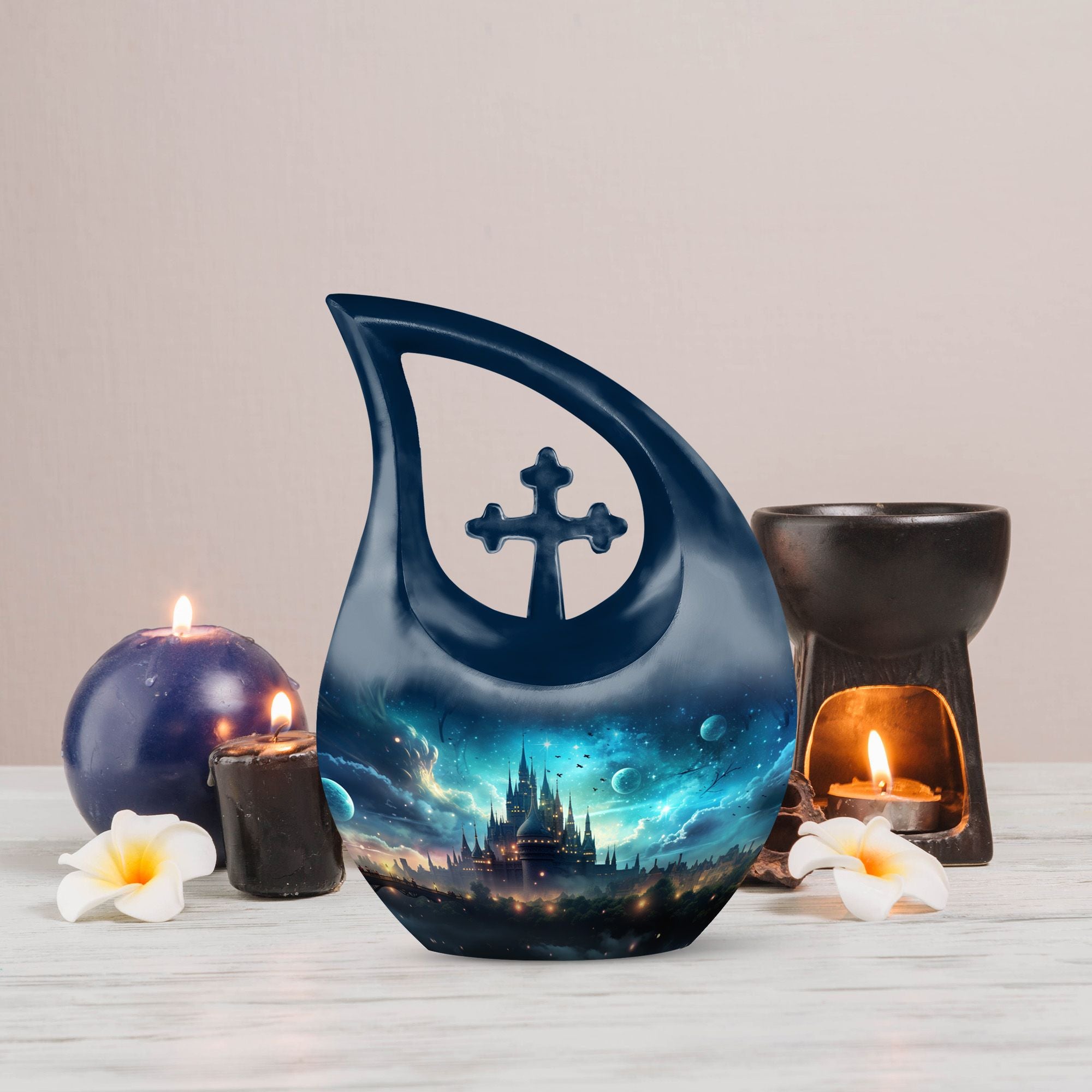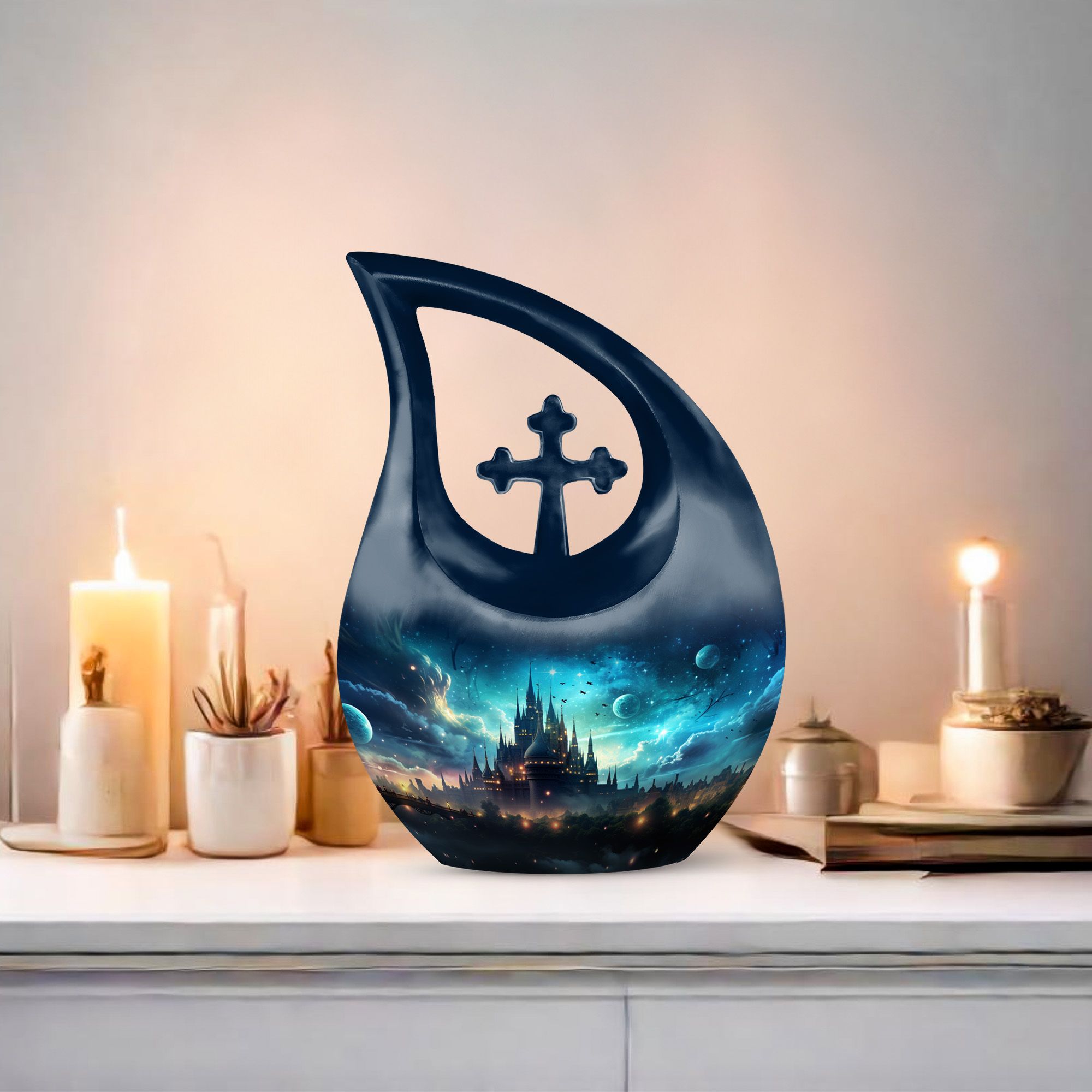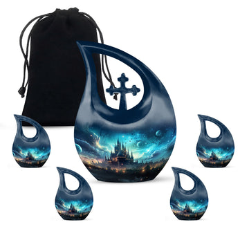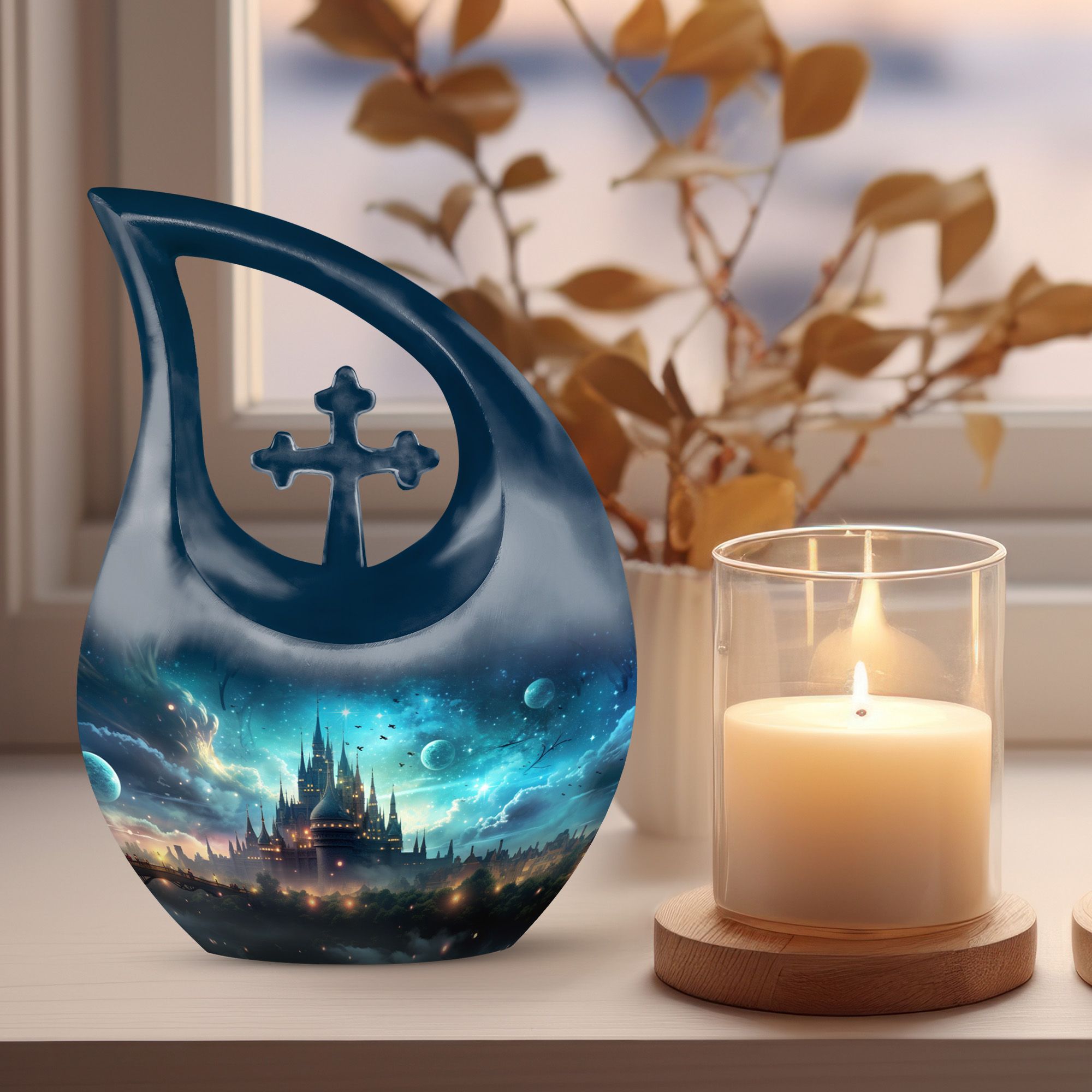 A heartfelt and enchanting tribute, this Night Castle Memorial Urn for Ashes brings comfort and elegance through its beautiful princess-castle artwork. Designed for women who loved fantasy, magic, or fairy-tale themes, it offers a peaceful and dignified resting place for families seeking a meaningful urn for cremation ashes or a graceful memorial.