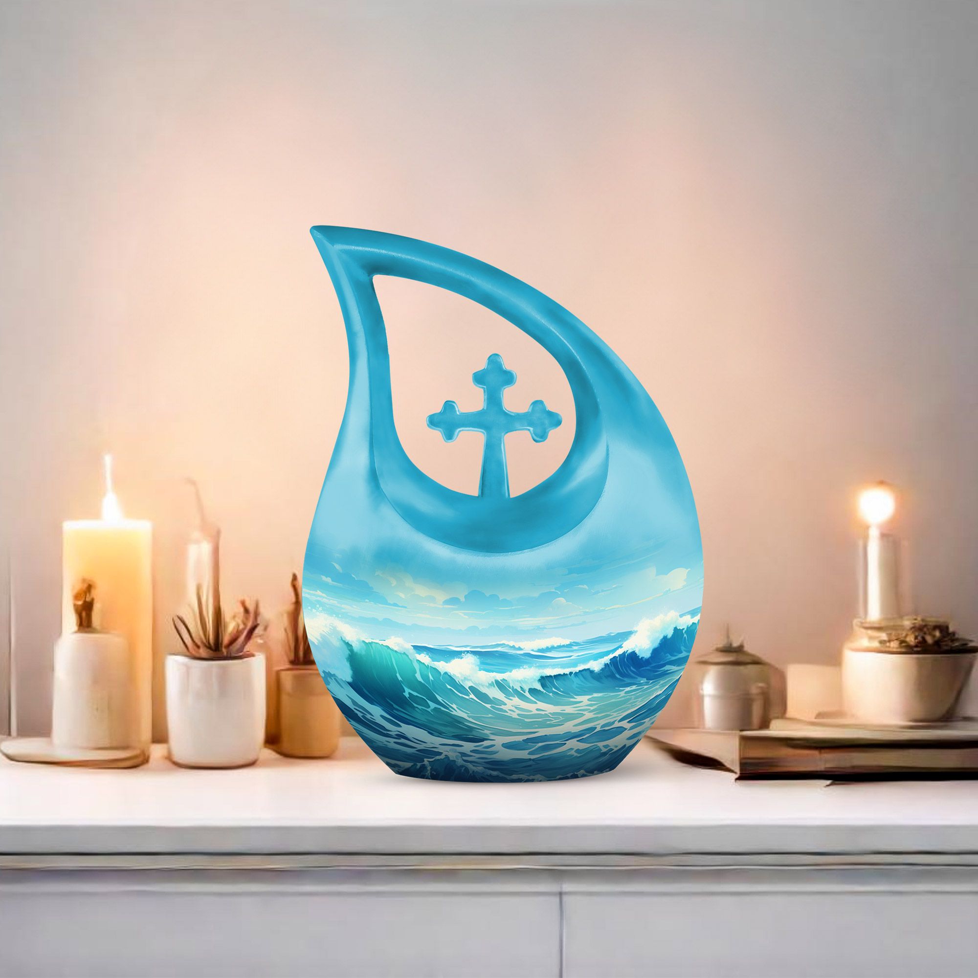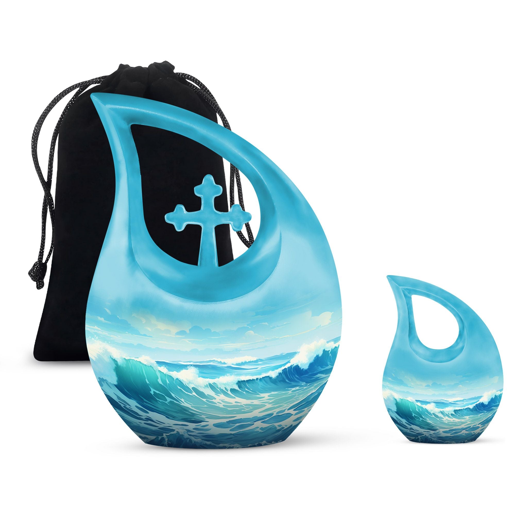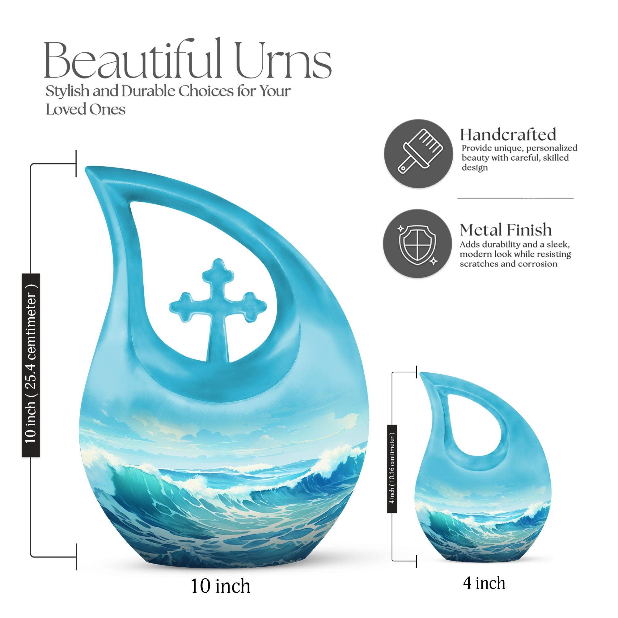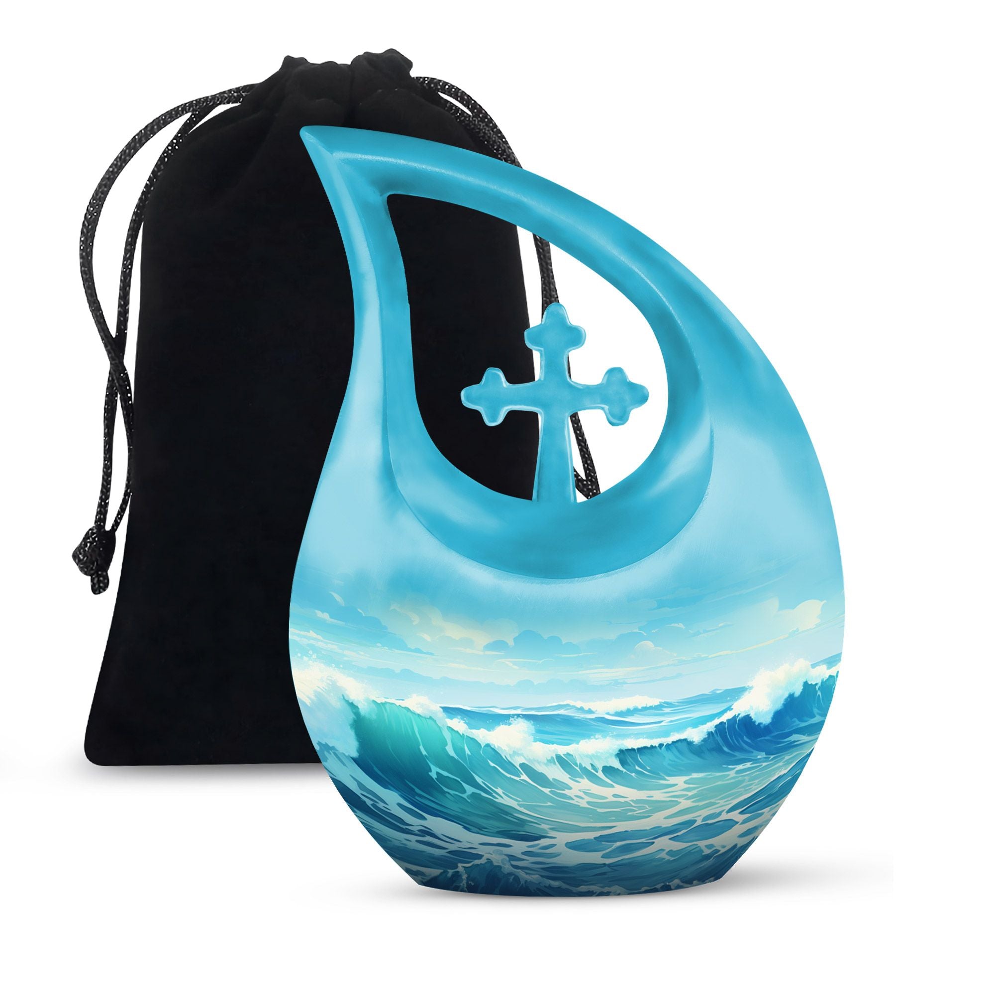 Pay heartfelt tribute to a loved one with our Wilderness Urn, a unique cremation keepsake that provides a serene resting place for those who appreciated nature. This Large Urn, created from high-quality aluminium, has a robustness that reflects the strength of the wilderness it's inspired by. Its tasteful 'Cross Drop' design imbues a sense of serenity and pious solemnity. This 10-inch, 3.3-pound vessel comes with a practical velvet pouch for respectful containment and storage of ashes, accommodating up to 200 cubic inches with ease. You can further individualize this distinctive memorial urn by adding engraved names of your loved ones. While this item excels as an urn for women's ashes, it is suitably respectful for any gender, becoming a refined and contemplative cremation box for ashes. Designed as a medium-sized urn for human ashes, our Wilderness urn offers a caring, personal way to remember and honour your loved ones. It is the epitome of cherished keepsakes for loved ones' ashes.