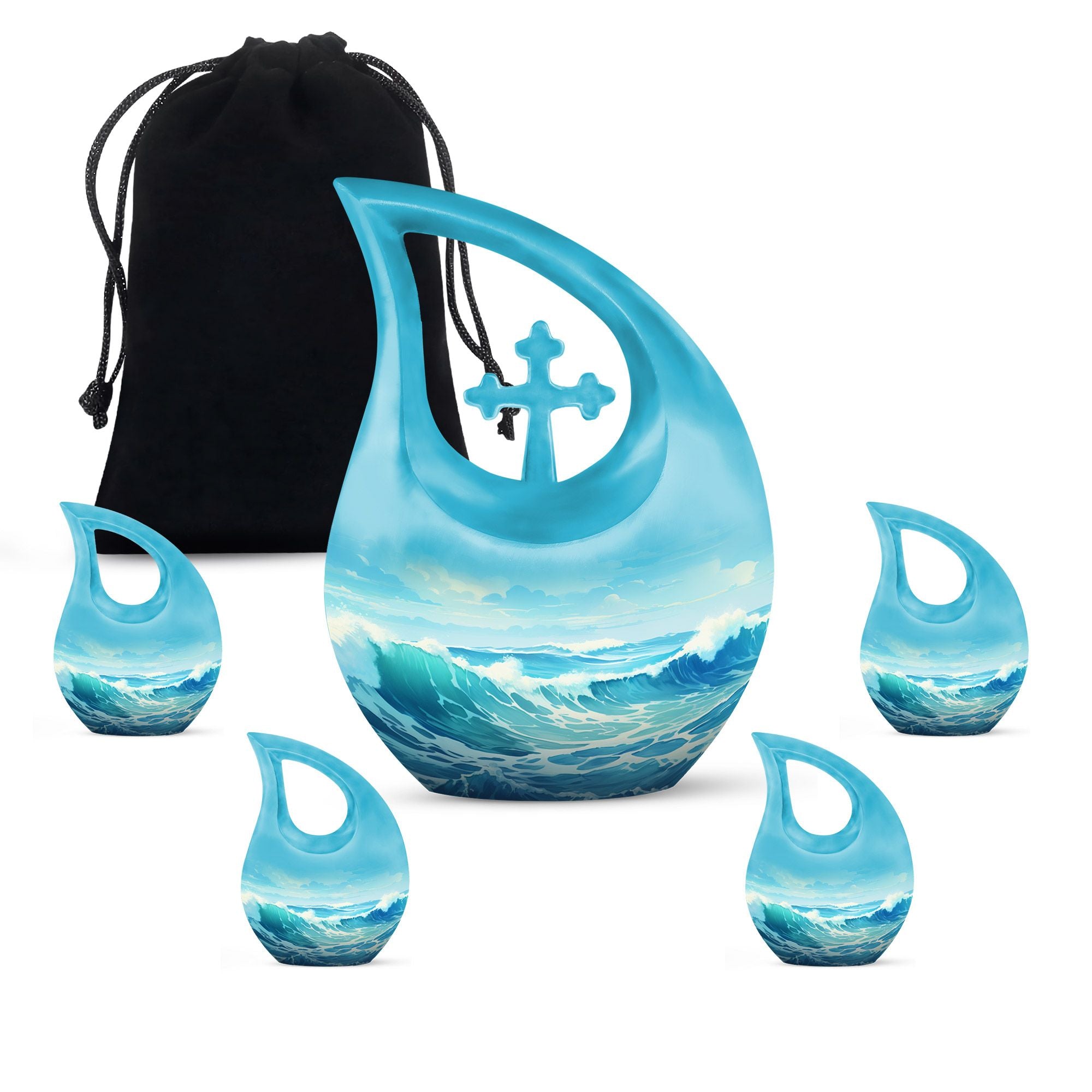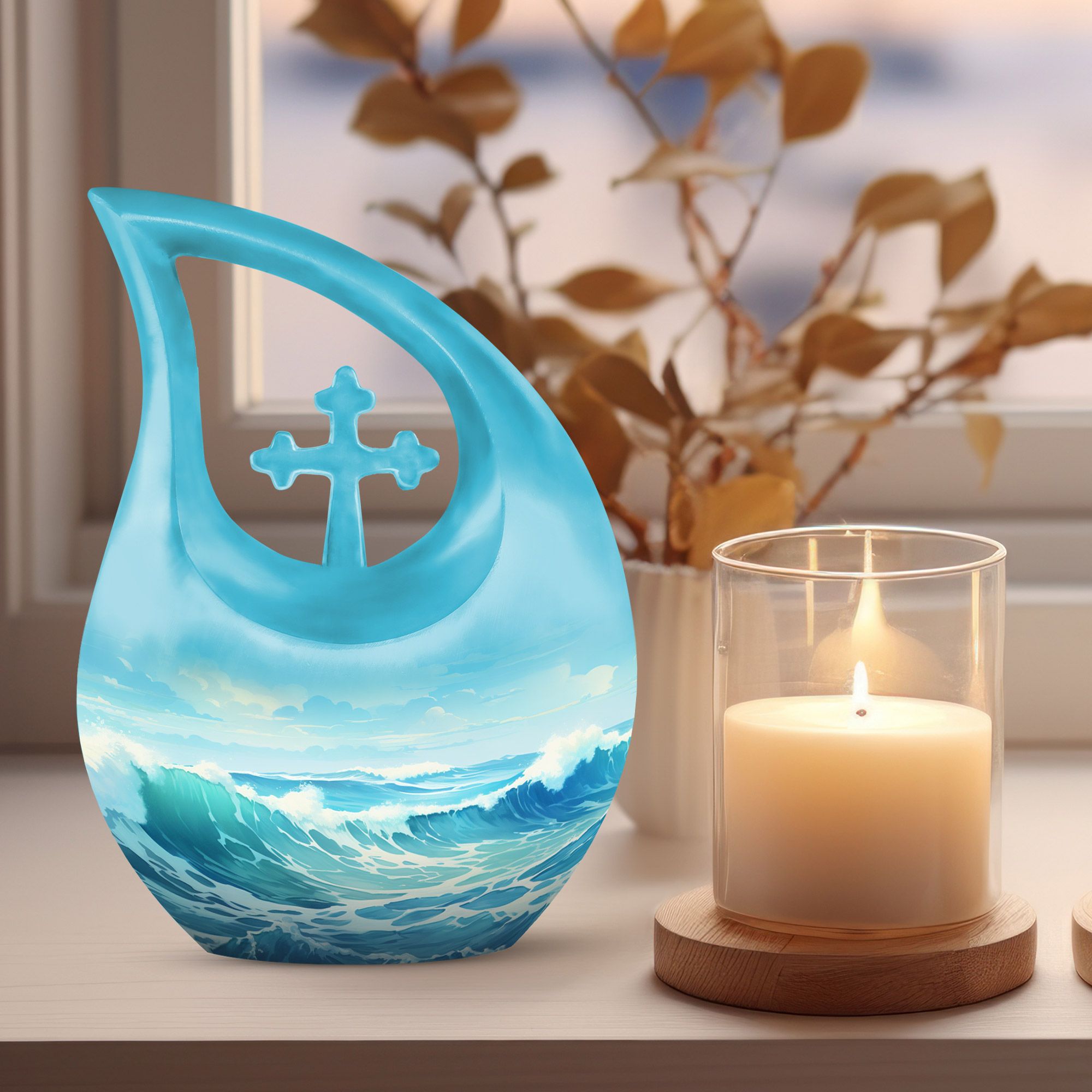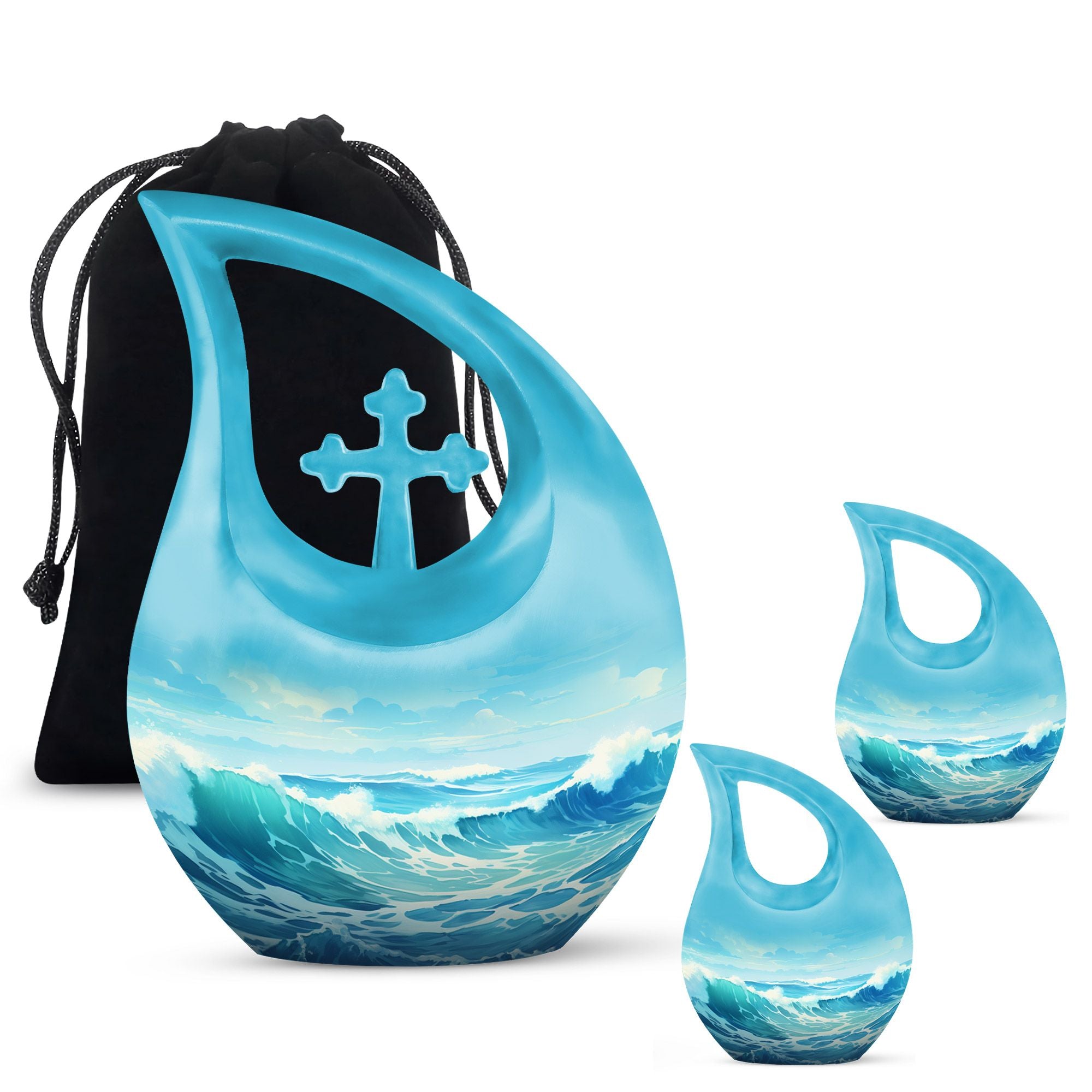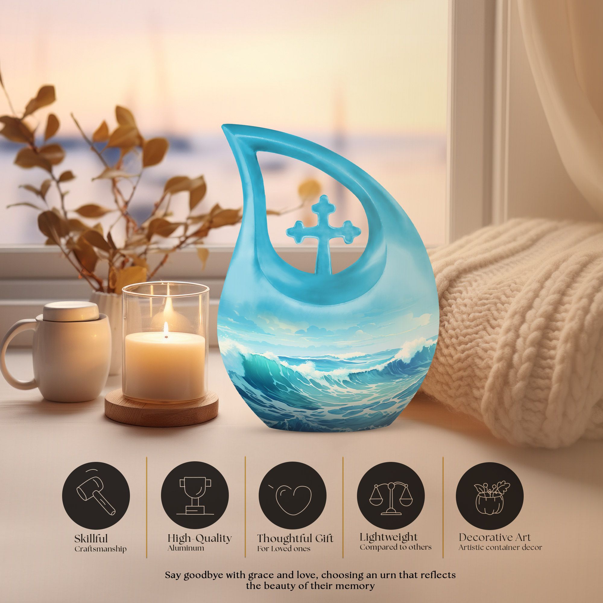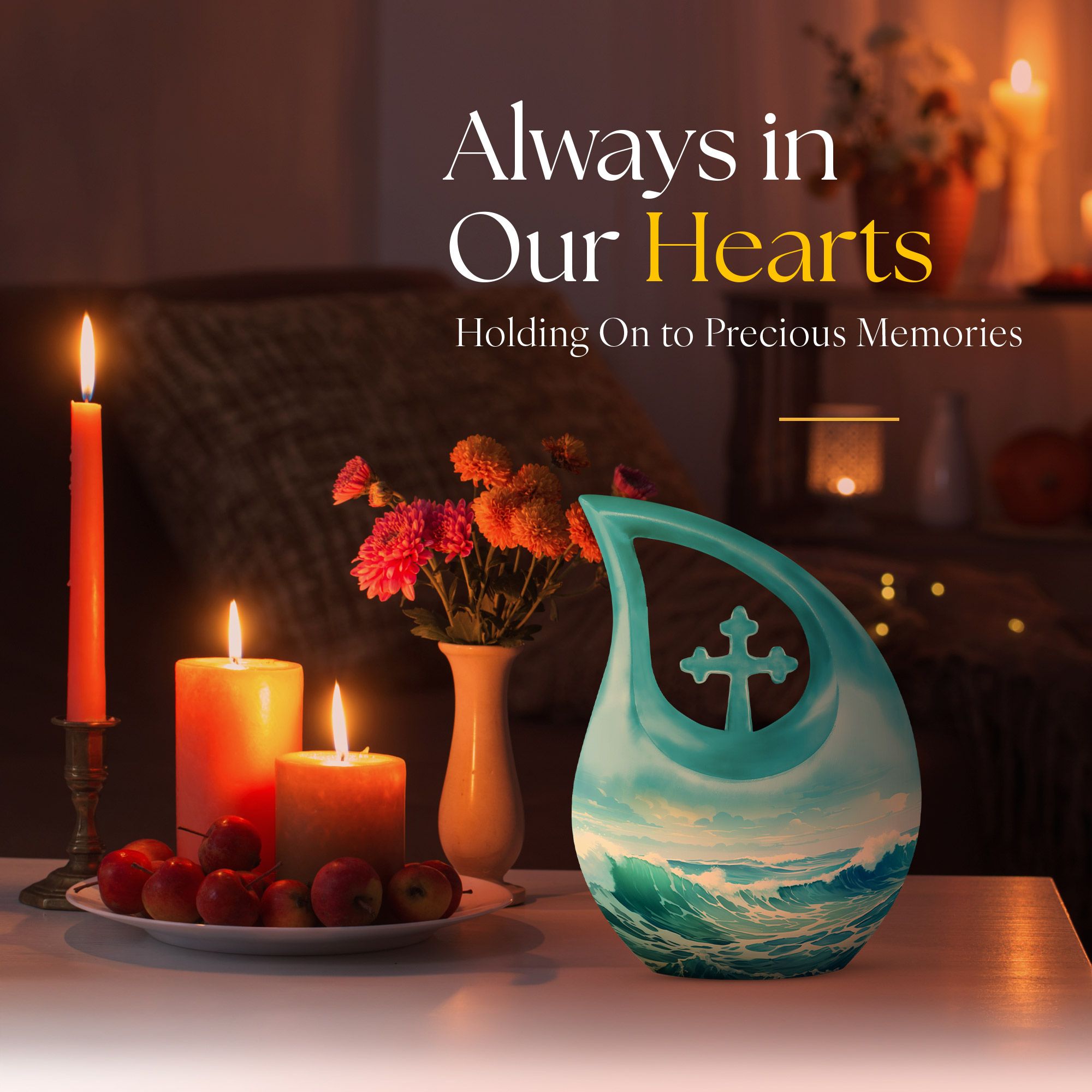 Pay heartfelt tribute to a loved one with our Wilderness Urn, a unique cremation keepsake that provides a serene resting place for those who appreciated nature. This Large Urn, created from high-quality aluminium, has a robustness that reflects the strength of the wilderness it's inspired by. Its tasteful 'Cross Drop' design imbues a sense of serenity and pious solemnity. This 10-inch, 3.3-pound vessel comes with a practical velvet pouch for respectful containment and storage of ashes, accommodating up to 200 cubic inches with ease. You can further individualize this distinctive memorial urn by adding engraved names of your loved ones. While this item excels as an urn for women's ashes, it is suitably respectful for any gender, becoming a refined and contemplative cremation box for ashes. Designed as a medium-sized urn for human ashes, our Wilderness urn offers a caring, personal way to remember and honour your loved ones. It is the epitome of cherished keepsakes for loved ones' ashes.