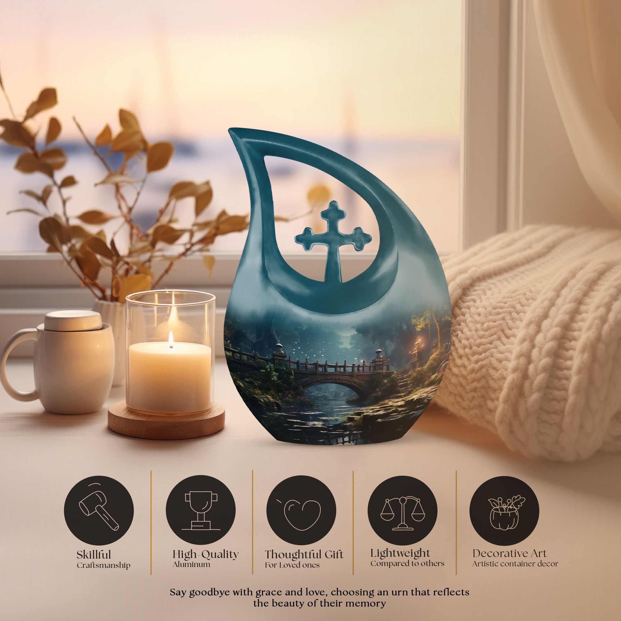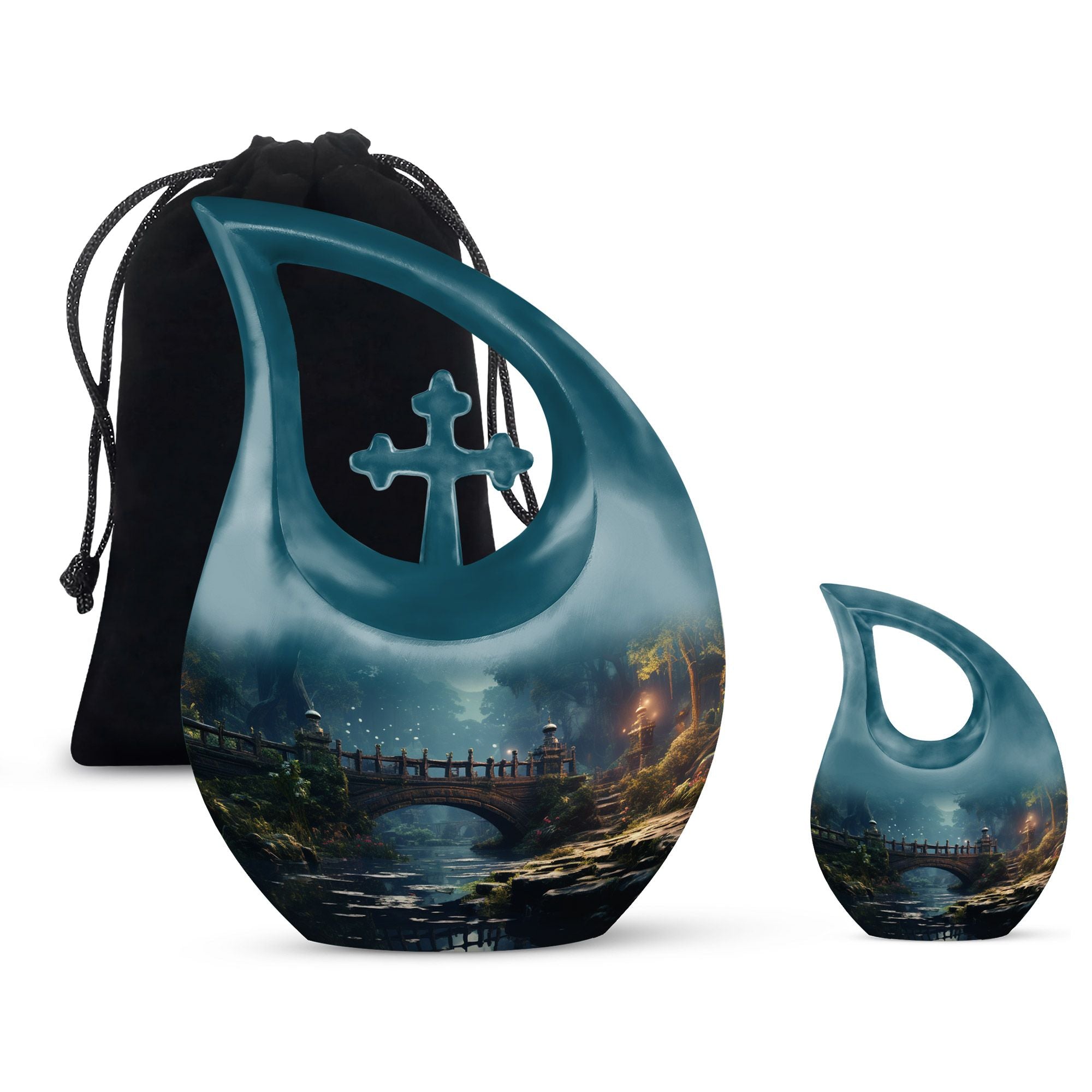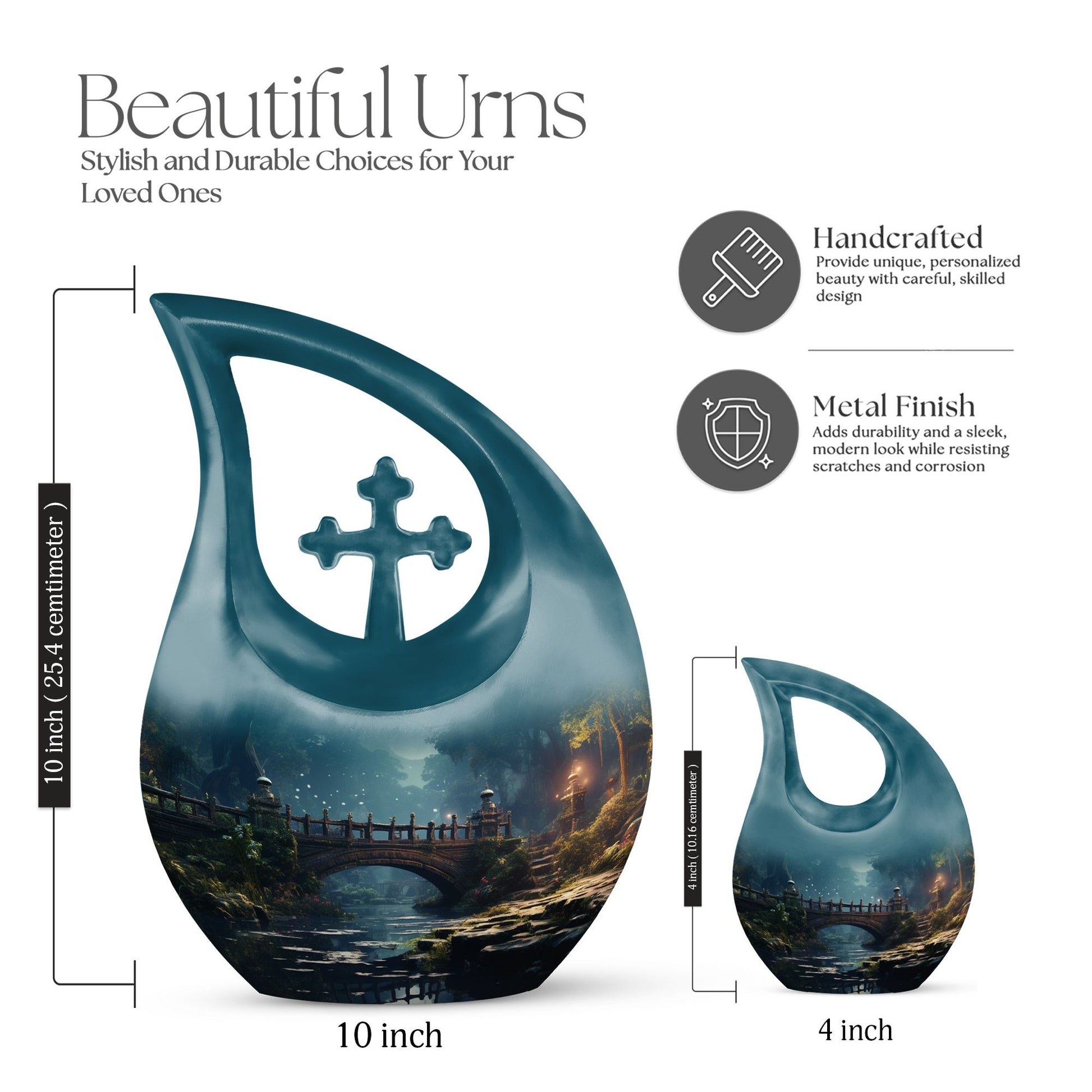 Carve in your loved ones memory by securing their blessings in very uniquely designed, Wilderness themed Mini Cremation Urn. Precision-cut from durable Aluminium material, weighing just 3.3 pounds and a size of 10 inches, this Wilderness Urn embodies a peaceful and soothing presence appealing to adults and seniors alike. Its capacity to contain 200 cubic inches of ashes provides your cherished one a deserved resting place. To augment the uniqueness, you can personalize it with engraved names, making the urns truly one of a kind. The package arrives with a delicate velvet pouch, ensuring the secure containment of ashes and adding to the overall touch of the urn. So, whether you're looking for Large Urns for Human Ashes, a Cremation Urn Vault or Unique Cremation Keepsakes, this Wilderness Urn fits the bill perfectly. Honor your loved ones and comfort your broken heart with these memorial urns crafted with love and grace.