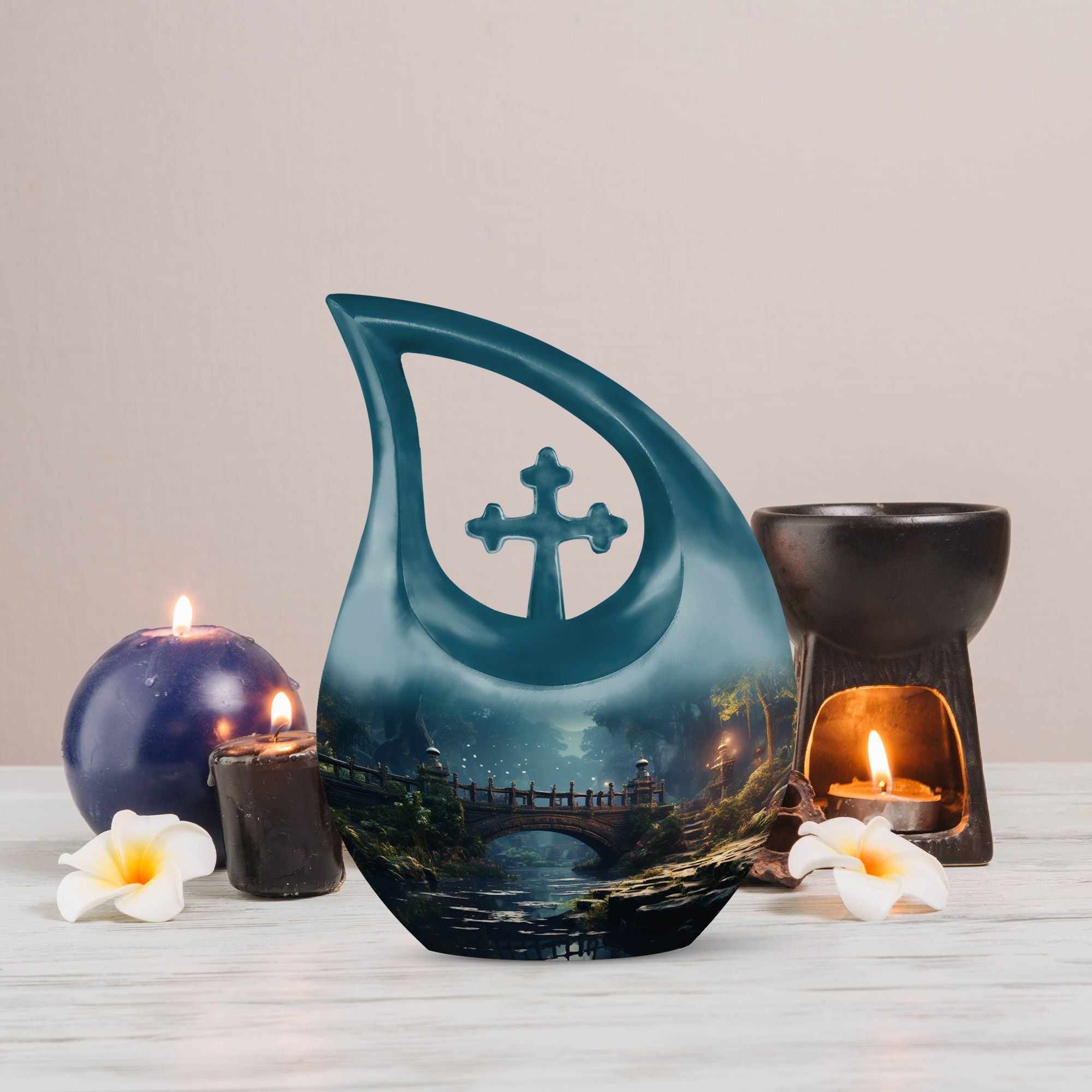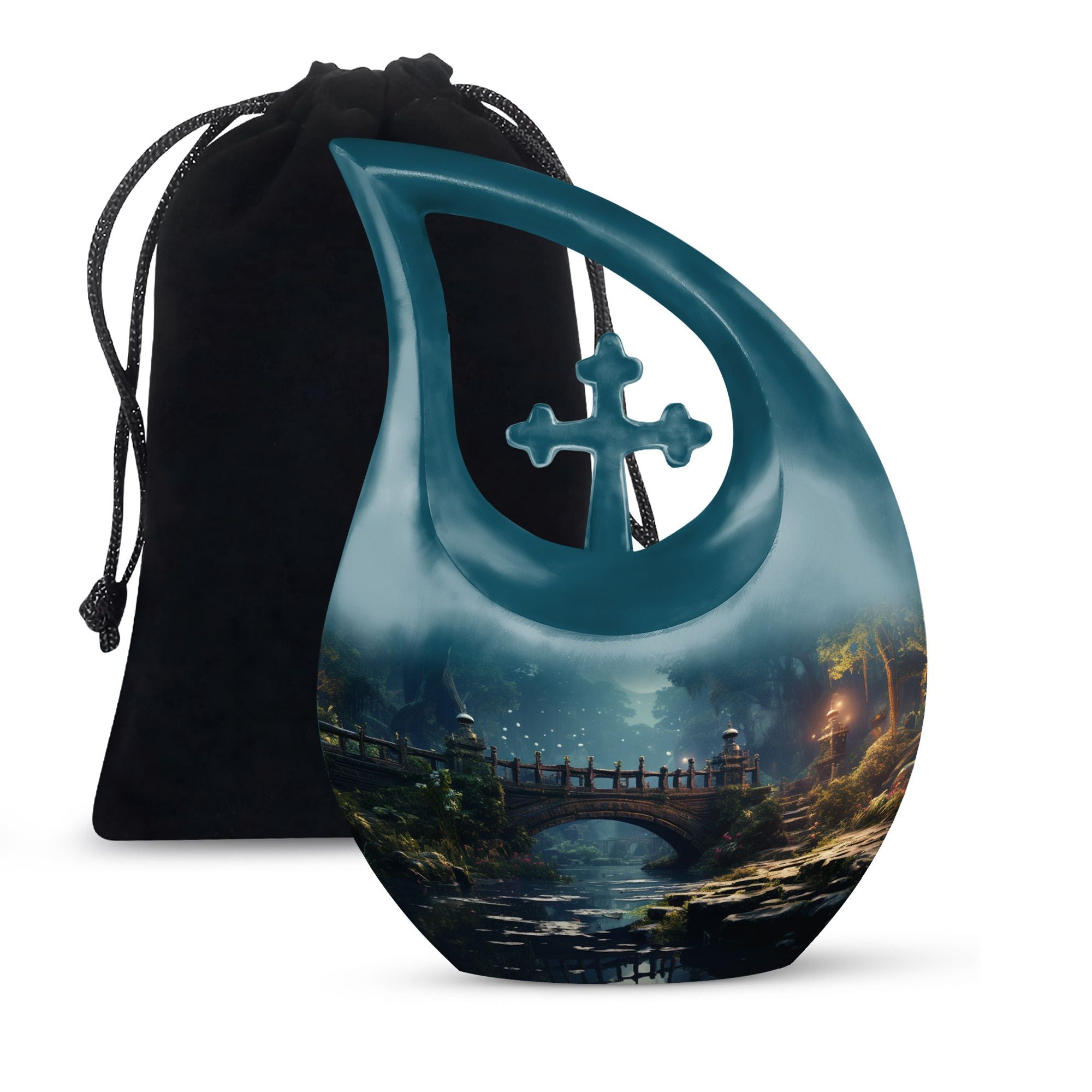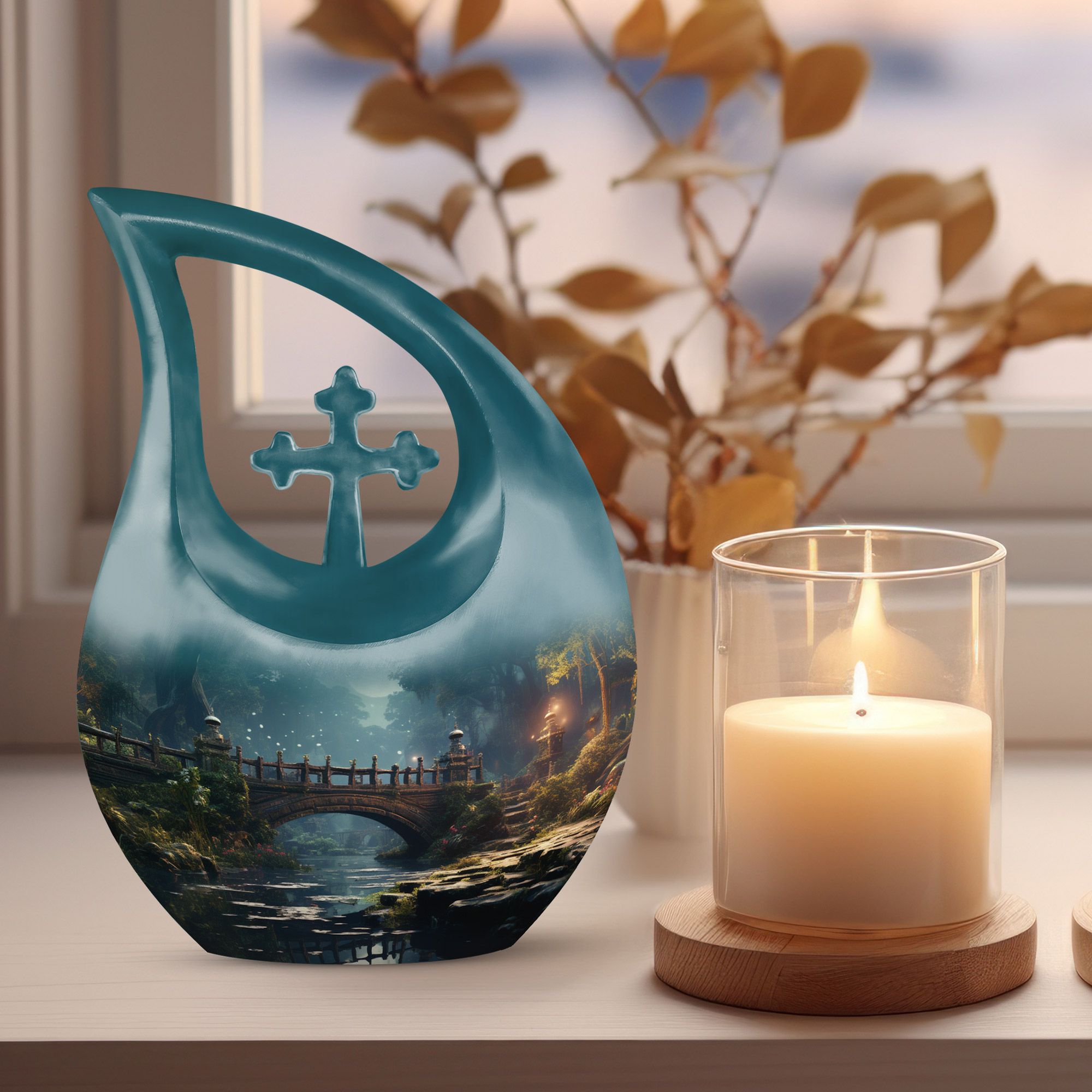 Carve in your loved ones memory by securing their blessings in very uniquely designed, Wilderness themed Mini Cremation Urn. Precision-cut from durable Aluminium material, weighing just 3.3 pounds and a size of 10 inches, this Wilderness Urn embodies a peaceful and soothing presence appealing to adults and seniors alike. Its capacity to contain 200 cubic inches of ashes provides your cherished one a deserved resting place. To augment the uniqueness, you can personalize it with engraved names, making the urns truly one of a kind. The package arrives with a delicate velvet pouch, ensuring the secure containment of ashes and adding to the overall touch of the urn. So, whether you're looking for Large Urns for Human Ashes, a Cremation Urn Vault or Unique Cremation Keepsakes, this Wilderness Urn fits the bill perfectly. Honor your loved ones and comfort your broken heart with these memorial urns crafted with love and grace.