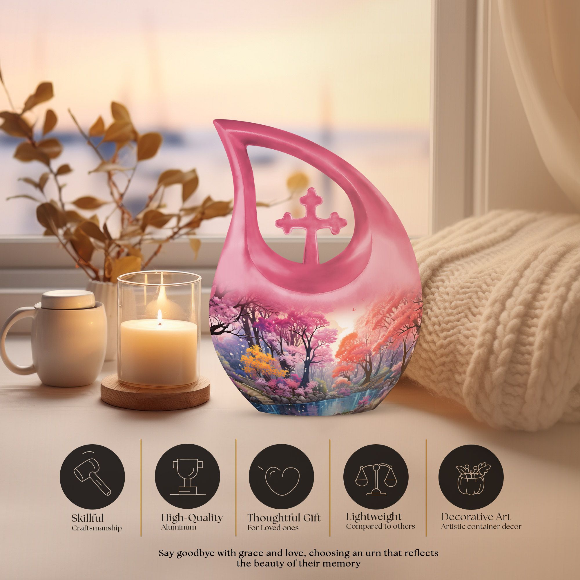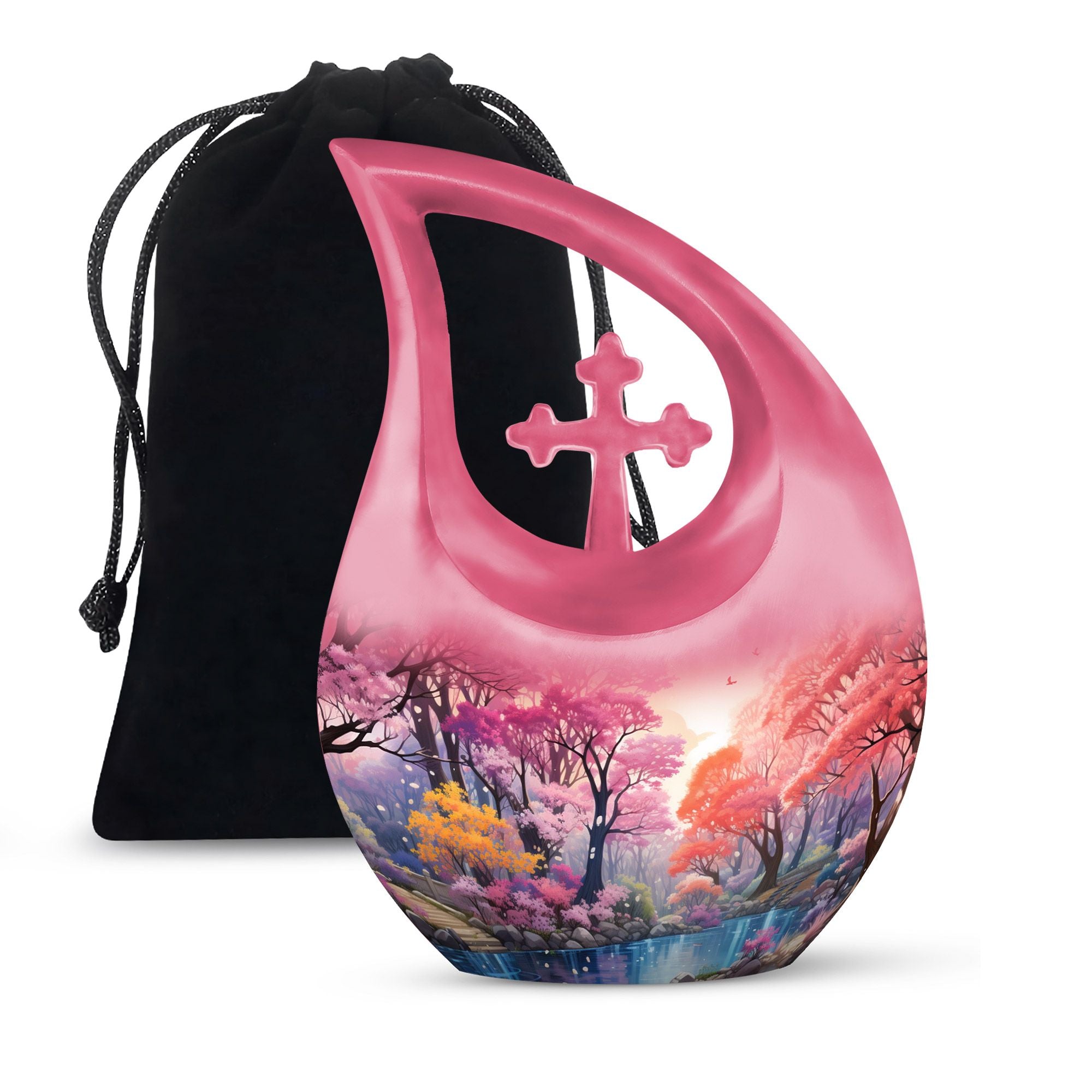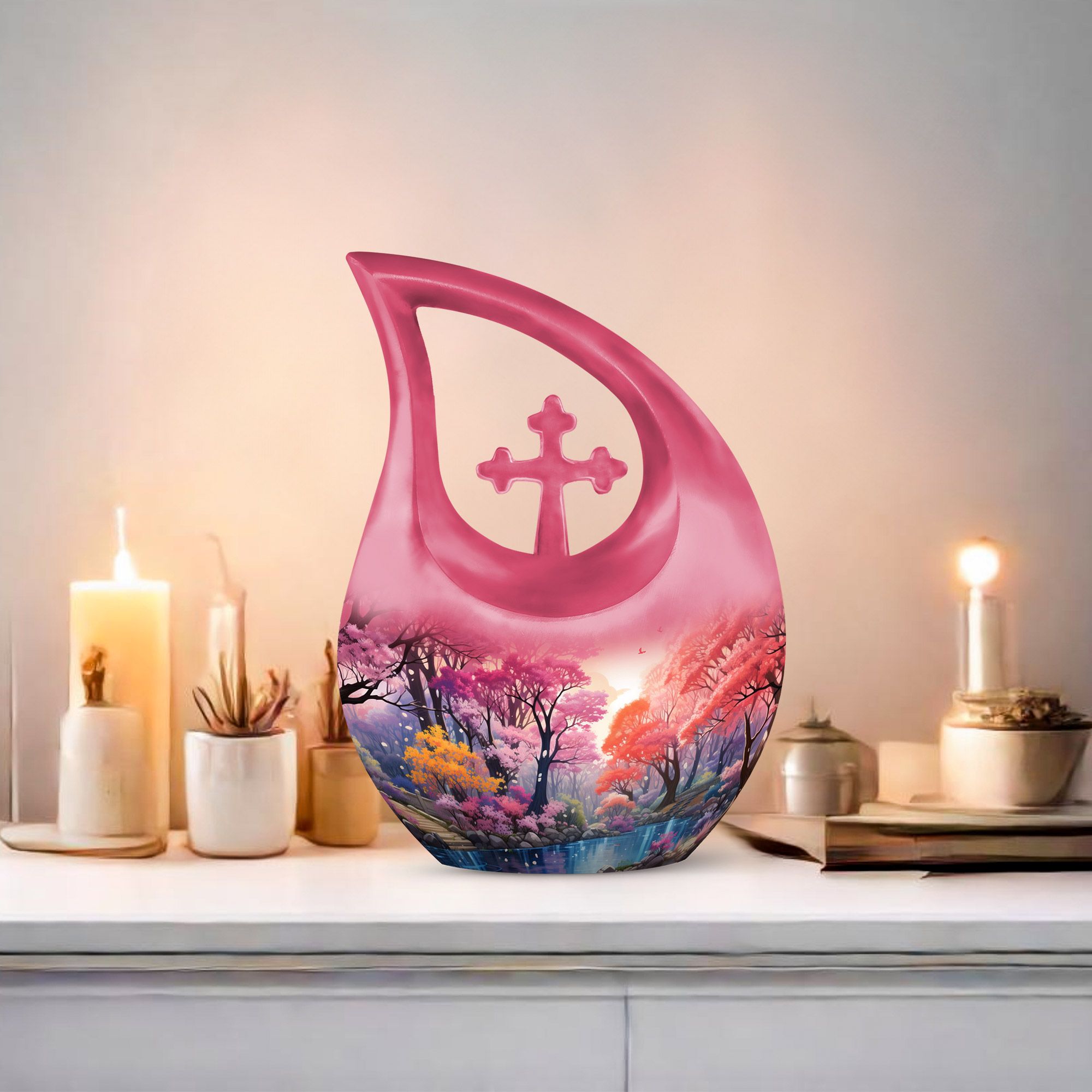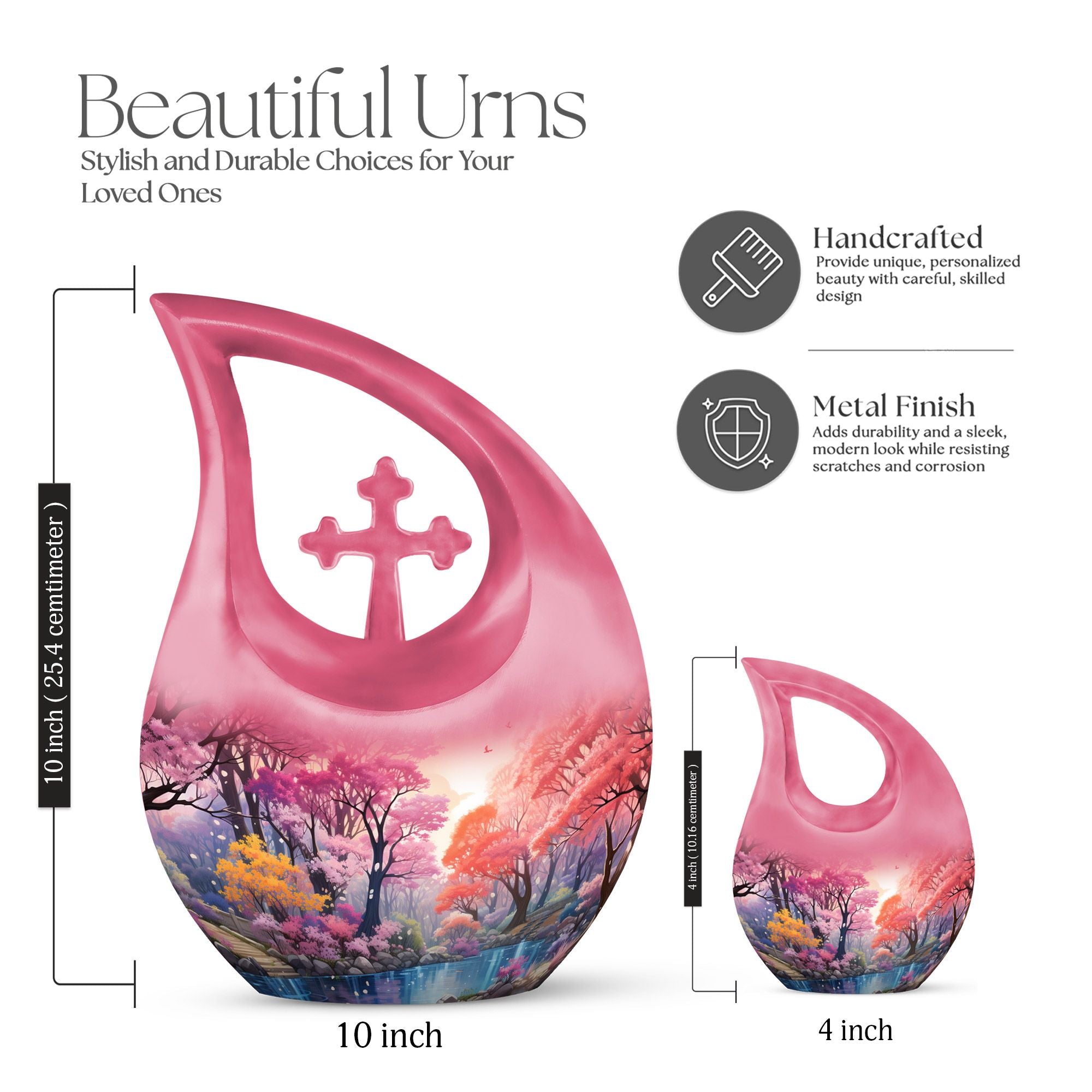 Honor the memory of your loved one with our Wilderness Urn, perfectly crafted for those wanting to cherish the remains of their beloved ones. This mini urn, designed to contain human ashes, features a beautifully etched Cross Drop detail embodying a spiritual essence. Standing at an impressive 10 inches, this large urn will be an elegant reminder of your loved one. The package also includes a velvet pouch to safely contain the ashes. With a sturdy weight of 3.3 pounds and an accommodating 200 cubic inch capacity, this urn is not only aesthetically pleasing but also practical. Further enhancing your memorial experience, we offer the opportunity to personalize this aluminium urn with engraved names. Also referred to as 'Cremation Boxes', 'Custom Urns', and 'Expensive Urns', our urns add a touch of sophistication to your memorial ceremonies. The Wilderness theme encapsulates the free spirit of those who loved the great outdoors. Embrace the uniqueness, choose our Wilderness Urn—because your loved one deserves the best.