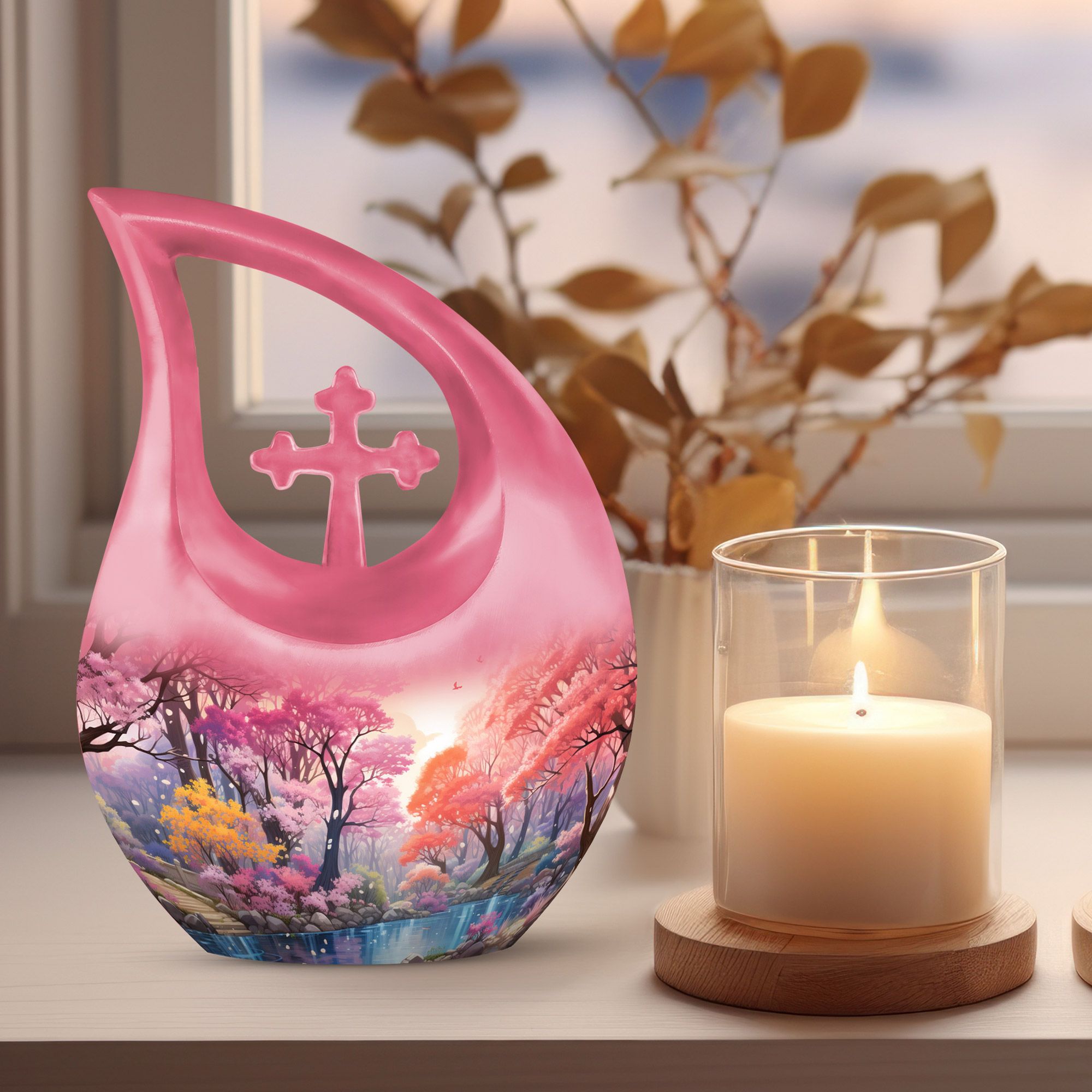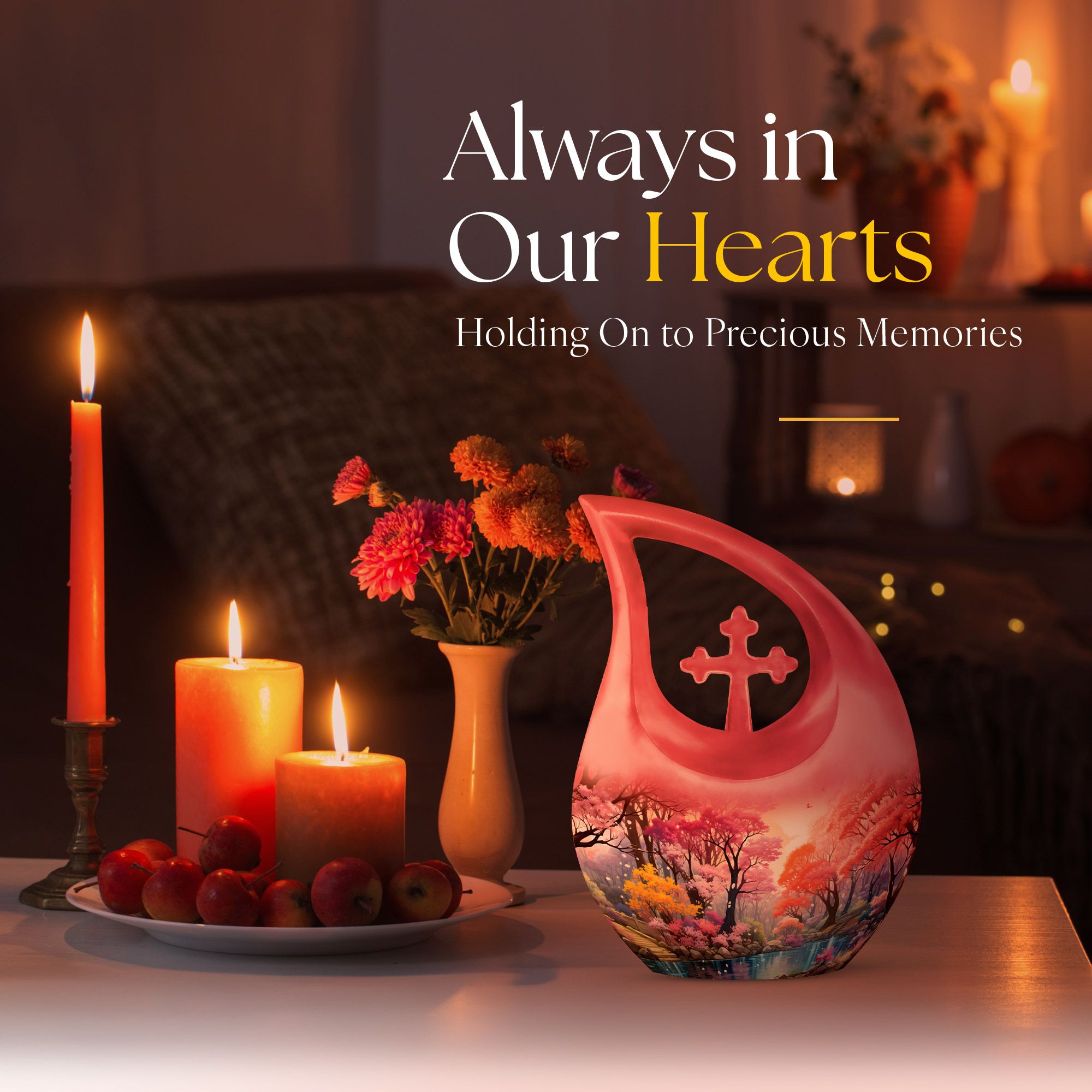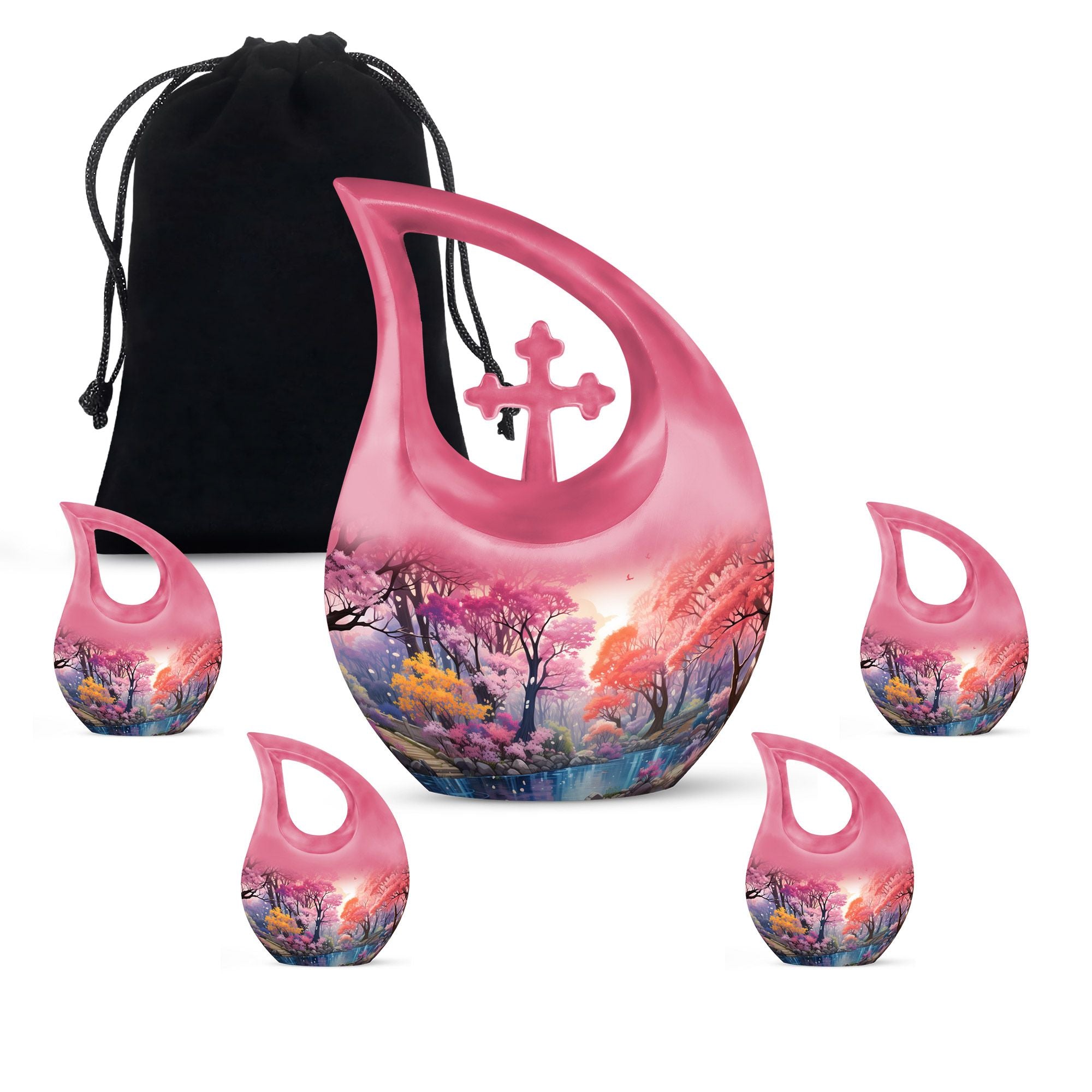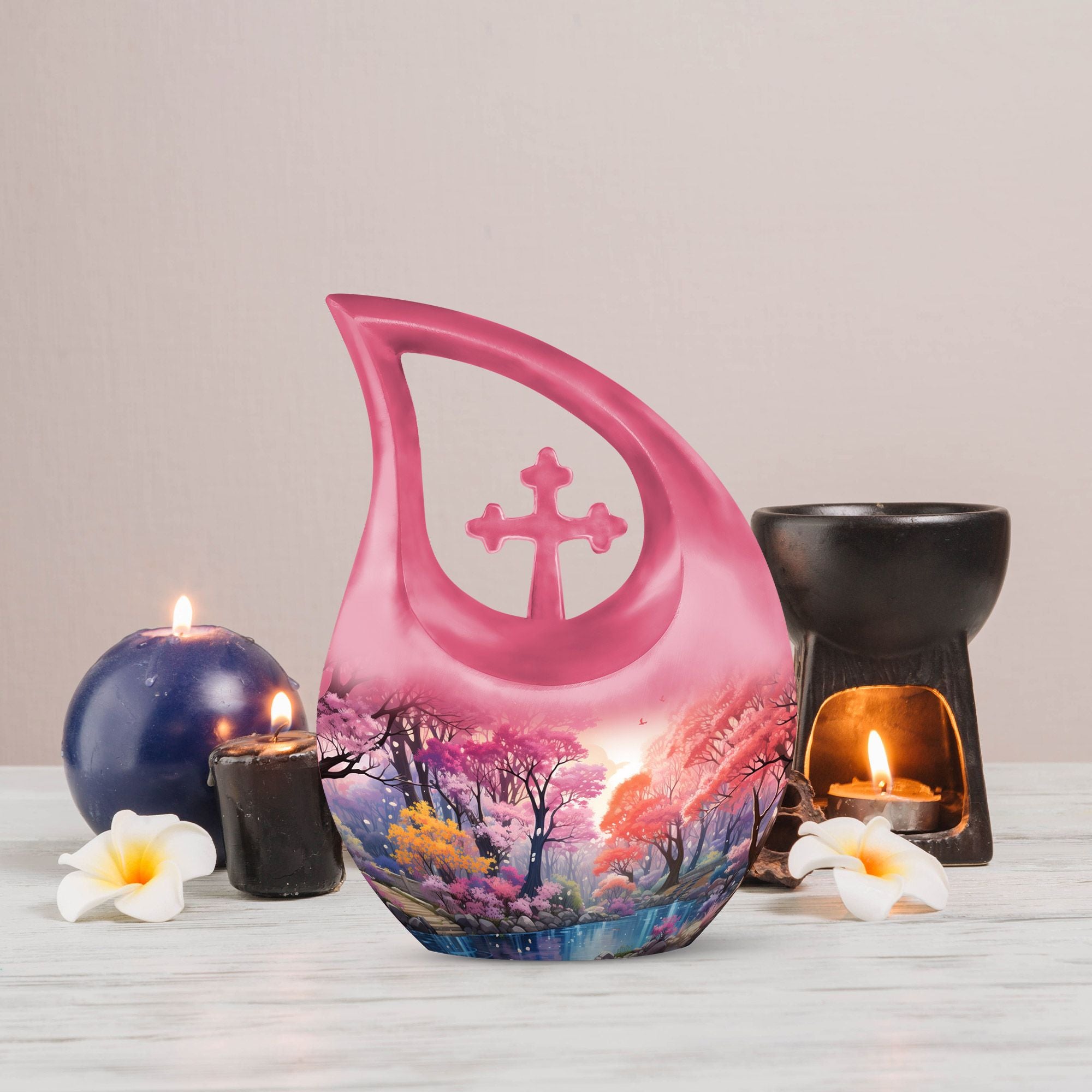 Honor the memory of your loved one with our Wilderness Urn, perfectly crafted for those wanting to cherish the remains of their beloved ones. This mini urn, designed to contain human ashes, features a beautifully etched Cross Drop detail embodying a spiritual essence. Standing at an impressive 10 inches, this large urn will be an elegant reminder of your loved one. The package also includes a velvet pouch to safely contain the ashes. With a sturdy weight of 3.3 pounds and an accommodating 200 cubic inch capacity, this urn is not only aesthetically pleasing but also practical. Further enhancing your memorial experience, we offer the opportunity to personalize this aluminium urn with engraved names. Also referred to as 'Cremation Boxes', 'Custom Urns', and 'Expensive Urns', our urns add a touch of sophistication to your memorial ceremonies. The Wilderness theme encapsulates the free spirit of those who loved the great outdoors. Embrace the uniqueness, choose our Wilderness Urn—because your loved one deserves the best.