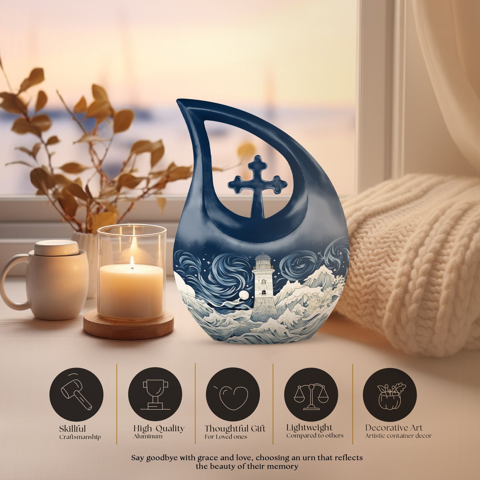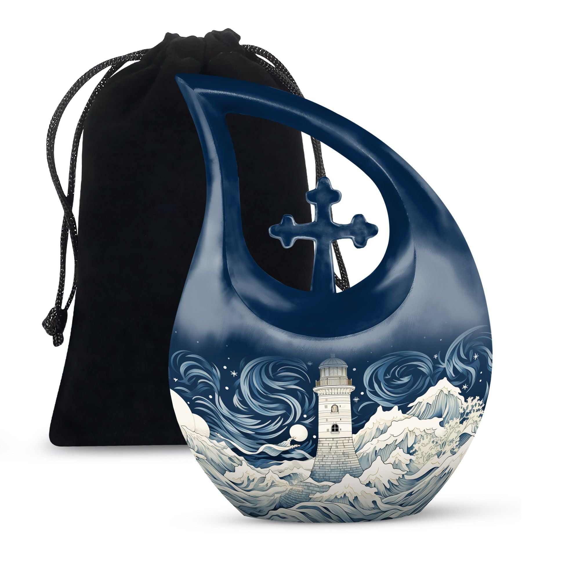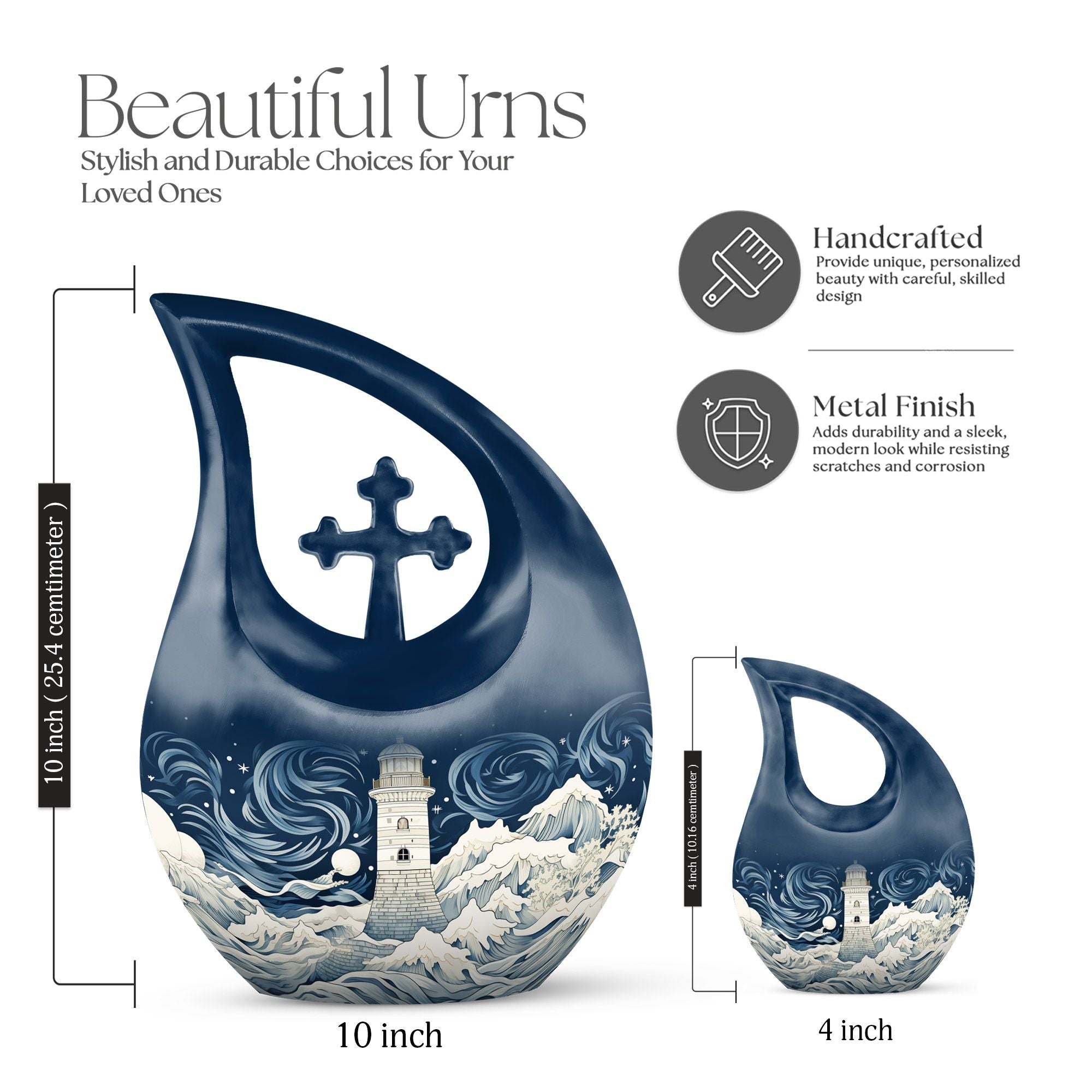 Experience an exceptional tribute to your beloved with this Wilderness Urn. Our 'Cross Drop' 10-inch urn is a beautiful interpretation of the solemn, yet hopeful wilderness theme, aptly designed for treasuring human ashes. With a comfortably-sized capacity of 200 cubic inches, this large urn ensures containment of ashes, while also allowing you to personalize with engraved names for an exquisite keepsake. Crafted meticulously from sturdy aluminium, this urn offers you a robust solution for memorial urns, weighing a mere 3.3 pounds for easy handling. And there's more – the package is inclusive of a velvet pouch, designed thoughtfully for secure containment of ashes. Our Wilderness Urn embodies a beautiful harmony between beauty and reverence; a truly fitting choice for preserving fond memories. Memorialize with this dignified tribute that speaks of serenity in every curve. Keywords: Wilderness Urn, funeral urns, cremation ashes keepsakes, human ashes keepsakes.