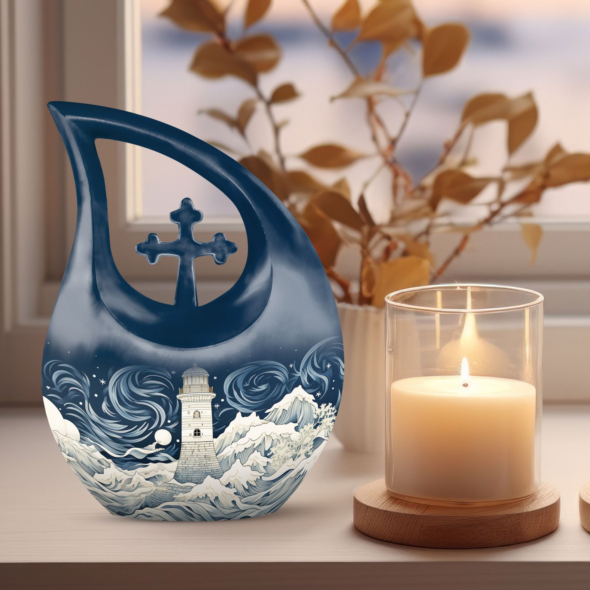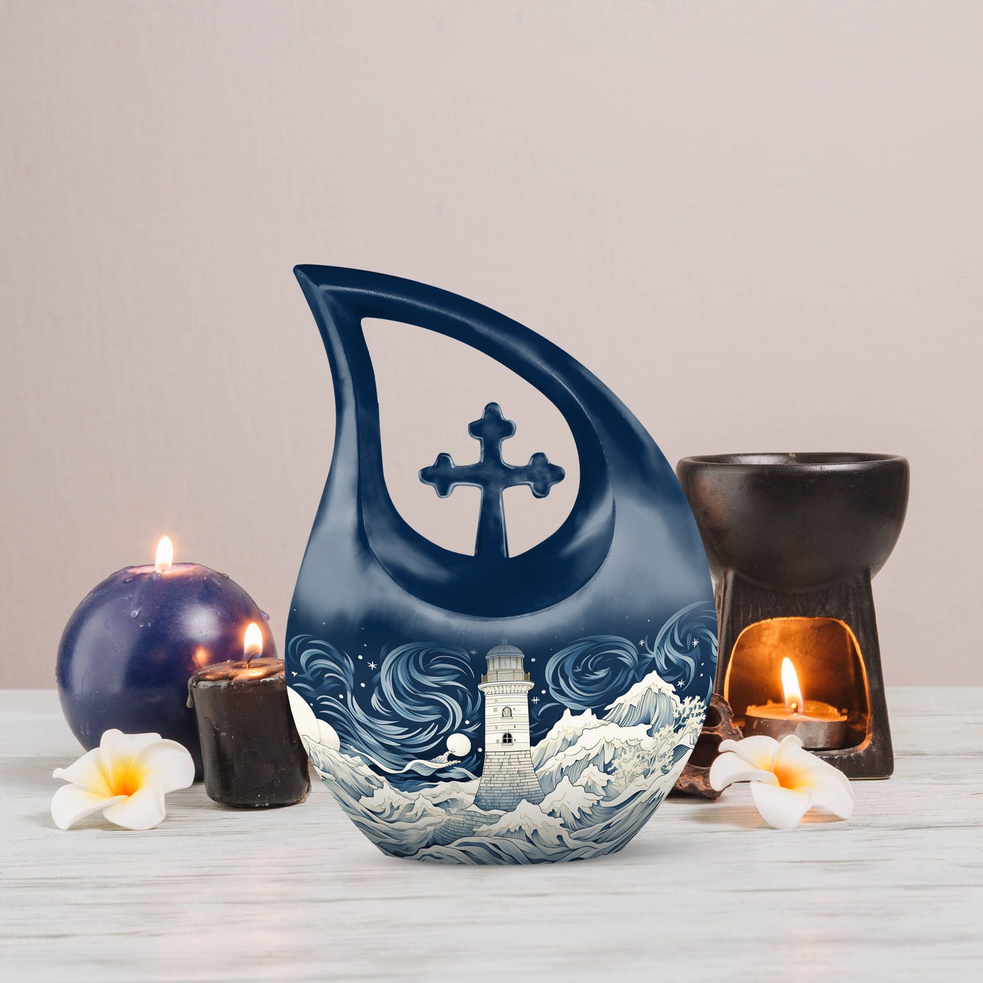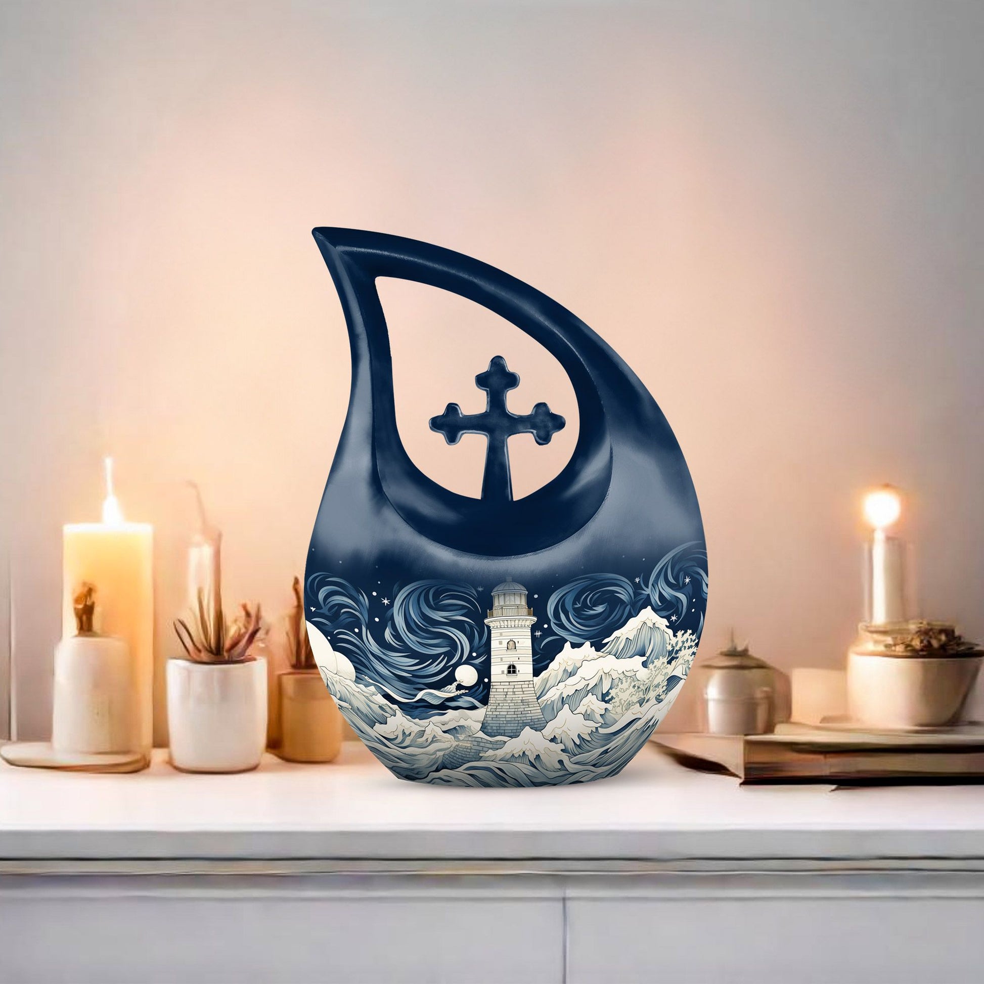 Experience an exceptional tribute to your beloved with this Wilderness Urn. Our 'Cross Drop' 10-inch urn is a beautiful interpretation of the solemn, yet hopeful wilderness theme, aptly designed for treasuring human ashes. With a comfortably-sized capacity of 200 cubic inches, this large urn ensures containment of ashes, while also allowing you to personalize with engraved names for an exquisite keepsake. Crafted meticulously from sturdy aluminium, this urn offers you a robust solution for memorial urns, weighing a mere 3.3 pounds for easy handling. And there's more – the package is inclusive of a velvet pouch, designed thoughtfully for secure containment of ashes. Our Wilderness Urn embodies a beautiful harmony between beauty and reverence; a truly fitting choice for preserving fond memories. Memorialize with this dignified tribute that speaks of serenity in every curve. Keywords: Wilderness Urn, funeral urns, cremation ashes keepsakes, human ashes keepsakes.