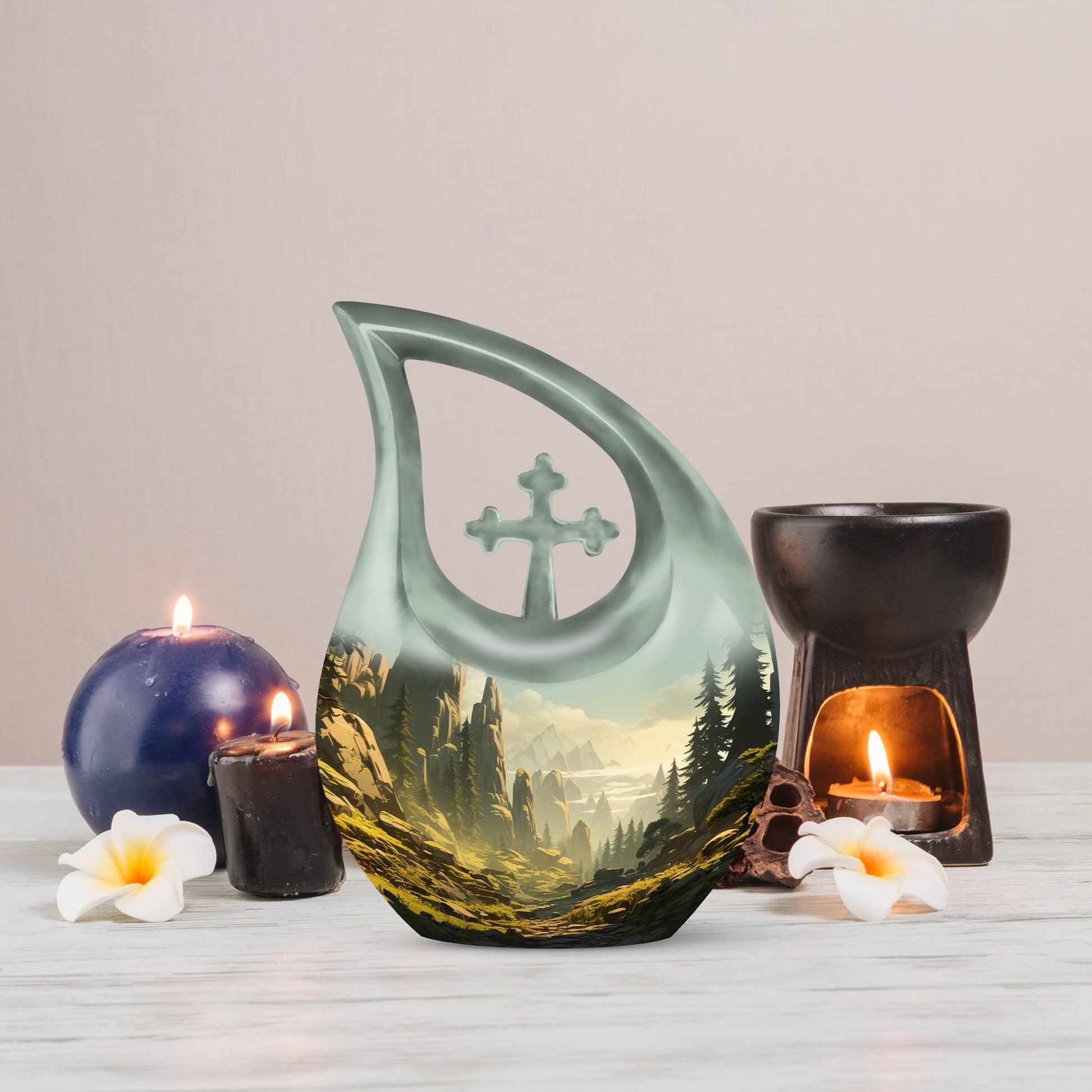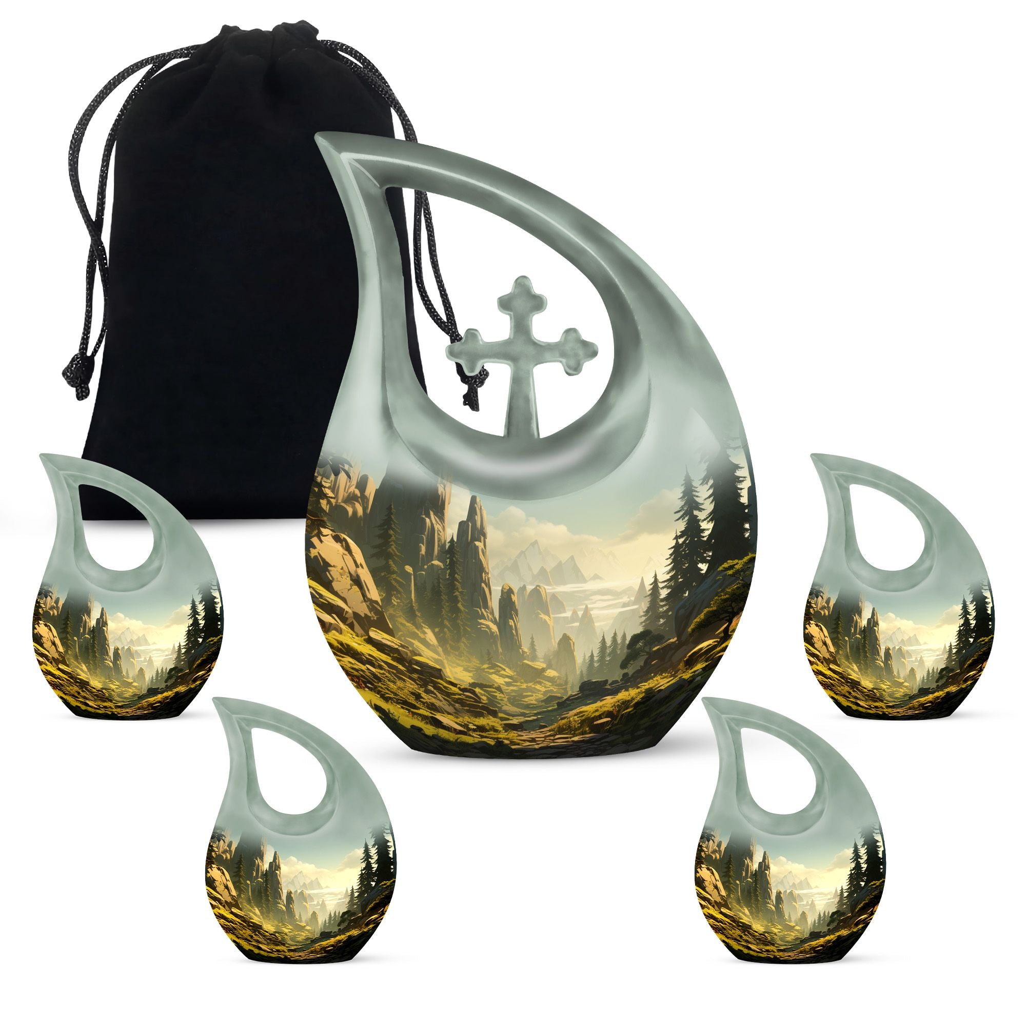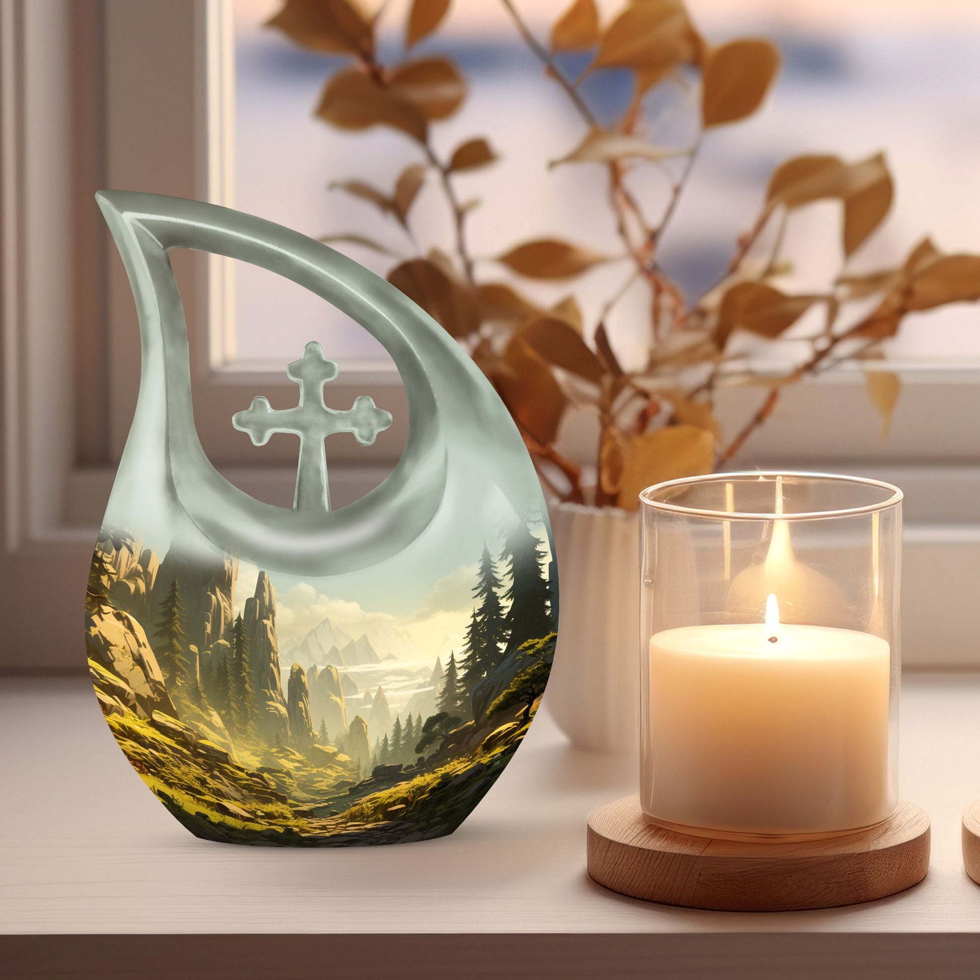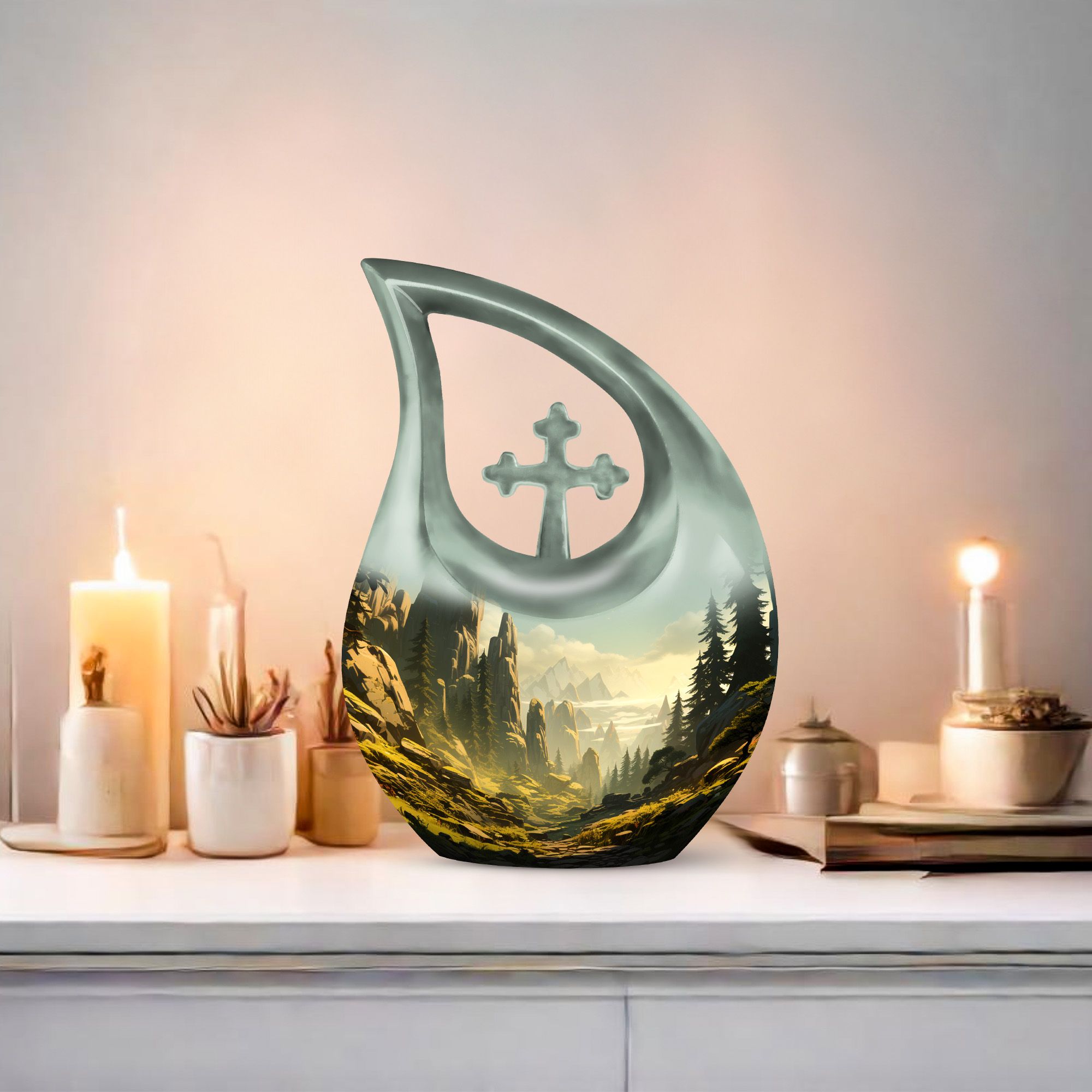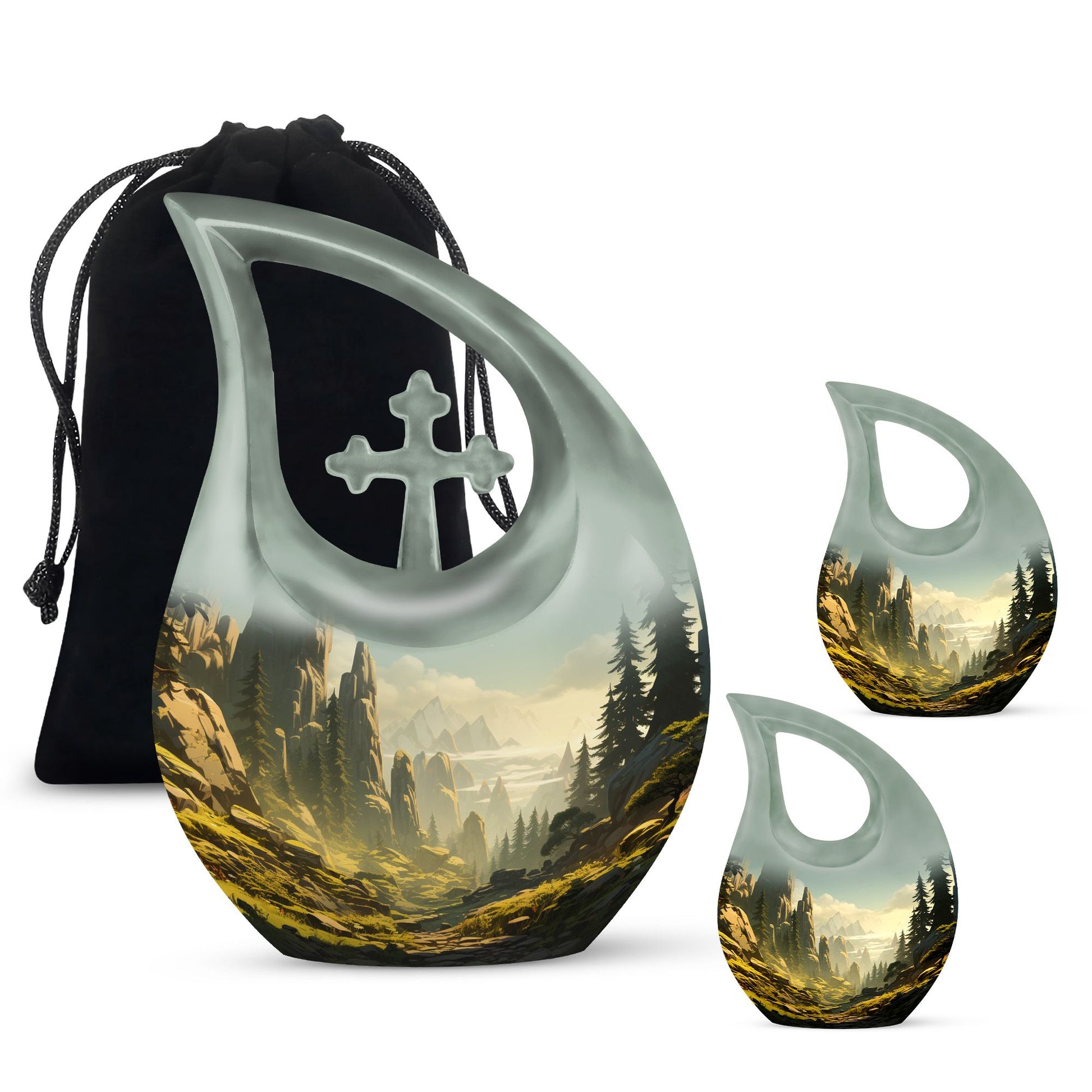 Introducing our Wilderness Urn, a testament to natural beauty and solace in times of grief. This aluminum urn is an epitome of craftsmanship, designed specifically for human ashes. Standing at 10 inches high, it holds a capacity of 200 cubic inches, making it ideal for ceremonial uses. Weighing in at a steady 3.3 pounds, it provides the robustness and tranquility of the wilderness theme it represents. Our Unusual Urn comes packed in an elegant velvet pouch for secure containment, accentuating the notion of remembrance and honor. The urn provides the option for customization; engrave the names of your beloved on it for an even more personal tribute. Although void of any overt design, our Double Cremation urn is high on aesthetics. Embrace this unique way to remember loved ones passed and honor their presence in your life with this Burial Urn. Instilling a sense of tranquility and reverence, it stands out among Memorial Urns in the market. Its suitability for adults and seniors makes it an outstanding choice among Large Urns and Small Urns for cremation ashes.