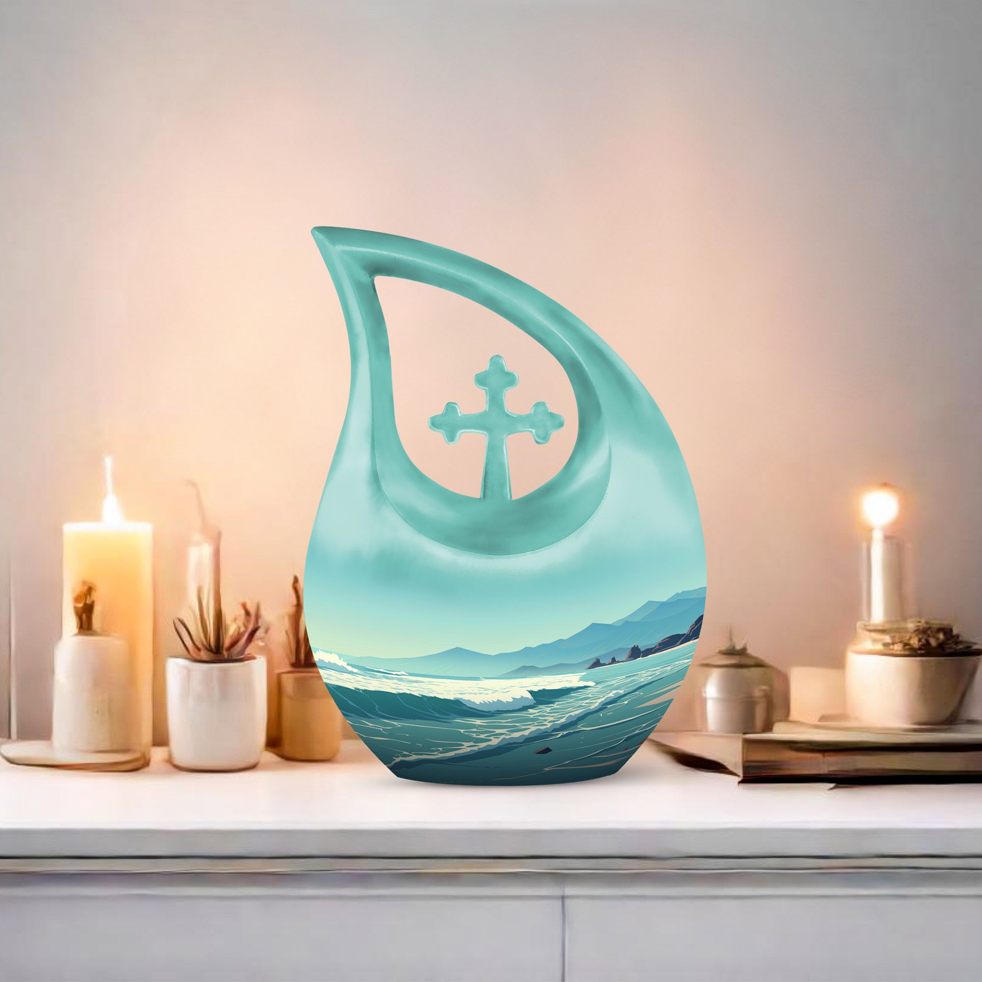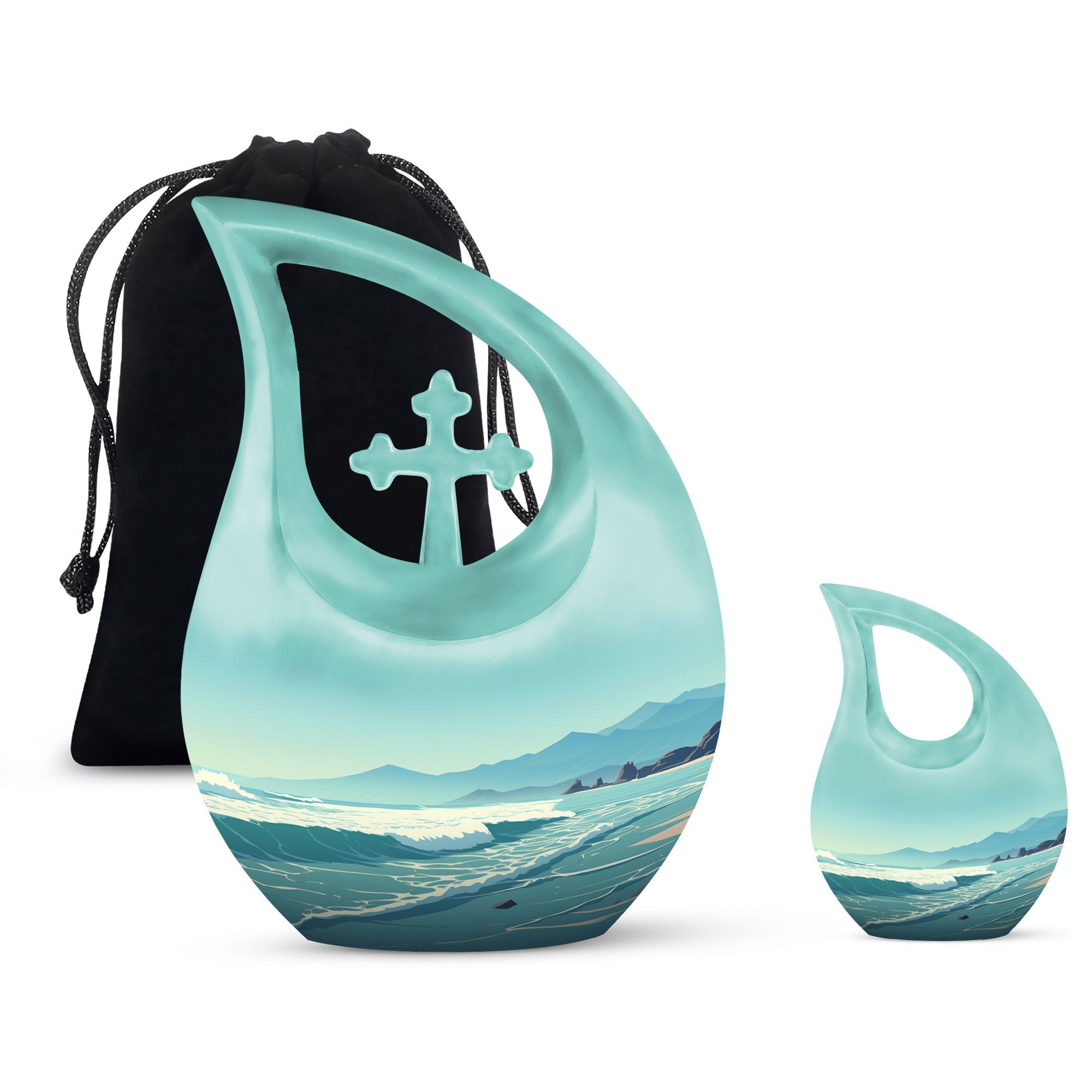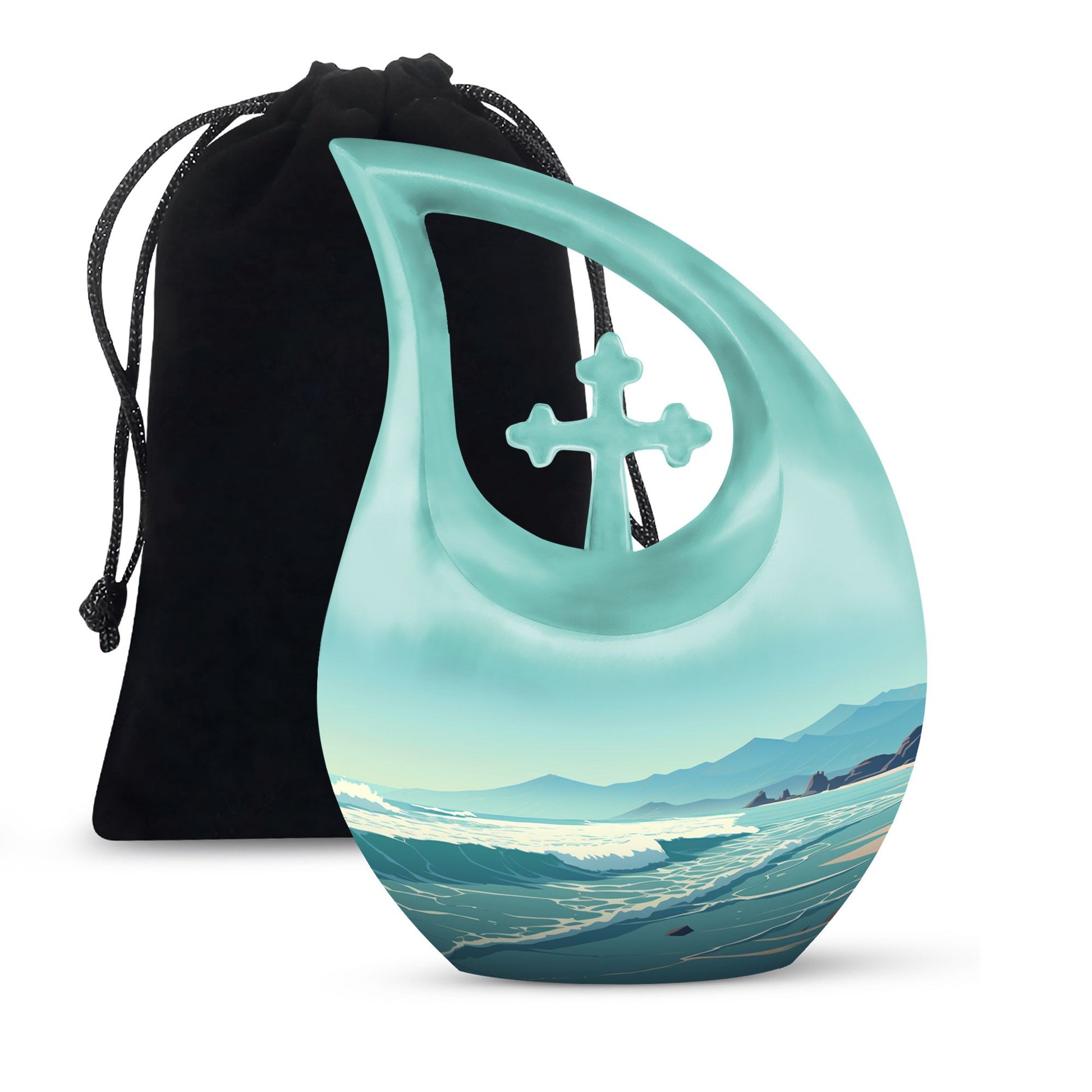 Honor the cherished memory of your loved ones with our meticulously crafted Wilderness Urn, a standout amid memorial urns in terms of both quality and symbolism. Reverently designed in a 'Cross Drop' pattern, this 'Large Urn' measures '10 inches' in height and accommodates up to '200 cubic inches' of ashes. The urn exhibits a robust construction with 'Aluminium', ensuring durability and longevity. It comes with a velvet pouch that aids in secure containment and transportation of precious ashes. Weighing only '3.3 pounds', it adds minimal burden to your poignant moments. Personalize this urn with engraved names, making it exclusively yours. Embrace this serene Wilderness theme, a tribute to your loved ones' adventurous spirit. Consider this urn when seeking Funeral Urns for Adults, Custom Urns for Human Ashes, or Small Urns for Ashes online. Celebrate a life well-lived with our precious Wilderness Urn designed especially for Mom.