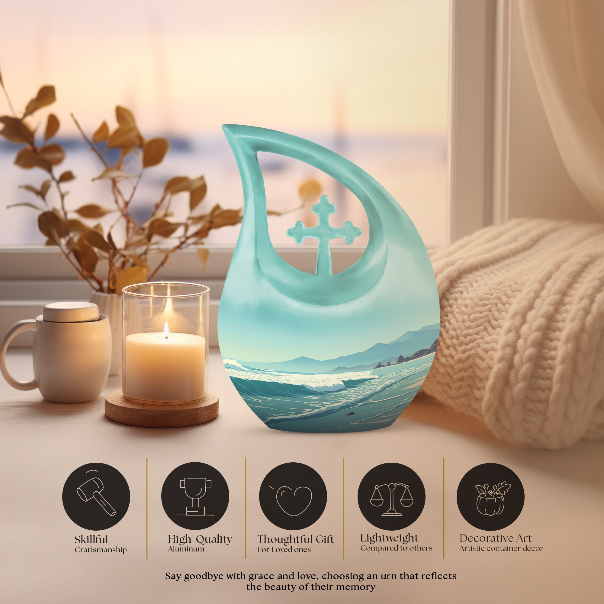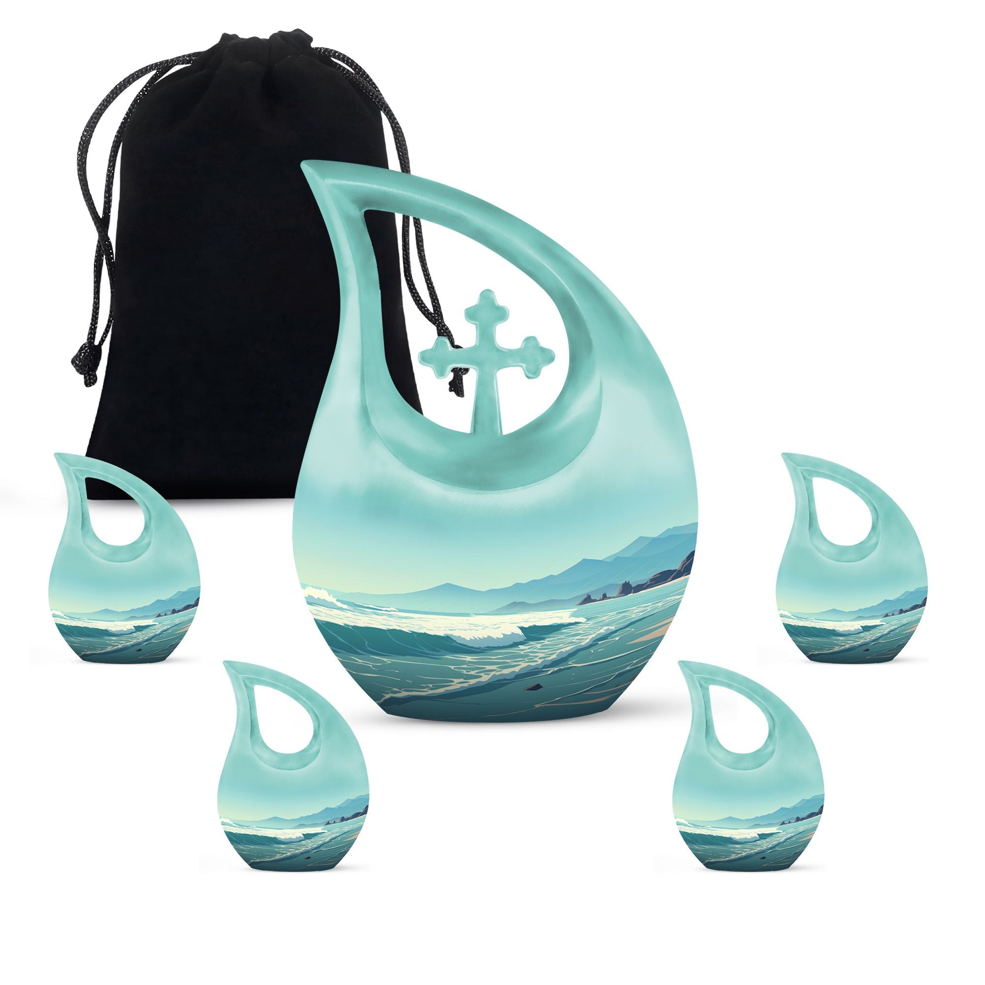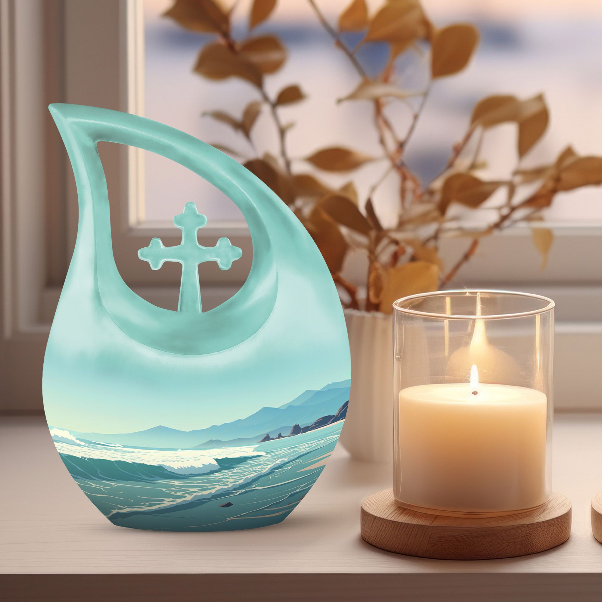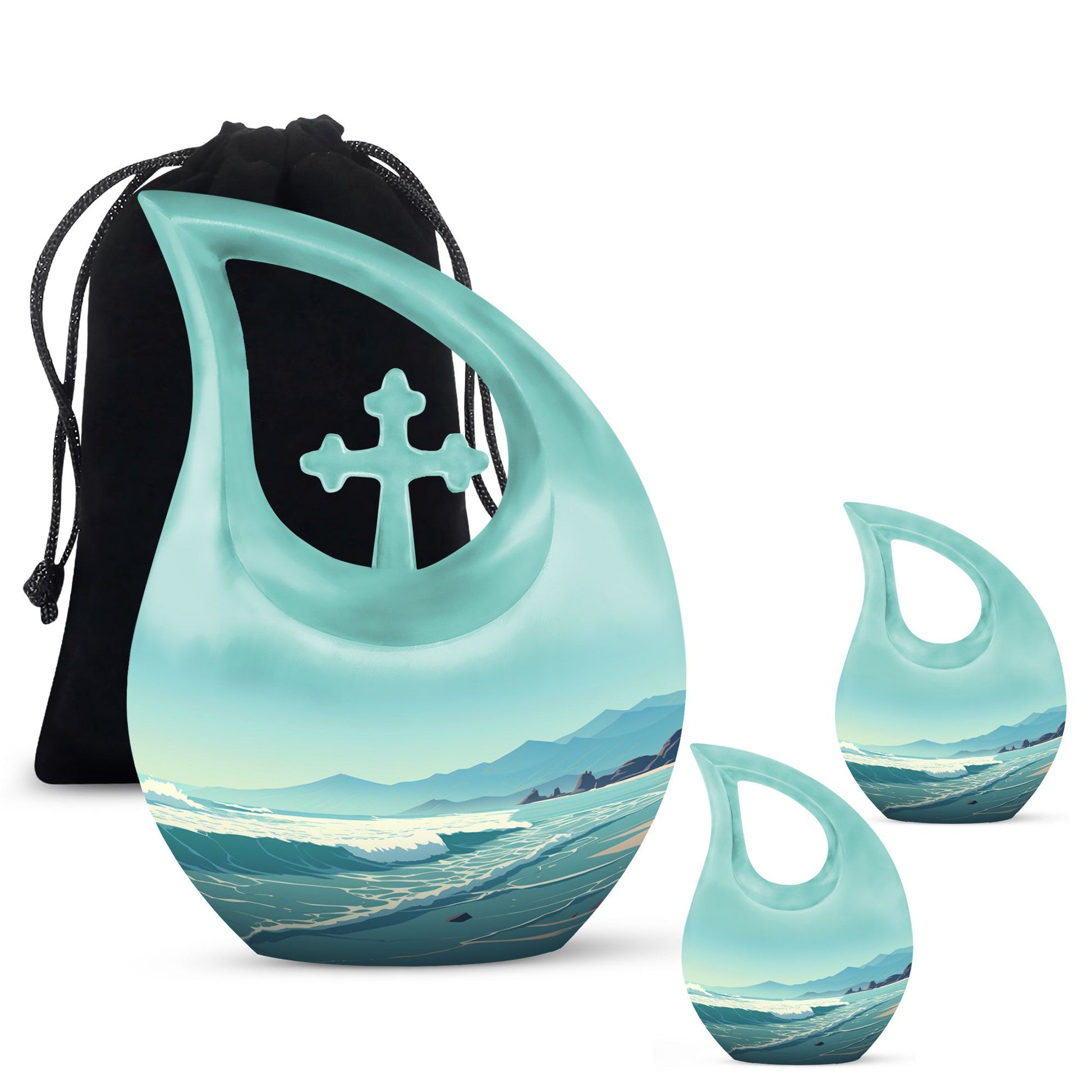 Honor the cherished memory of your loved ones with our meticulously crafted Wilderness Urn, a standout amid memorial urns in terms of both quality and symbolism. Reverently designed in a 'Cross Drop' pattern, this 'Large Urn' measures '10 inches' in height and accommodates up to '200 cubic inches' of ashes. The urn exhibits a robust construction with 'Aluminium', ensuring durability and longevity. It comes with a velvet pouch that aids in secure containment and transportation of precious ashes. Weighing only '3.3 pounds', it adds minimal burden to your poignant moments. Personalize this urn with engraved names, making it exclusively yours. Embrace this serene Wilderness theme, a tribute to your loved ones' adventurous spirit. Consider this urn when seeking Funeral Urns for Adults, Custom Urns for Human Ashes, or Small Urns for Ashes online. Celebrate a life well-lived with our precious Wilderness Urn designed especially for Mom.