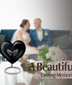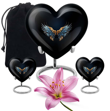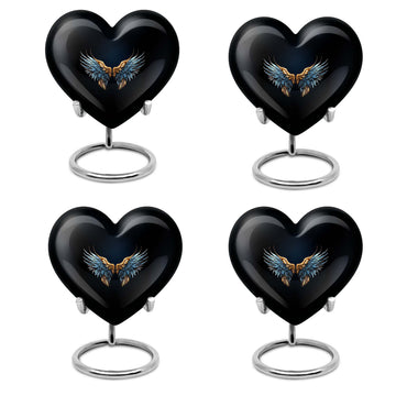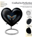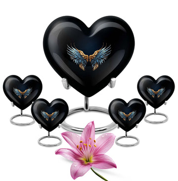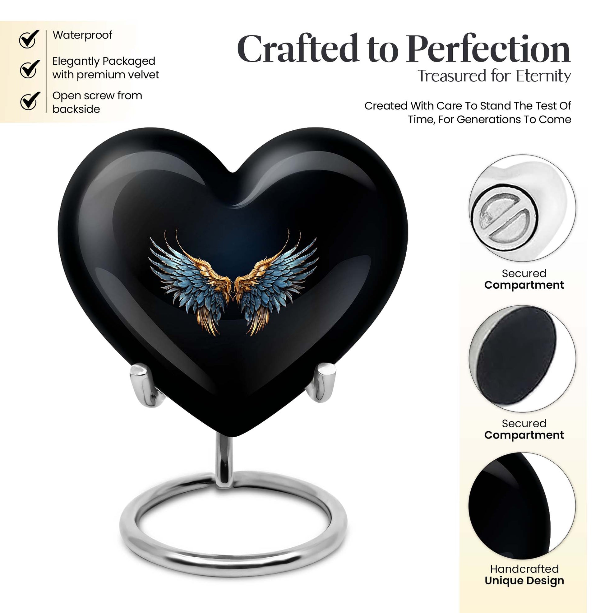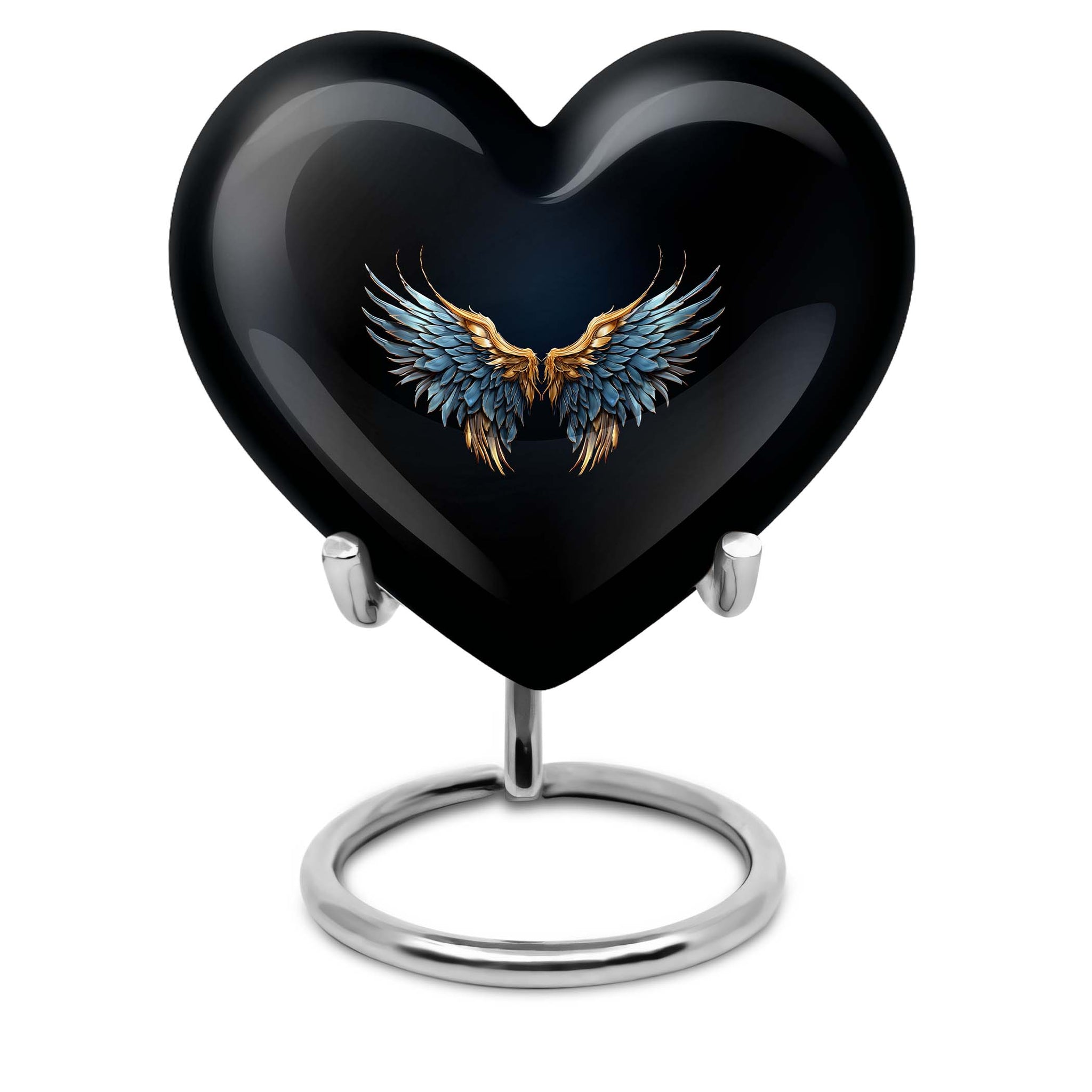 Discover an extraordinary way to cherish loved ones with this unique Wings Blue Urn. Skillfully crafted from high-quality Aluminium, this 10-inch large urn speaks volumes about the love and respect you hold for the departed. The Heart urn theme harmoniously unites the strength of love with a delicate Butterfly theme, offering a symbol of transformation and rebirth. With a remarkable capacity of 200 cubic inches, it serves as a dignified vessel for cremation ashes. Ensuring complete care and respect, the package includes a velvet pouch perfect for containment of ashes. Additionally, the weight of 3.3 pounds gives it a substantial and reassuring presence. For an unforgettable finishing touch, we offer personalization with engraved names, making this more than just a cremation urn but a unique memory keeper. Cease your search for 'funeral unique urns for human ashes' and choose this splendid memorial medium urn to celebrate a life splendidly lived.