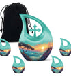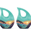 Each adult burial urn in this collection is crafted from durable aluminium, featuring a serene beach scene that evokes calm and everlasting memory. The cremation urn for ashes includes a large 10 inch urn and matching cremation keepsakes for ashes, ideal for sharing remains among family members. The craftsmanship ensures long-lasting beauty, while the secure screw-top lid provides peace of mind.
