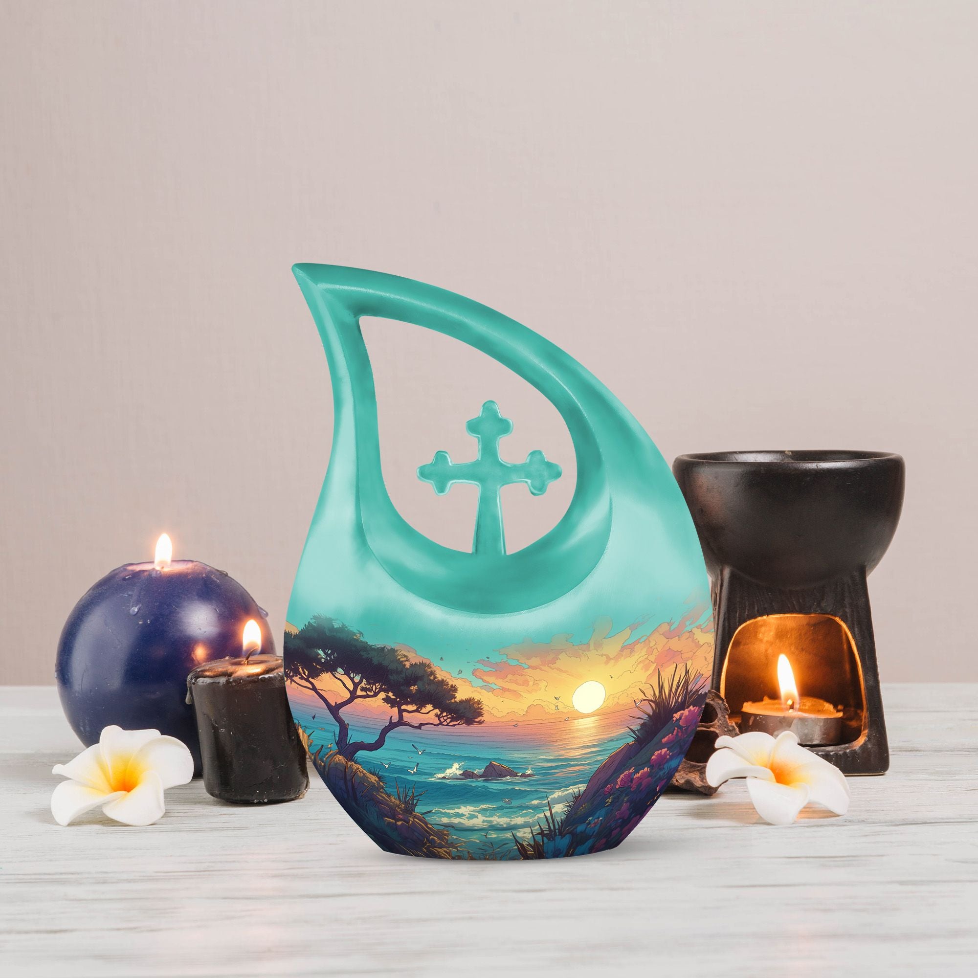 Whether used as a burial urn or kept as a cremation keepsake for ashes, this beach-themed design serves as a comforting reminder of timeless love. It’s especially meaningful as an urn for cremation ashes mother, symbolizing warmth, peace, and eternal connection.