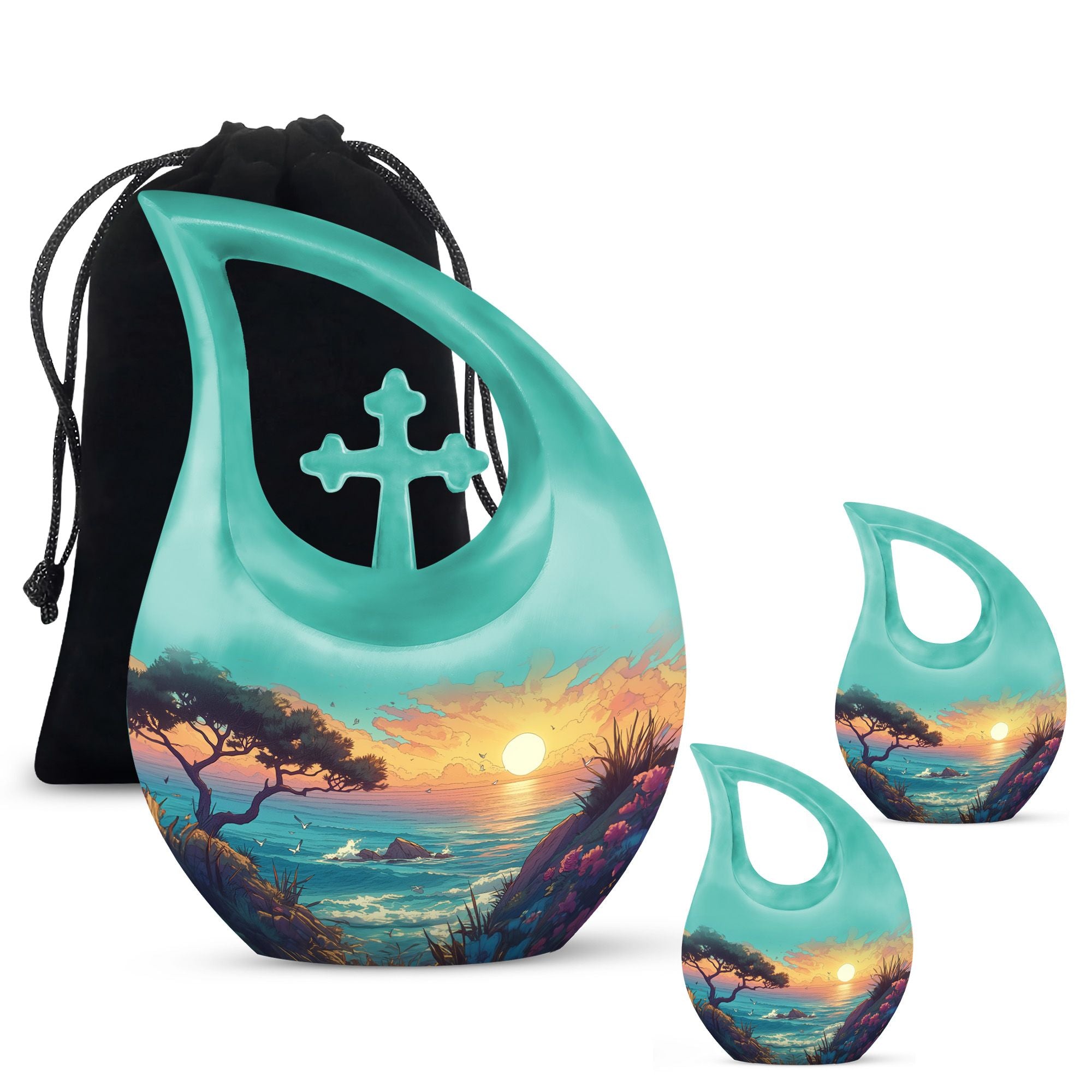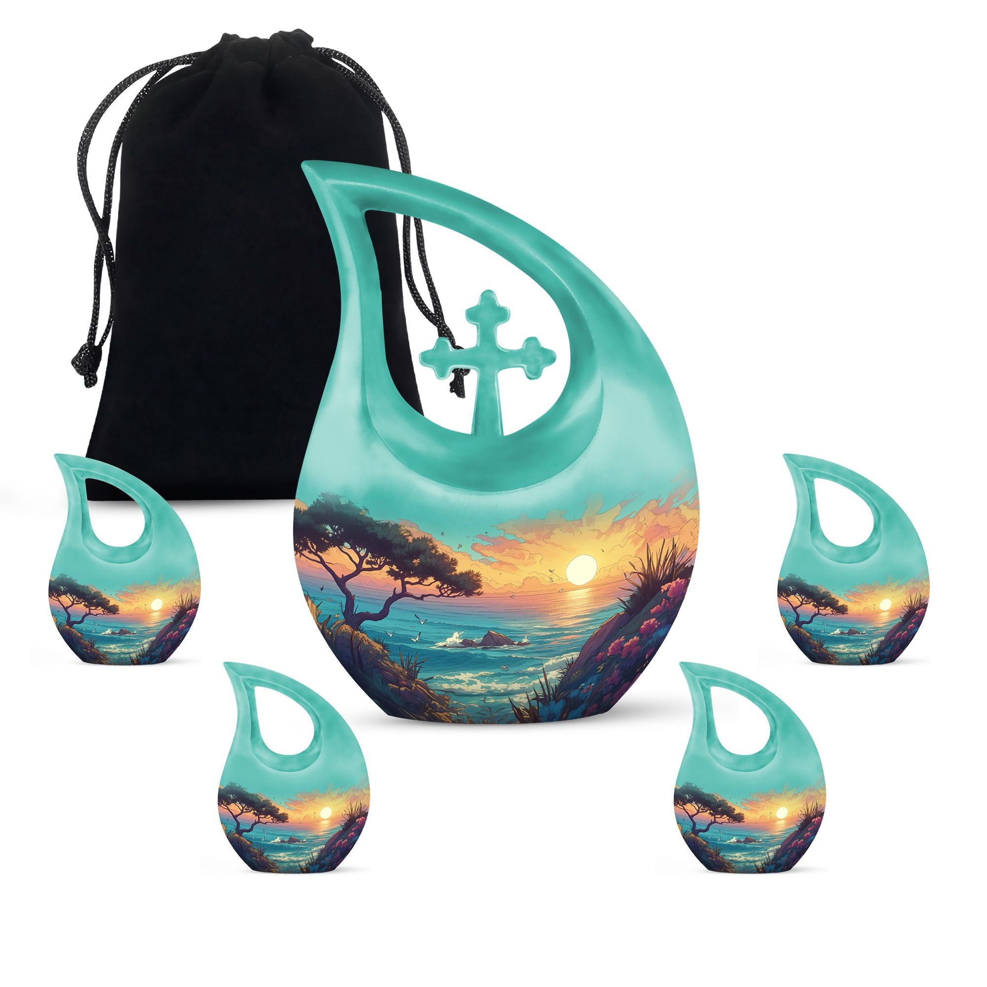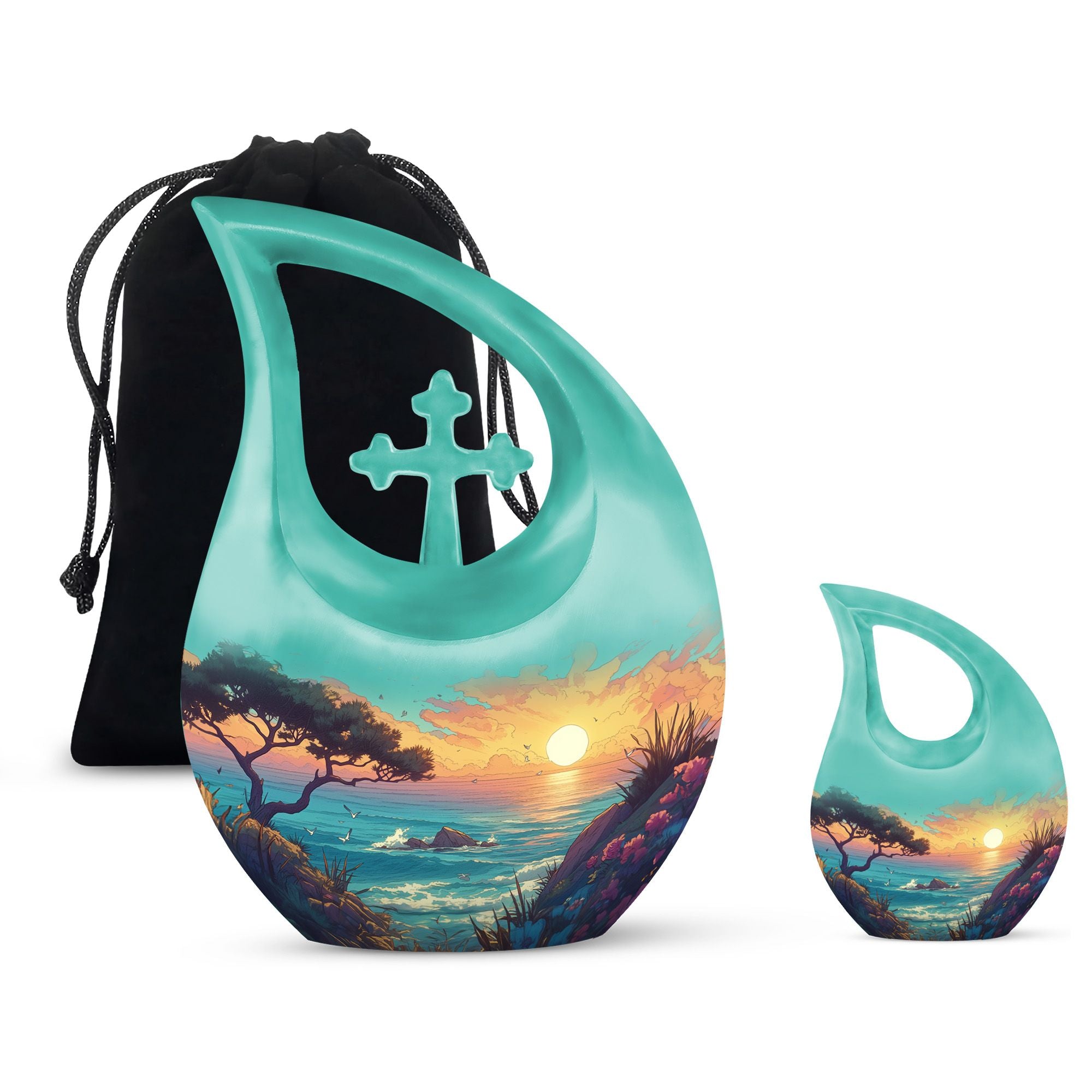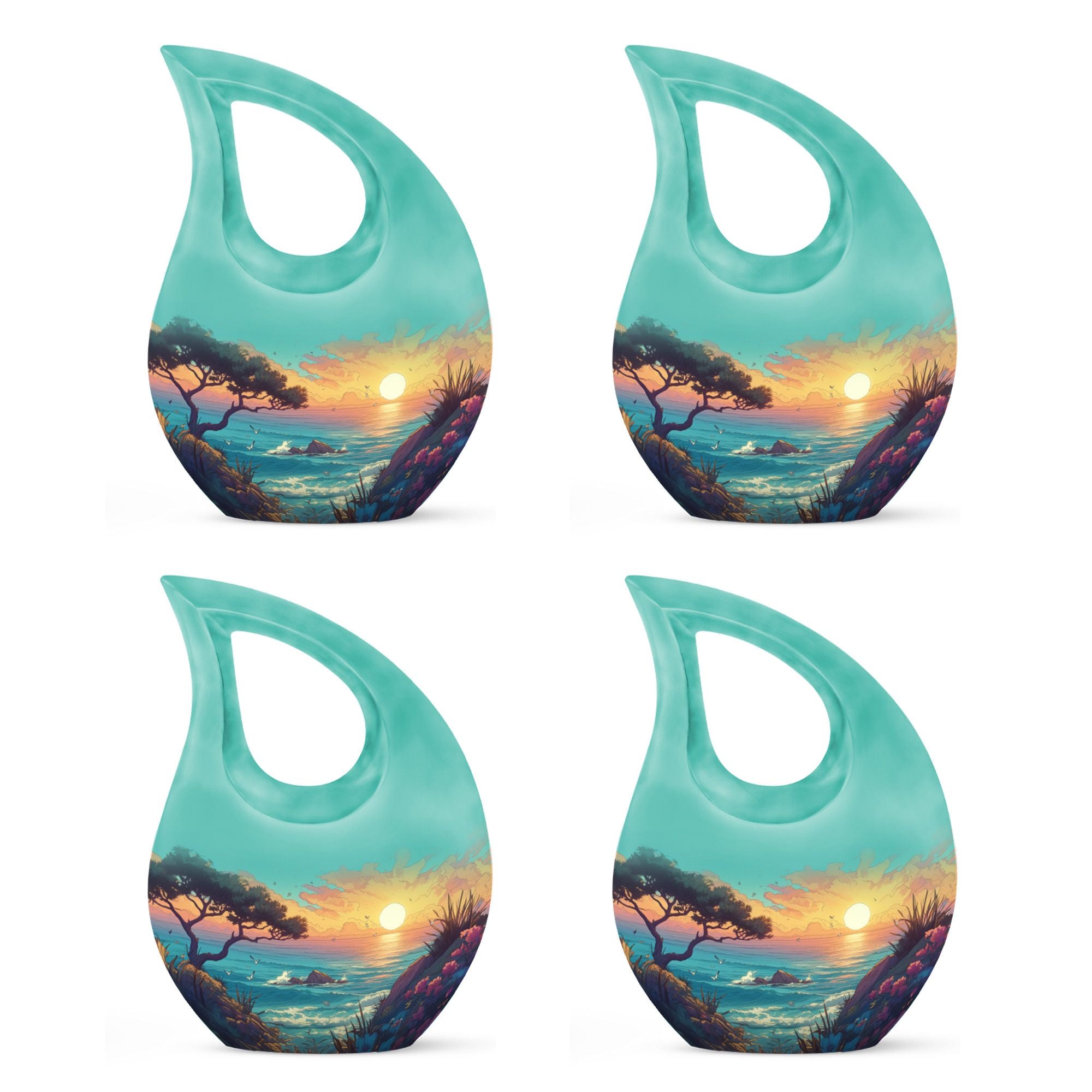 Celebrate a life beautifully lived with this Illustrated Beach Shore Cremation Urn Combo Set. Designed to bring peace and remembrance, this elegant collection of burial urns for human ashes reflects serenity with its gentle coastal imagery. It’s a touching tribute, perfect for preserving the ashes of a loved one with dignity and love.