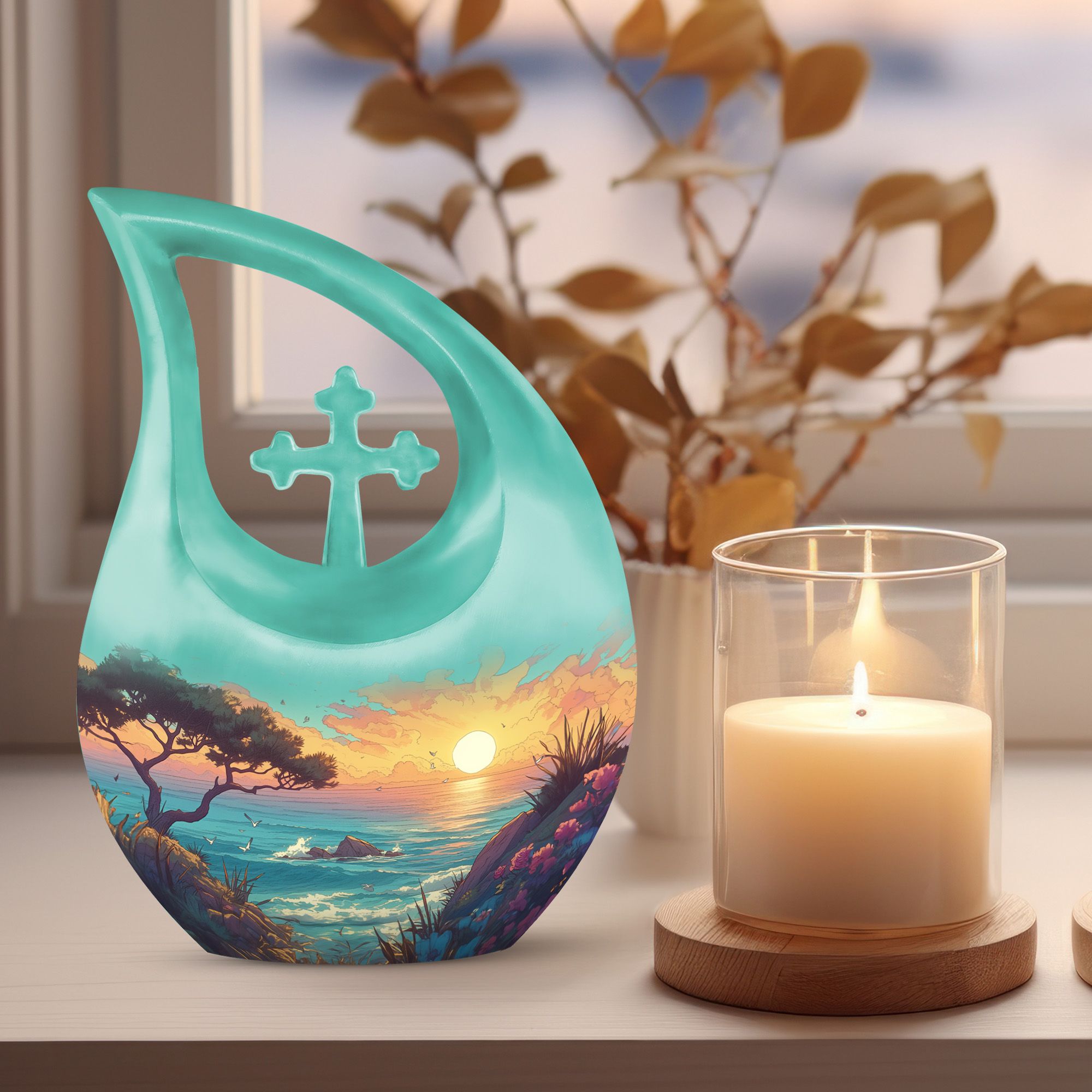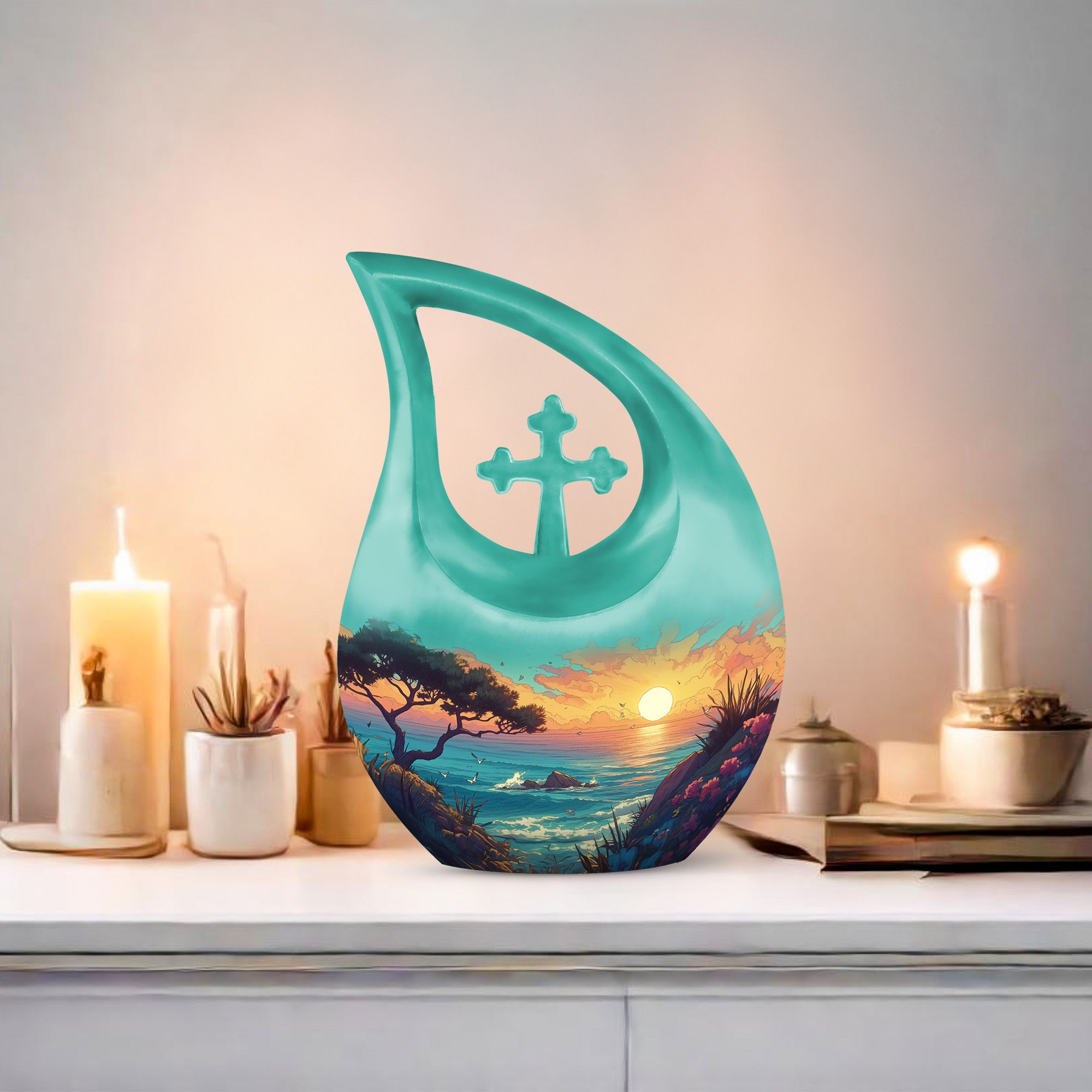 Whether used as a burial urn or kept as a cremation keepsake for ashes, this beach-themed design serves as a comforting reminder of timeless love. It’s especially meaningful as an urn for cremation ashes mother, symbolizing warmth, peace, and eternal connection.