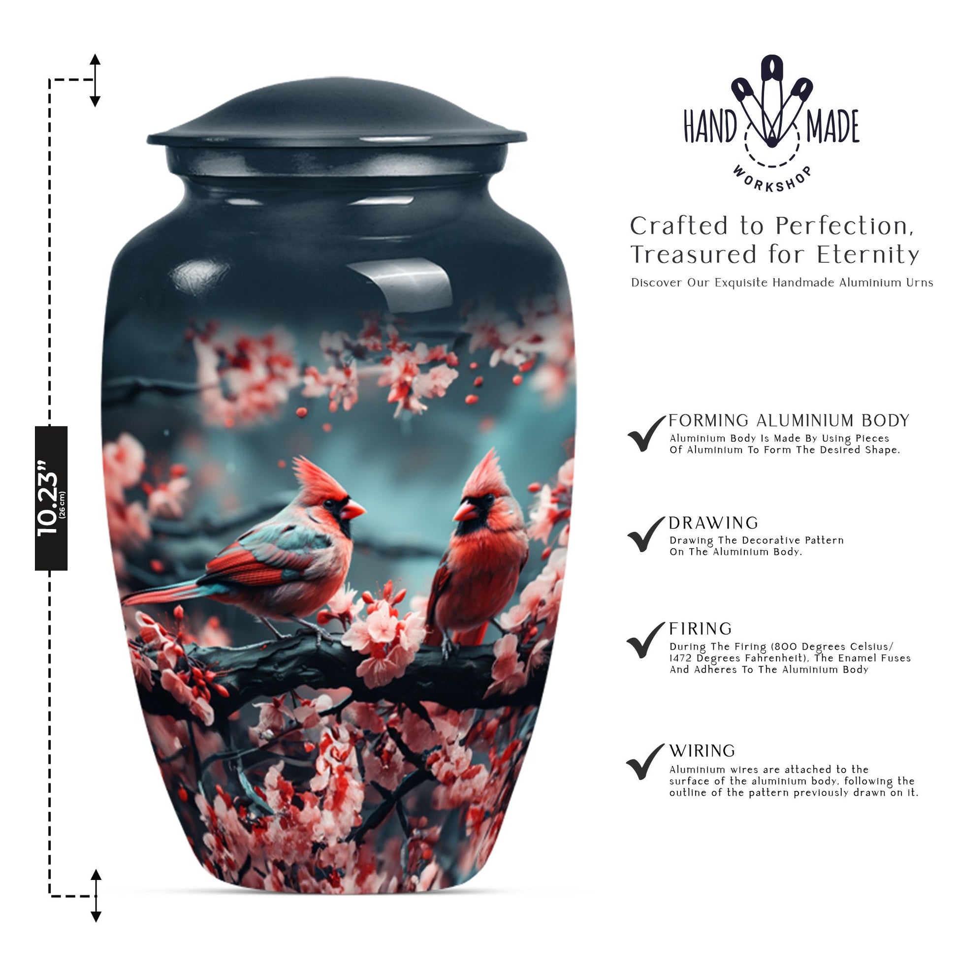 In remembrance of your loved one, this 10-inch 'Wolf Howling' themed Large Urn stands as a testament of majesty and respect. Exquisitely crafted from aluminum, the urn comfortably holds up to 200 cubic inches of ashes, making it an ideal choice for an adult male. Weighing a sturdy 3.3 pounds and standing 10 inches in height, it bears a sense of solidity and permanence. As 'urns for ashes adult male large urn' or 'burial ashes urn', it offers an honorable and dignified sentiment. Coming with a complimentary velvet pouch, it secures the ashes content safely. More so, we offer the opportunity to 'Personalize with engraved names', making every urn unique and bespoke. Suited perfectly as 'cremation funeral urns' or 'urns for cremation ashes', this urn combines tradition with timeless design. Avoid using generic terms like 'urn human ash humans' or 'cremation urns for adult ashes', and instead explore the uniqueness of this piece.