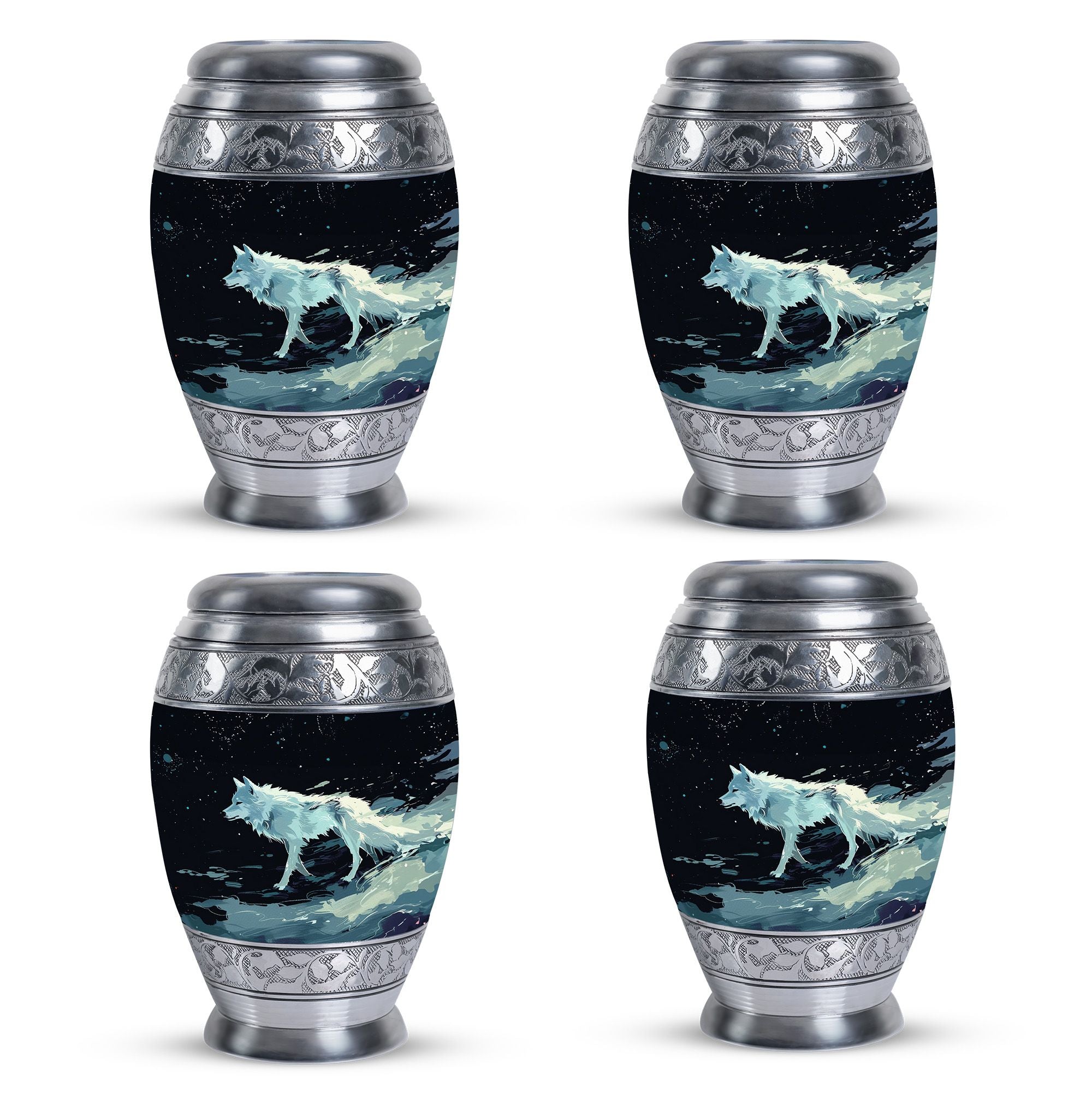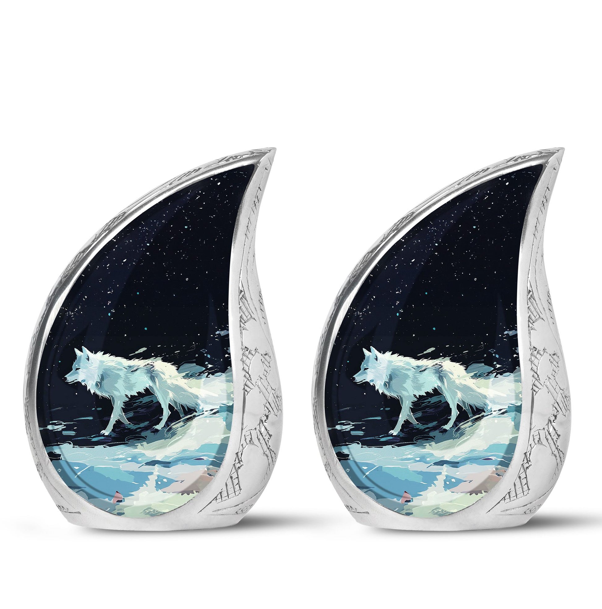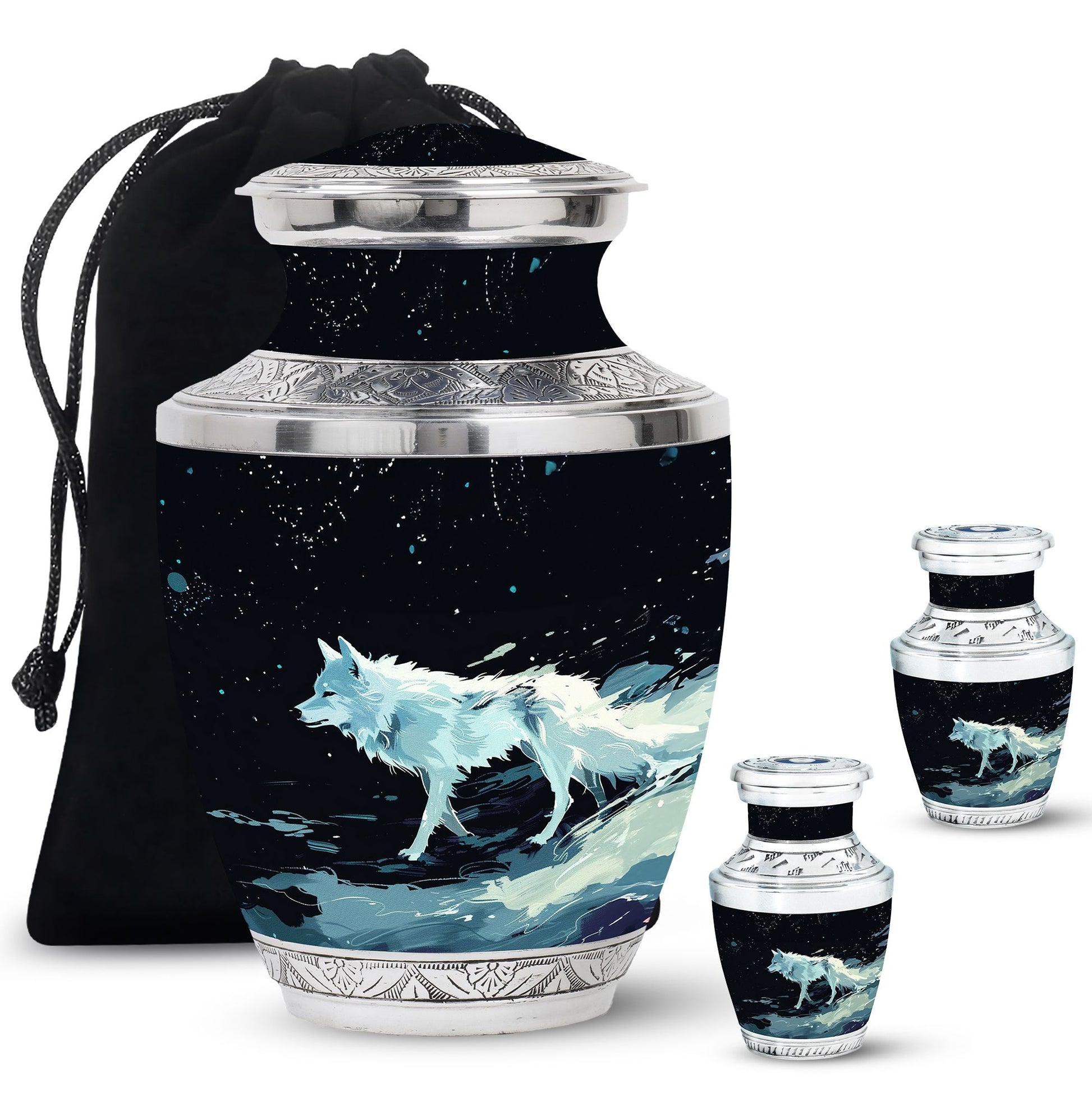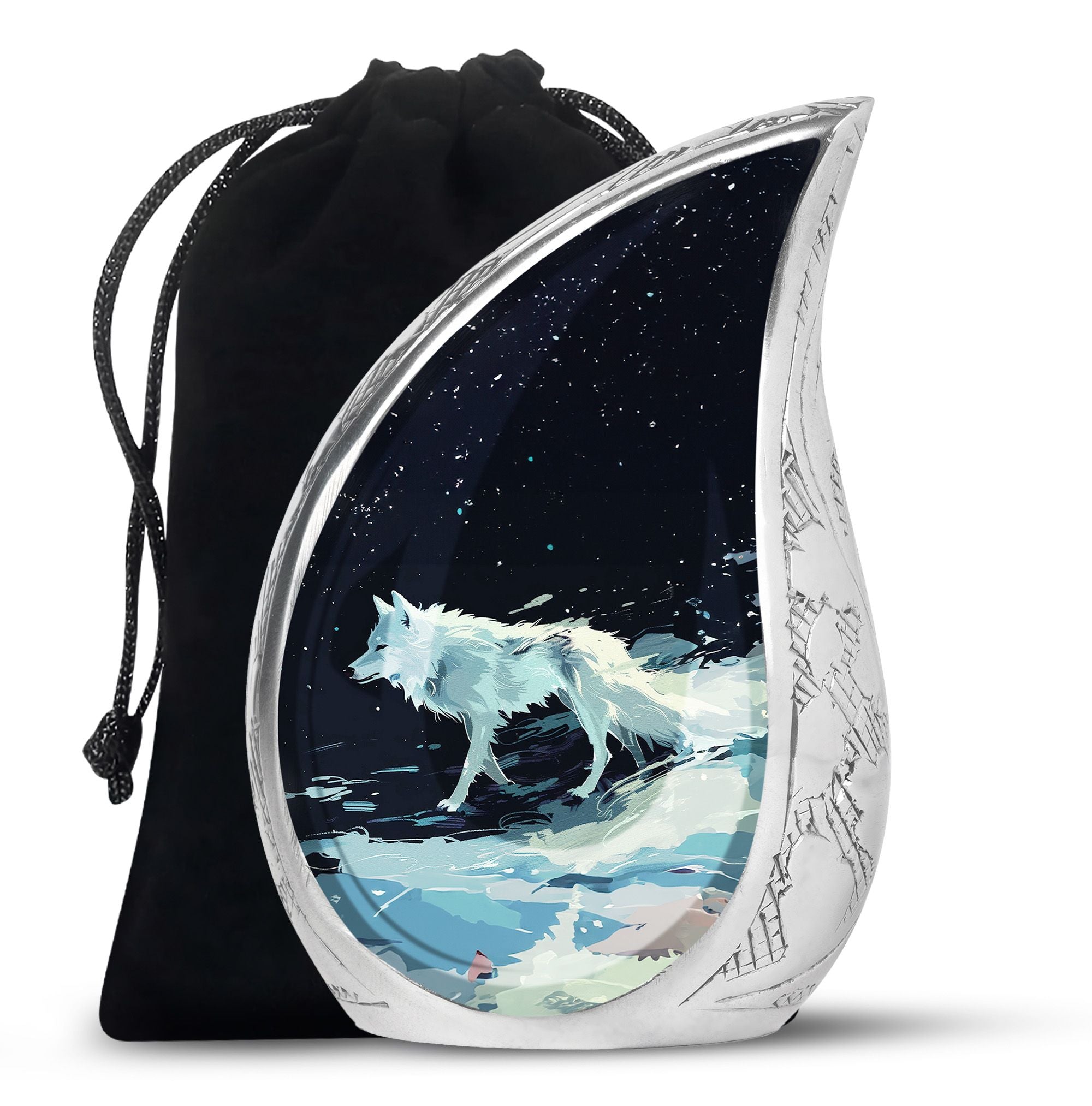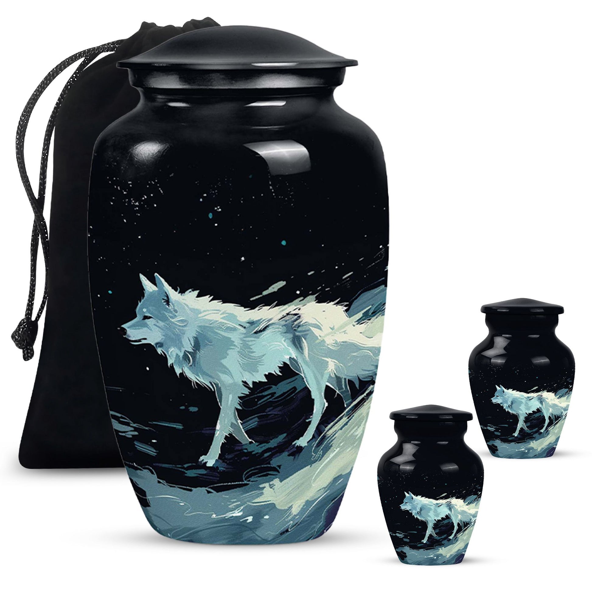 Expertly crafted from high-quality ceramic, this wolf cremation urn combines elegance with durability. The detailed wolf drawing embodies grace and power, making it a striking piece among wolf urns for cremation or cremation urn wolf collections. Its design balances artistry and functionality, offering a secure and stylish resting place for ashes. Ideal as a wolf urn for ashes, it complements both traditional and contemporary urnes style wolf displays.