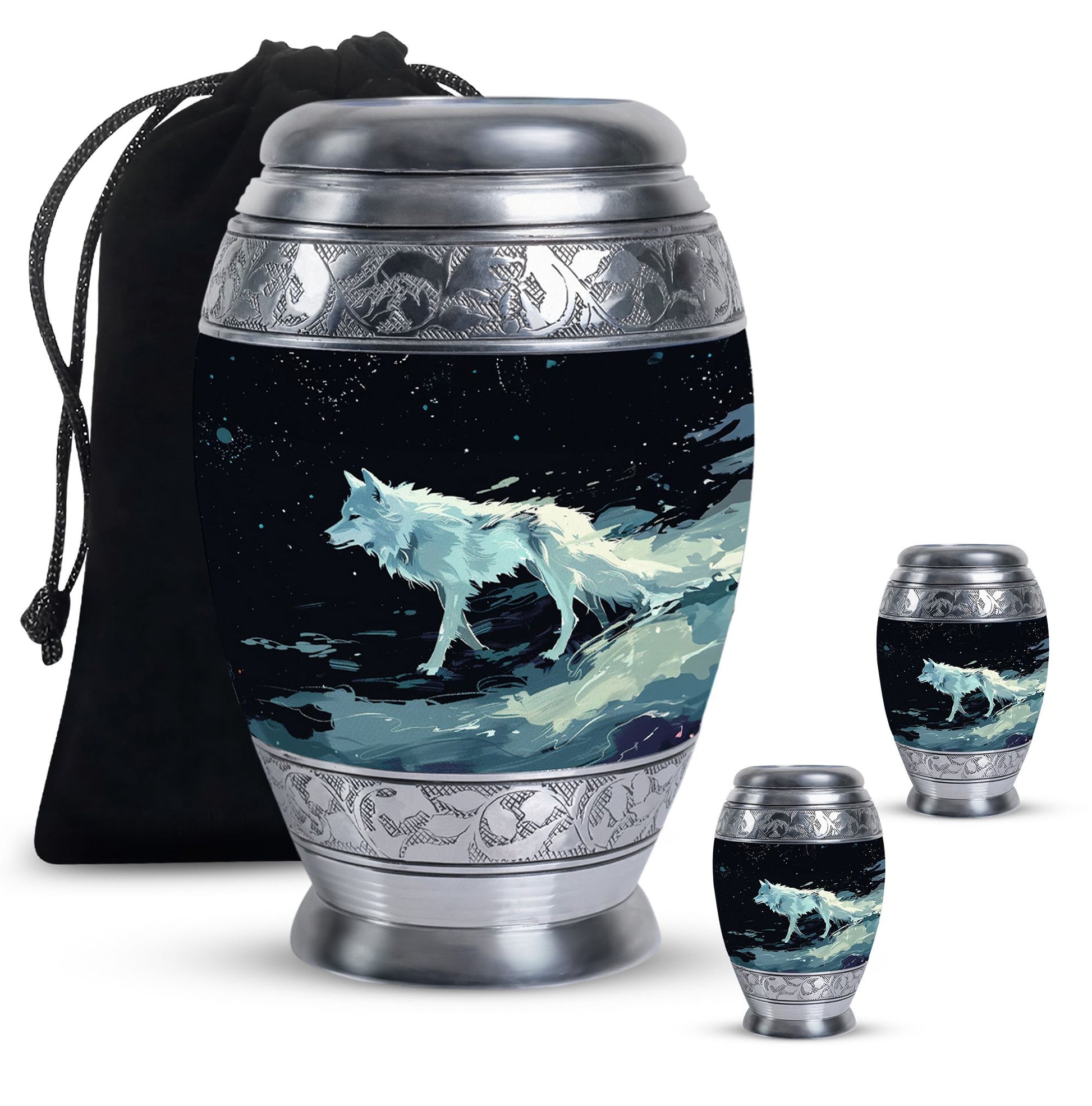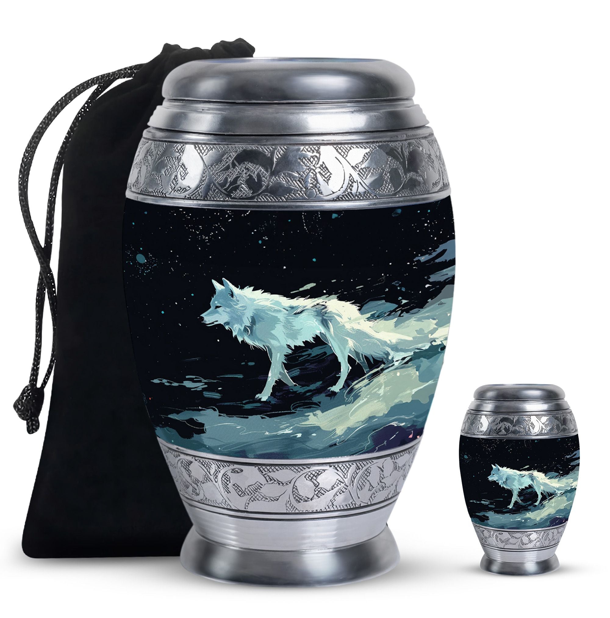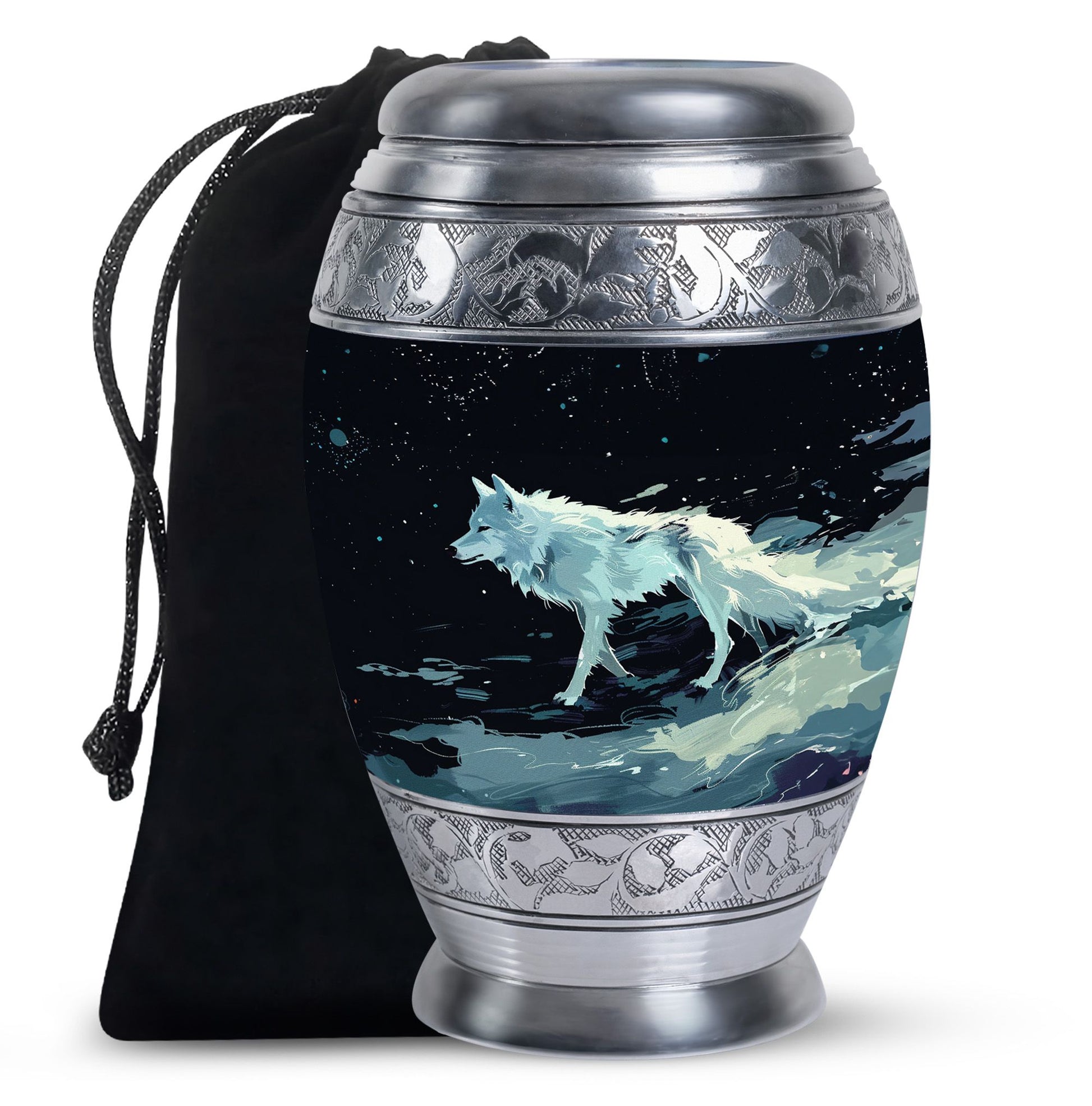 Celebrate the enduring spirit of your loved one with this wolf urn, a meaningful way to honor memories. Designed as a tribute, this cremation wolf urn captures strength, loyalty, and the essence of a beloved life. Perfect for those seeking wolf urns for human ashes, it serves as a dignified memorial for adult family members or cherished pets.