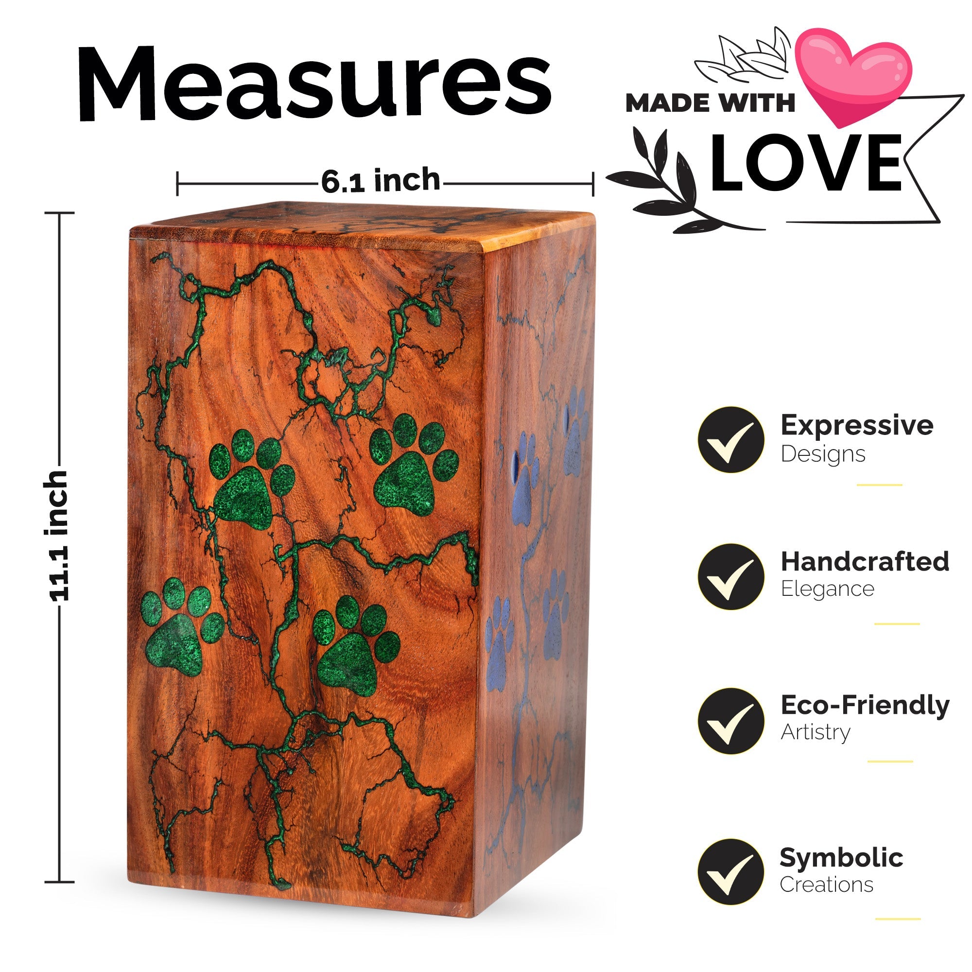 • Versatile Size: These large wood urns for pet ashes are designed to accommodate the ashes of an pet, ensuring a respectful and secure repository.