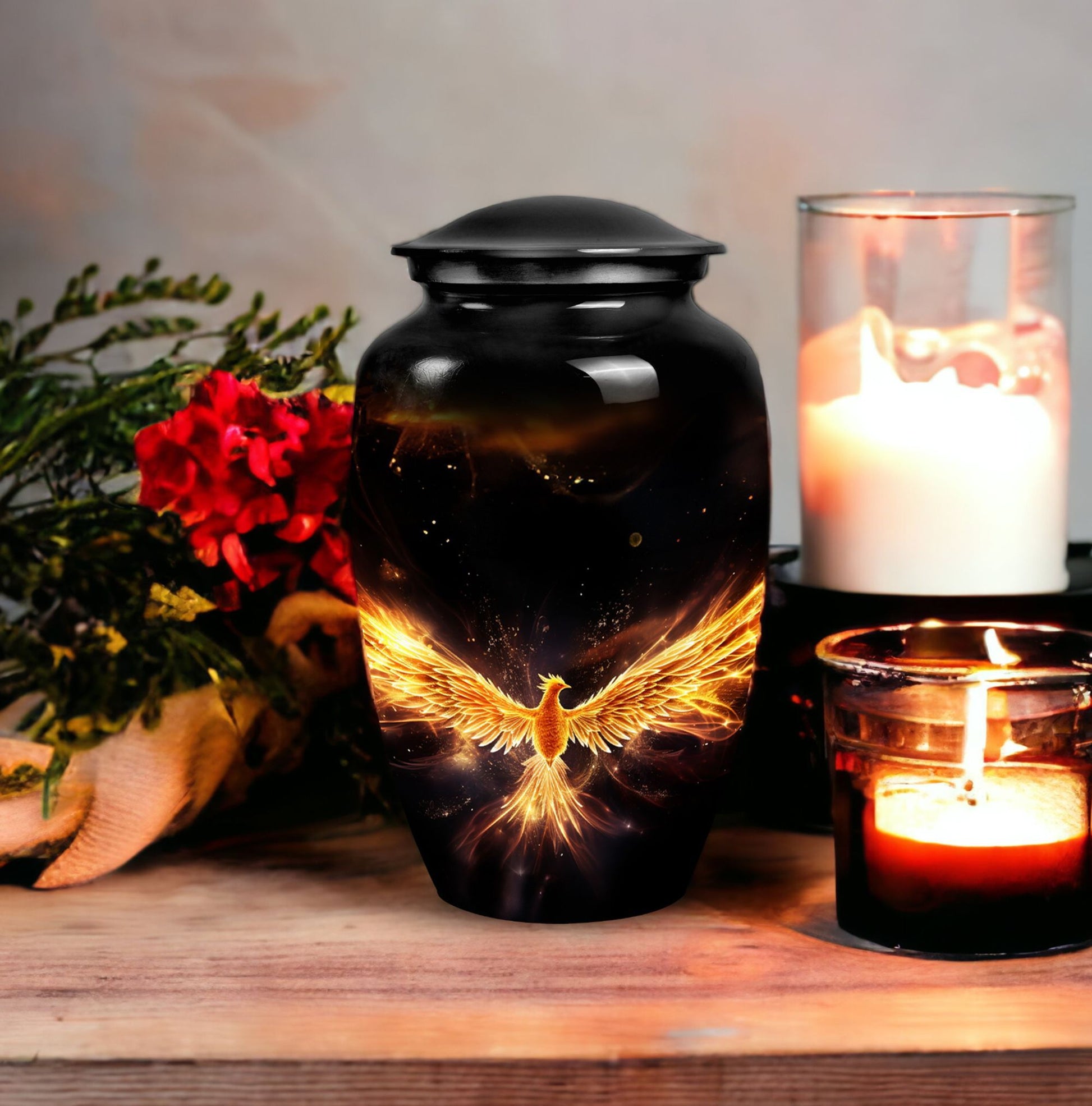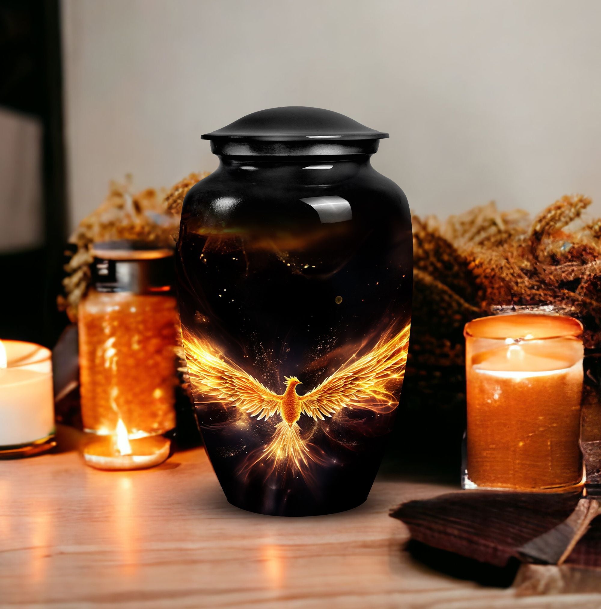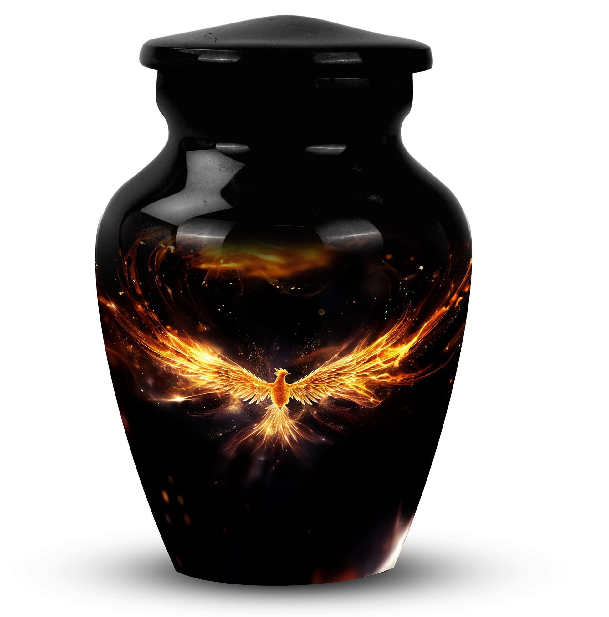 For those bearing the weight of loss, find comfort in the secure containment of your loved one's ashes in the Yellow Phoenix Urn. Its 3.3 pound weight and compact 3-inch size, combined with an impressive capacity of 200 cubic inches, make this the desired purchase for those seeking large urns. Each classic urn stands tall at 10 inches in height, constructed with premium aluminium—a hallmark of durability. Personalization is not out of reach; each urn can be adorned with engraved names bringing a unique, sentimental value to this already profoundly meaningful product. Your purchase includes a plush velvet pouch, offering an added layer of protection and discretion. This cremation urn showcases a firm blend of tradition and modernity, catering specifically to those in need of human cremation ashes containment solutions. Exuding understated elegance, this personalized urn is a fitting tribute to the memory of those we hold dear. Opt for the Yellow Phoenix Urn, where classic design offers a haven for treasured memories.
