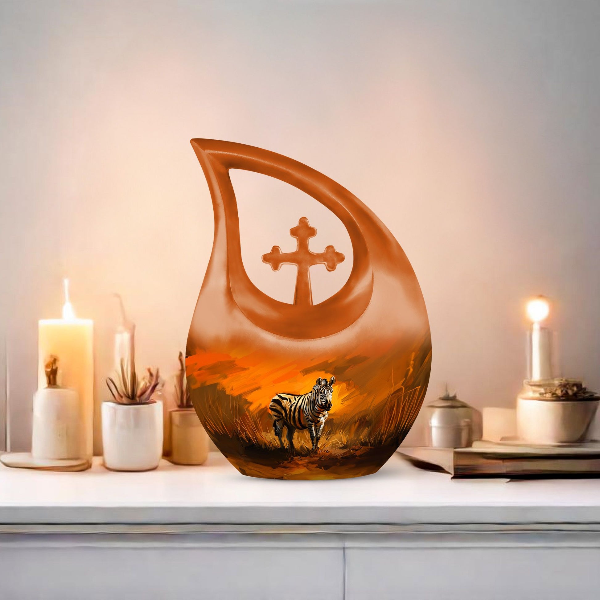 This Zebra Memorial Urn offers a unique and meaningful way to honor a cherished life. Designed for families seeking an Urn Ashes For Women or a versatile tribute for men and women alike, it provides a bold yet comforting presence that symbolizes individuality, strength, and everlasting love.