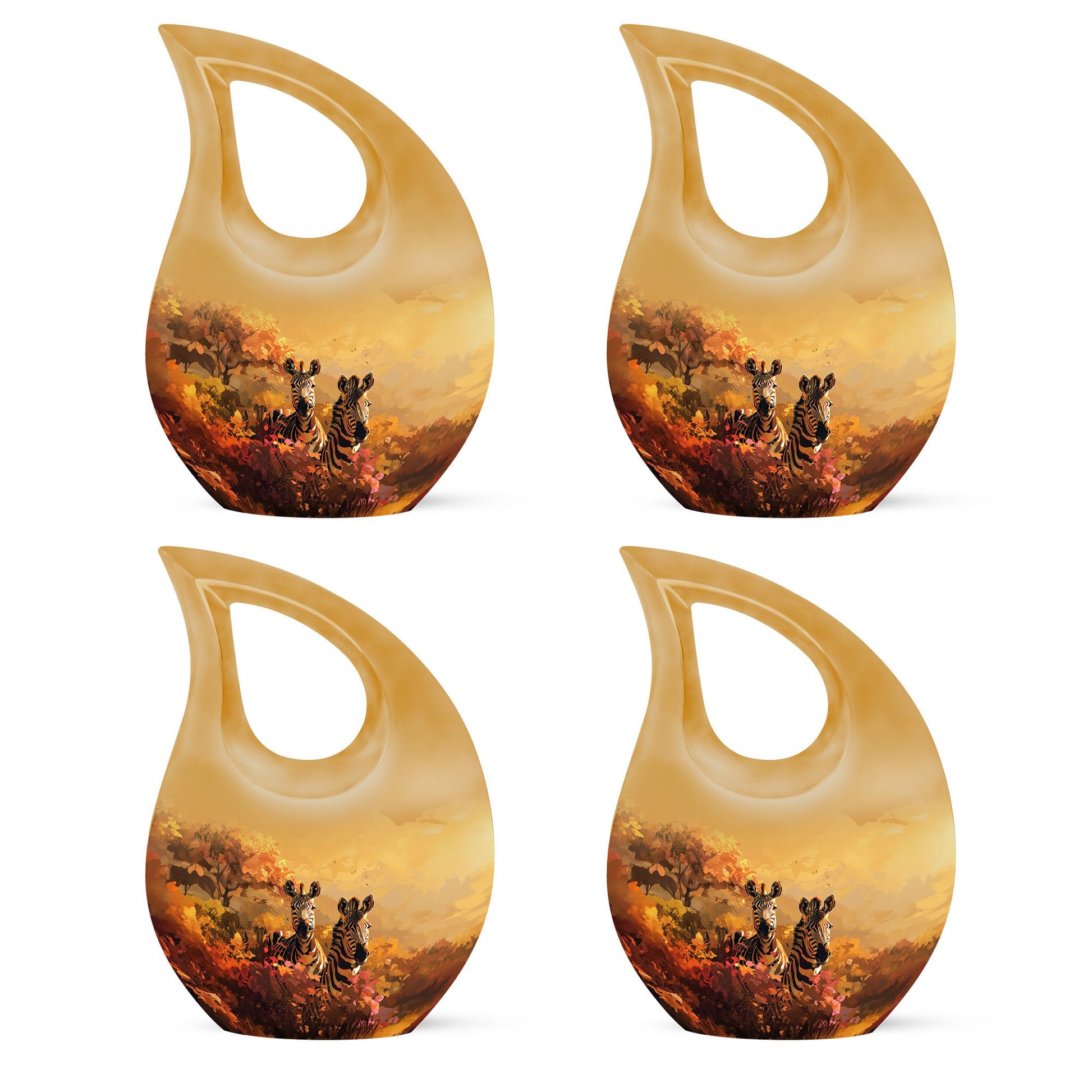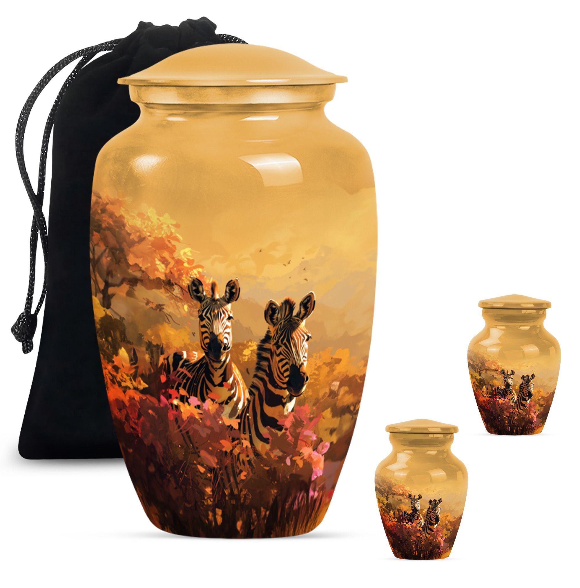 This **cremation urn for human ashes** is **designed with a symbolic zebra motif, representing leadership, individuality, and unwavering love**.