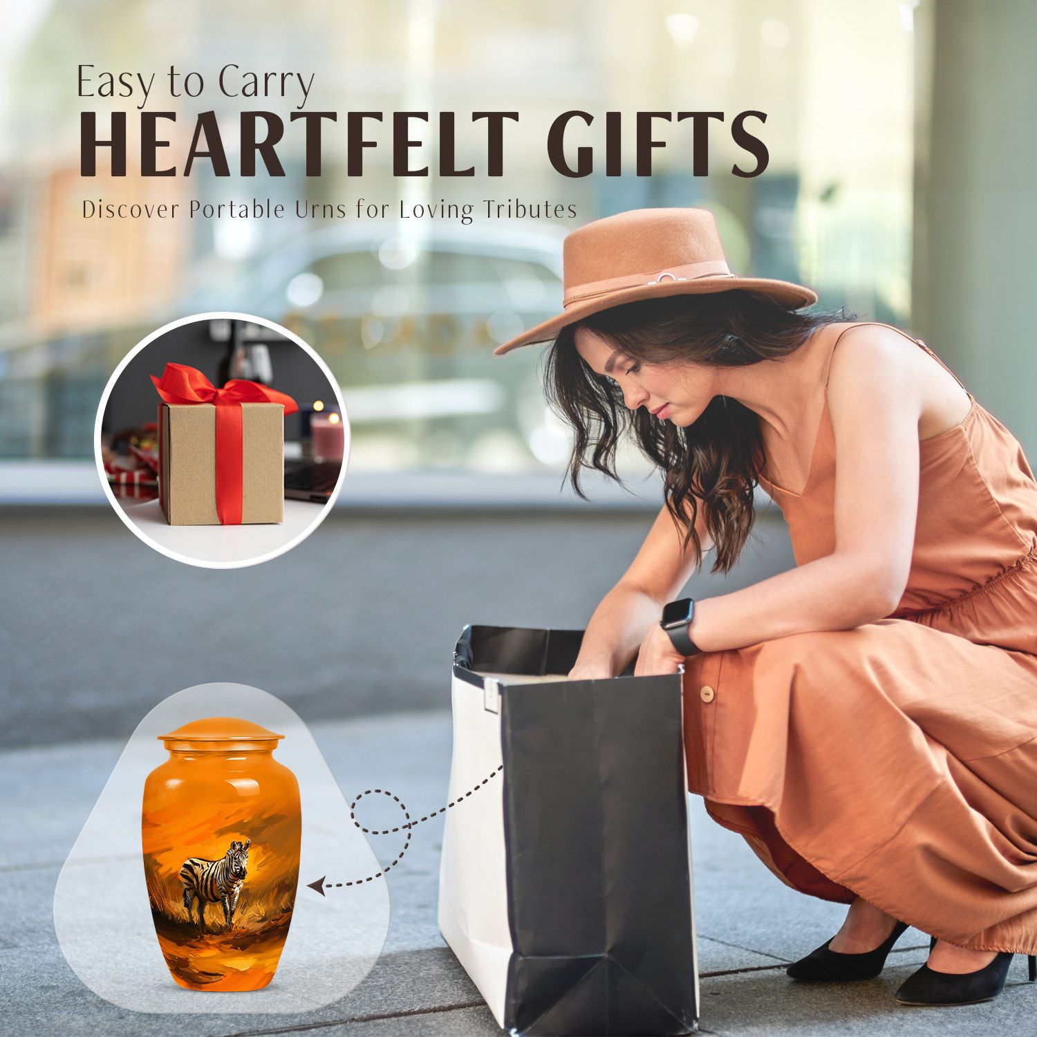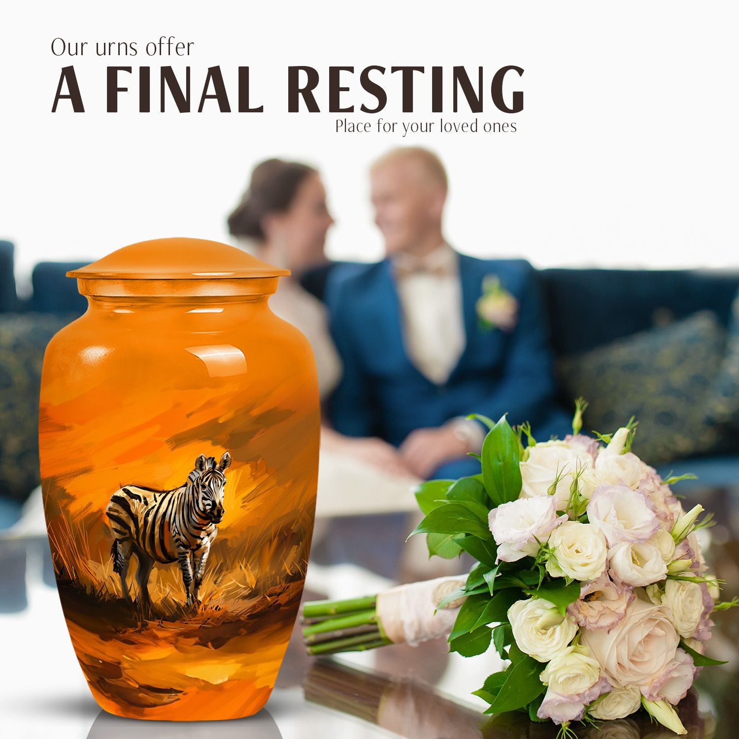 Celebrate and cherish the memory of a loved one with the Zebra Memorial Urn. Thoughtfully crafted, this urn provides a dignified way to honor life, serving as a beautiful adult urn for human ashes women, and a meaningful keepsake for women or men.