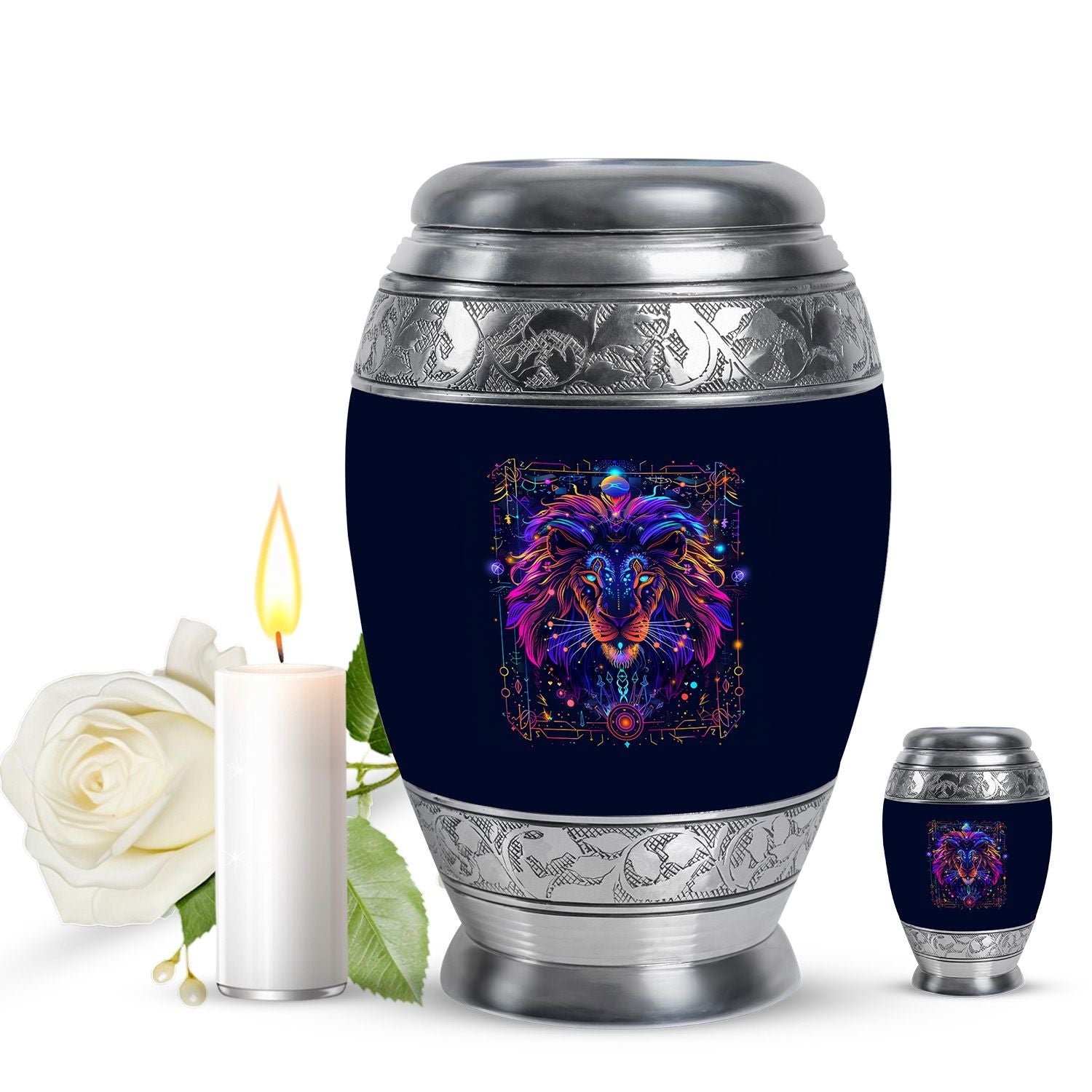 Embodying courage and strength, the neon lion symbolizes the spirit of your loved one. With its vibrant artistry and meaningful design, this urn provides both comfort and a beautiful focal point for remembrance, fitting for urn female ashes, urn female adult, or any cherished memory you wish to preserve.