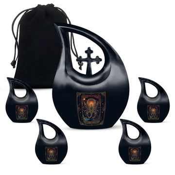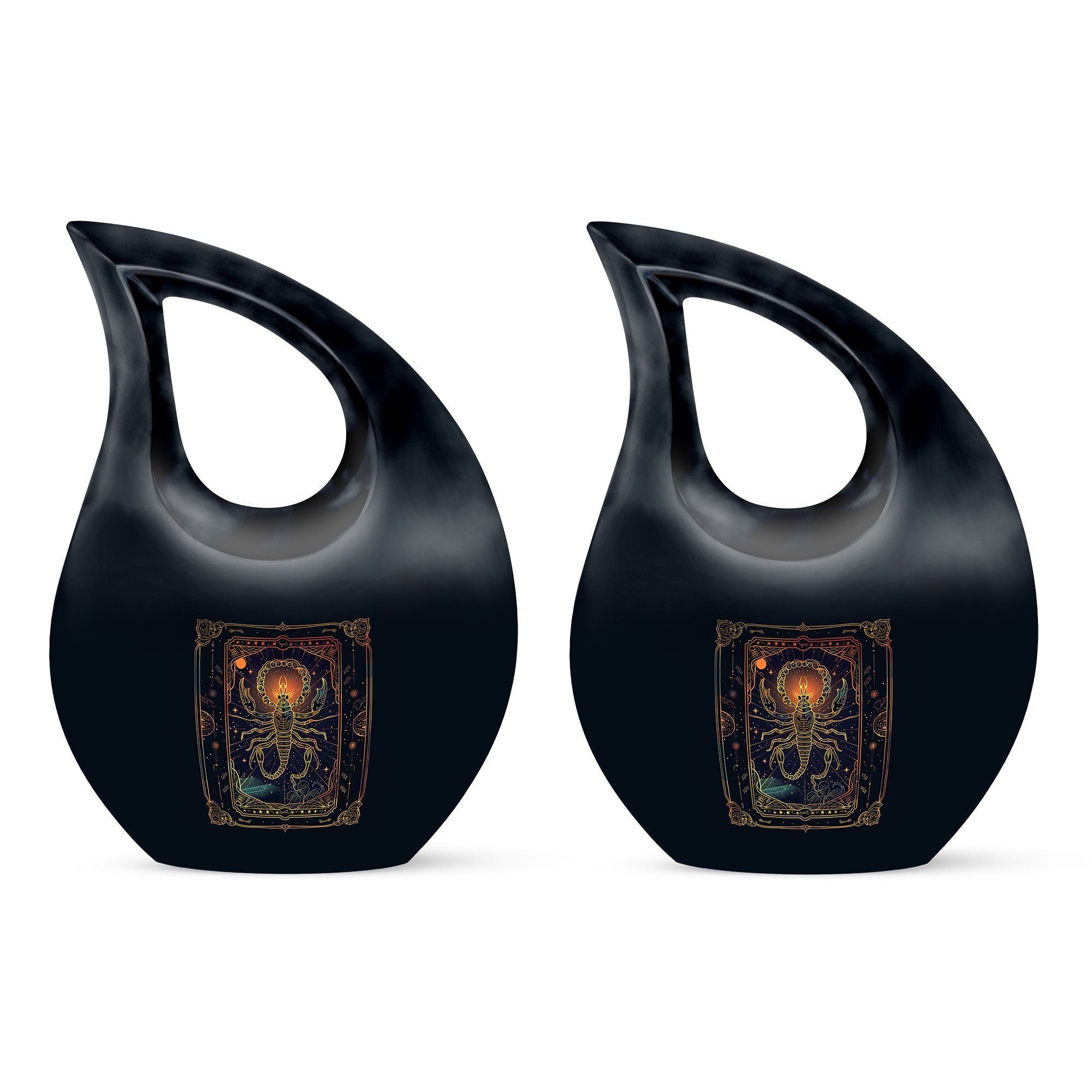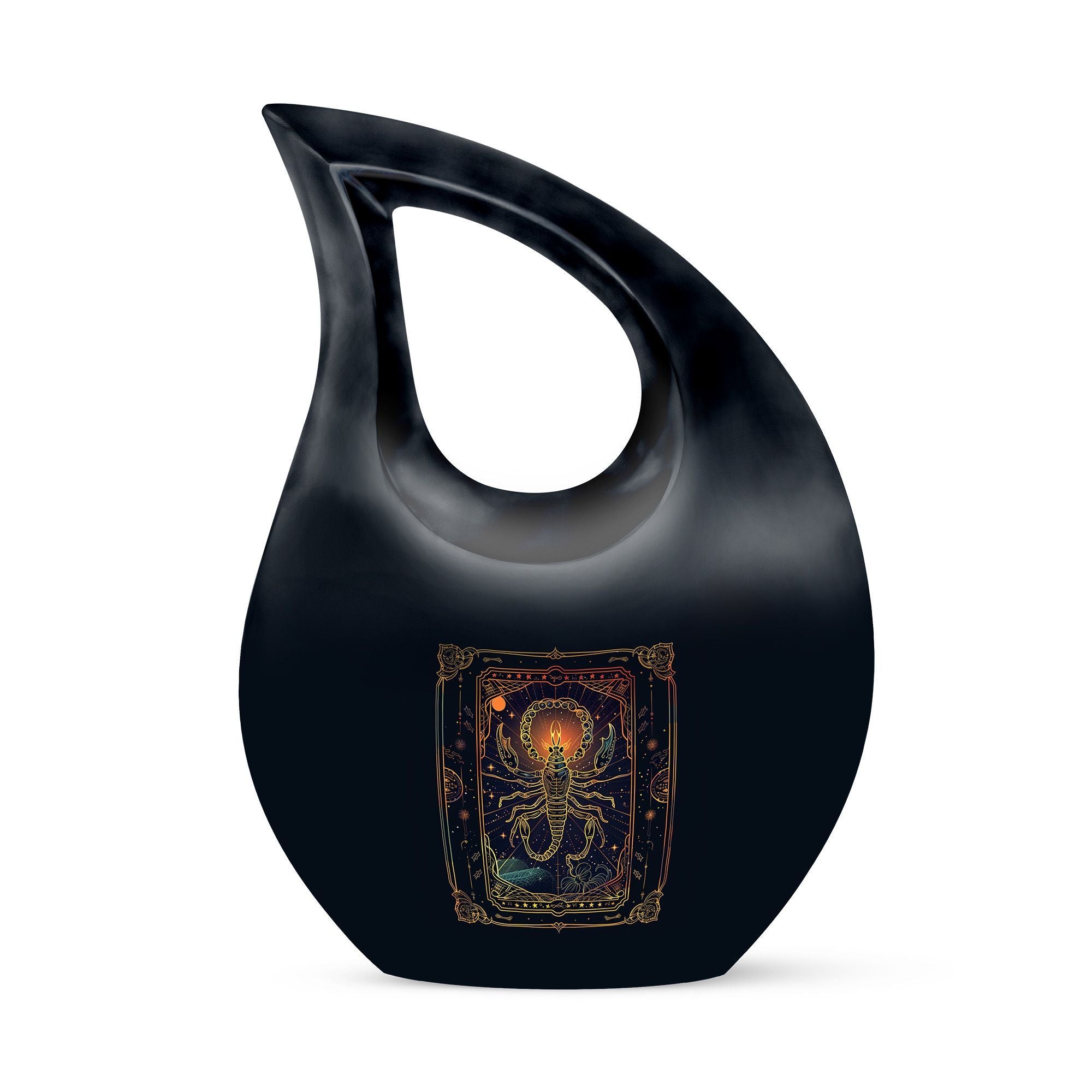 Discover an exquisite way to treasure the cherished memories of a departed soul with our Zodiac large urn, crafted from durable aluminum. Standing at a meaningful height of 10 inches and bearing a weight of 3.3 pounds, this funeral urn signifies the importance of preserving precious remembrances. Encompassing a style that resonates with the zodiac theme, our memorial urn showcases an impressive 'Cross Drop' pattern. It is capacious enough to hold up to 200 cubic inches of ashes, thereby keeping the essence of the loved one intact. Moreover, we extend an option for you to personalize this keepsake urn with engraved names, adding an intimate touch to the urn. With your purchase, you will also receive a velvet pouch for respectful containment of ashes. This funeral urn is not just a symbol of remembering a life lived, but an embodiment of serenity and peace. Our zodiac urn is pocket-friendly, making it a viable choice for those seeking affordable cremation urns. Treasure the celestial connection with your loved one with our zodiac-themed urn.